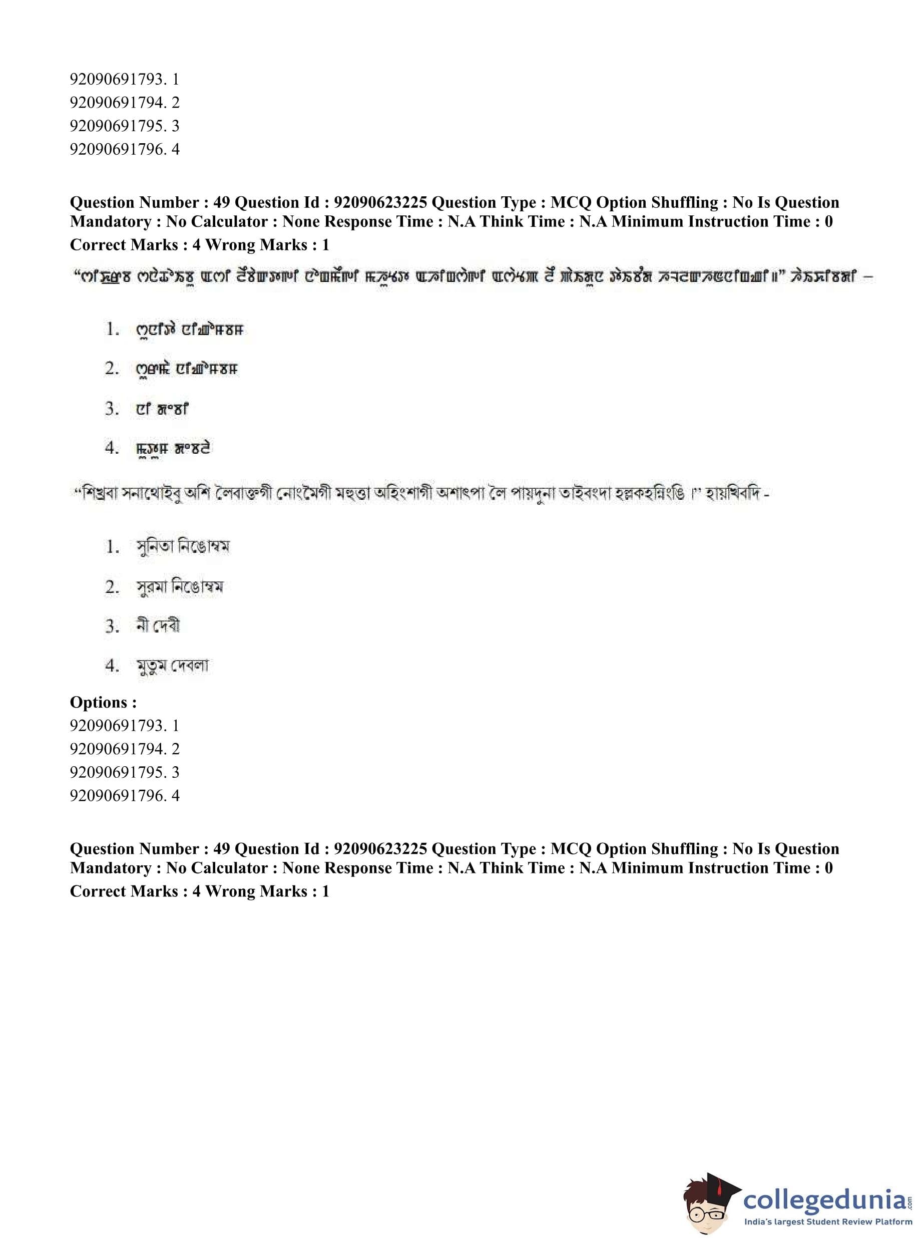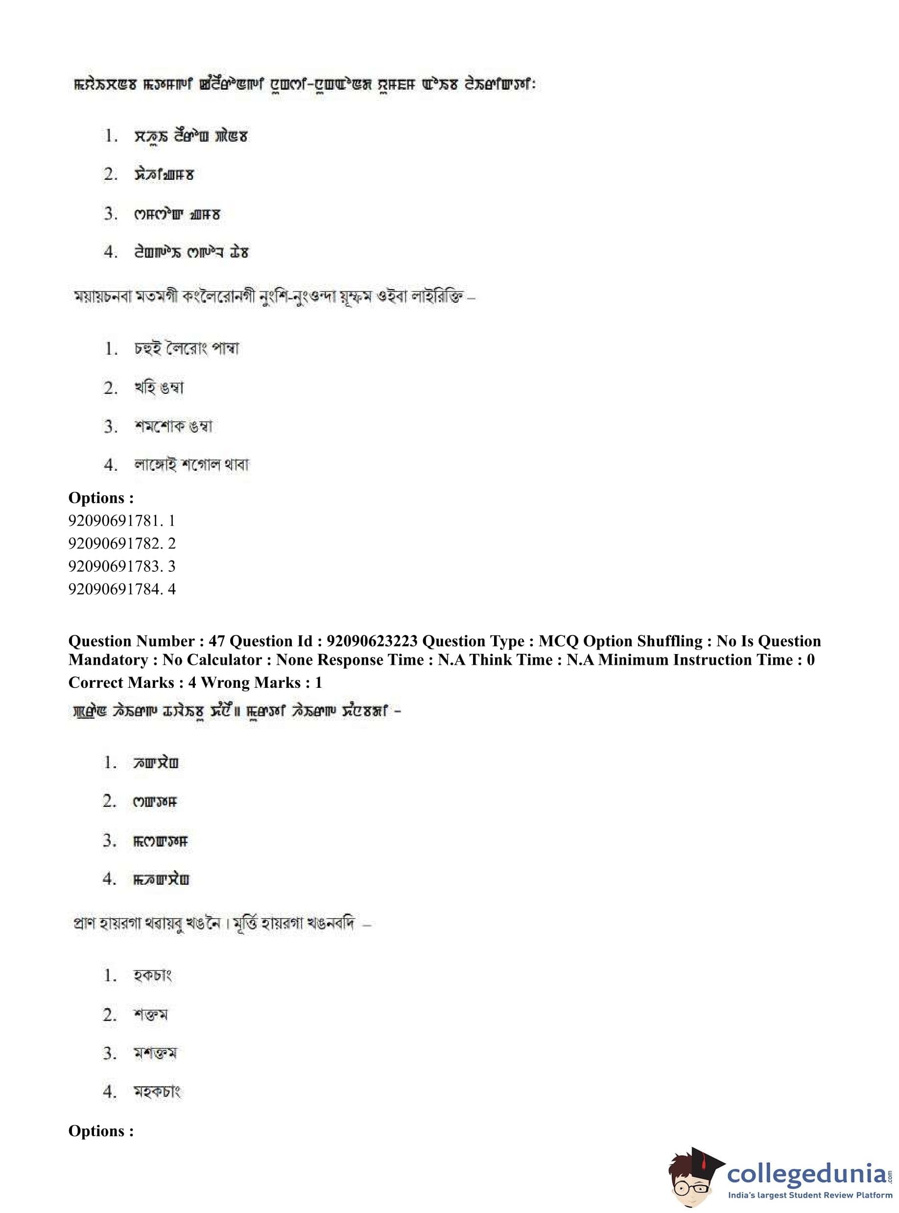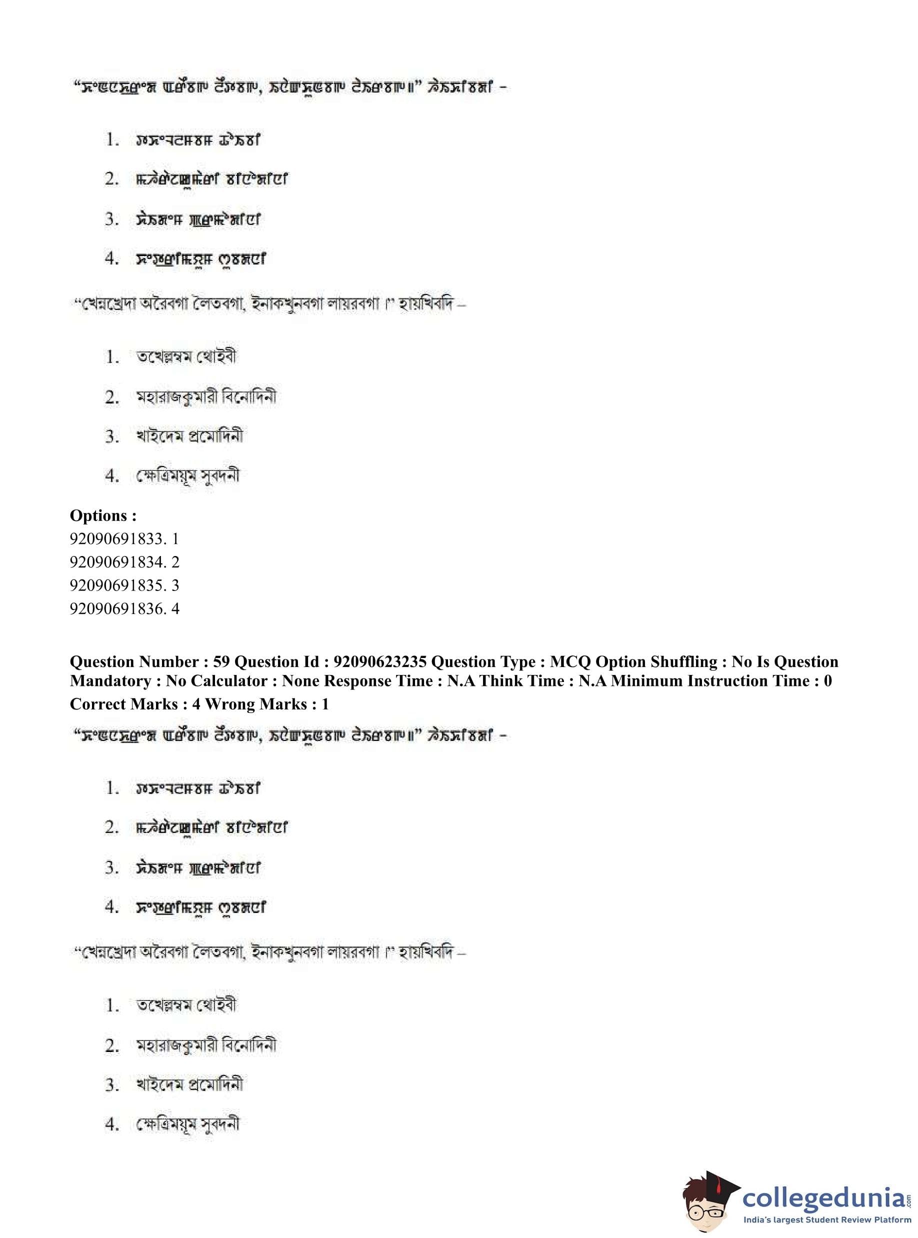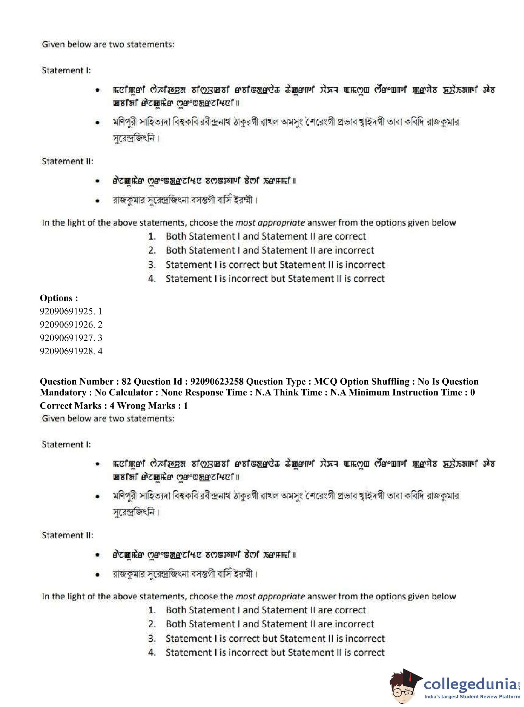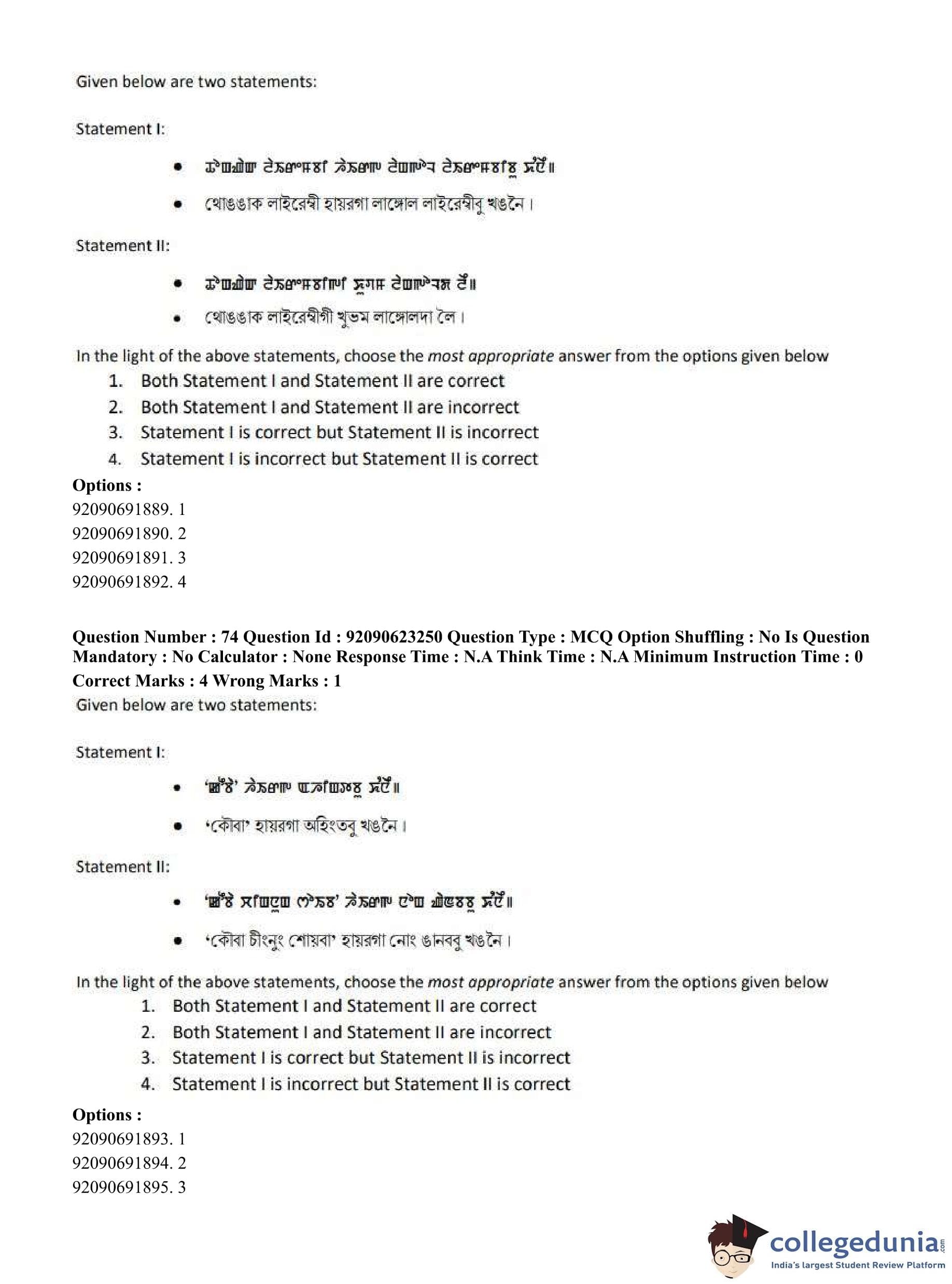 CUET PG 2023 Manipuri Question Paper in English (June 24 - Shift 2)