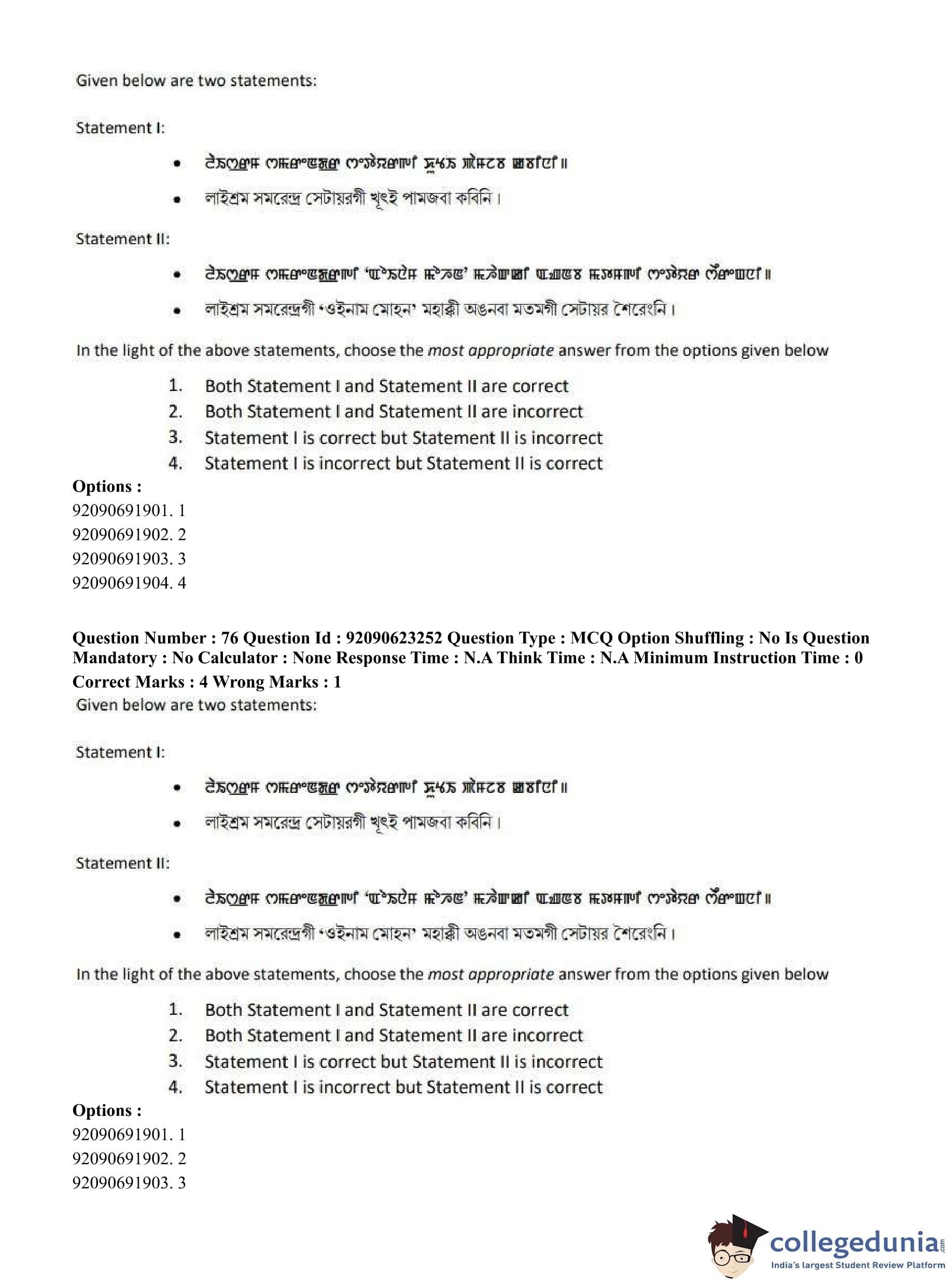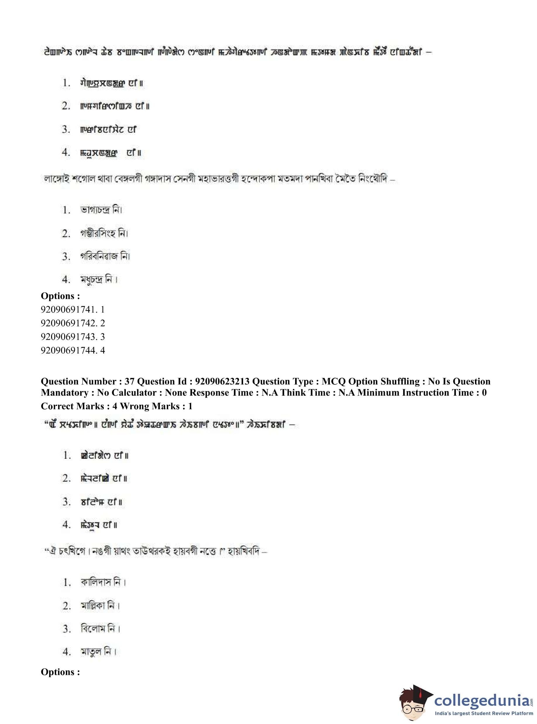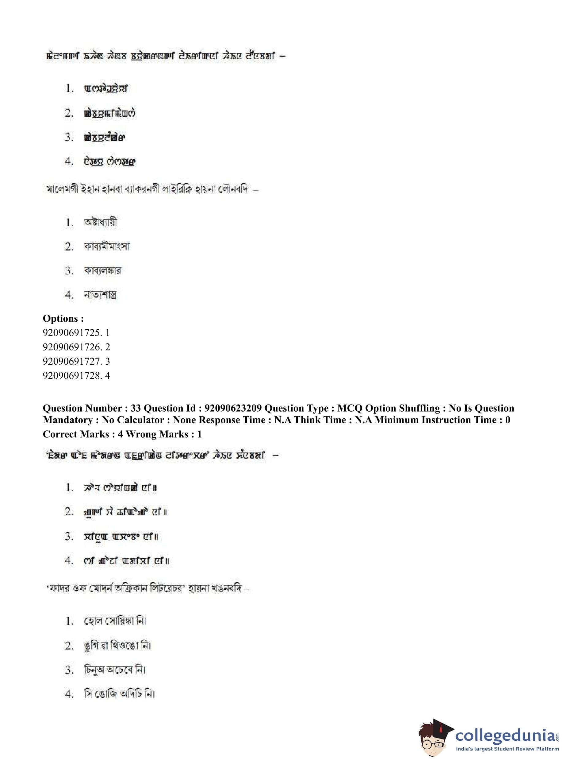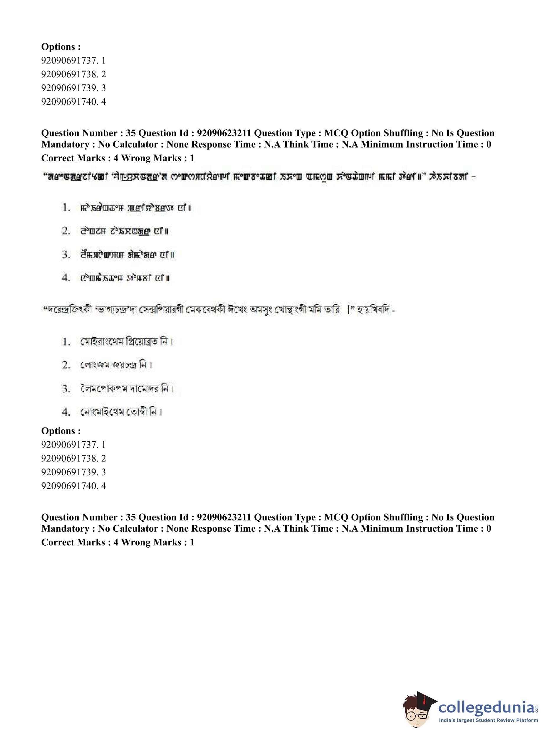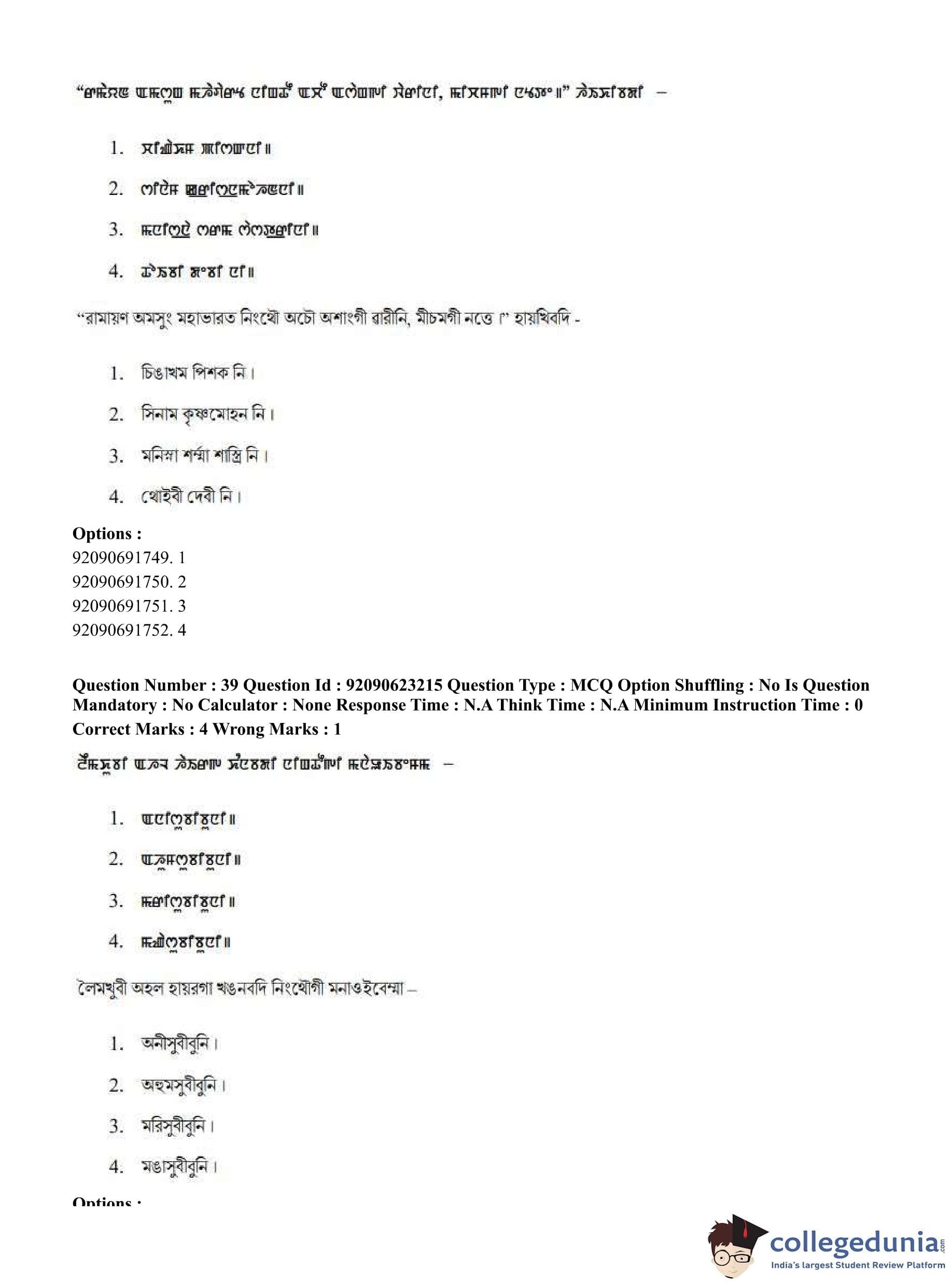 CUET PG 2023 Manipuri Question Paper in English (June 24 - Shift 2)