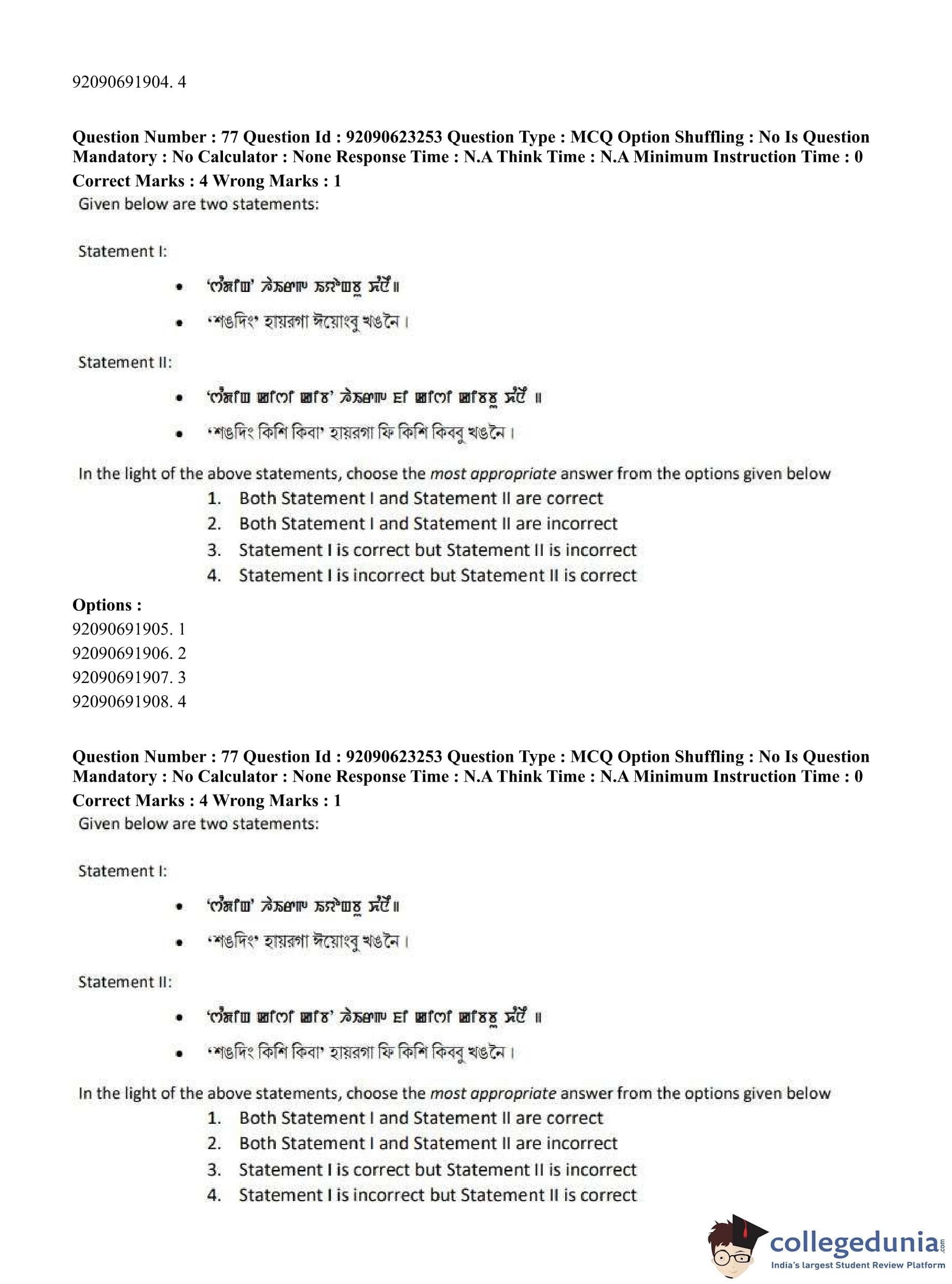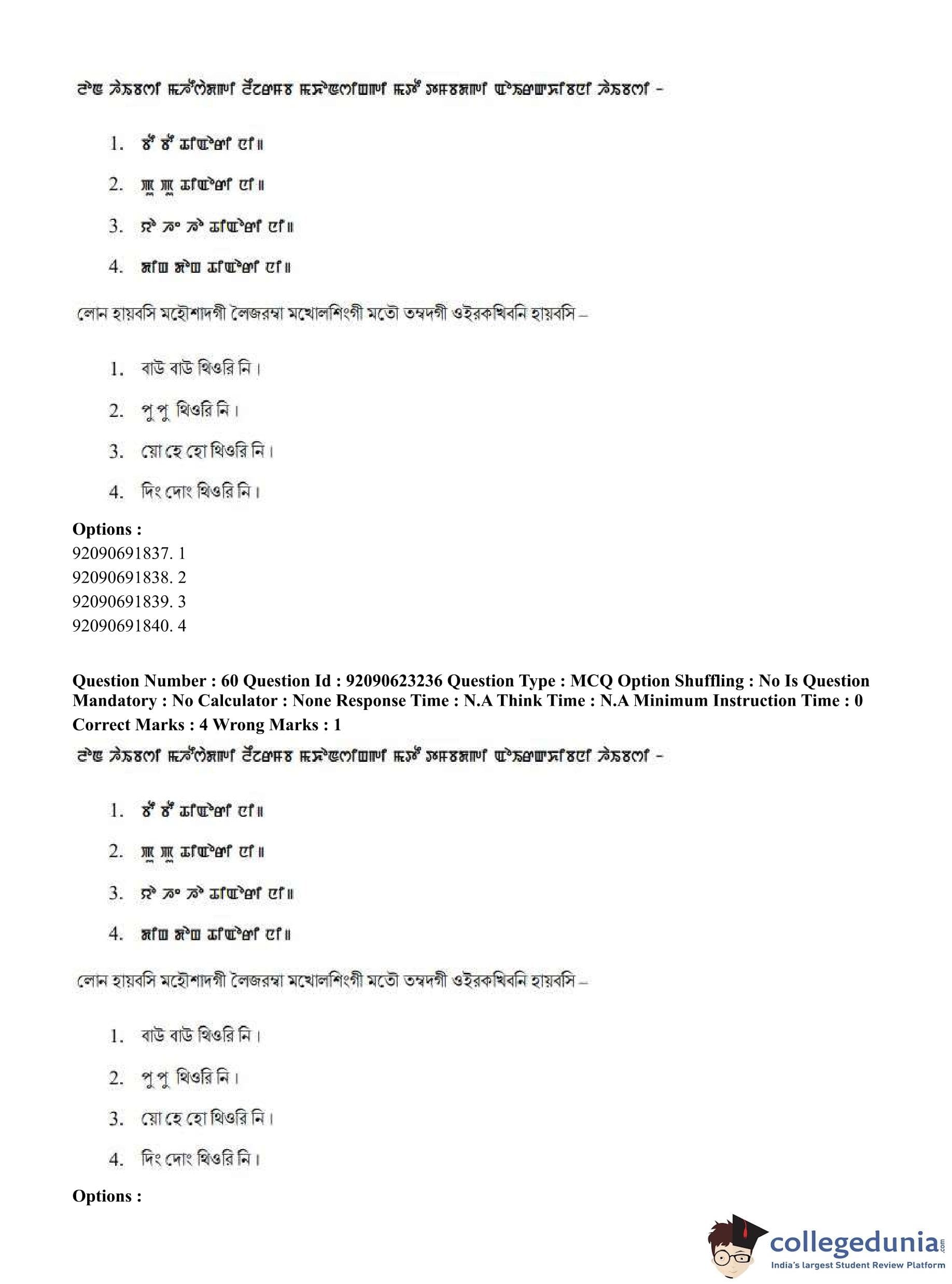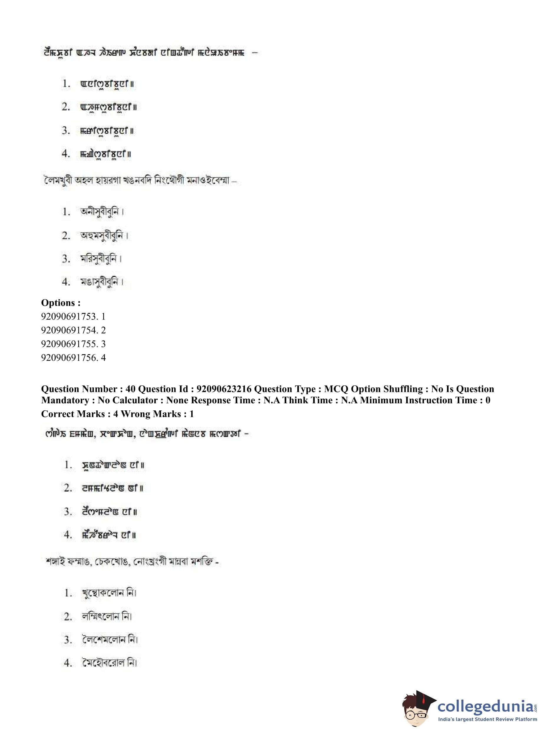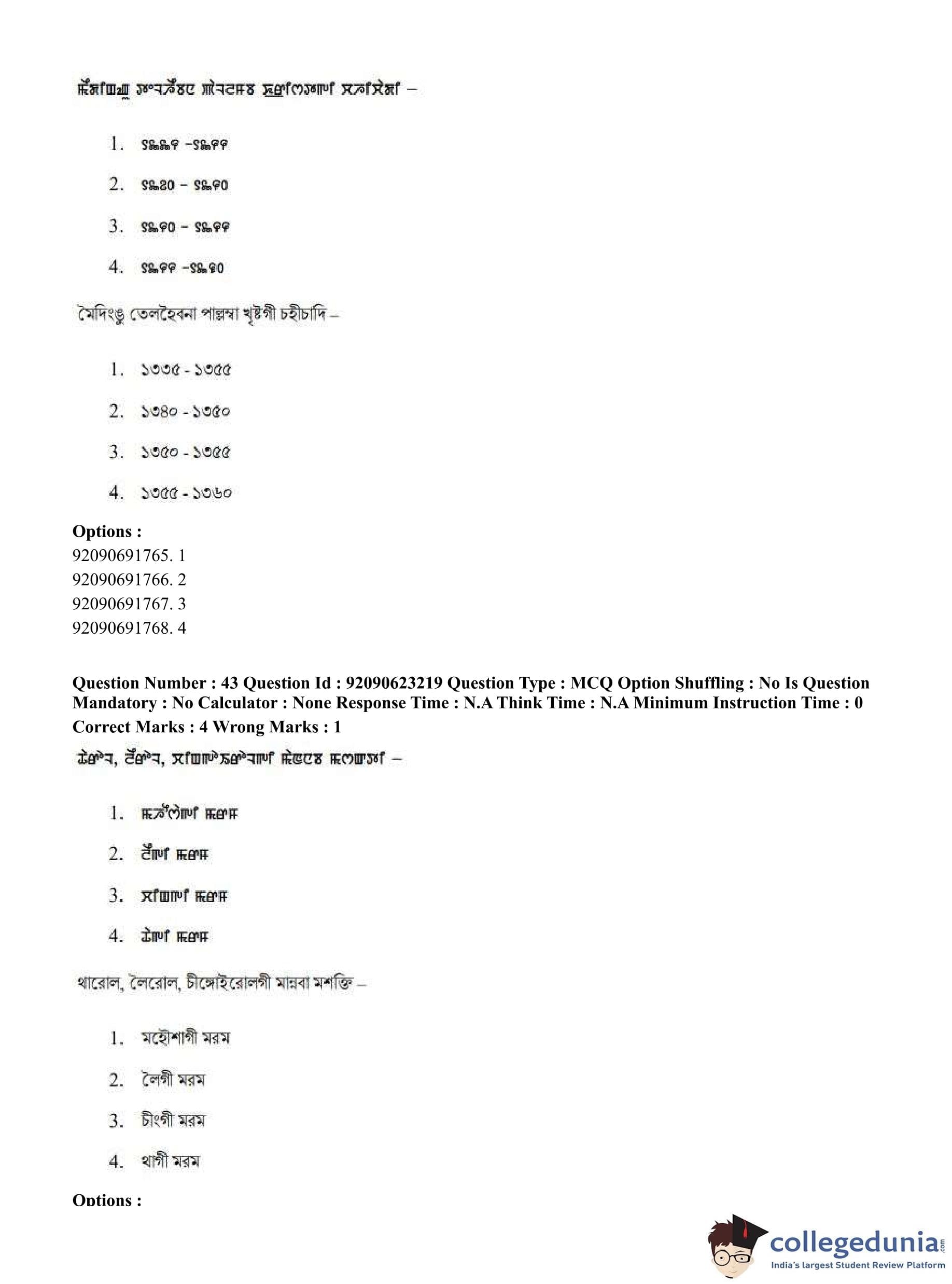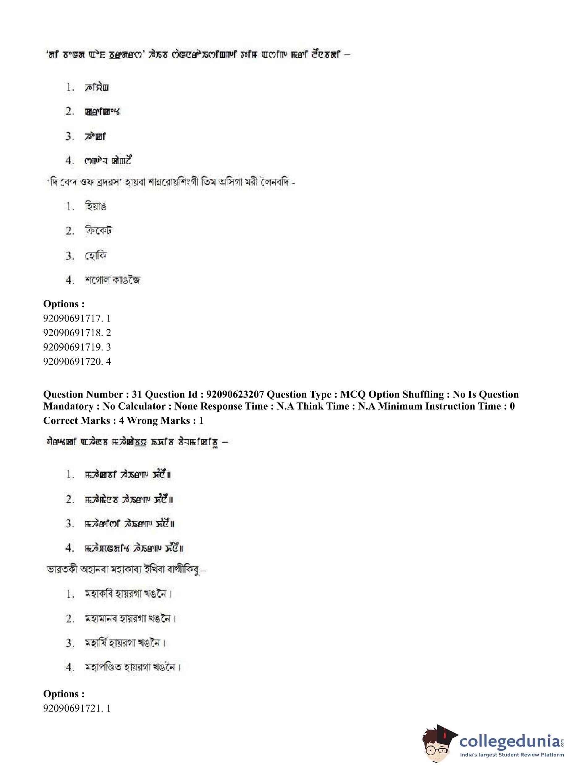 CUET PG 2023 Manipuri Question Paper in English (June 24 - Shift 2)