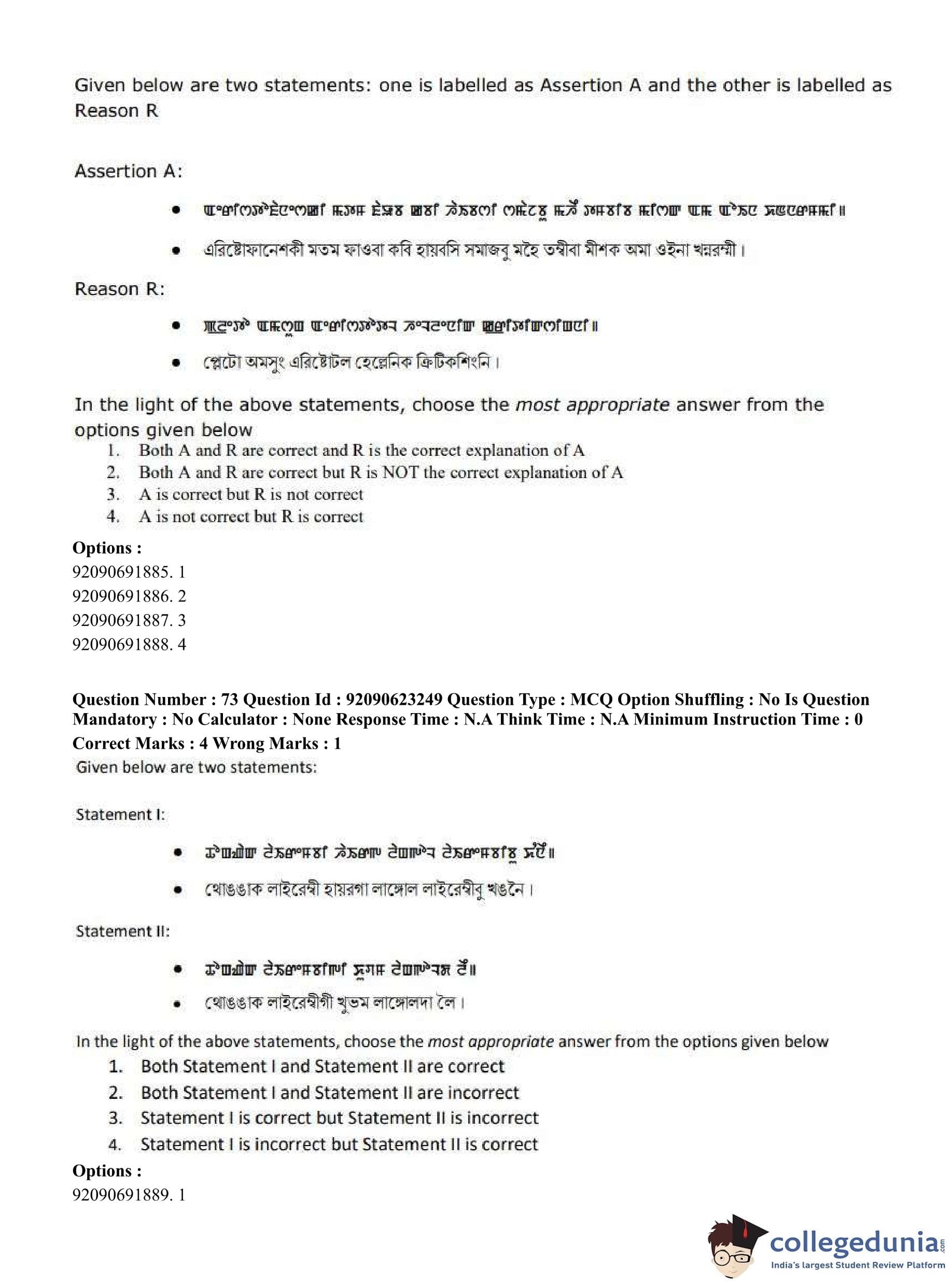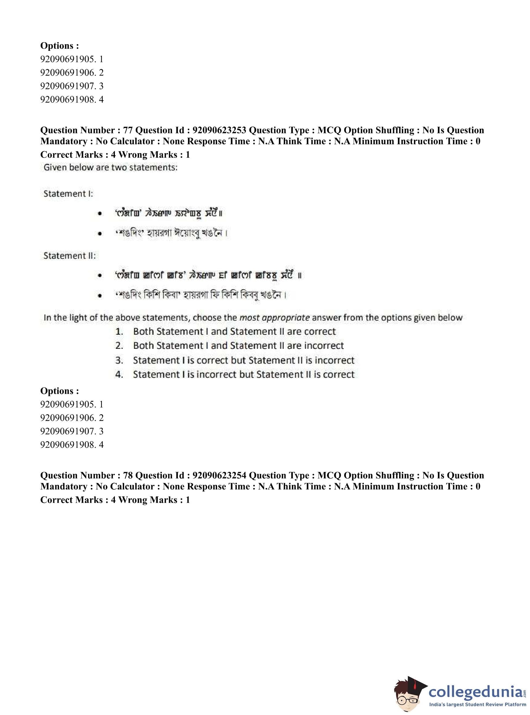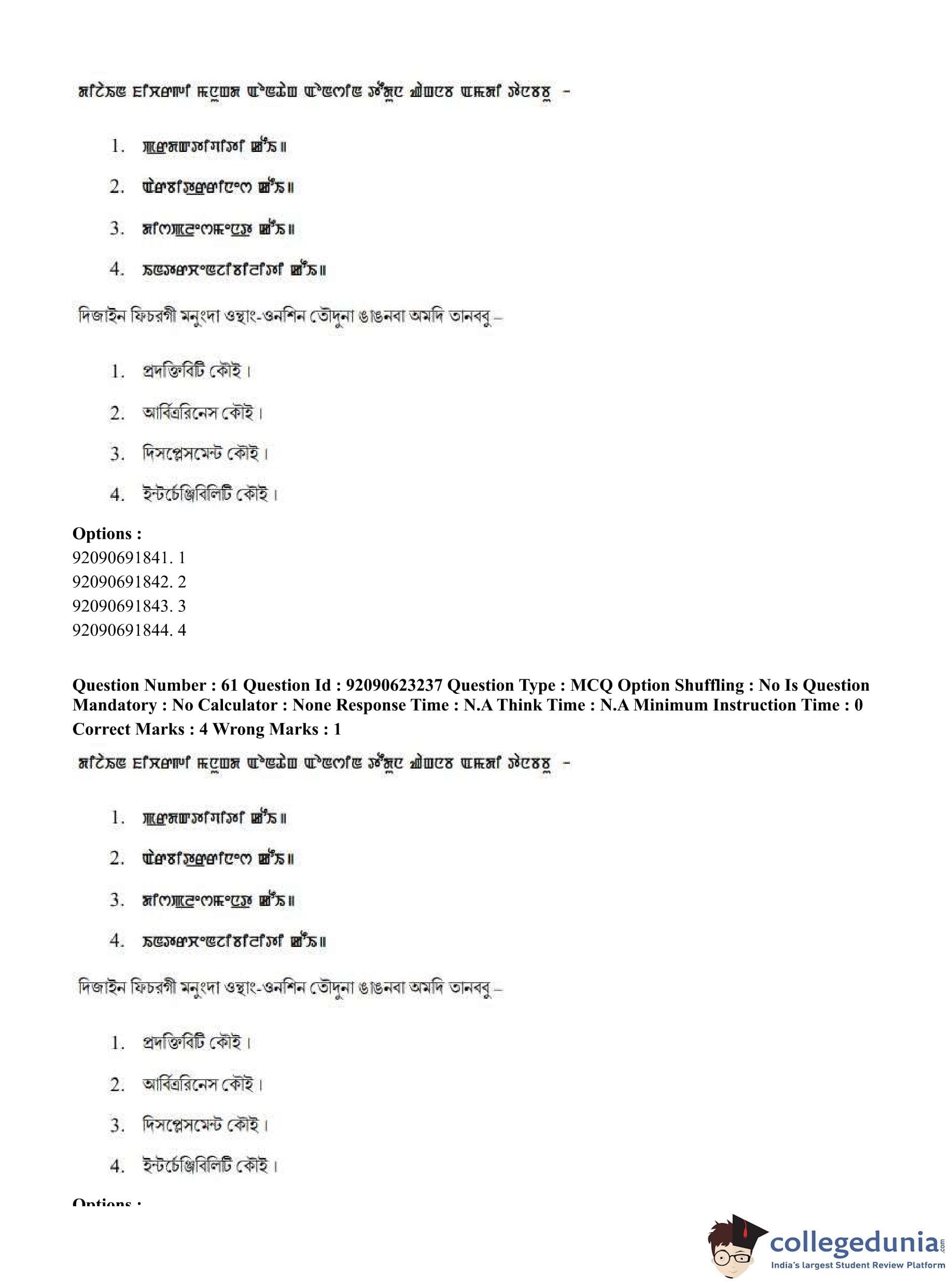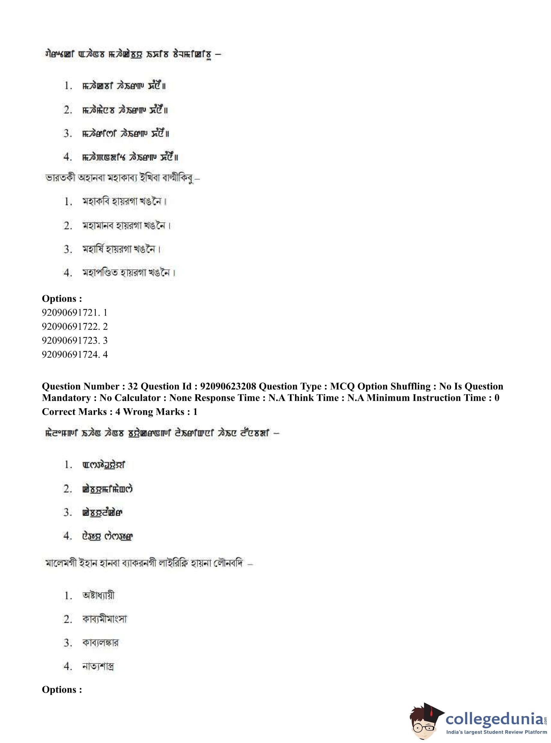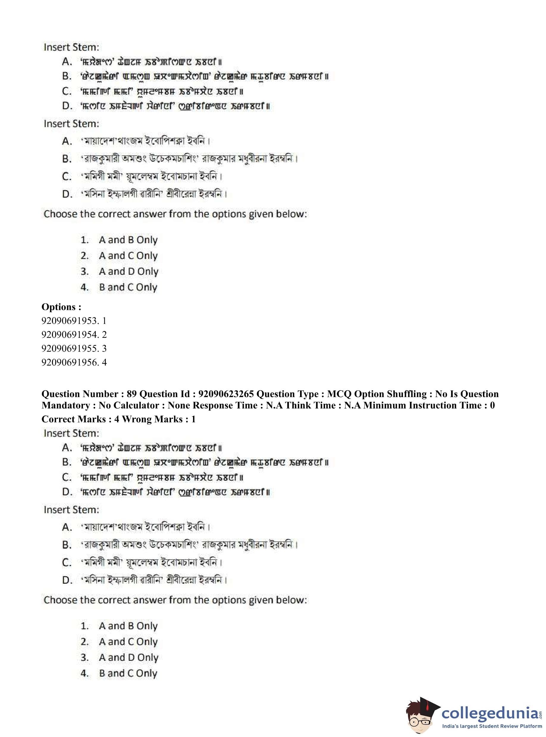 CUET PG 2023 Manipuri Question Paper in English (June 24 - Shift 2)