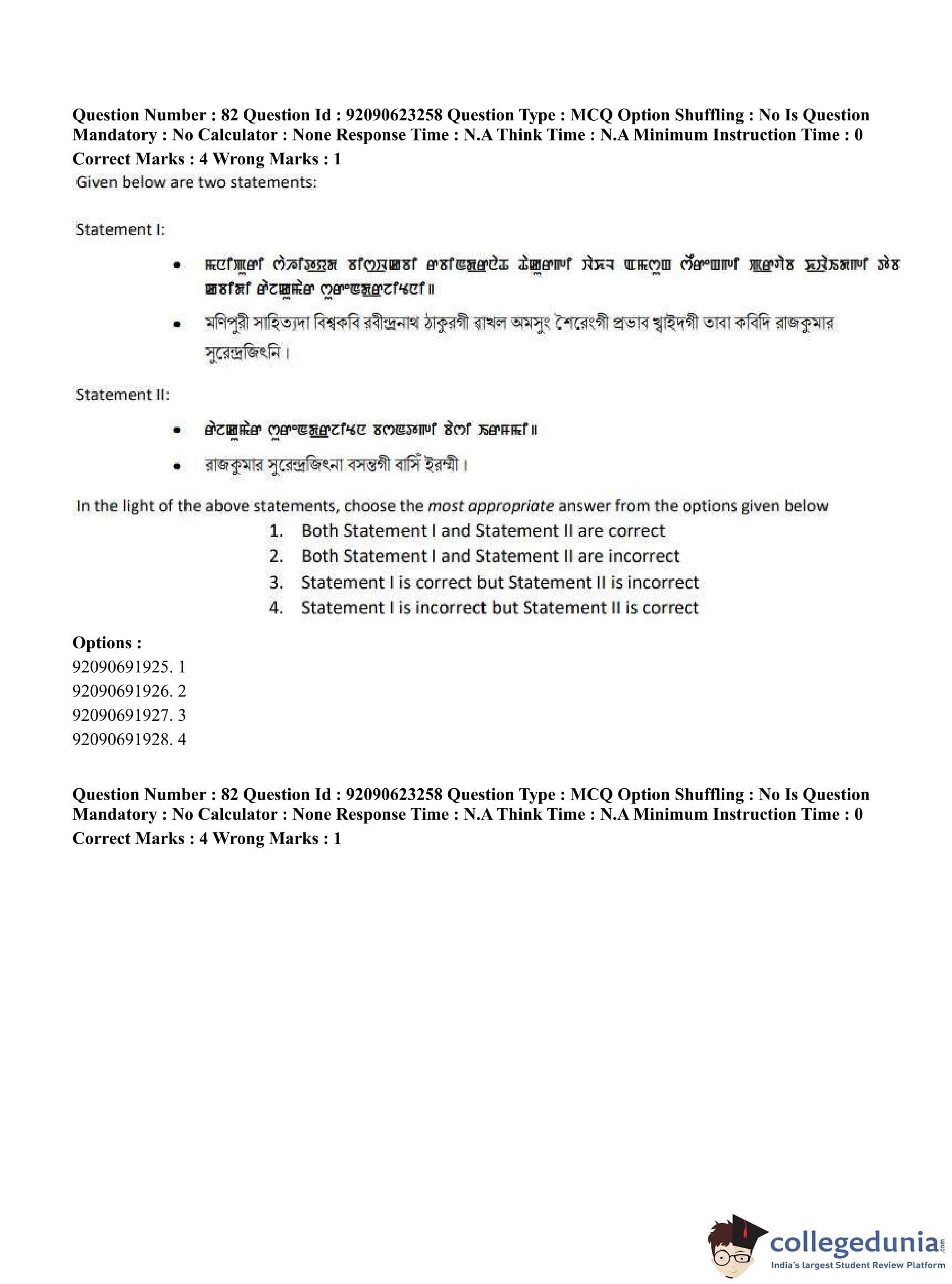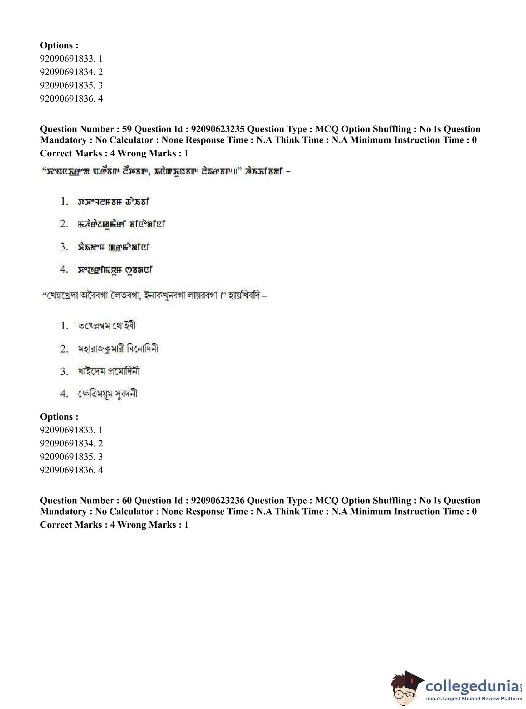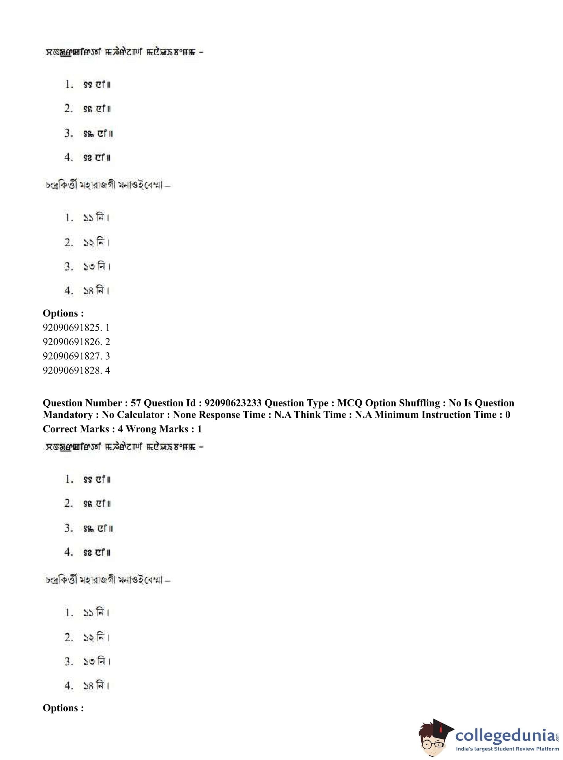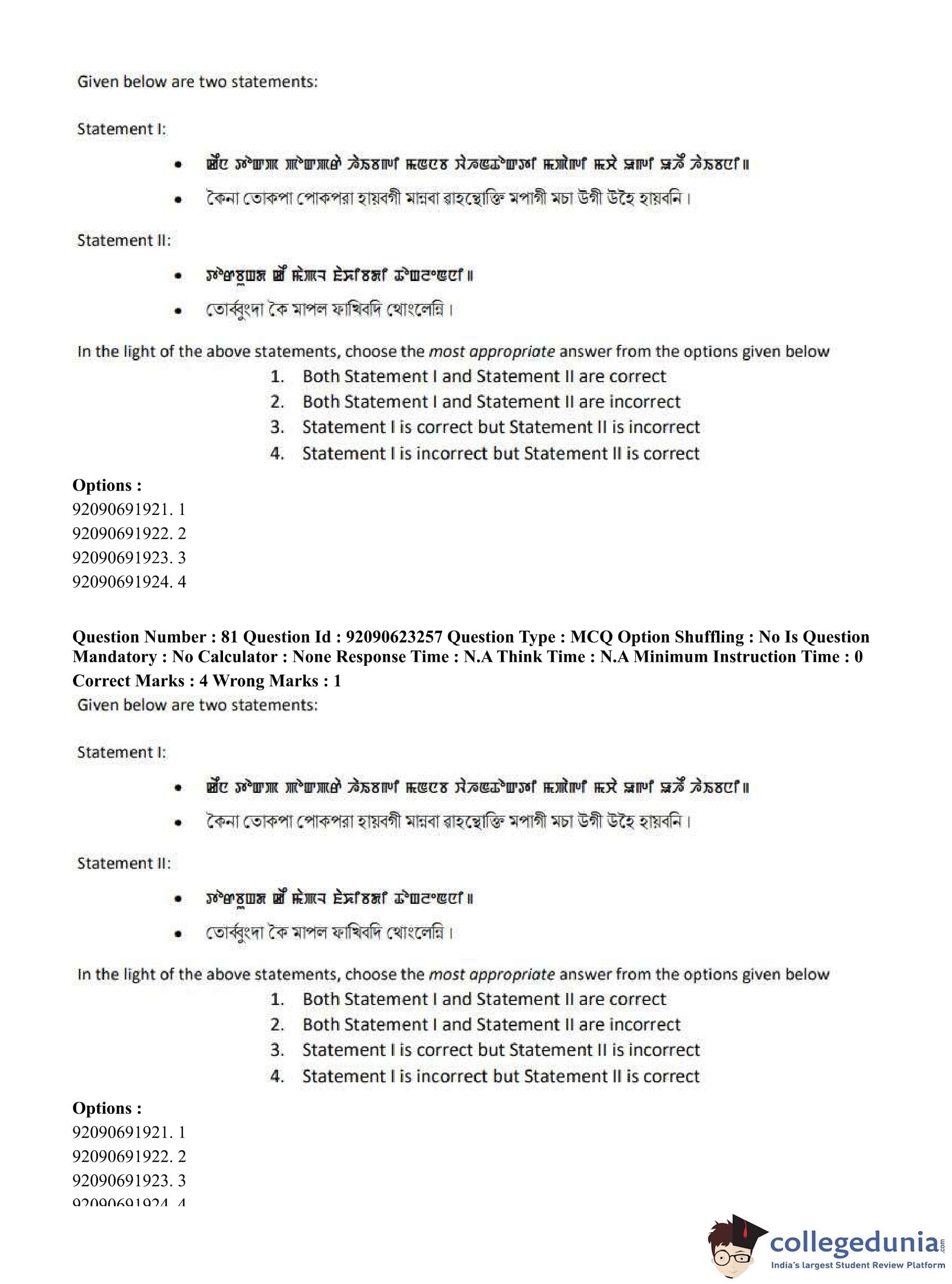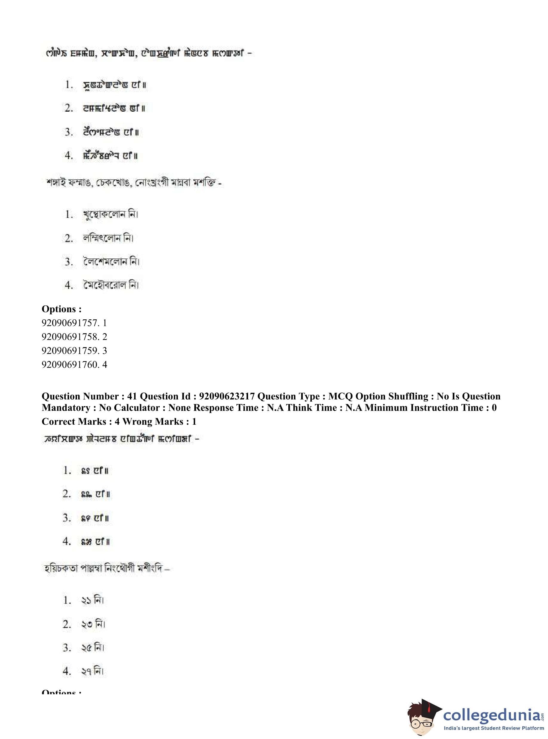 CUET PG 2023 Manipuri Question Paper in English (June 24 - Shift 2)