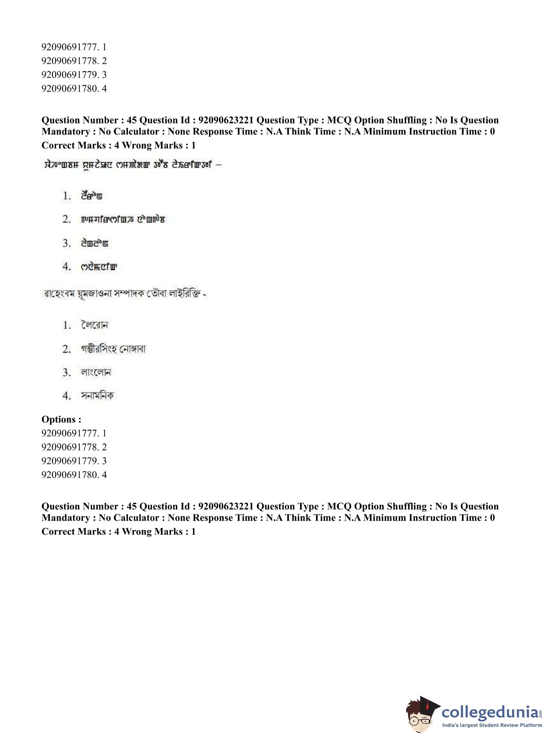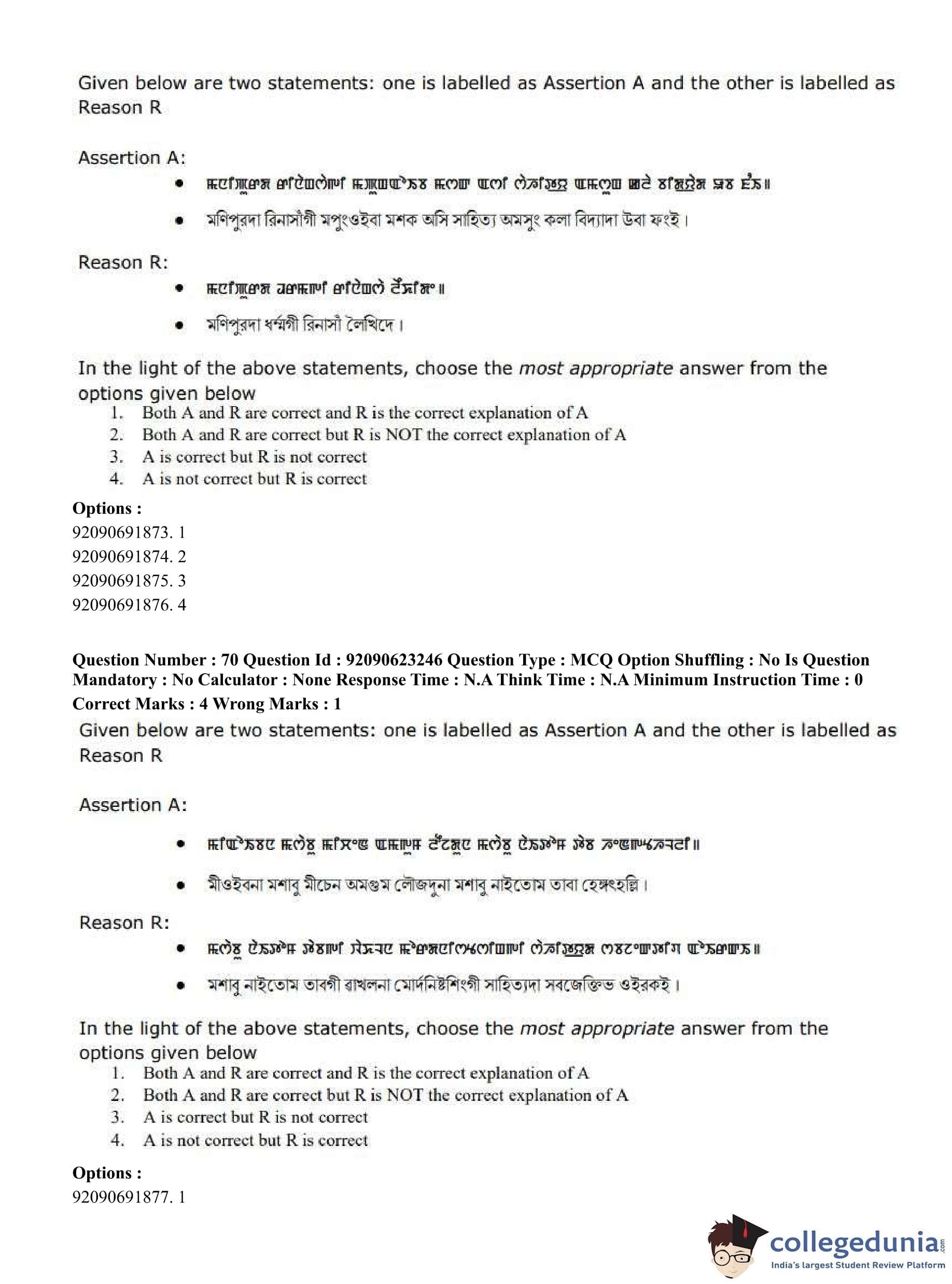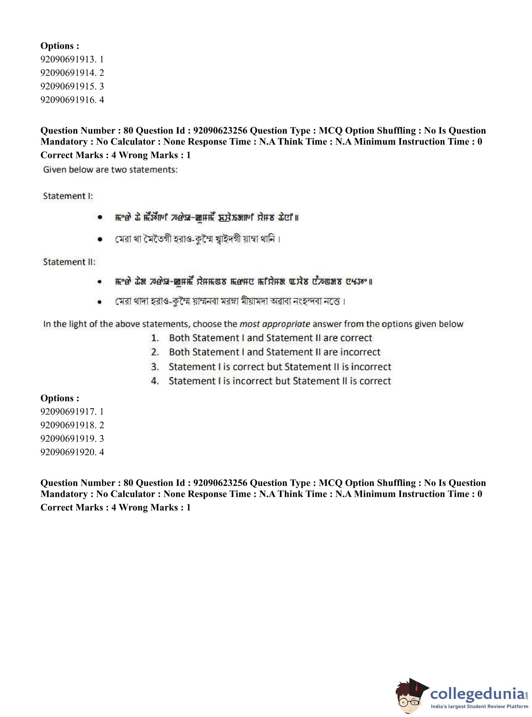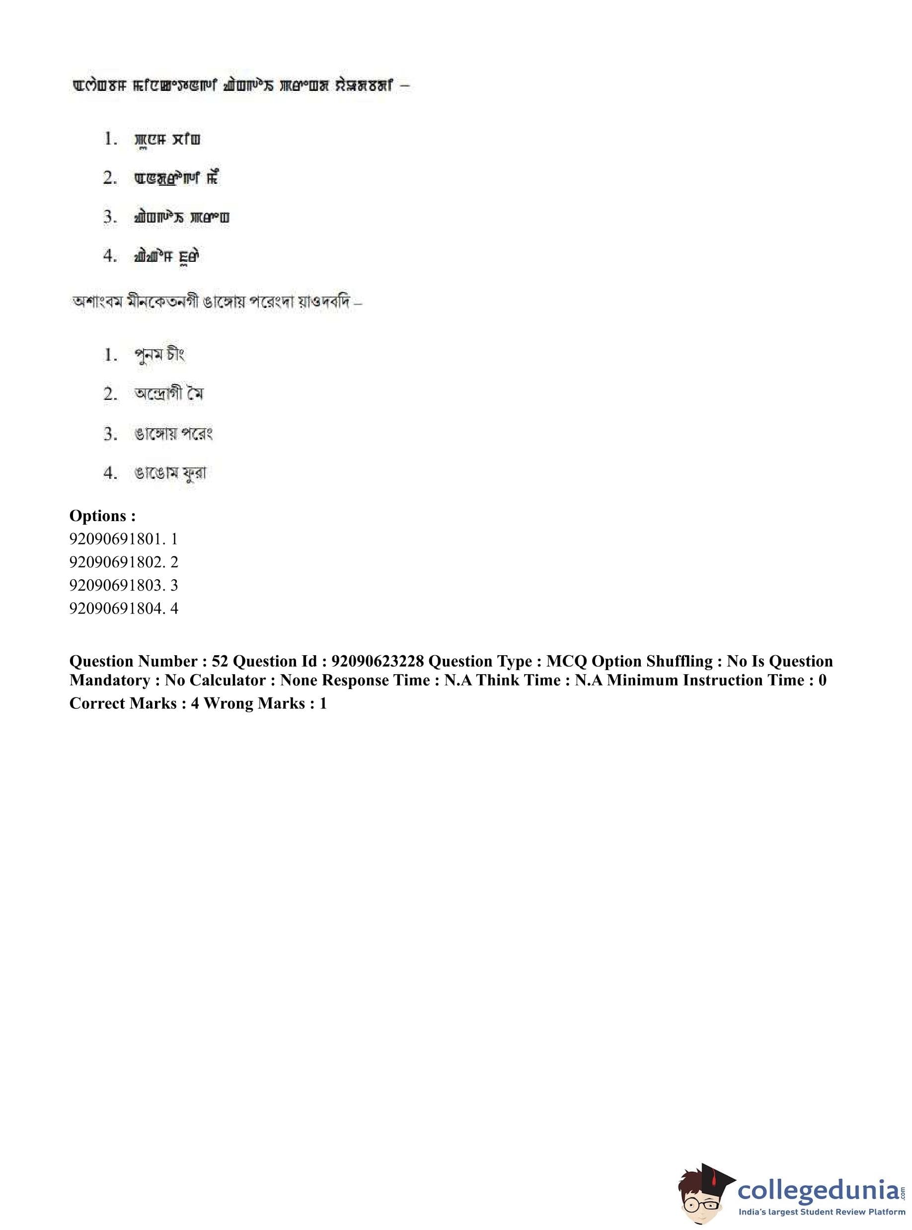 CUET PG 2023 Manipuri Question Paper in English (June 24 - Shift 2)