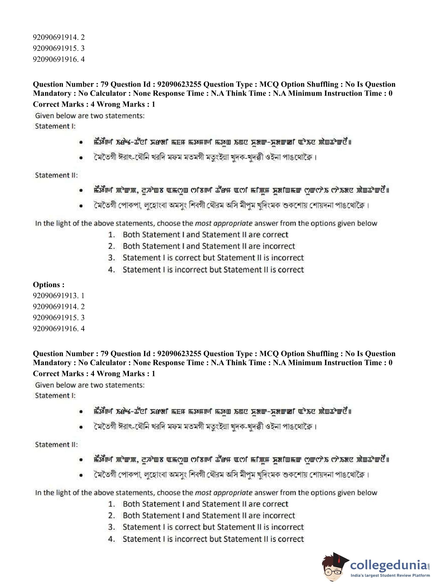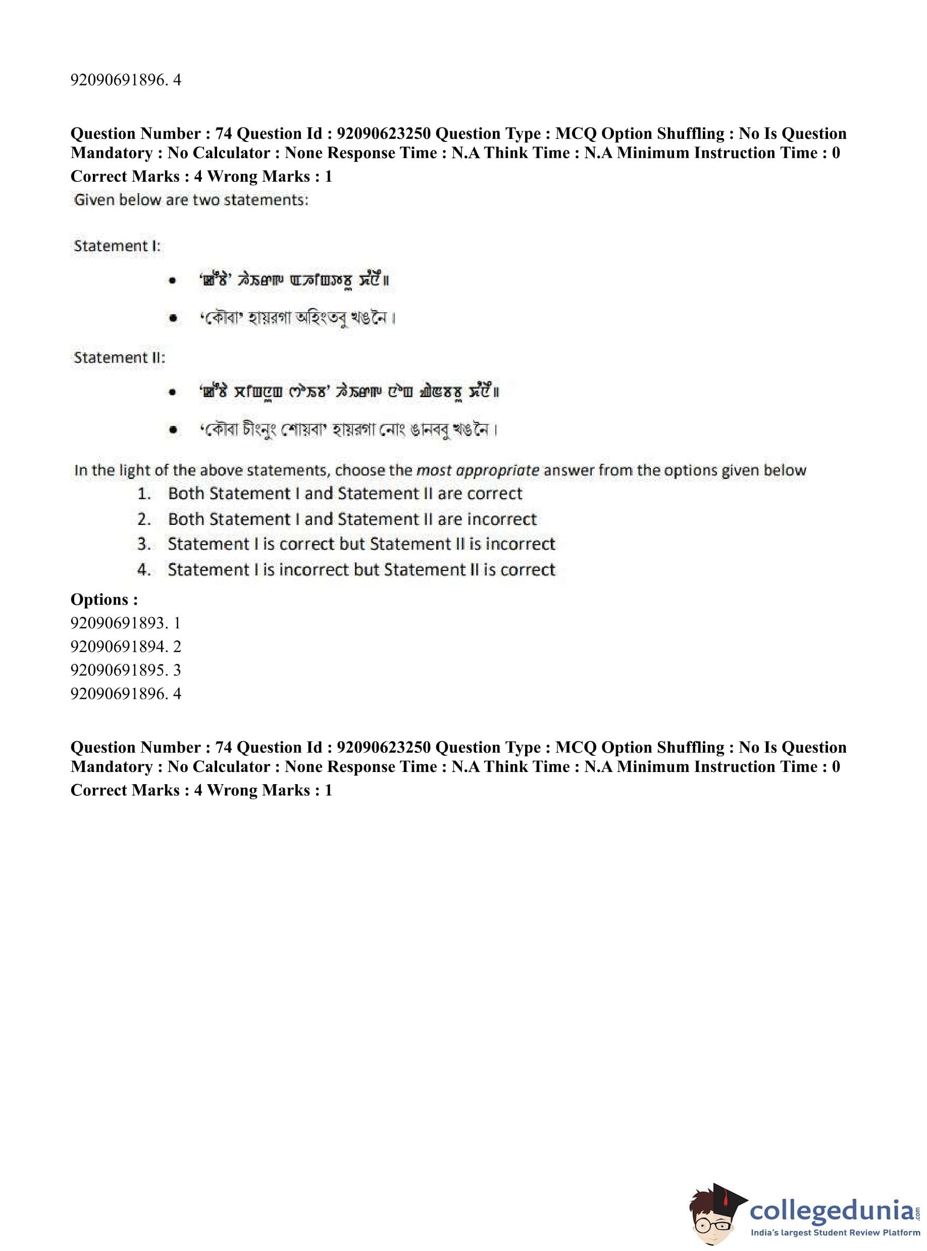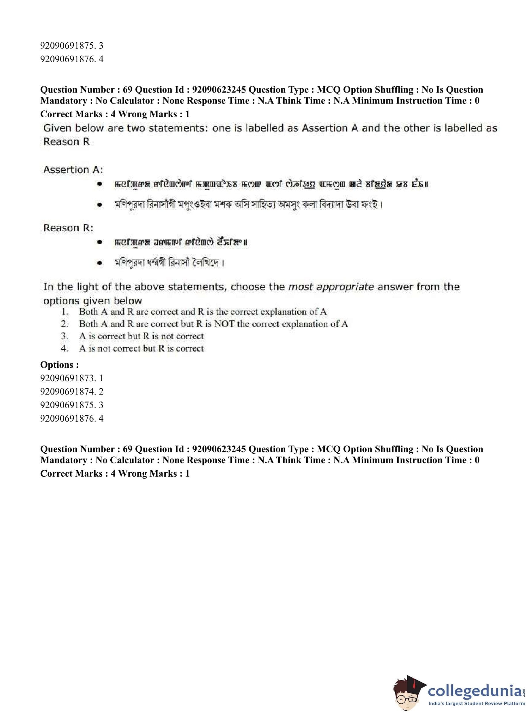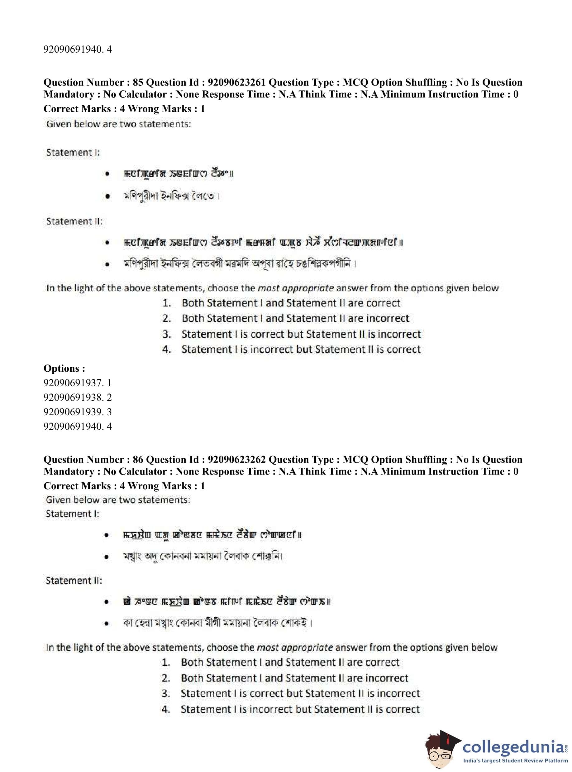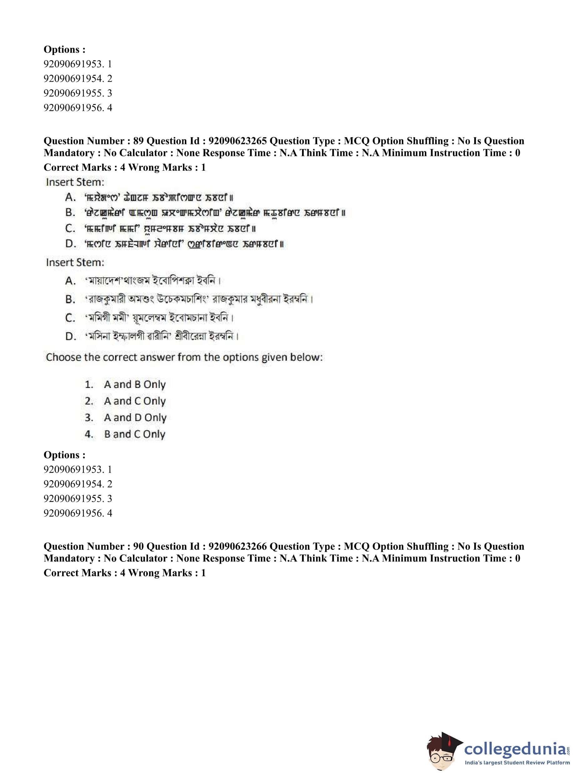 CUET PG 2023 Manipuri Question Paper in English (June 24 - Shift 2)