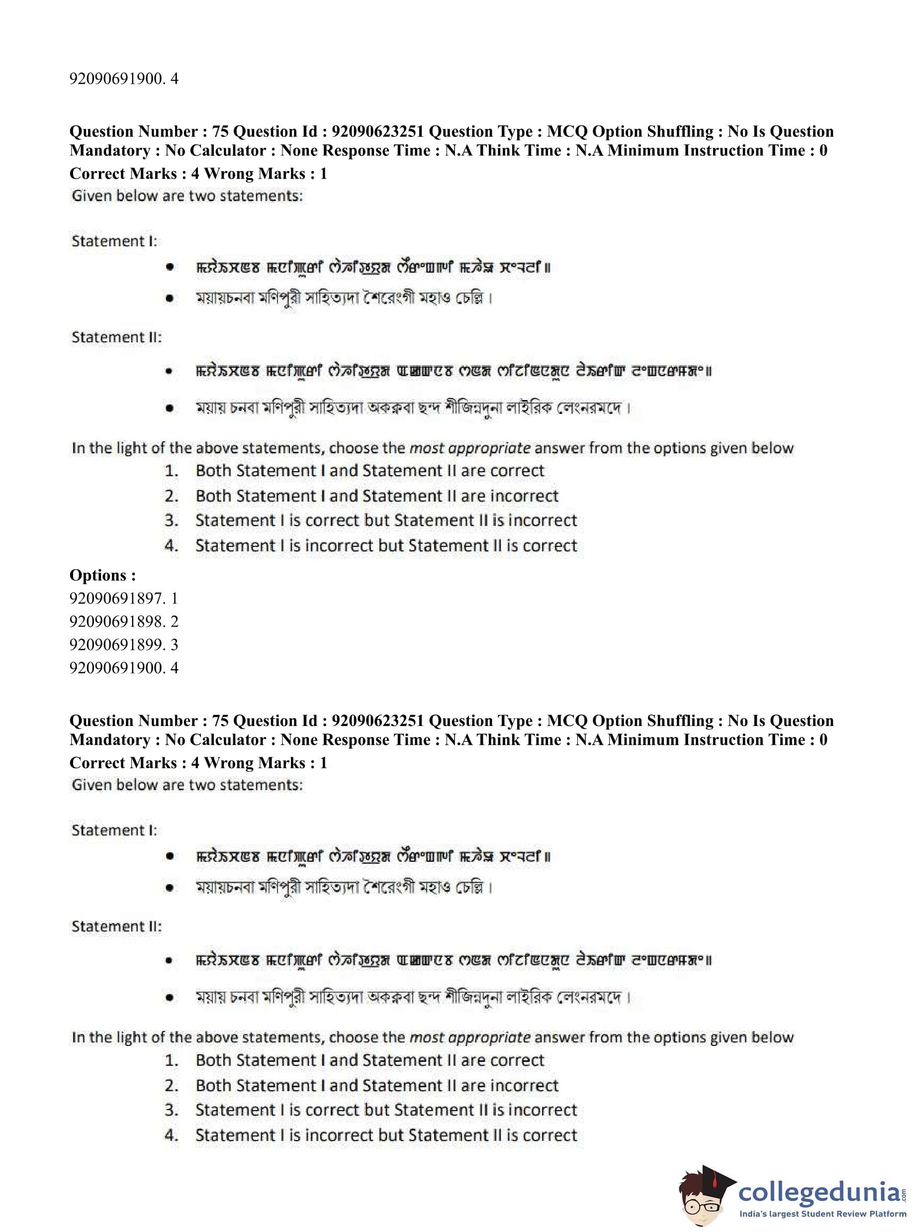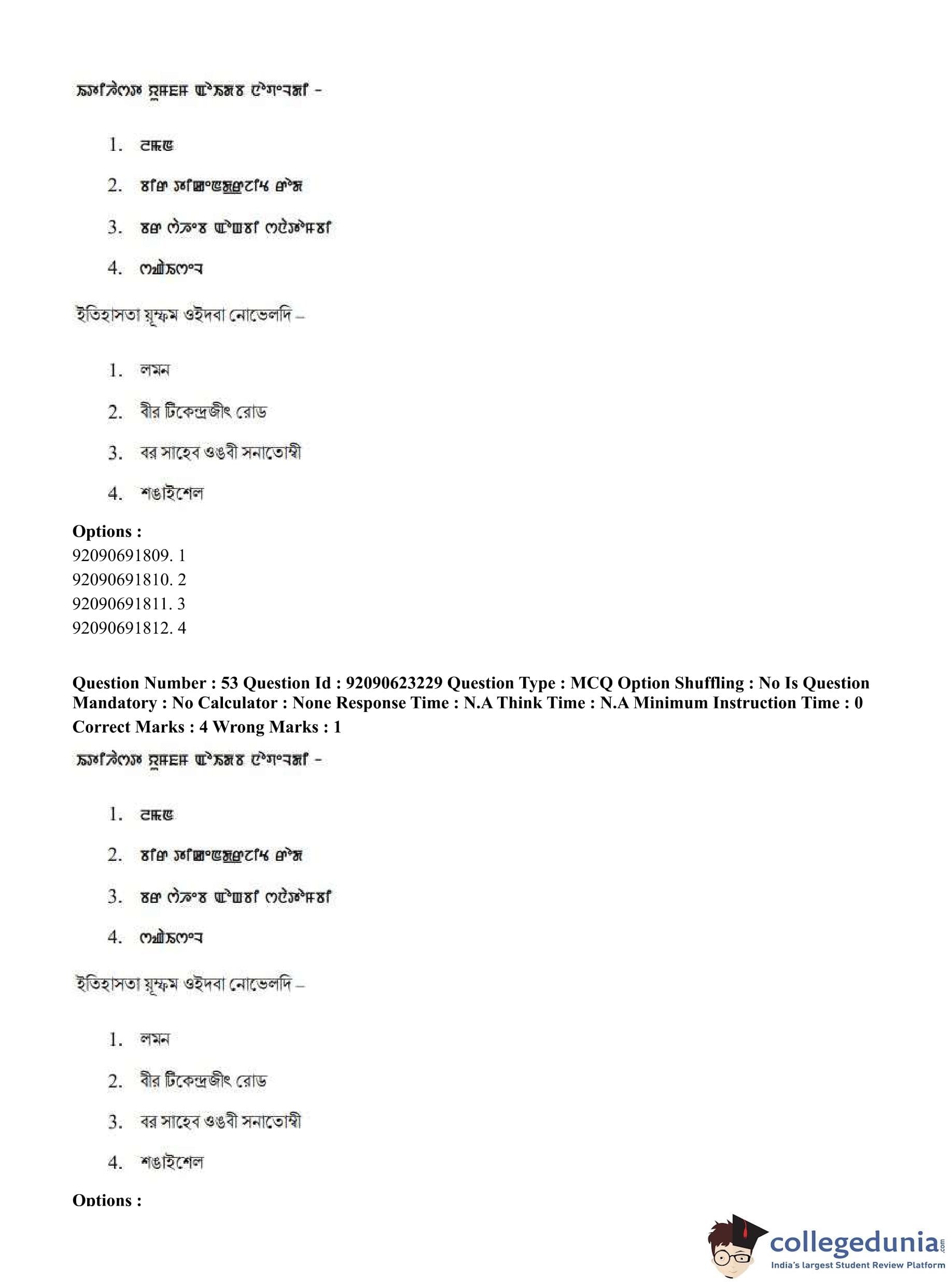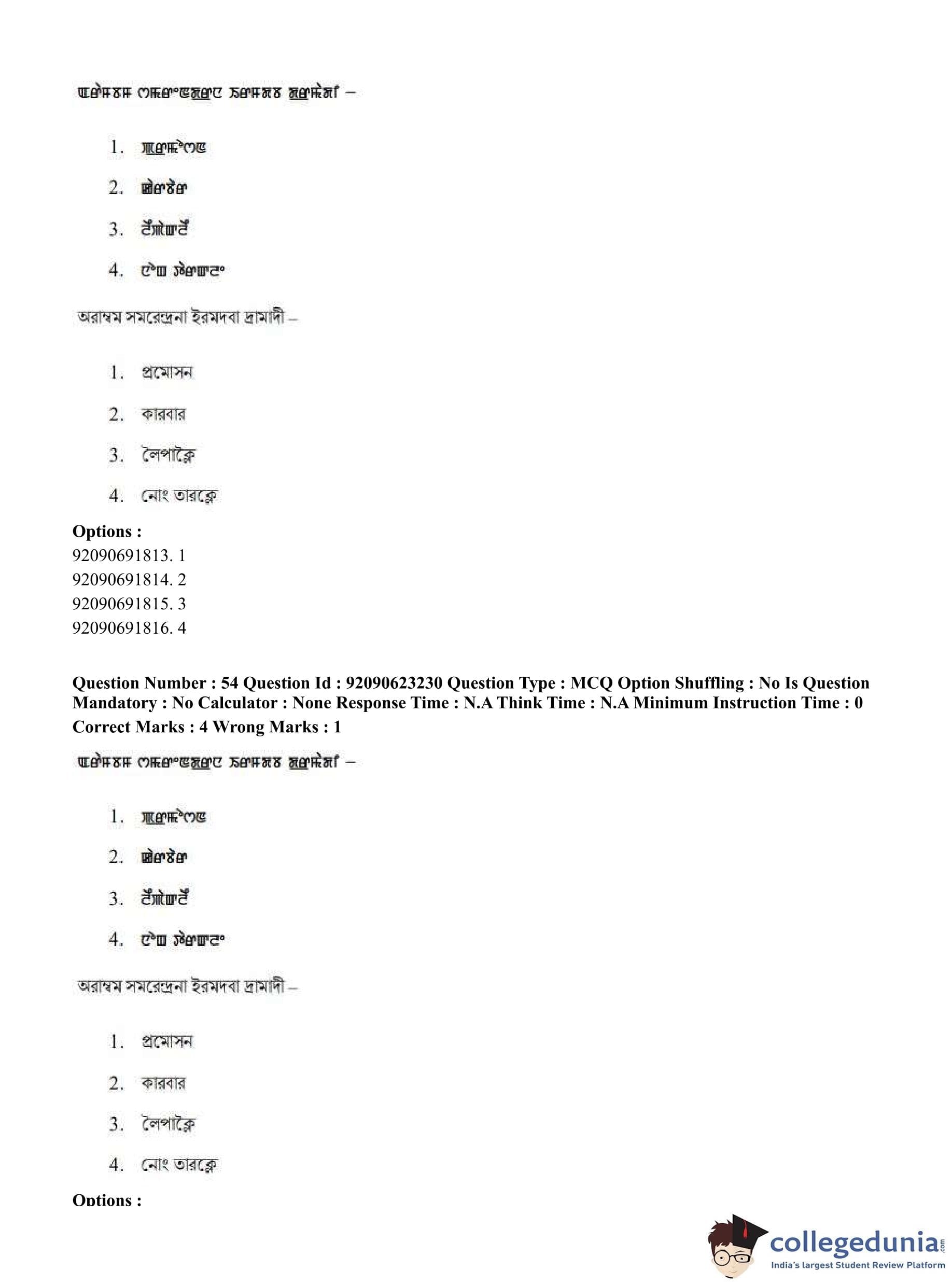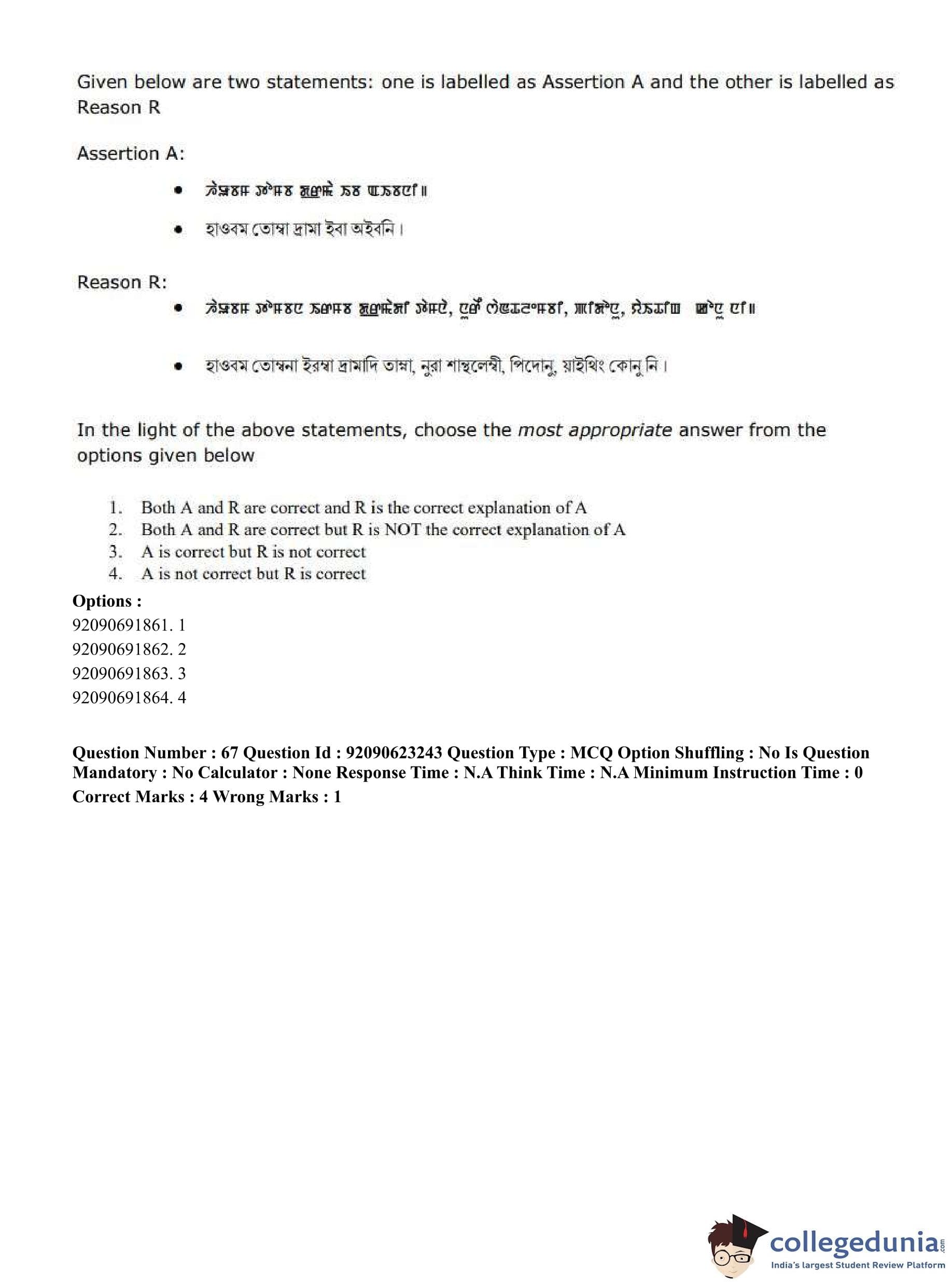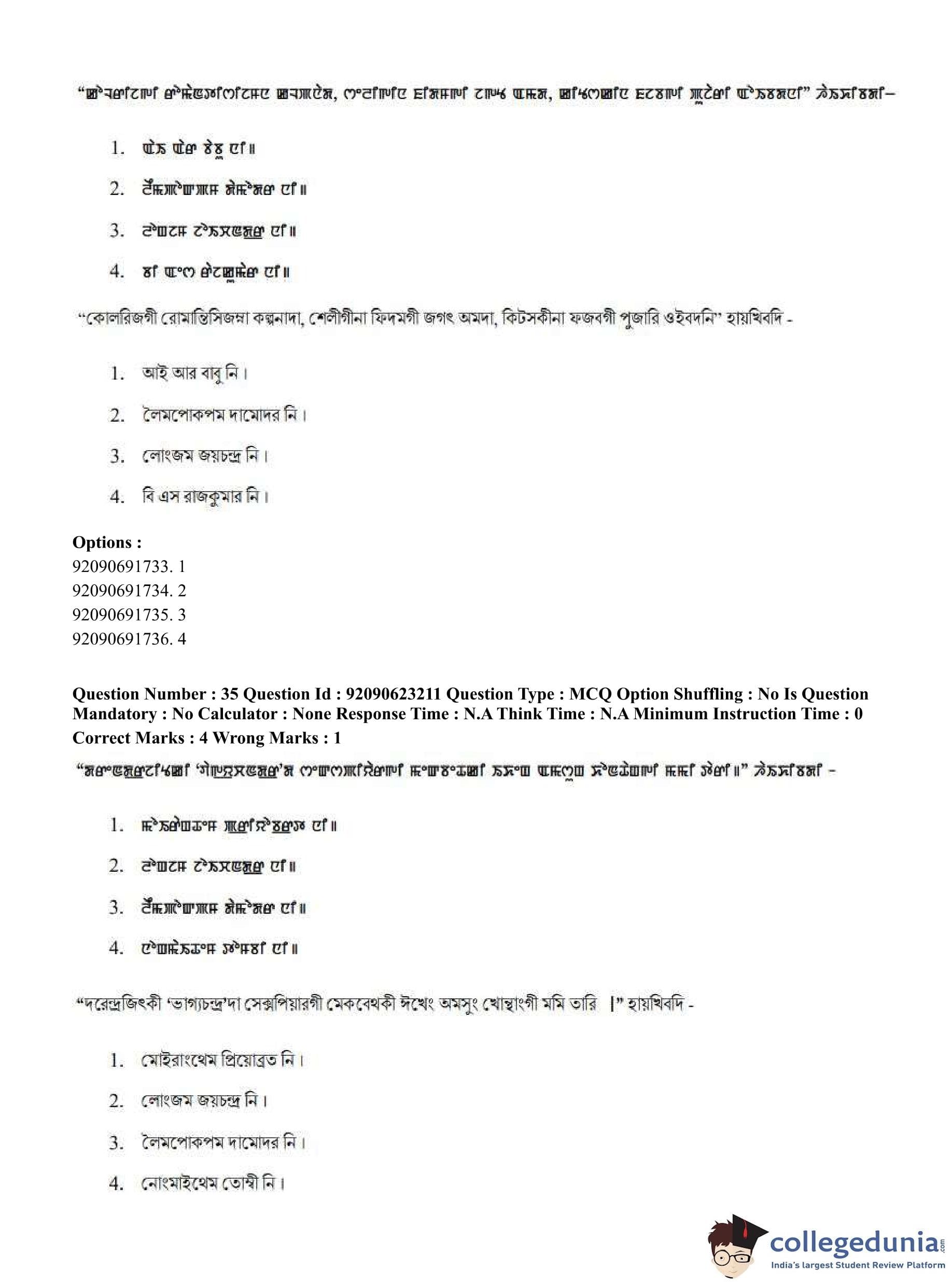 CUET PG 2023 Manipuri Question Paper in English (June 24 - Shift 2)