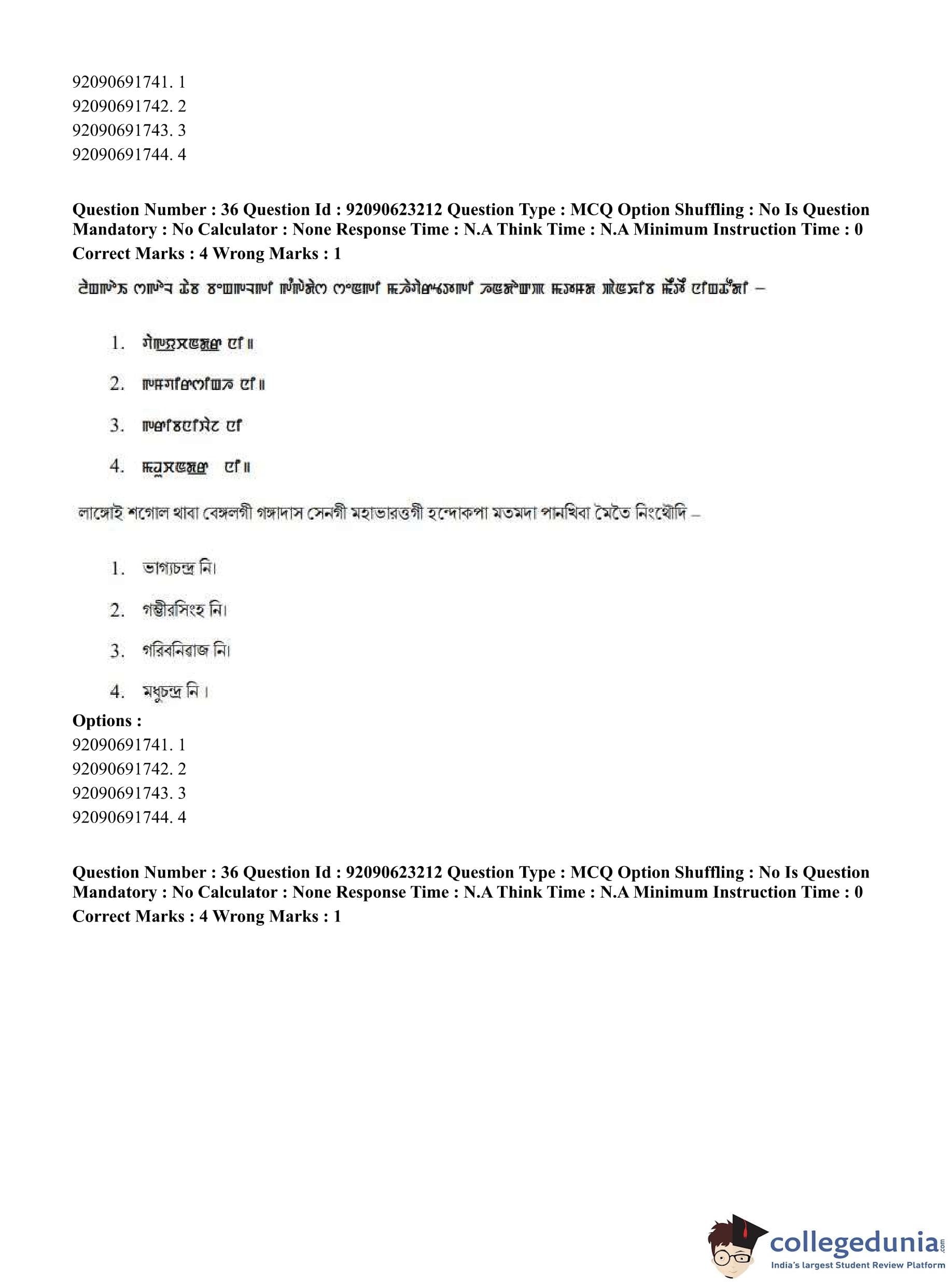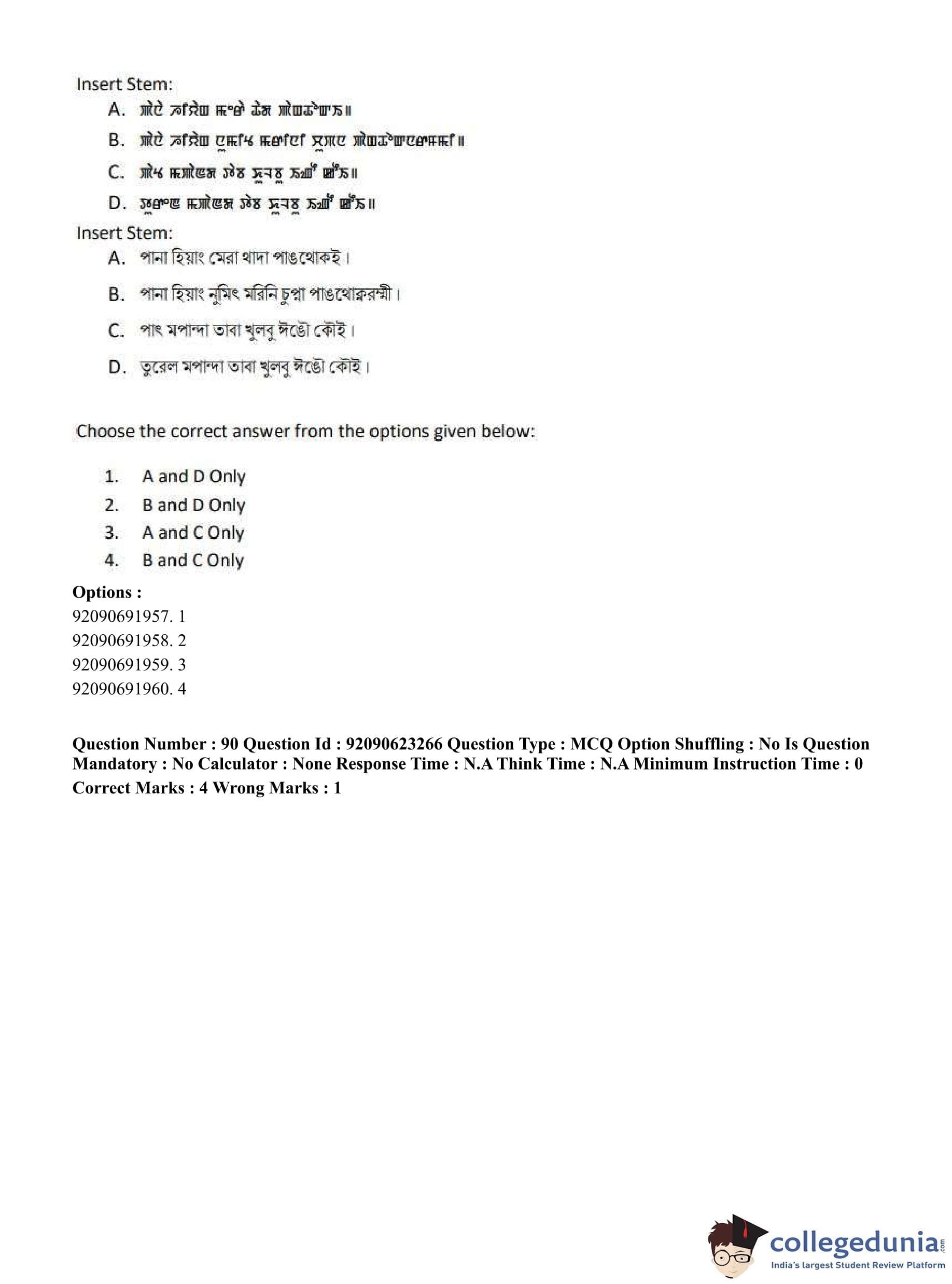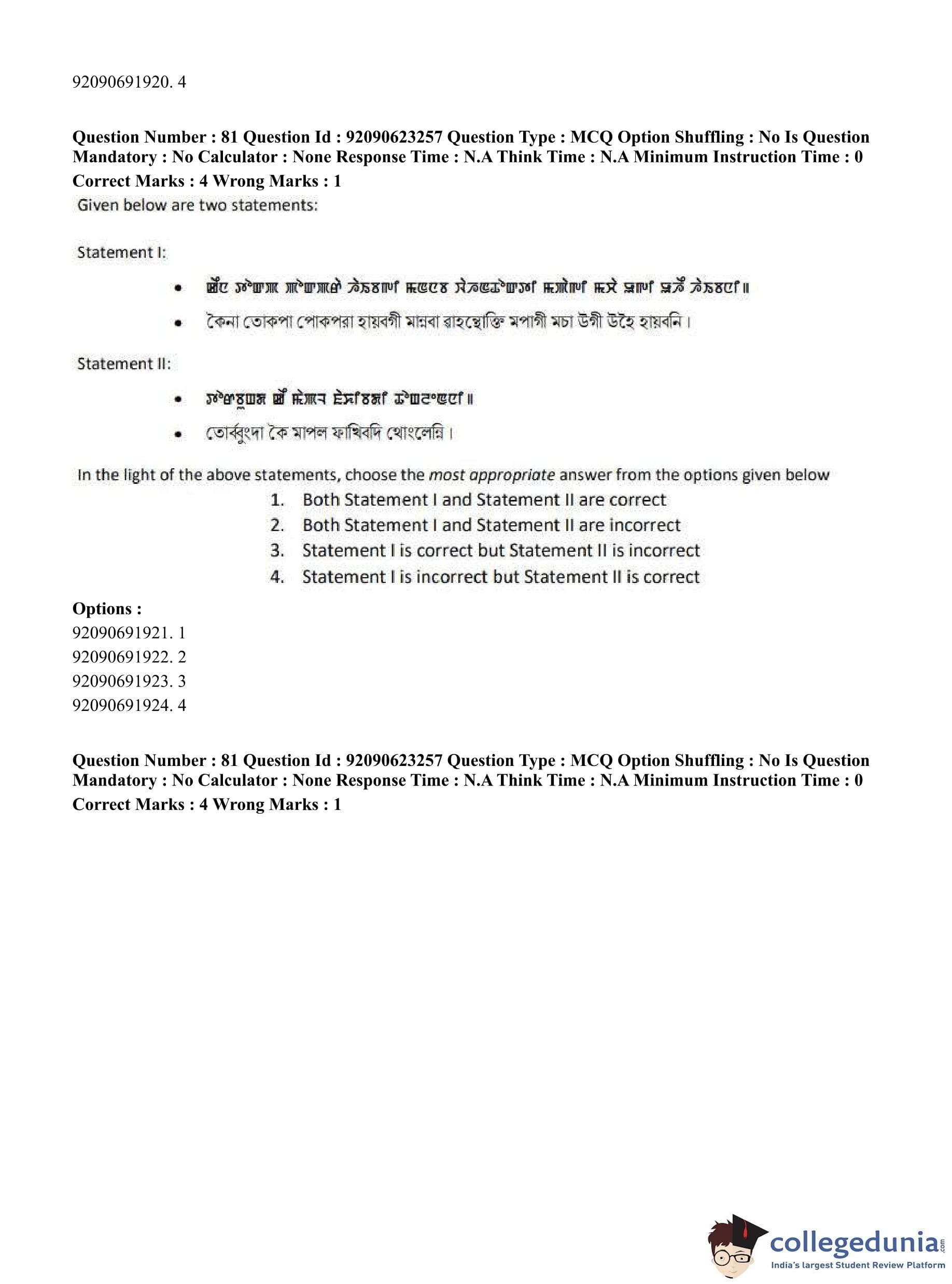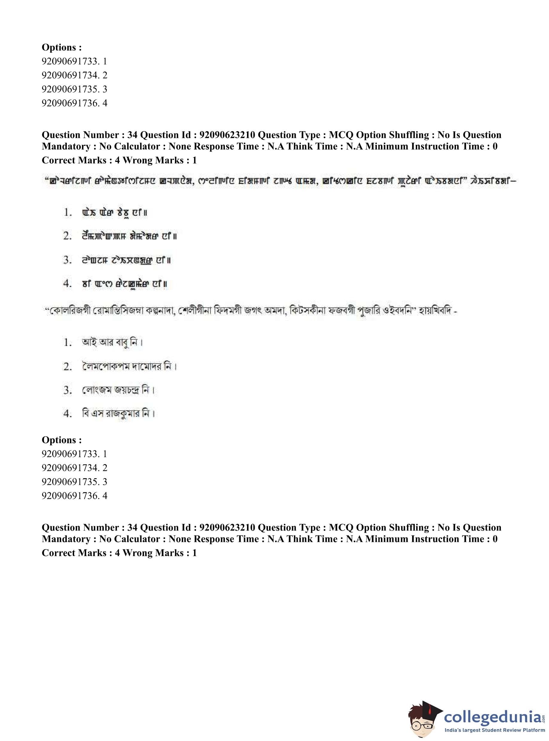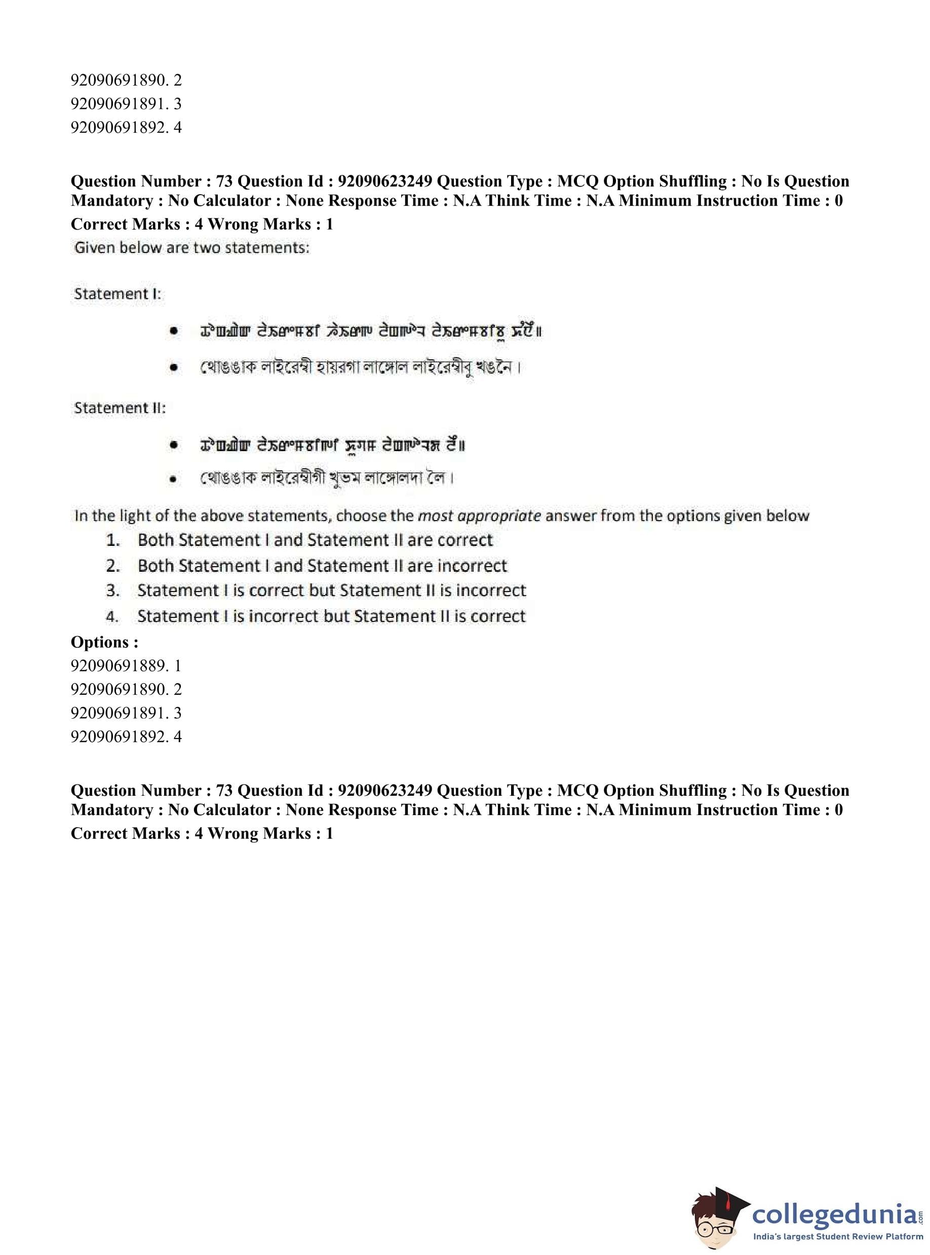 CUET PG 2023 Manipuri Question Paper in English (June 24 - Shift 2)