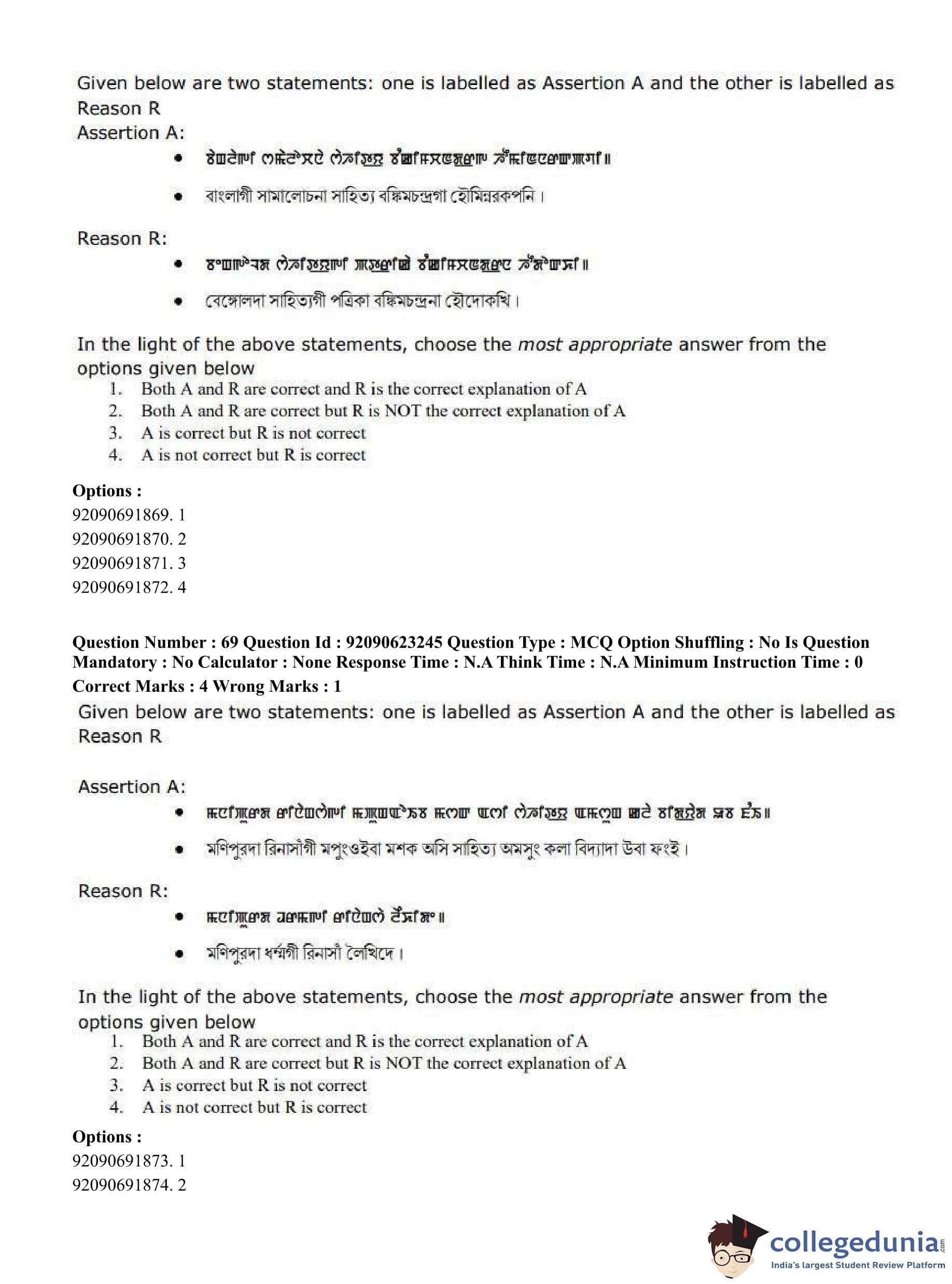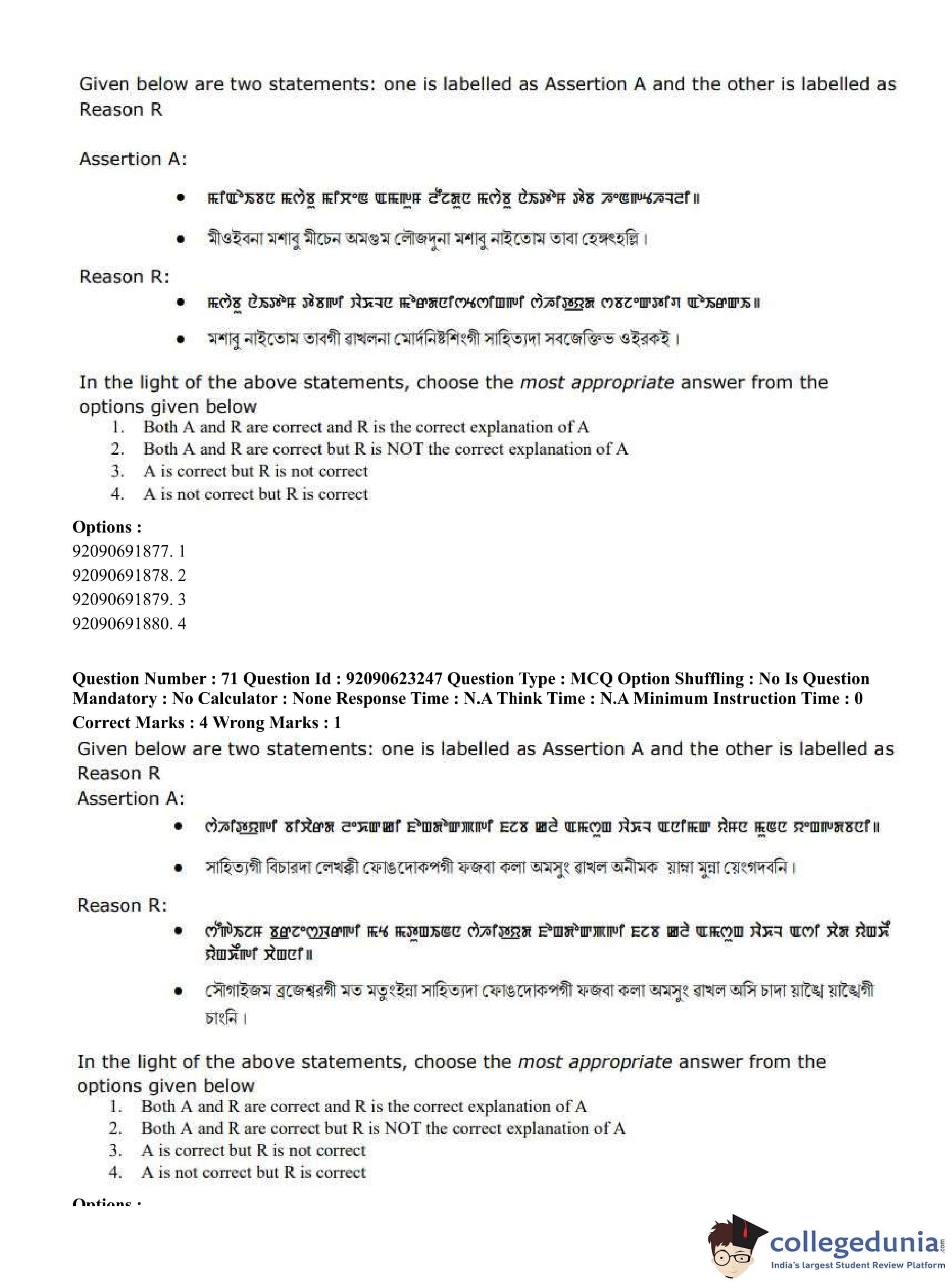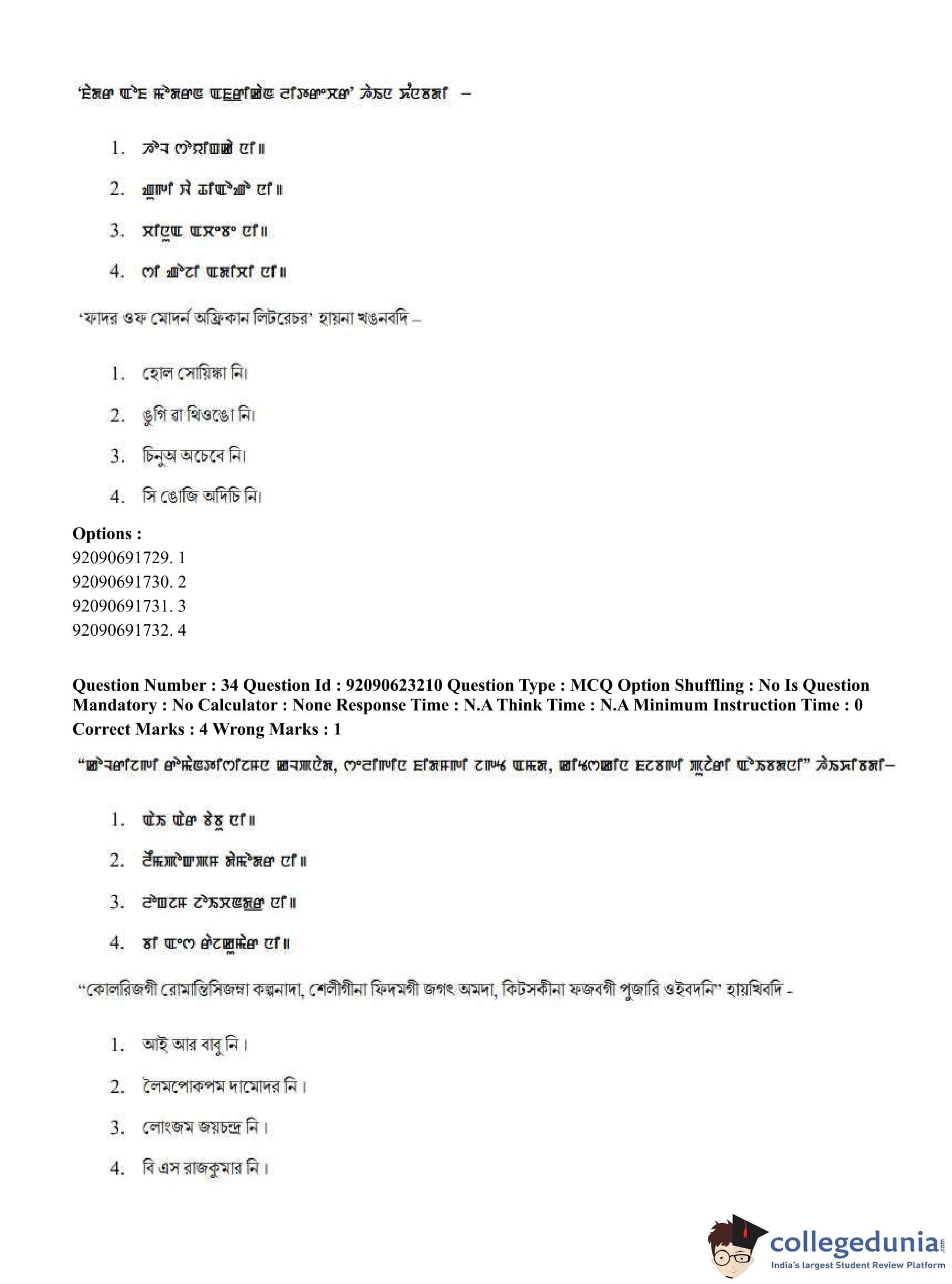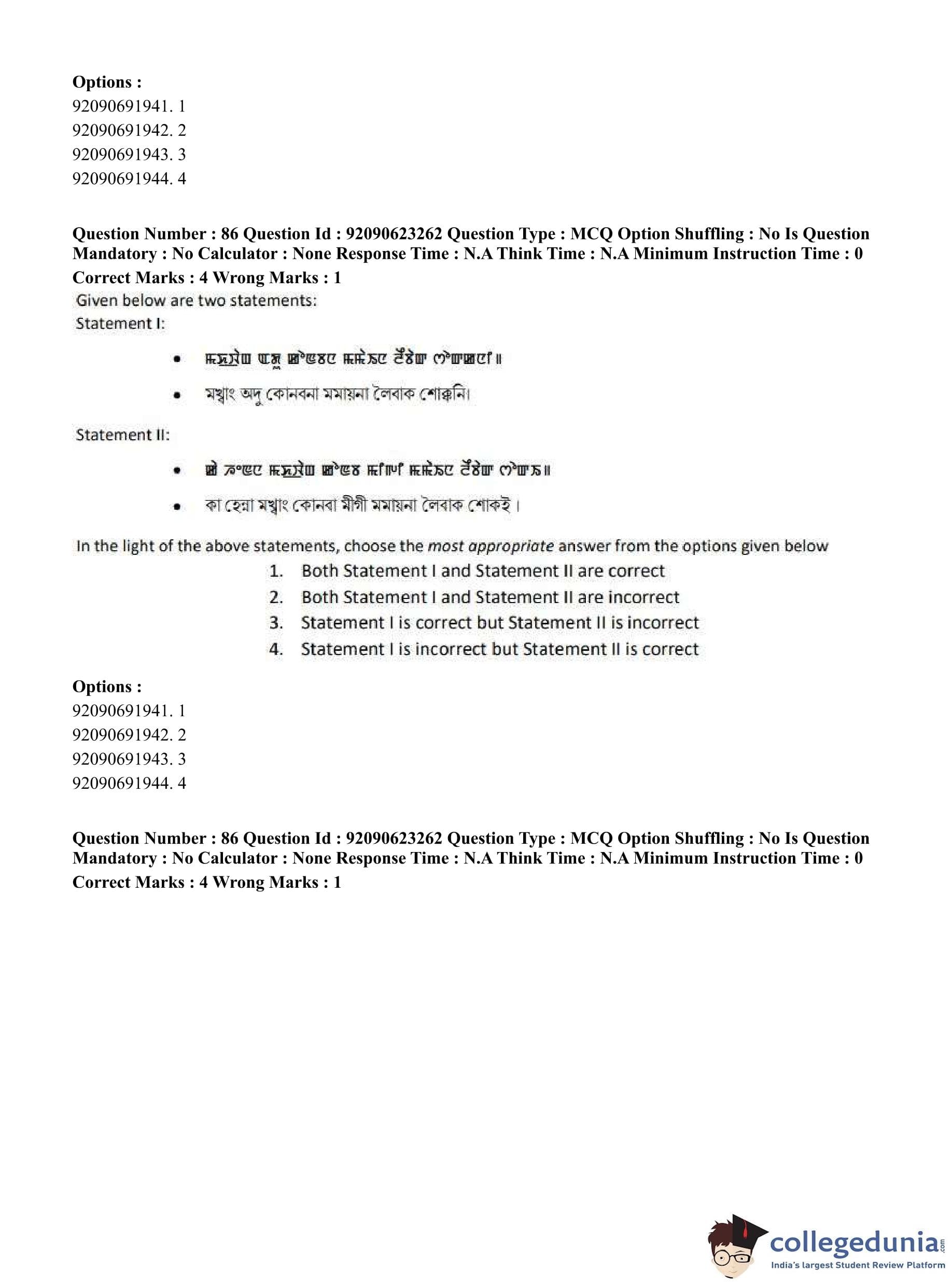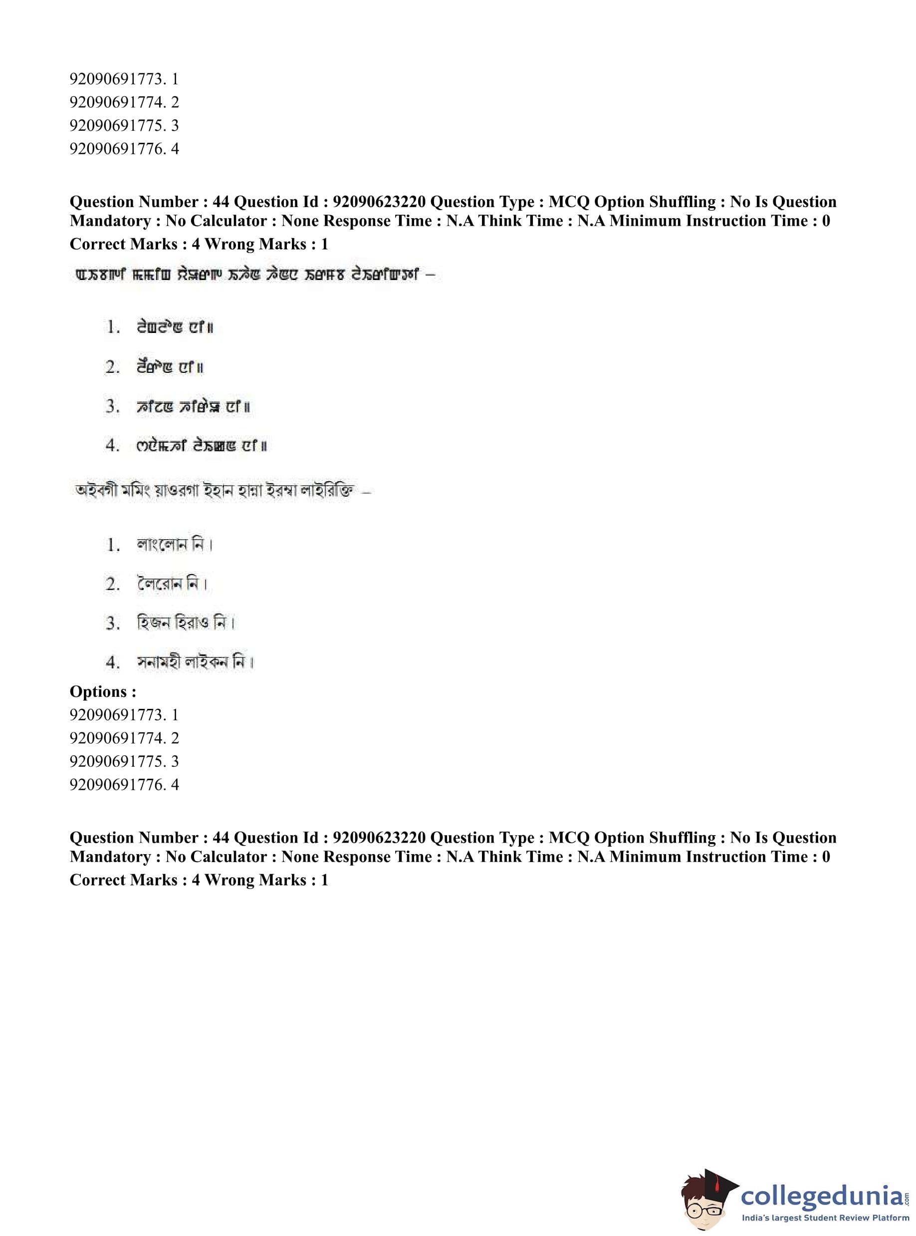 CUET PG 2023 Manipuri Question Paper in English (June 24 - Shift 2)