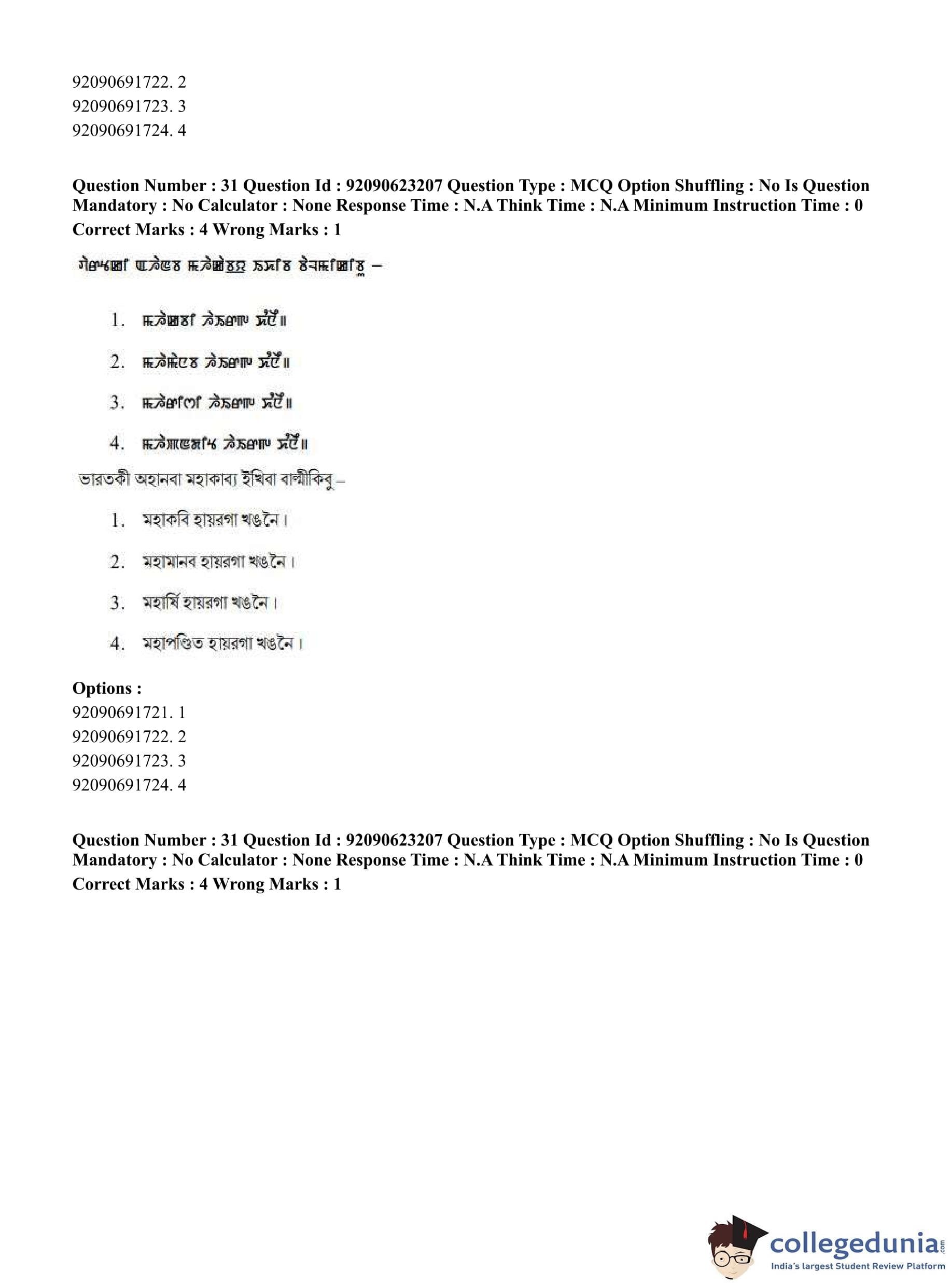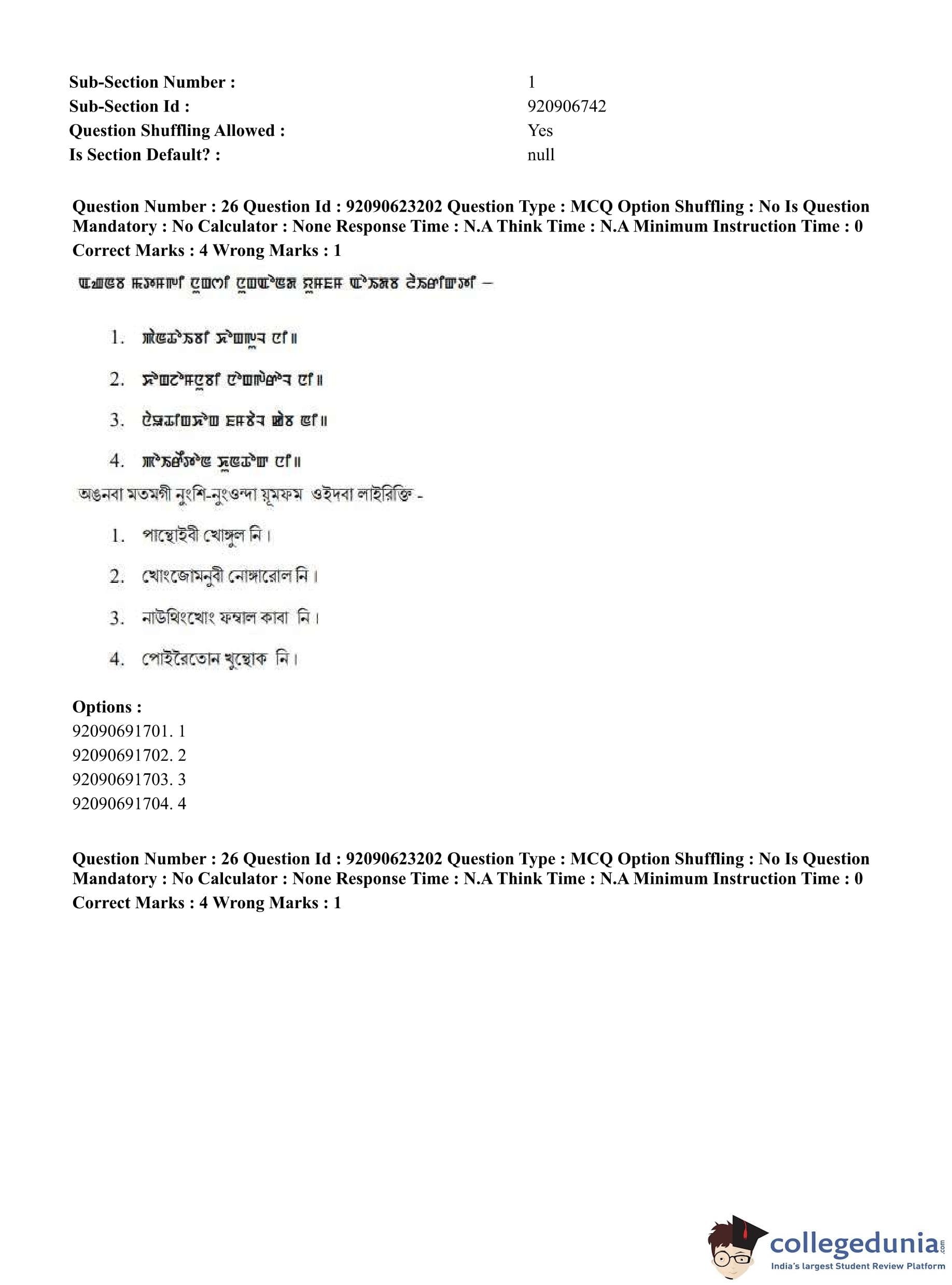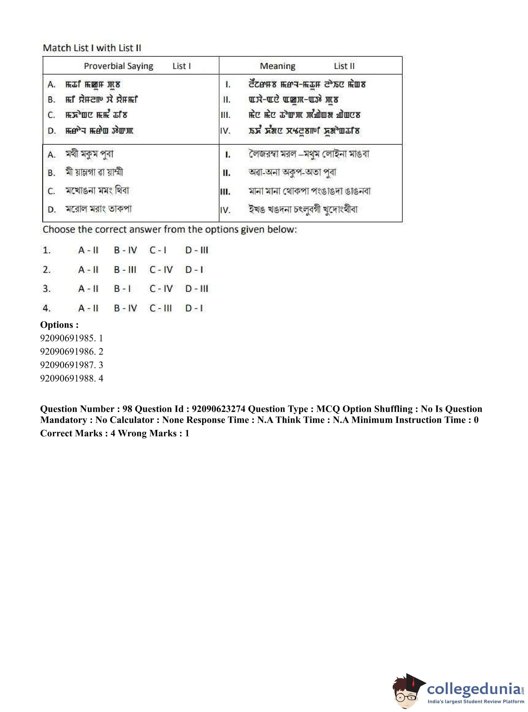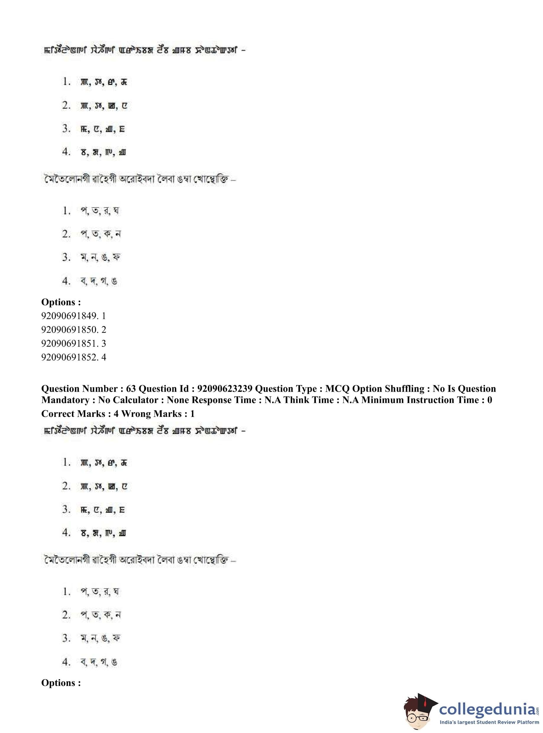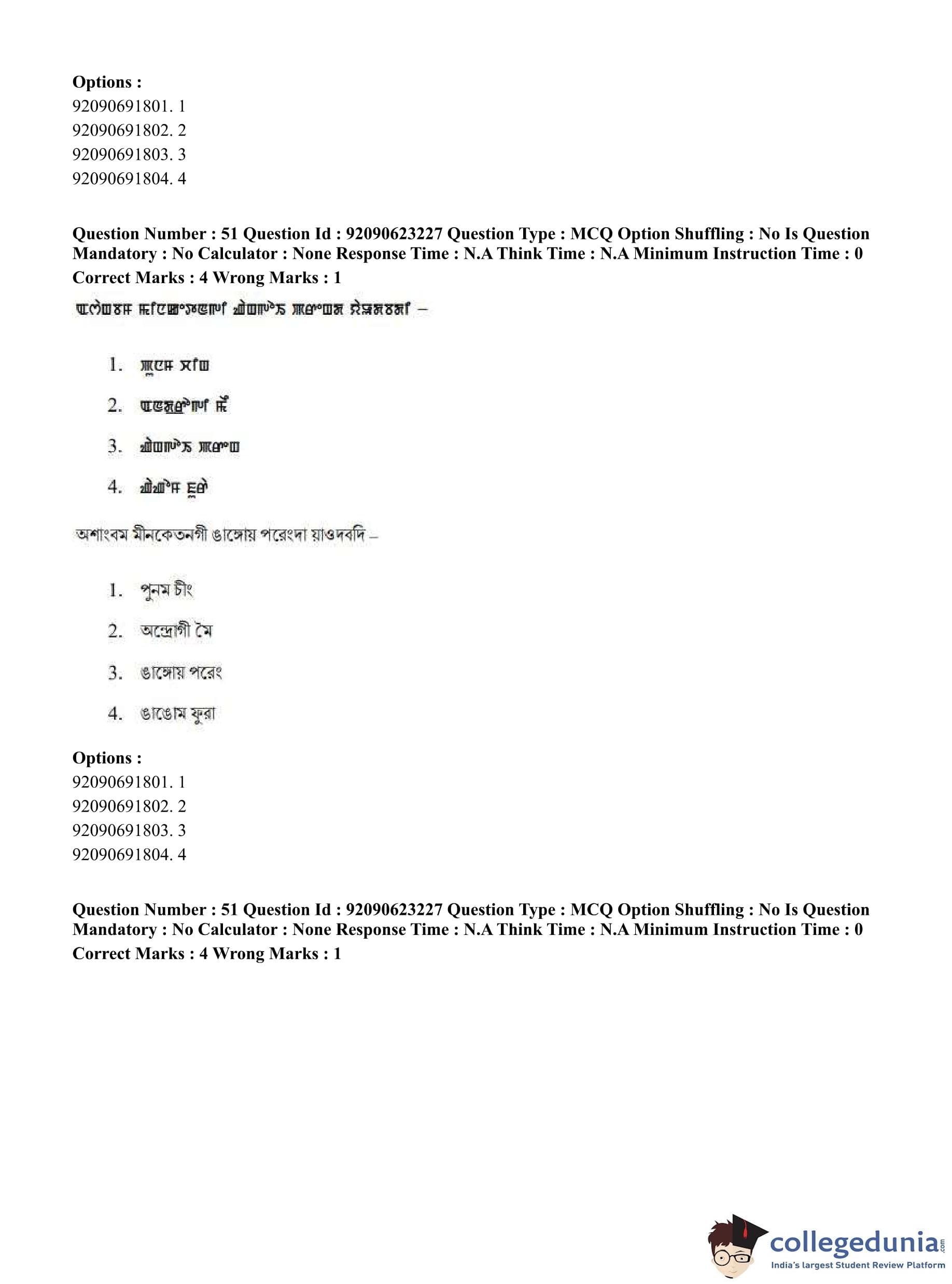 CUET PG 2023 Manipuri Question Paper in English (June 24 - Shift 2)