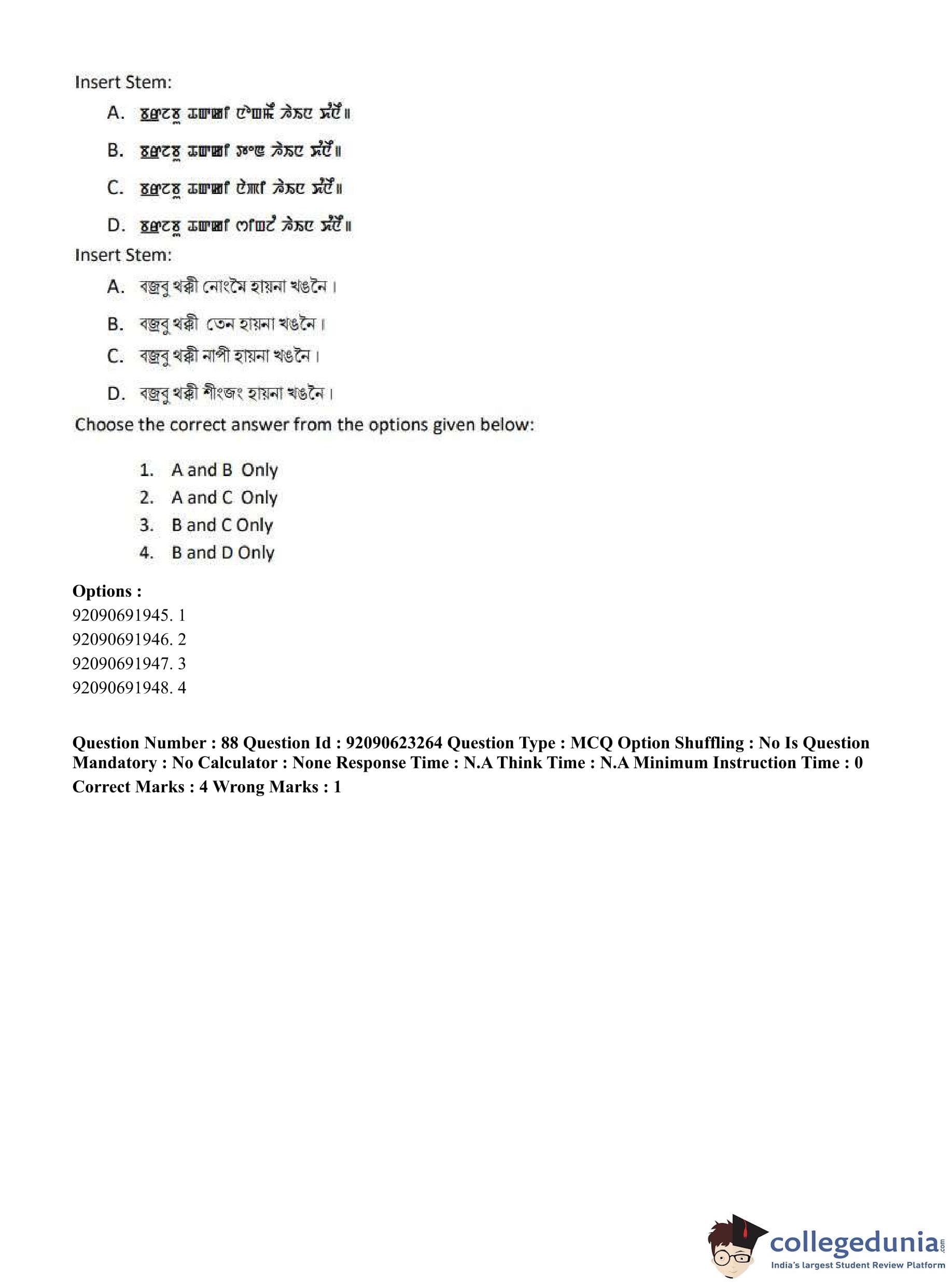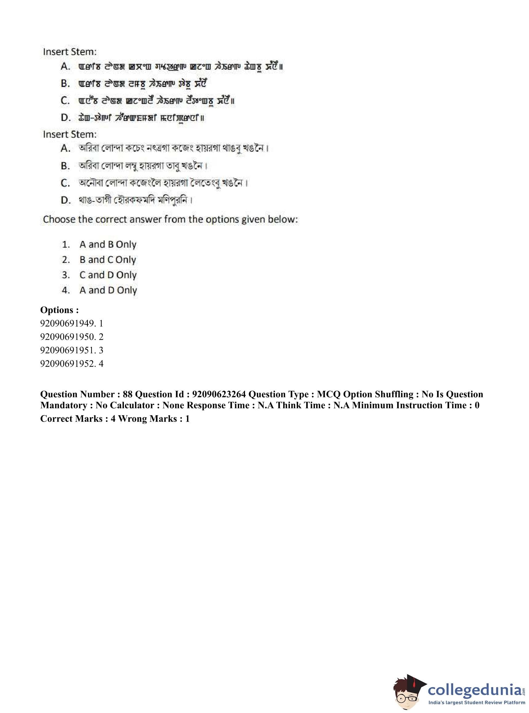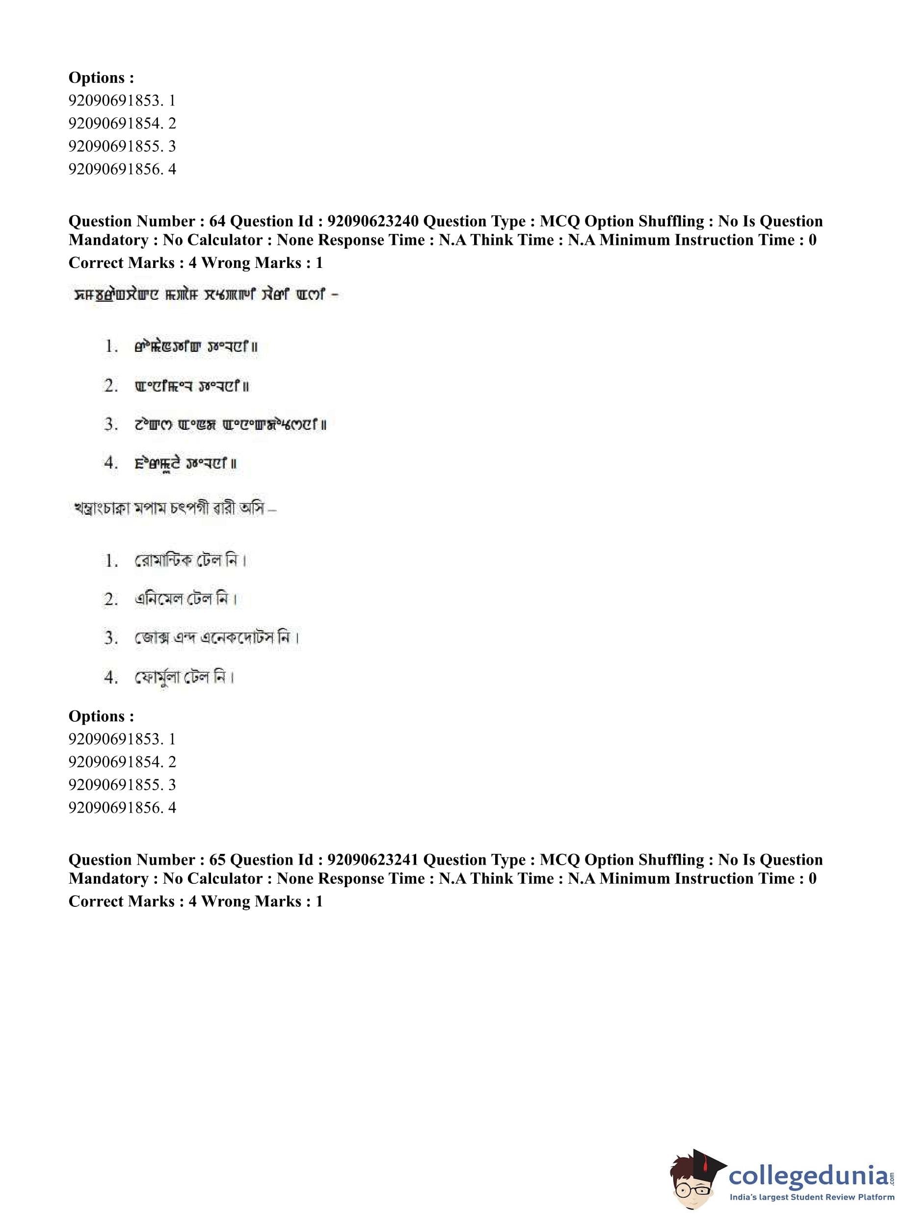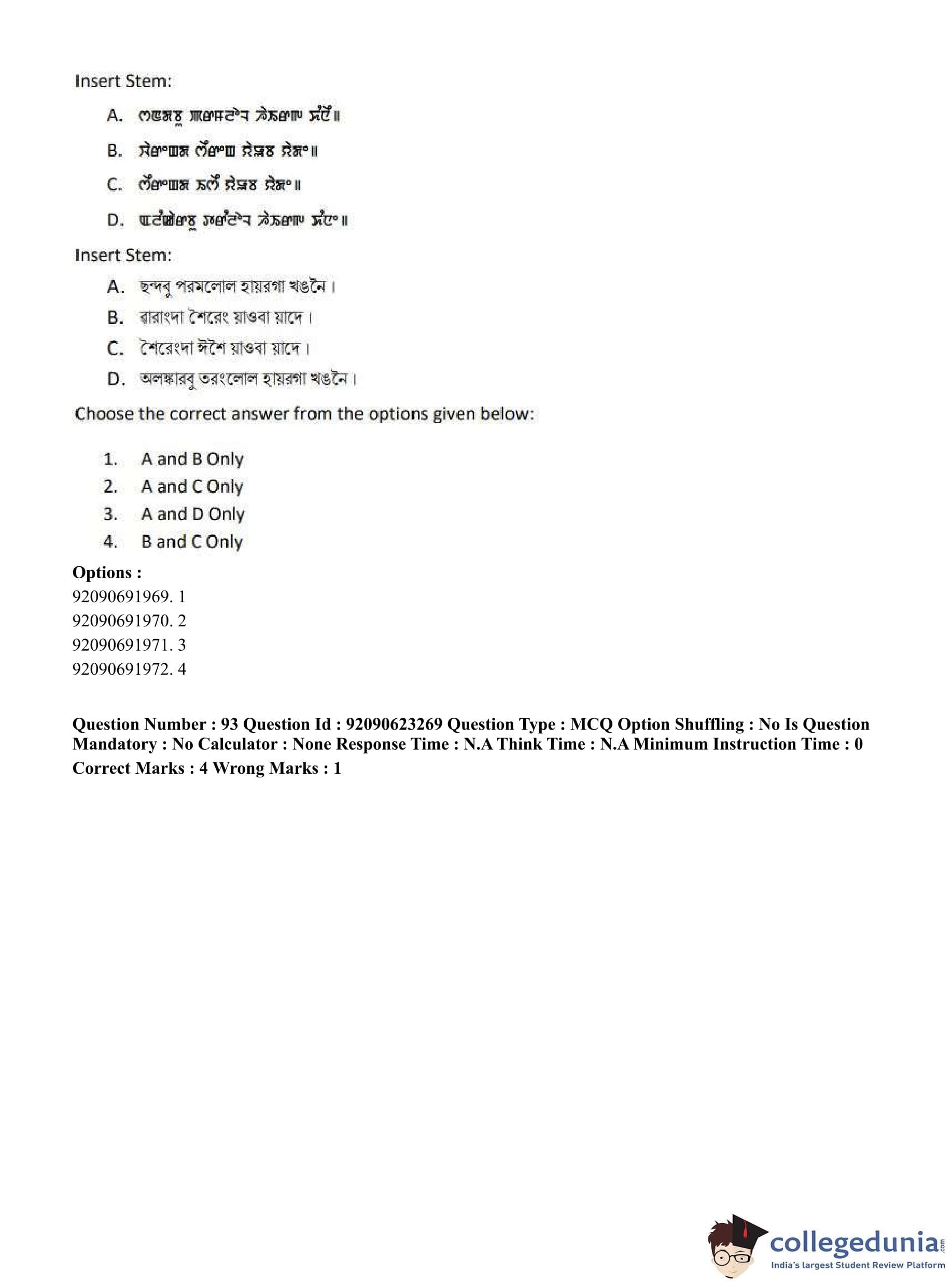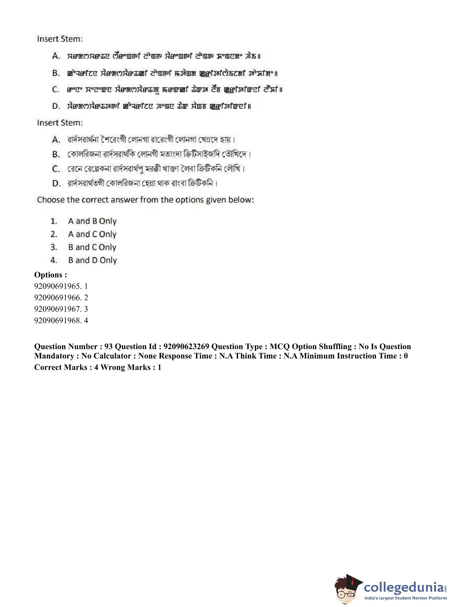 CUET PG 2023 Manipuri Question Paper in English (June 24 - Shift 2)