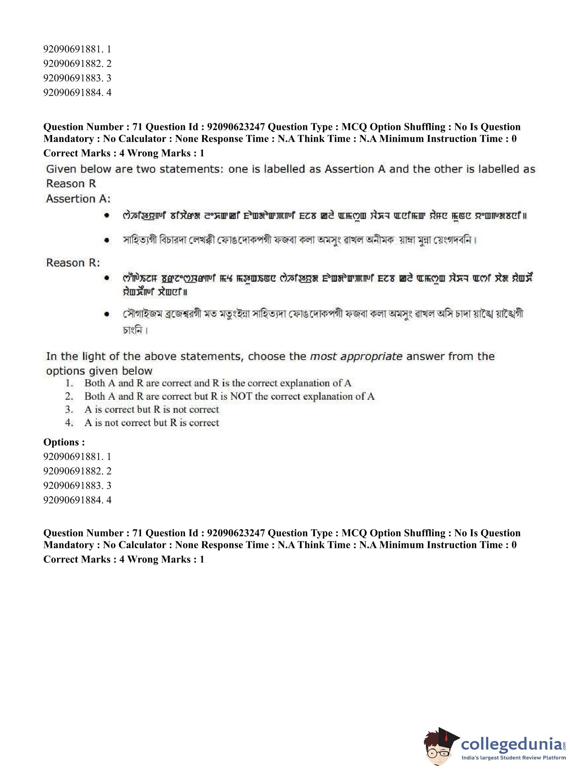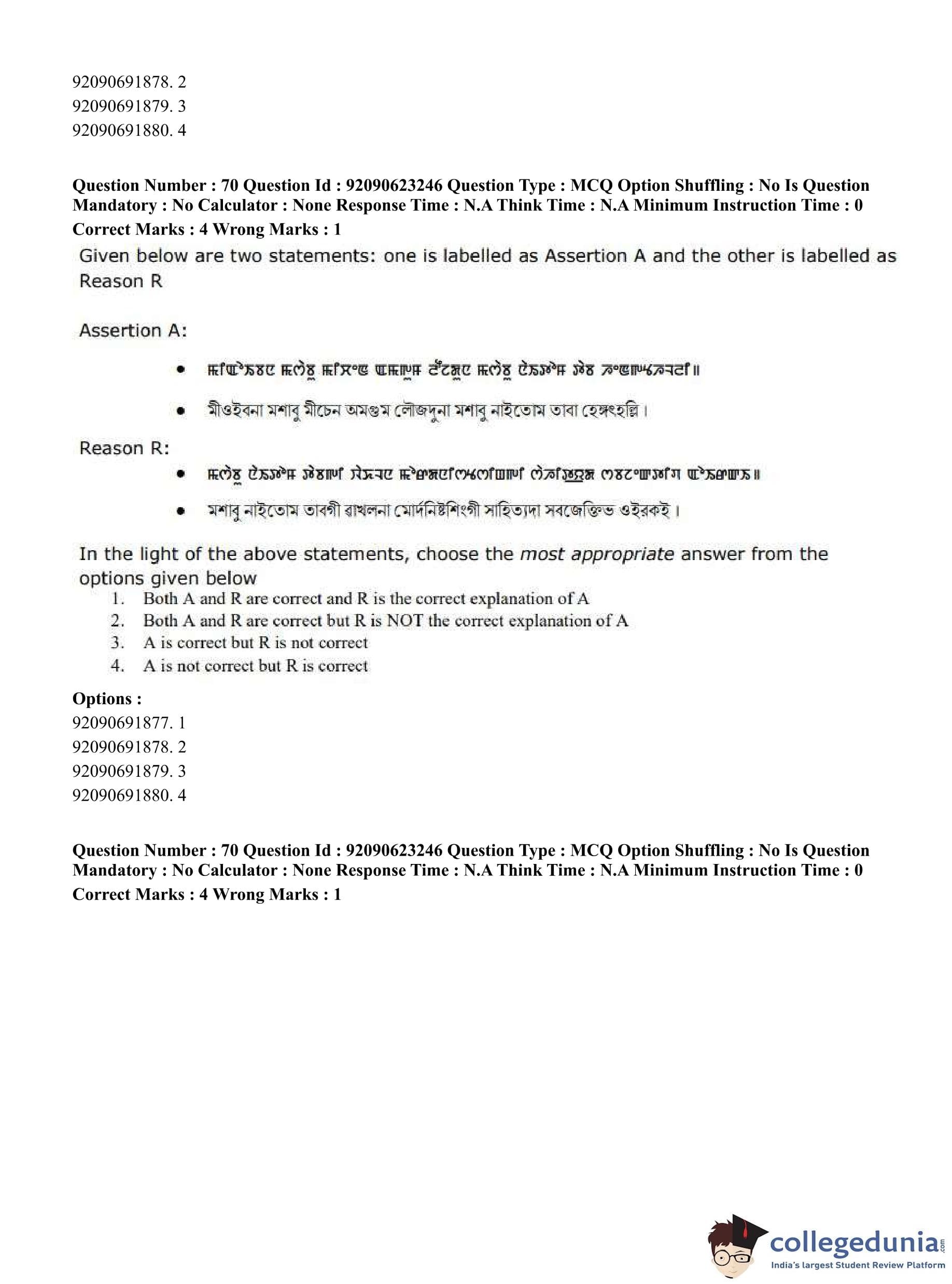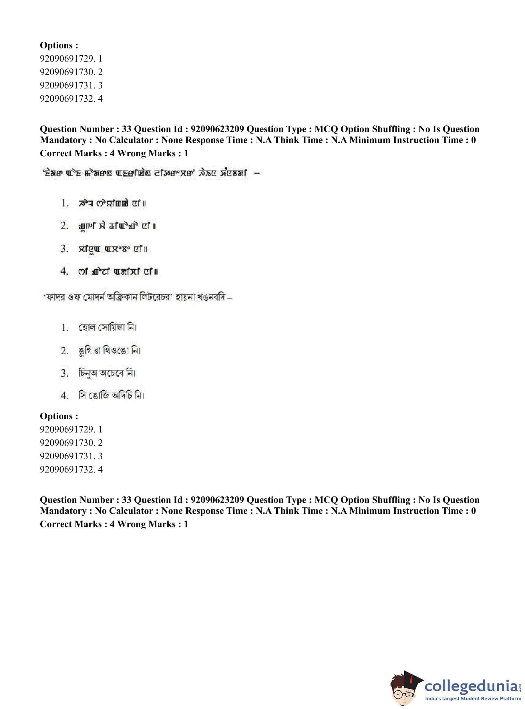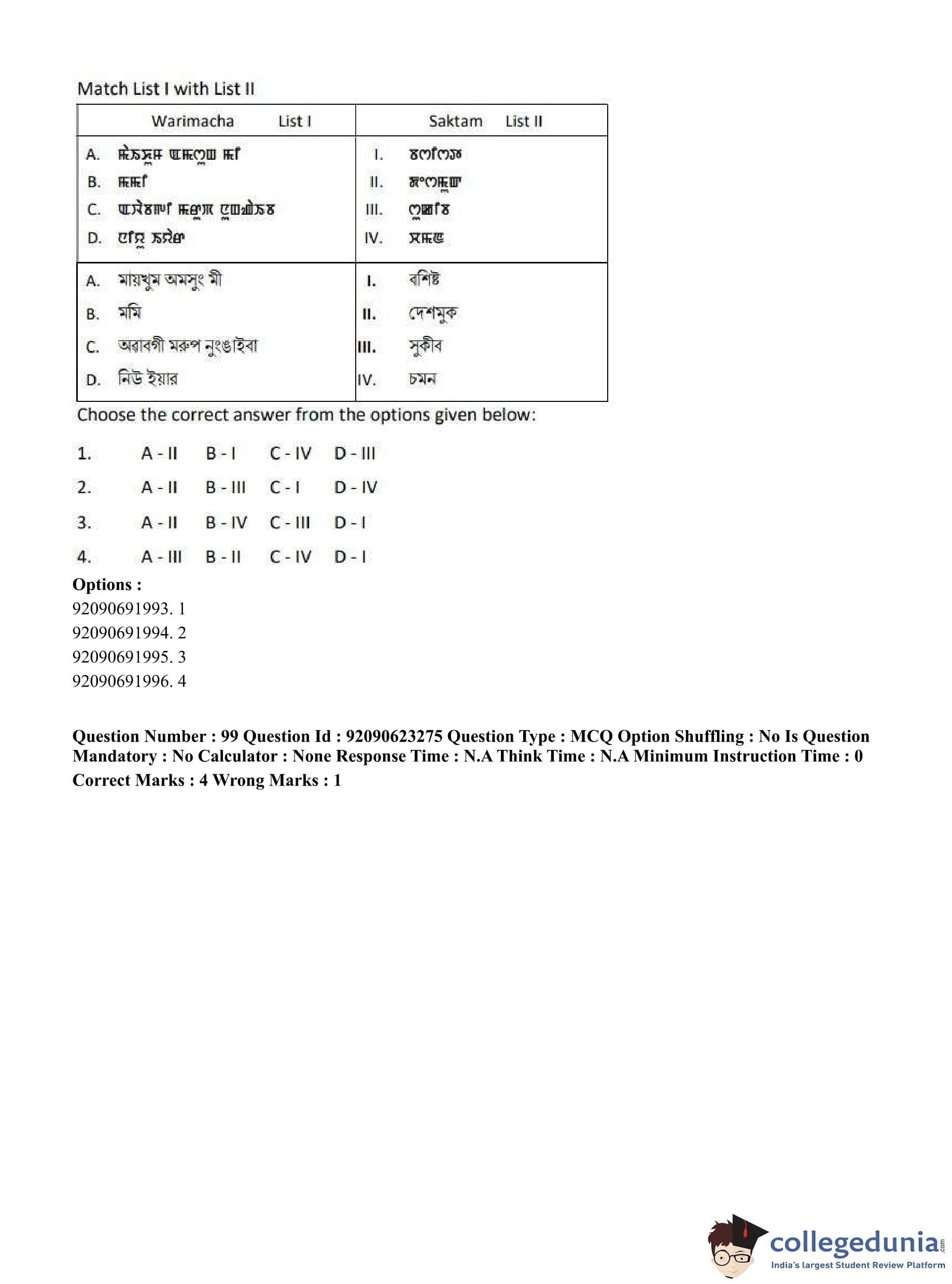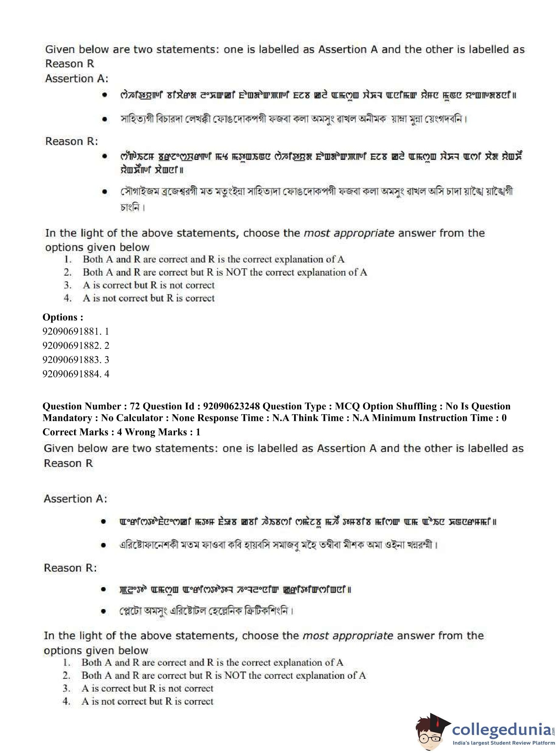 CUET PG 2023 Manipuri Question Paper in English (June 24 - Shift 2)
