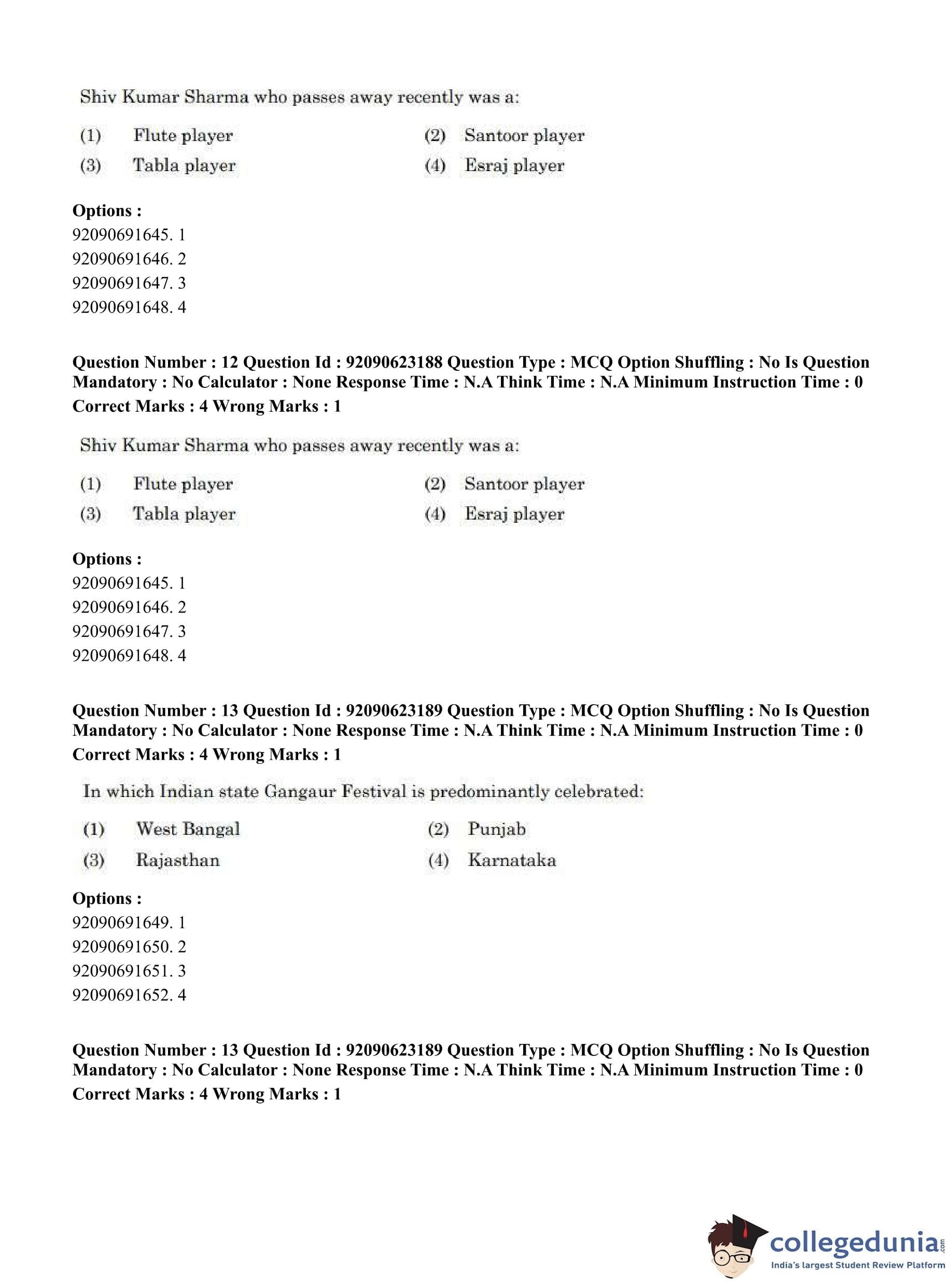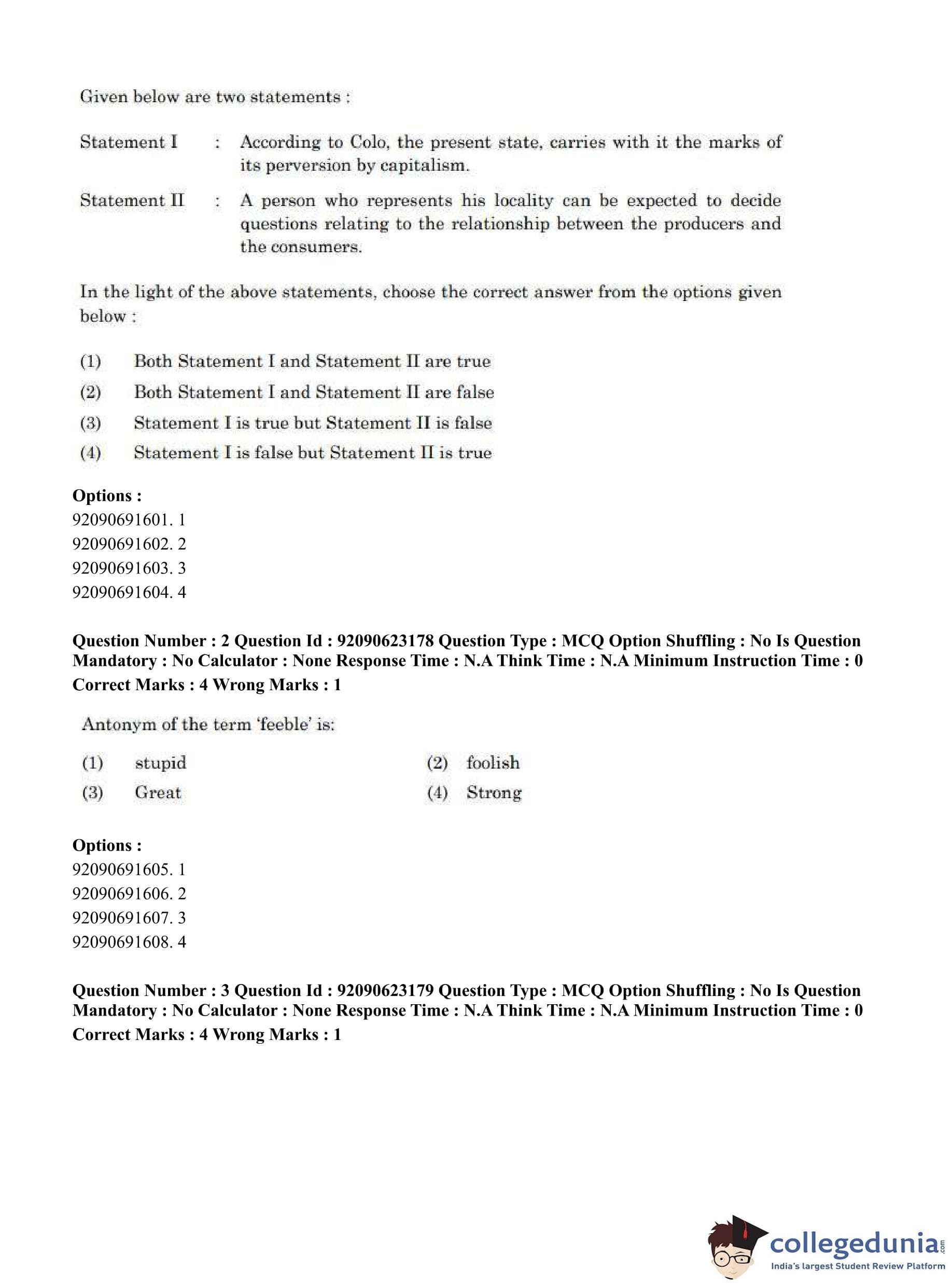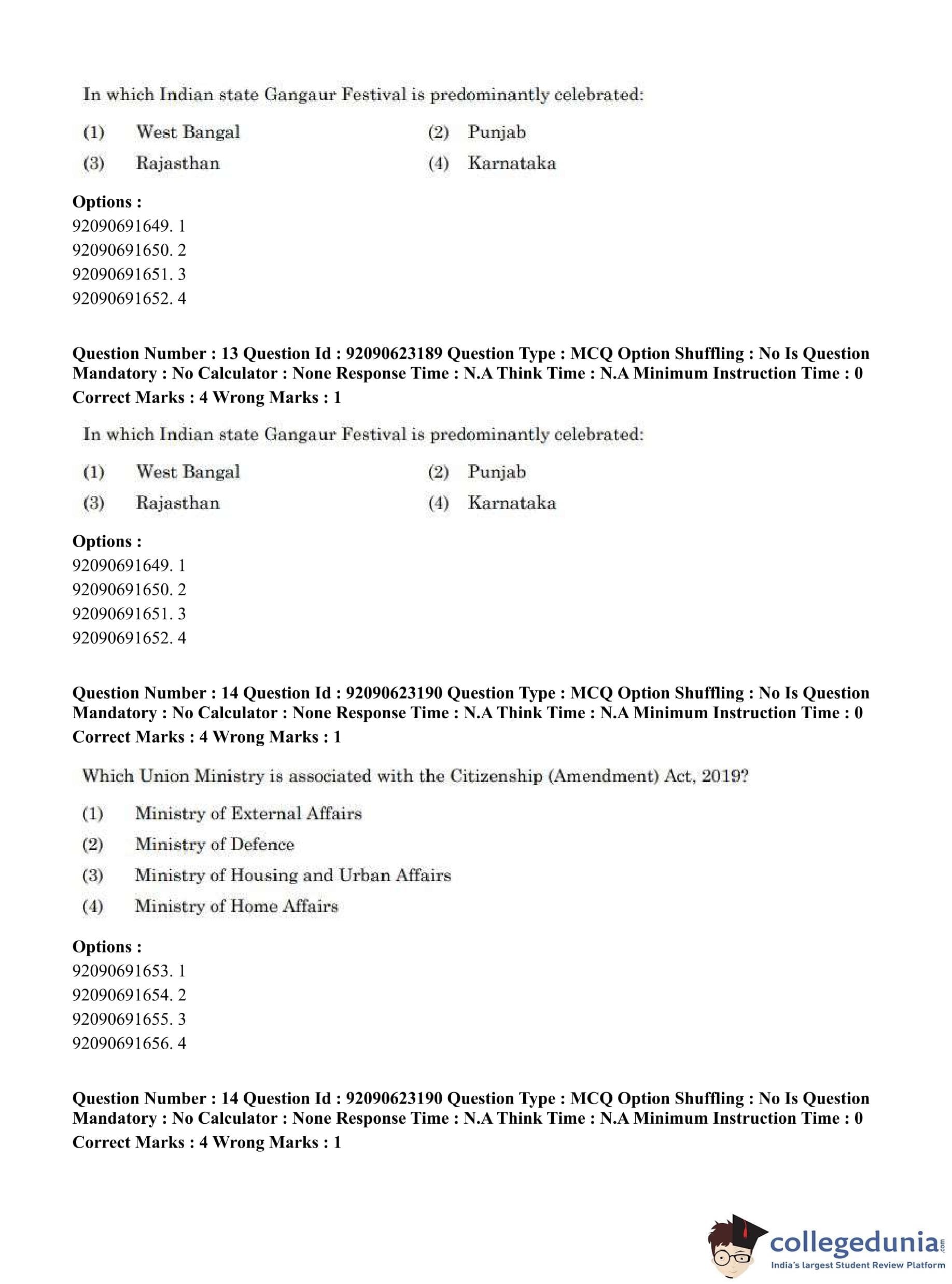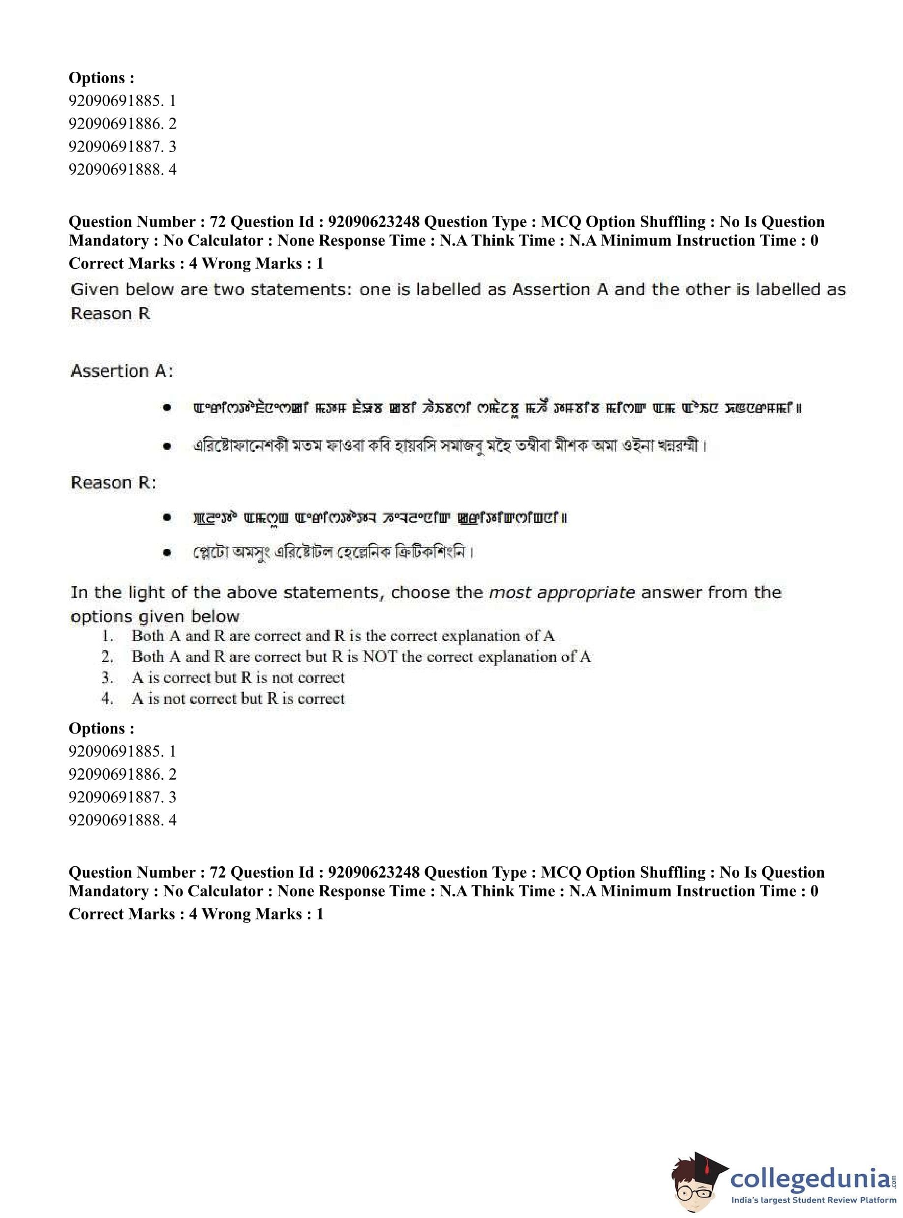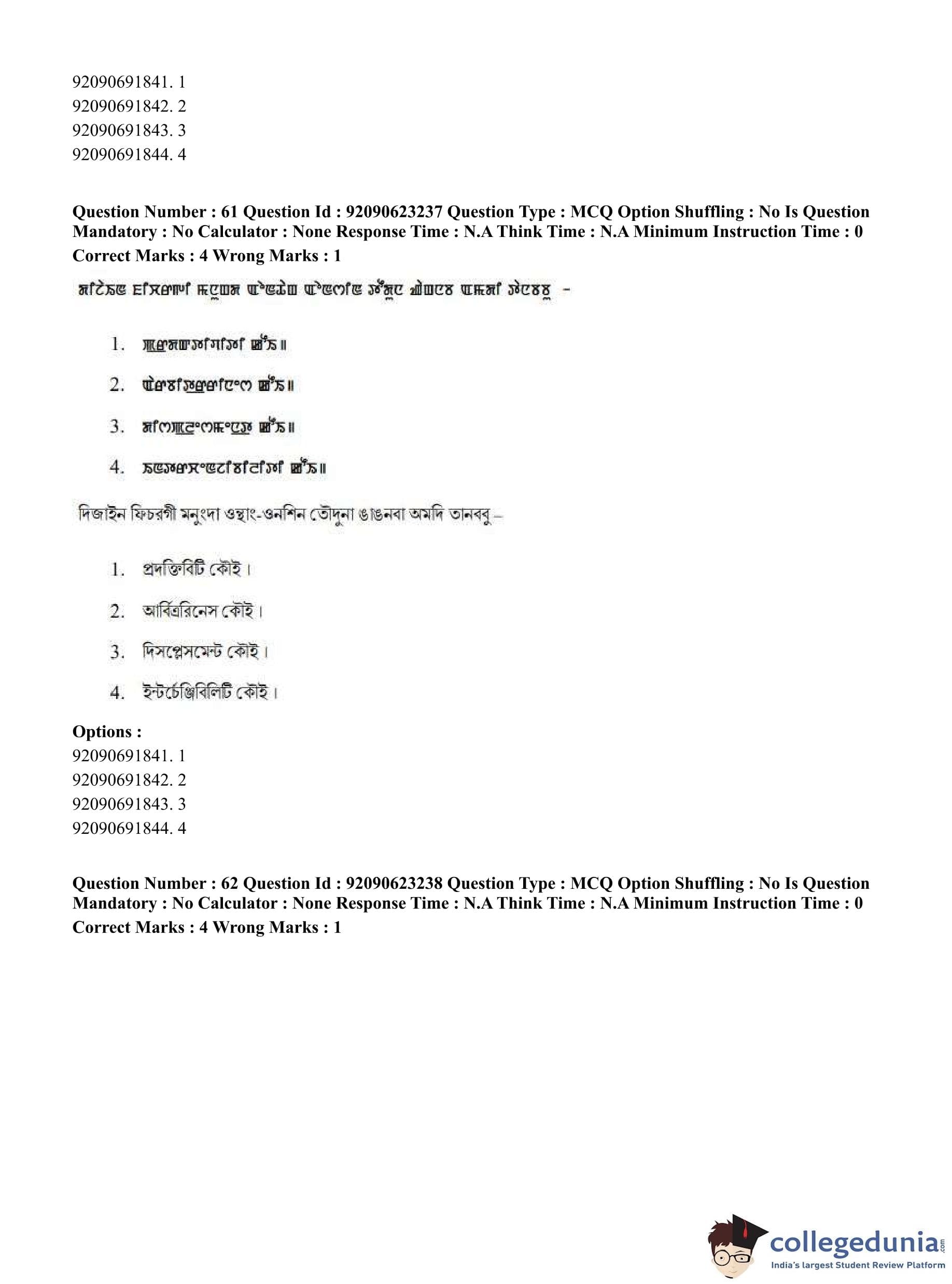CUET PG 2023 Manipuri Question Paper in English (June 24 - Shift 2)