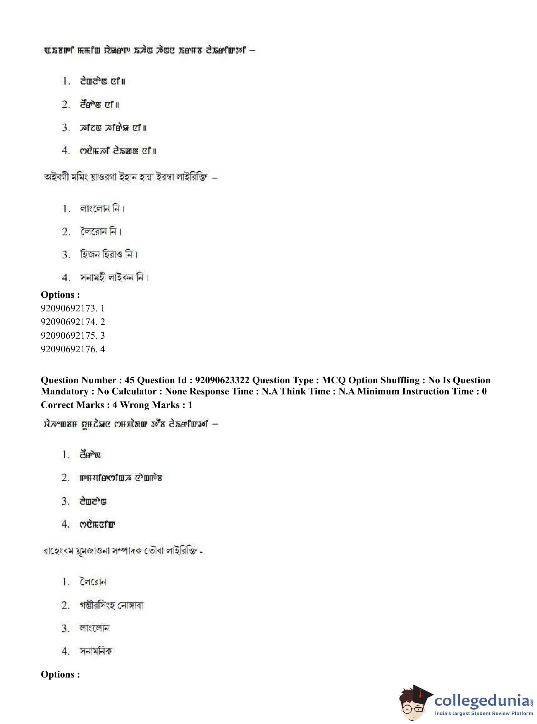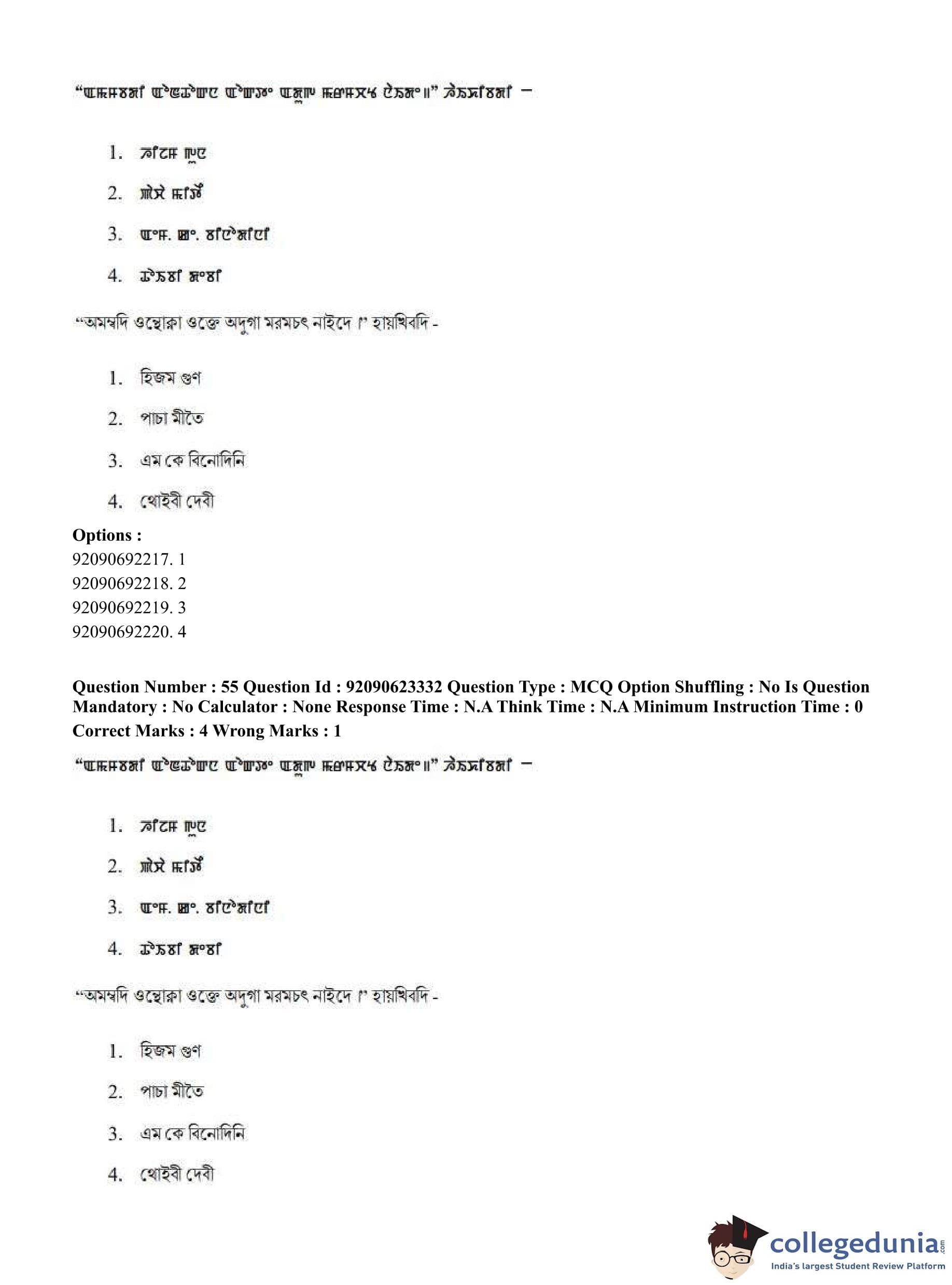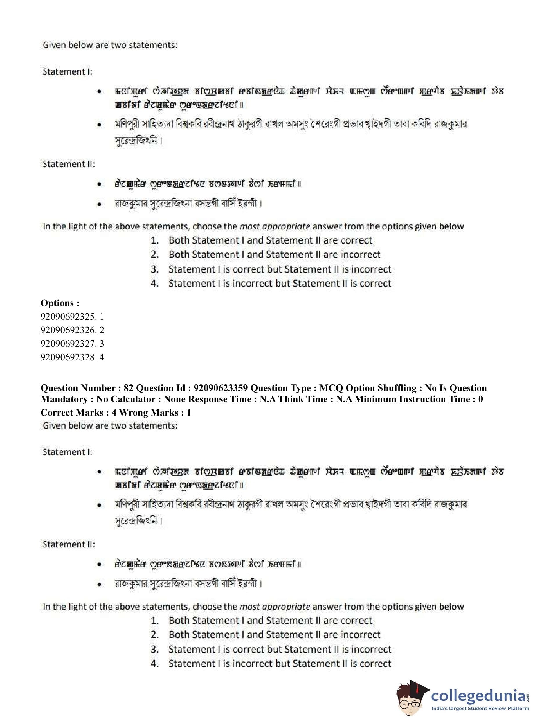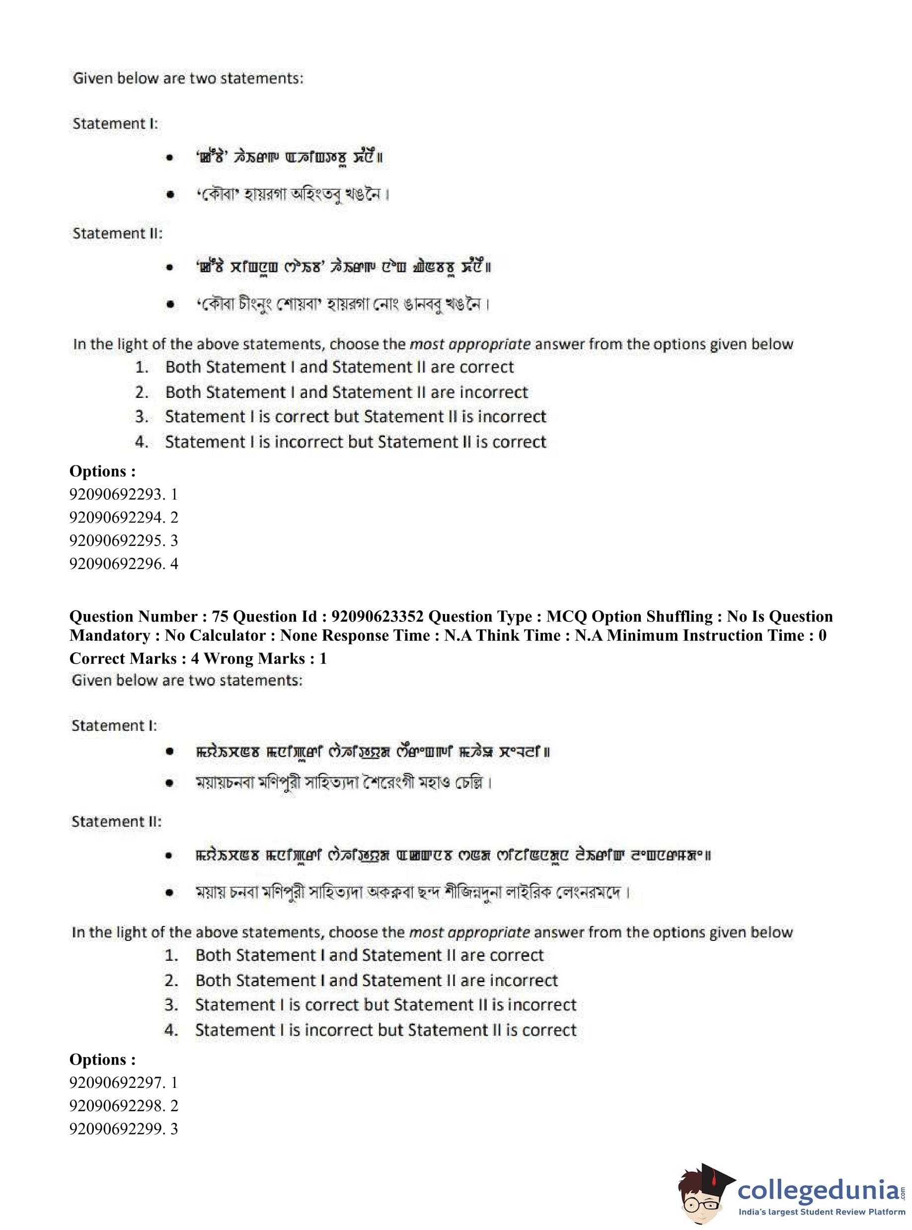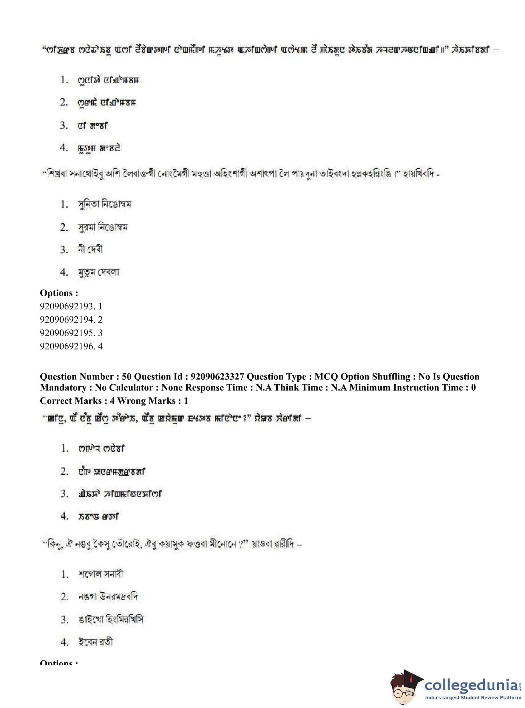 CUET PG 2023 Manipuri Question Paper in Hindi (June 24 - Shift 2)