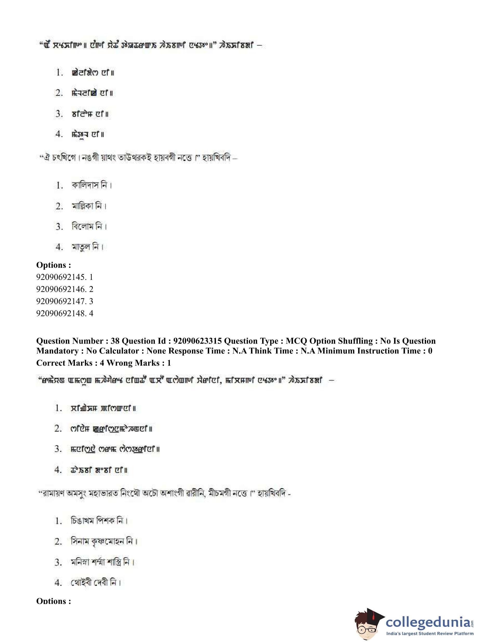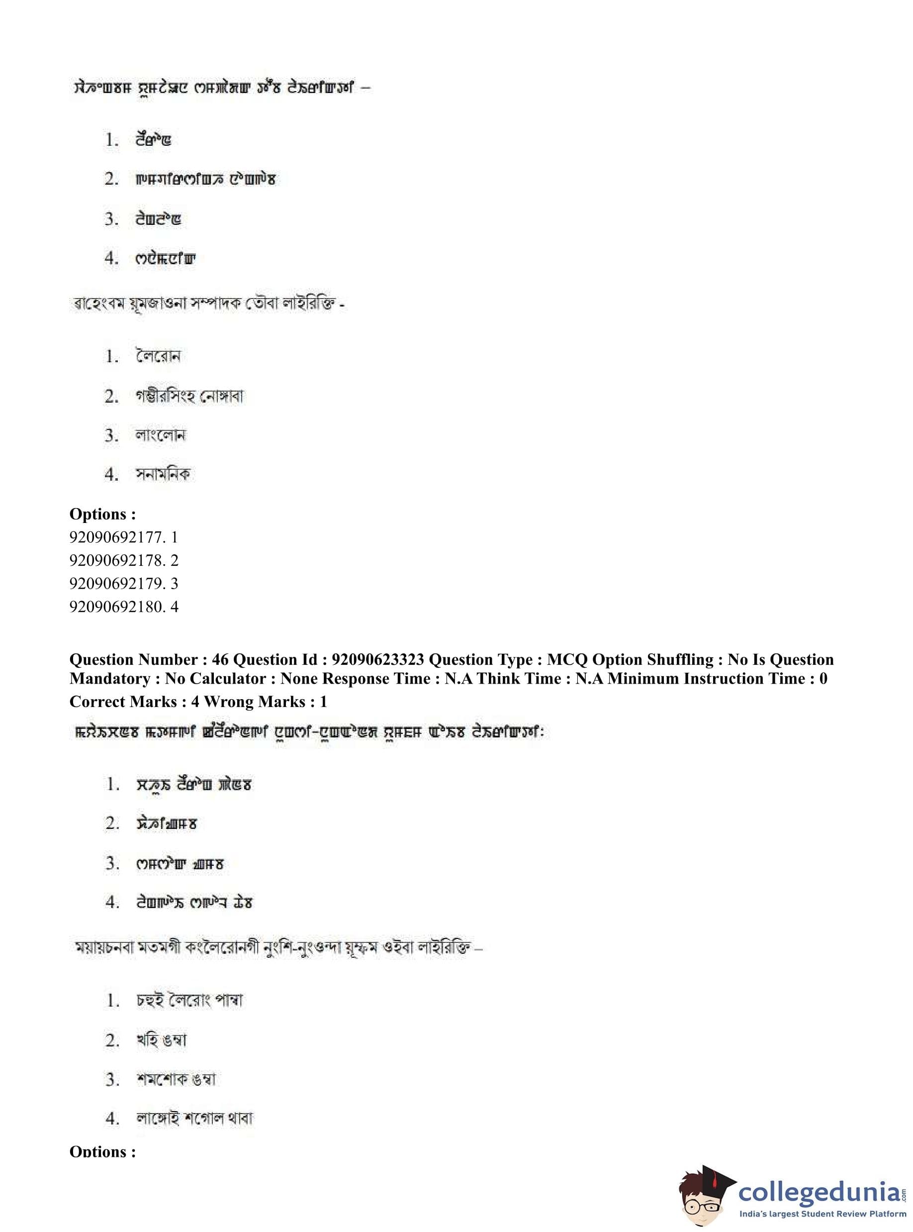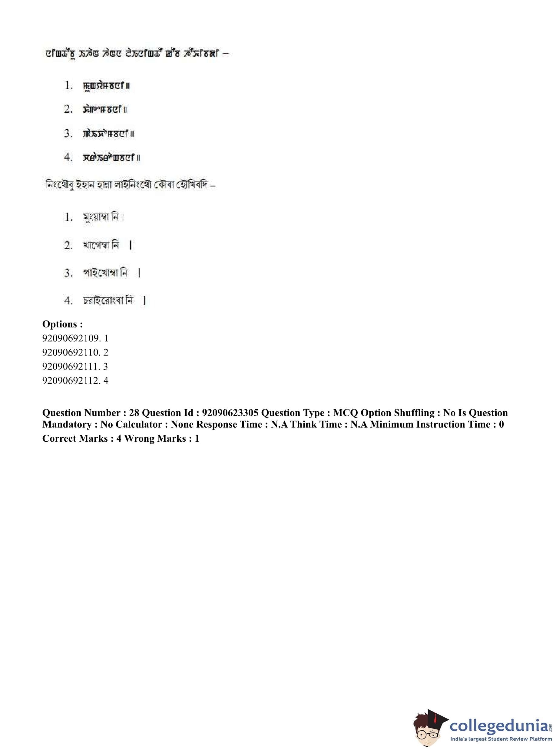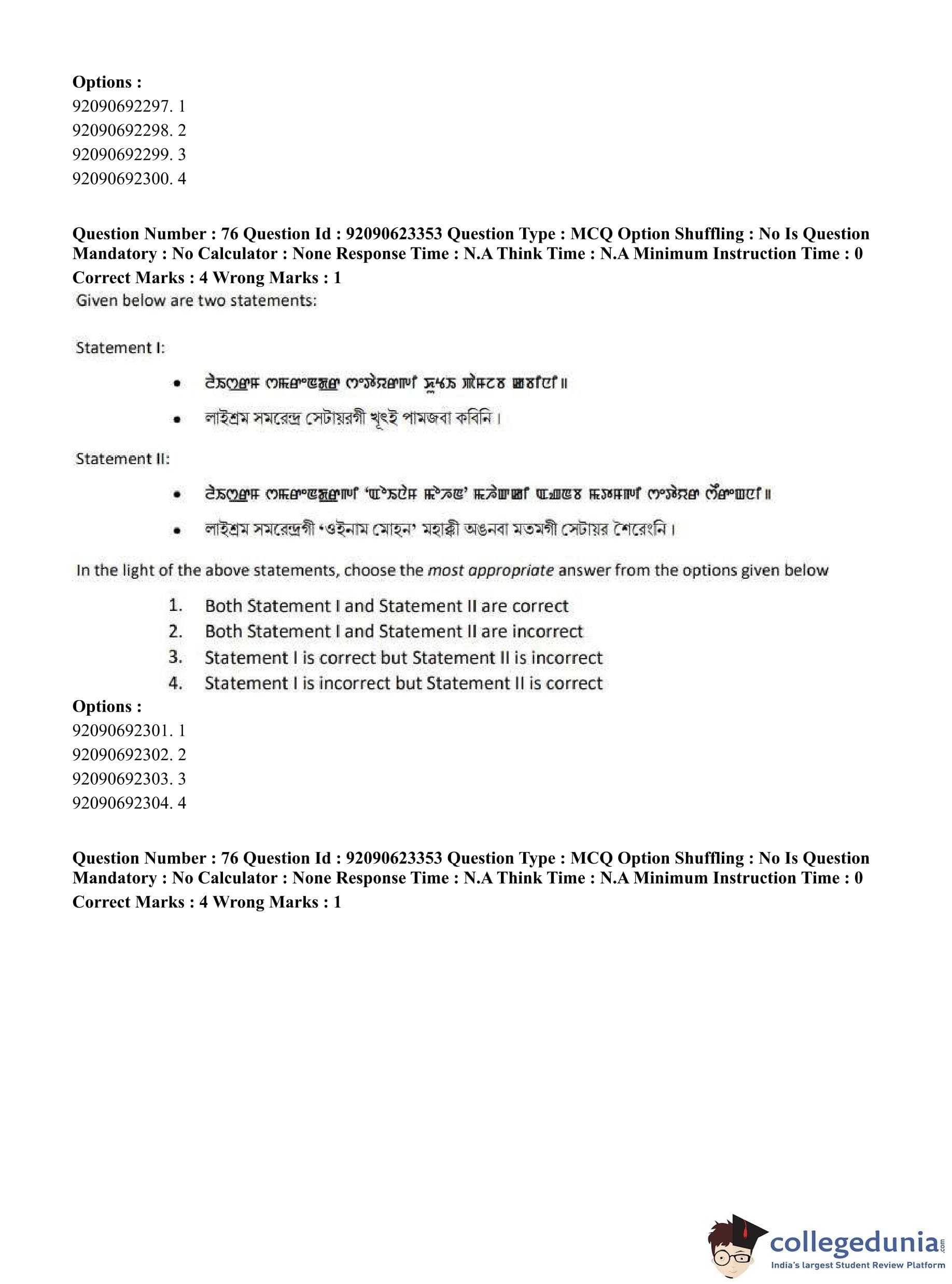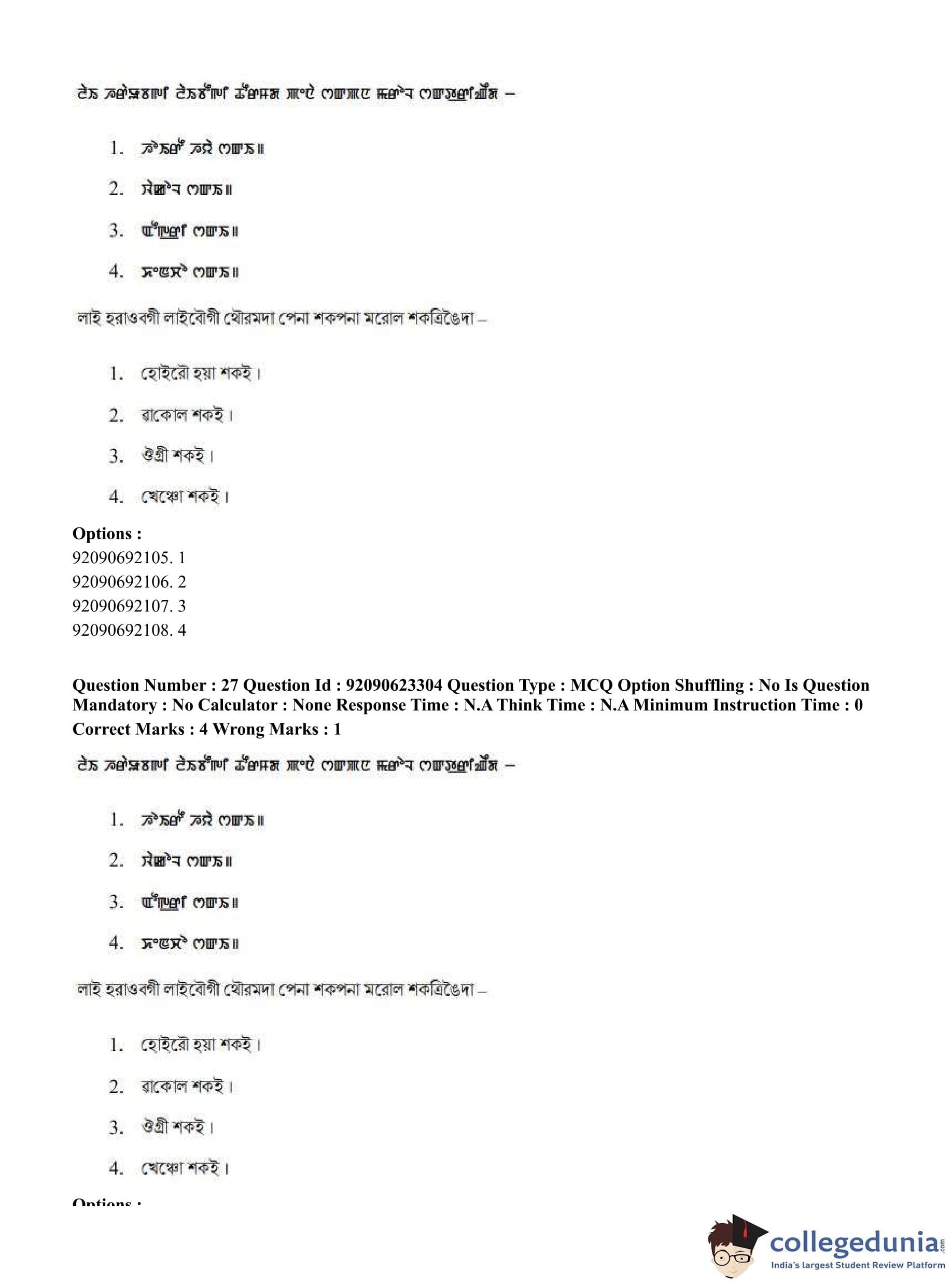 CUET PG 2023 Manipuri Question Paper in Hindi (June 24 - Shift 2)
