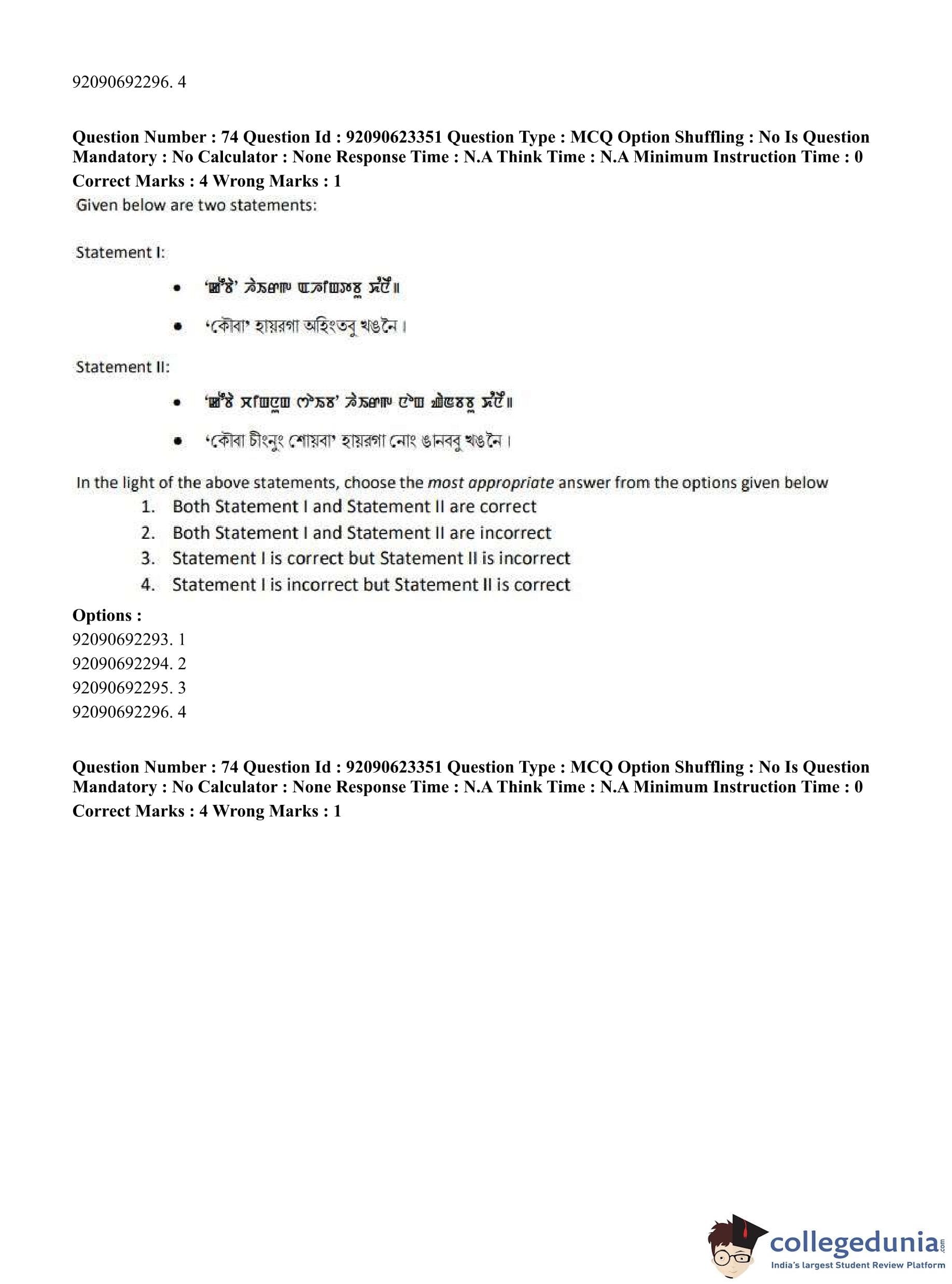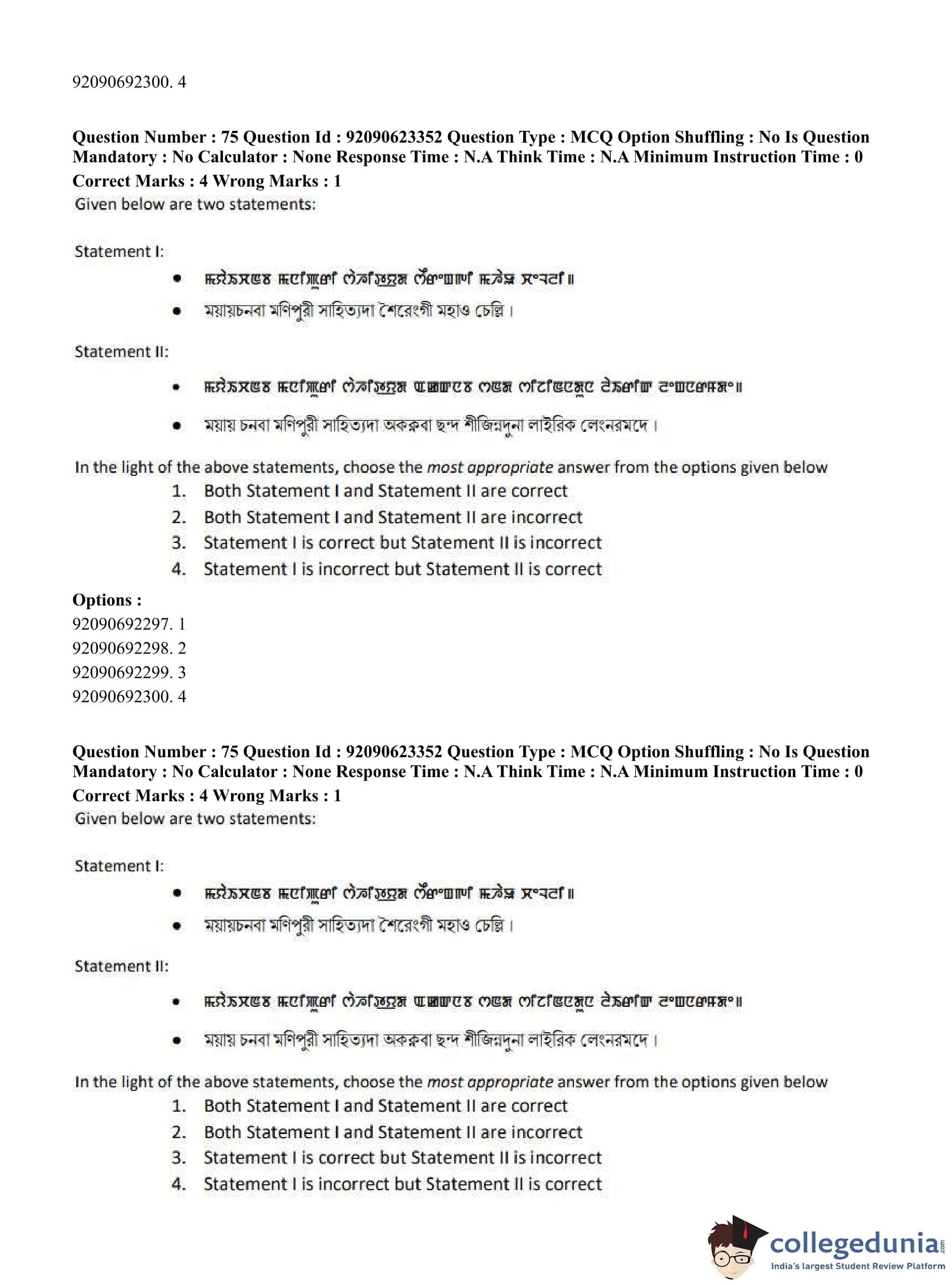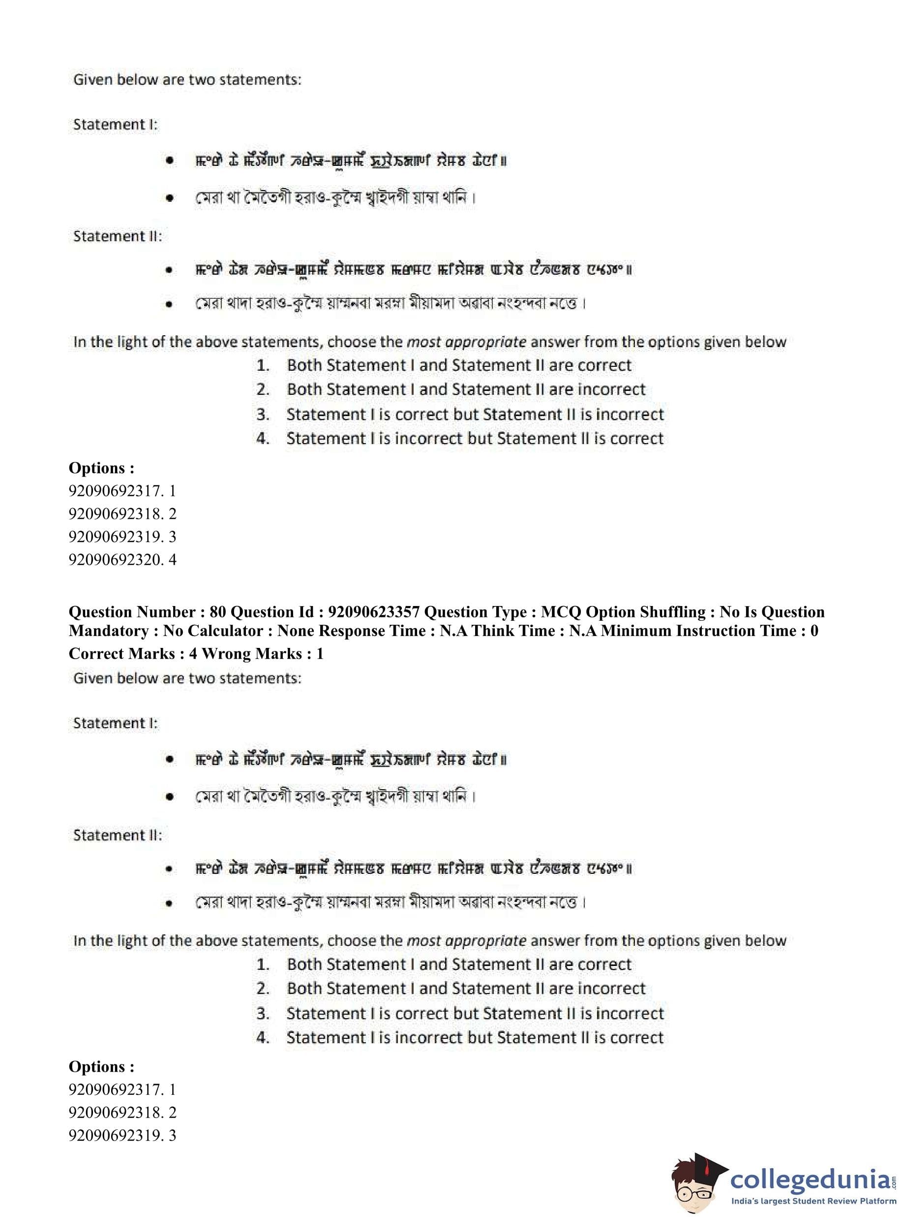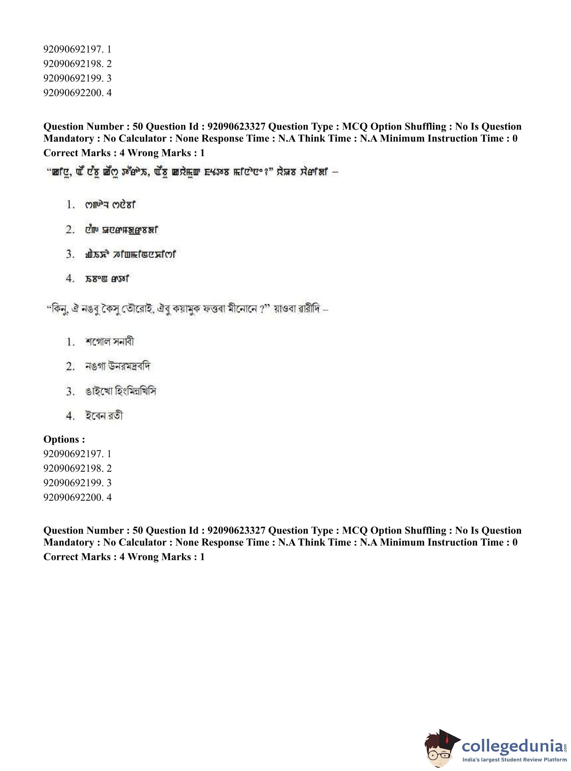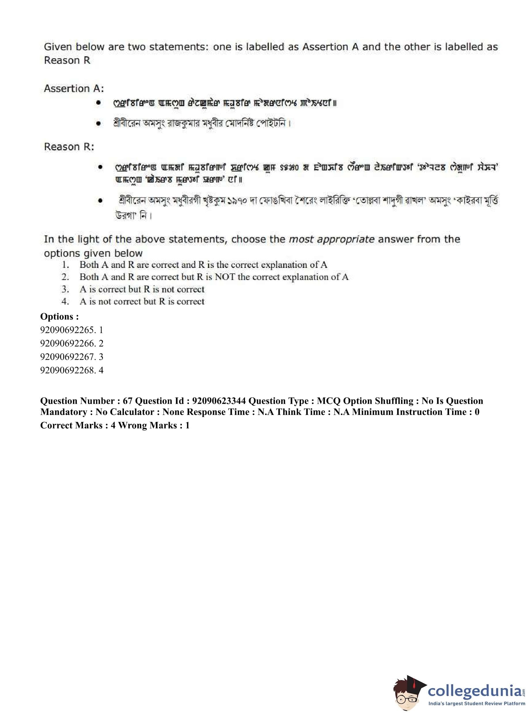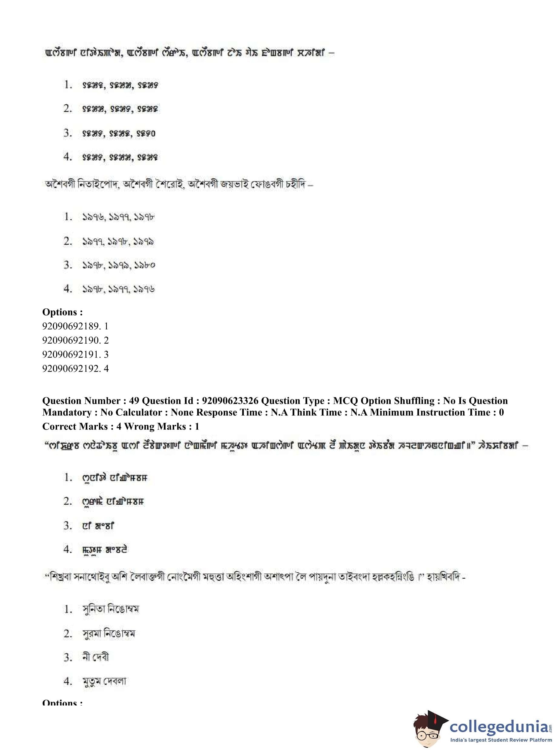 CUET PG 2023 Manipuri Question Paper in Hindi (June 24 - Shift 2)
