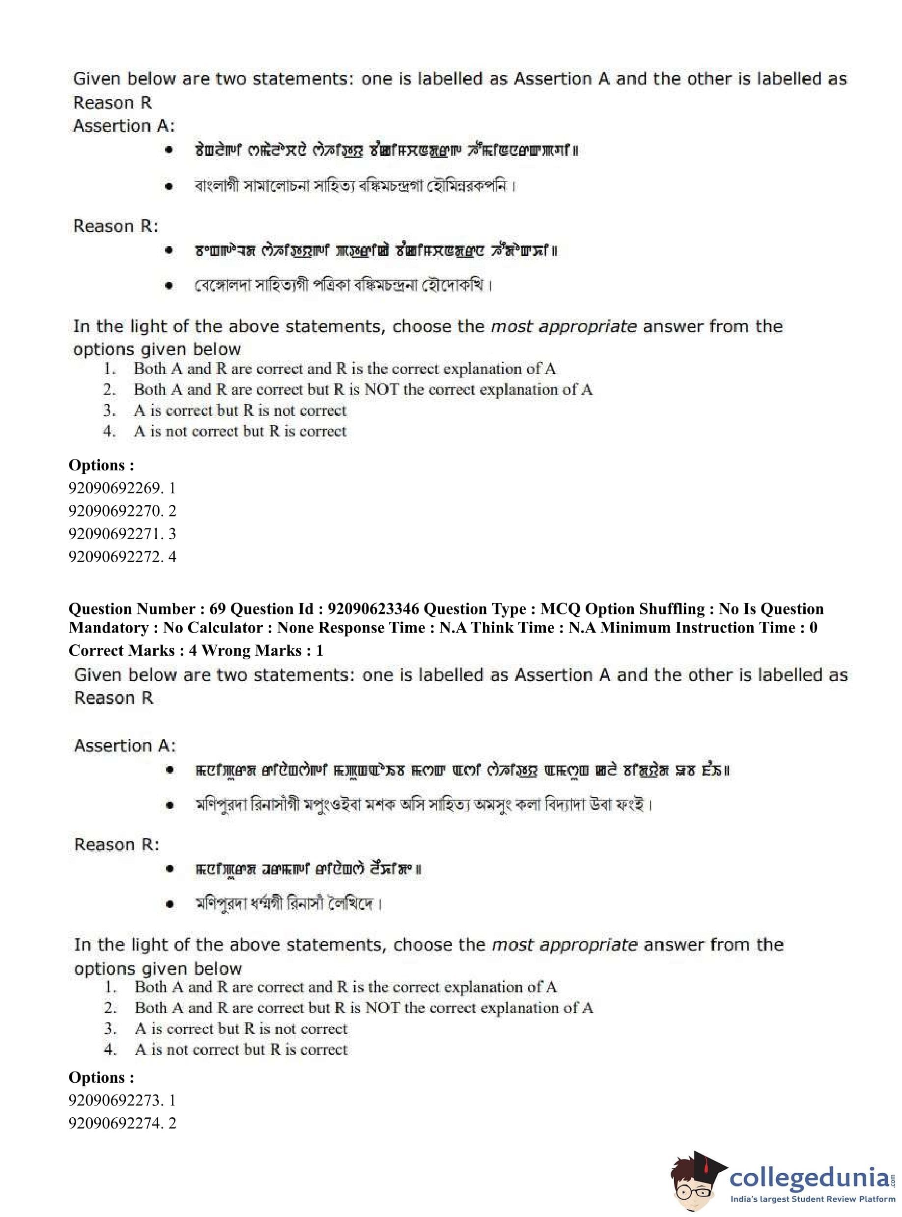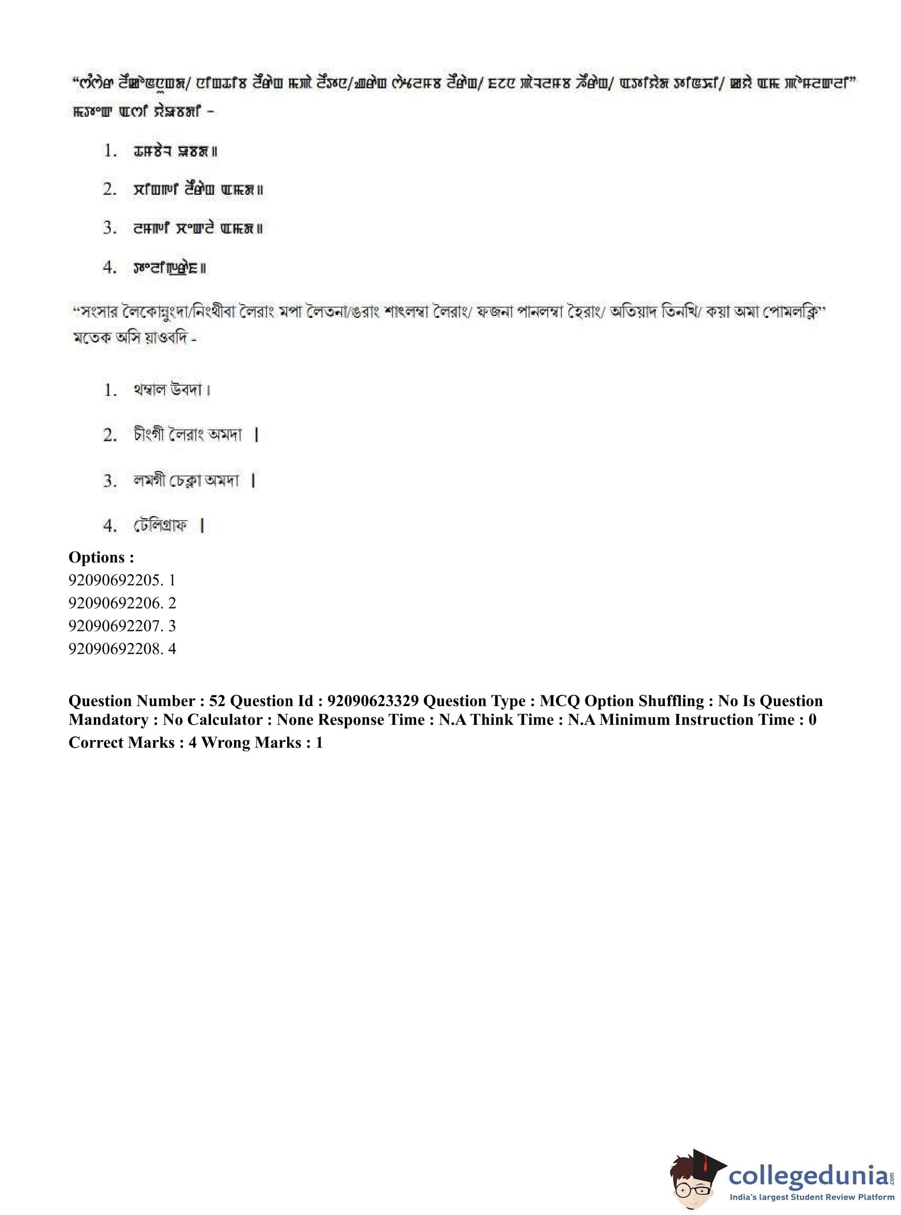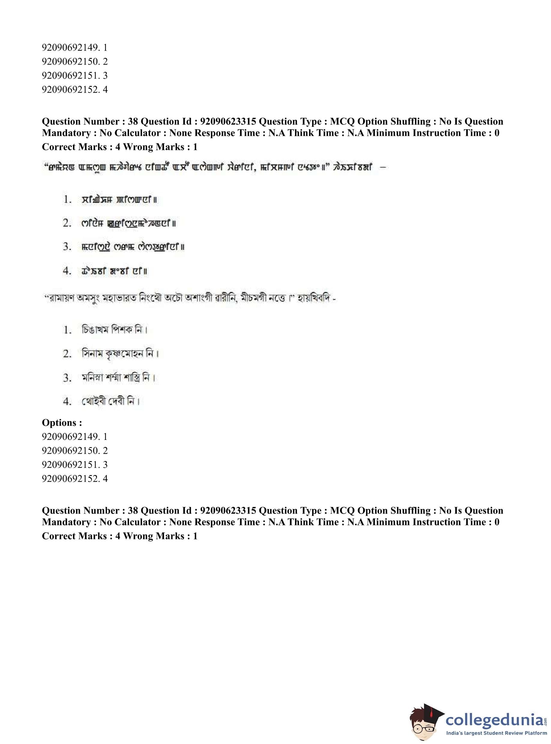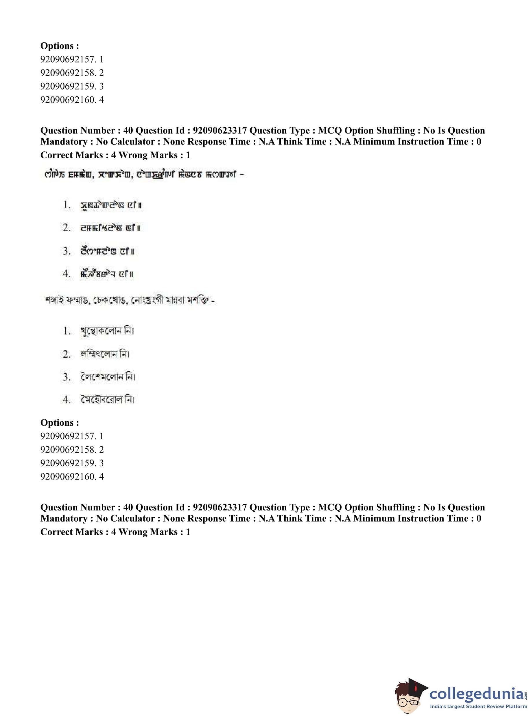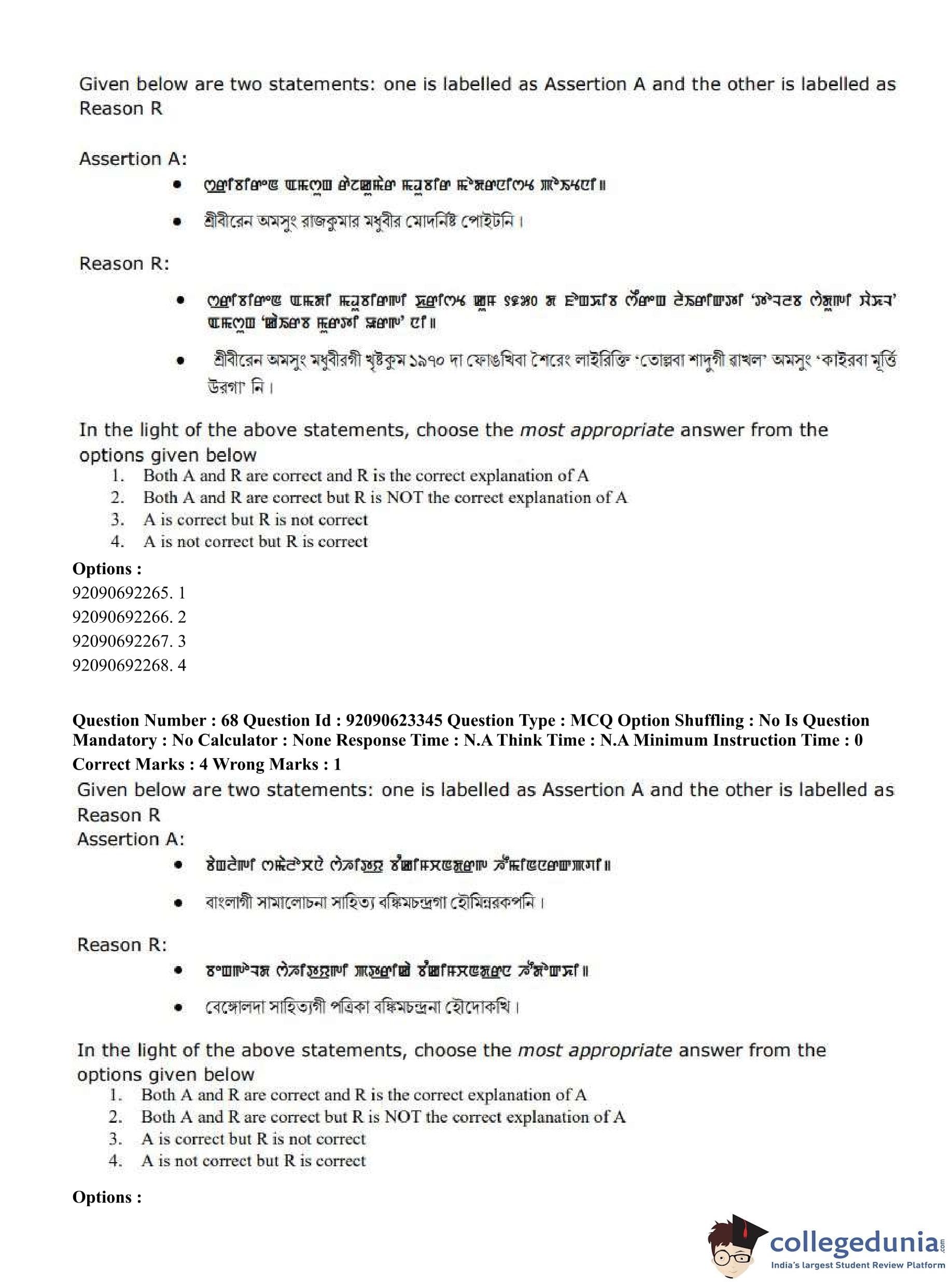 CUET PG 2023 Manipuri Question Paper in Hindi (June 24 - Shift 2)