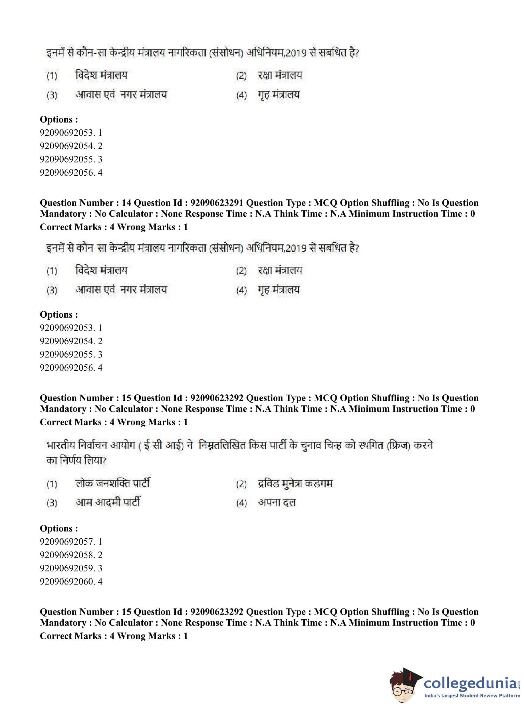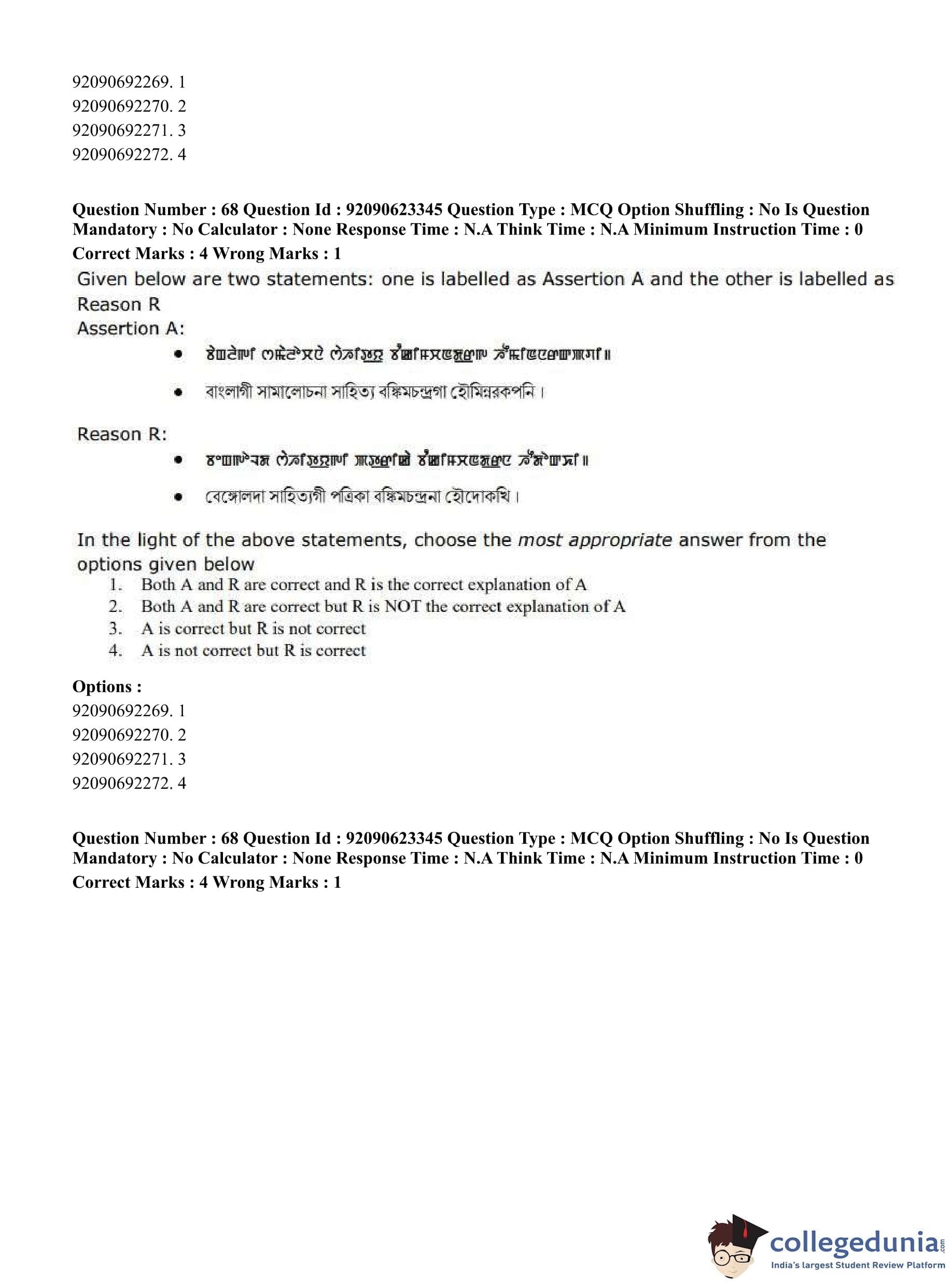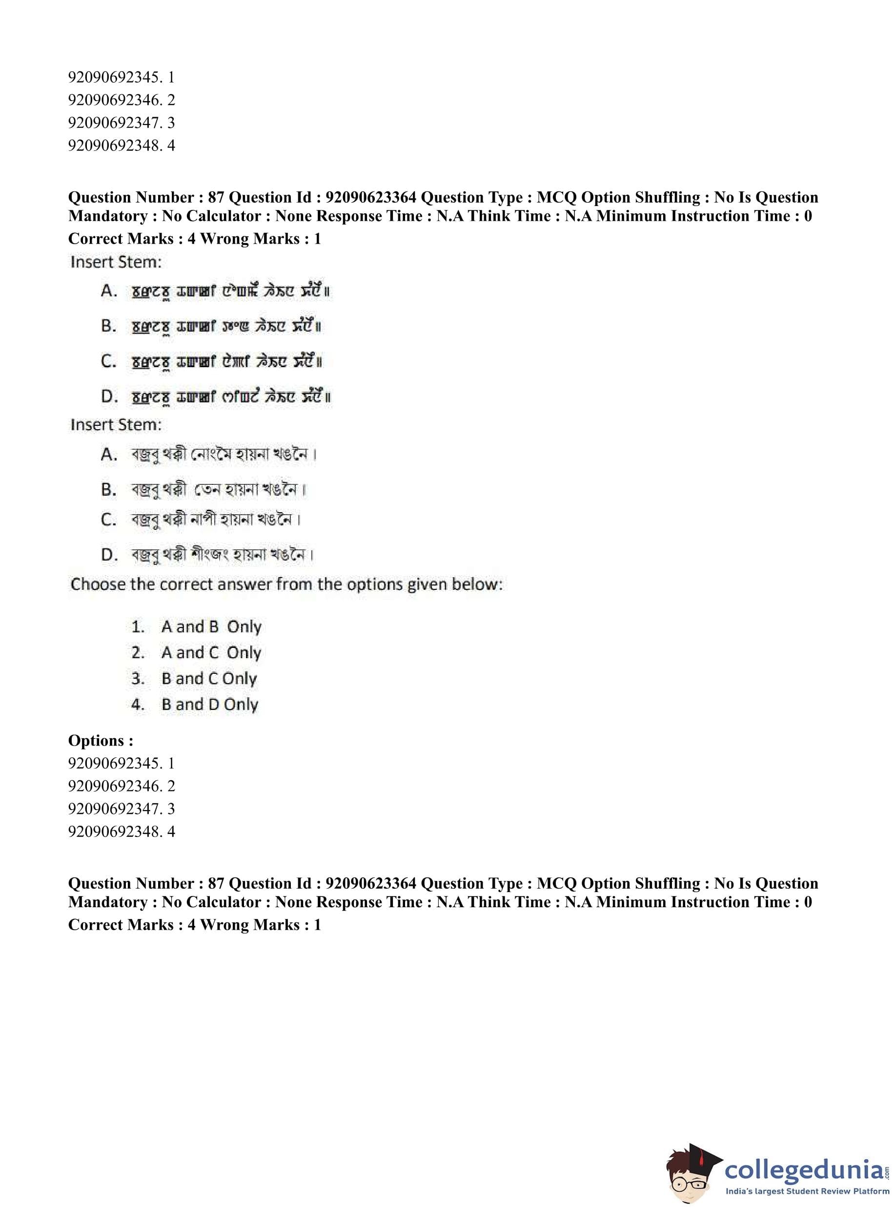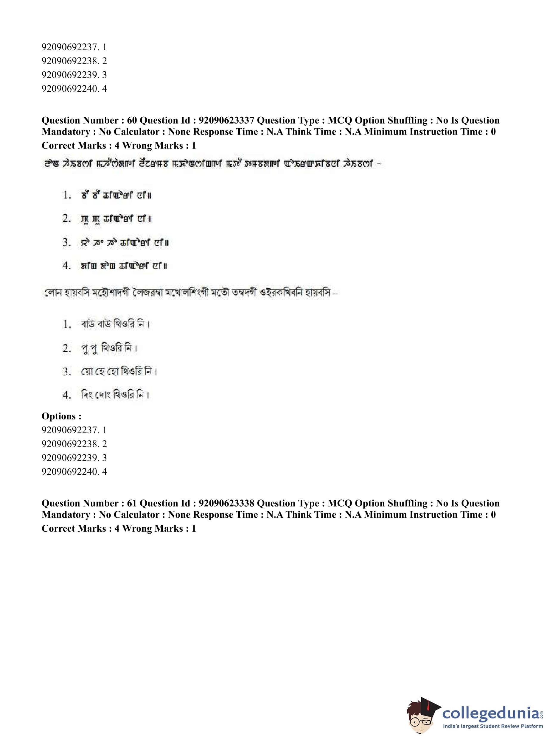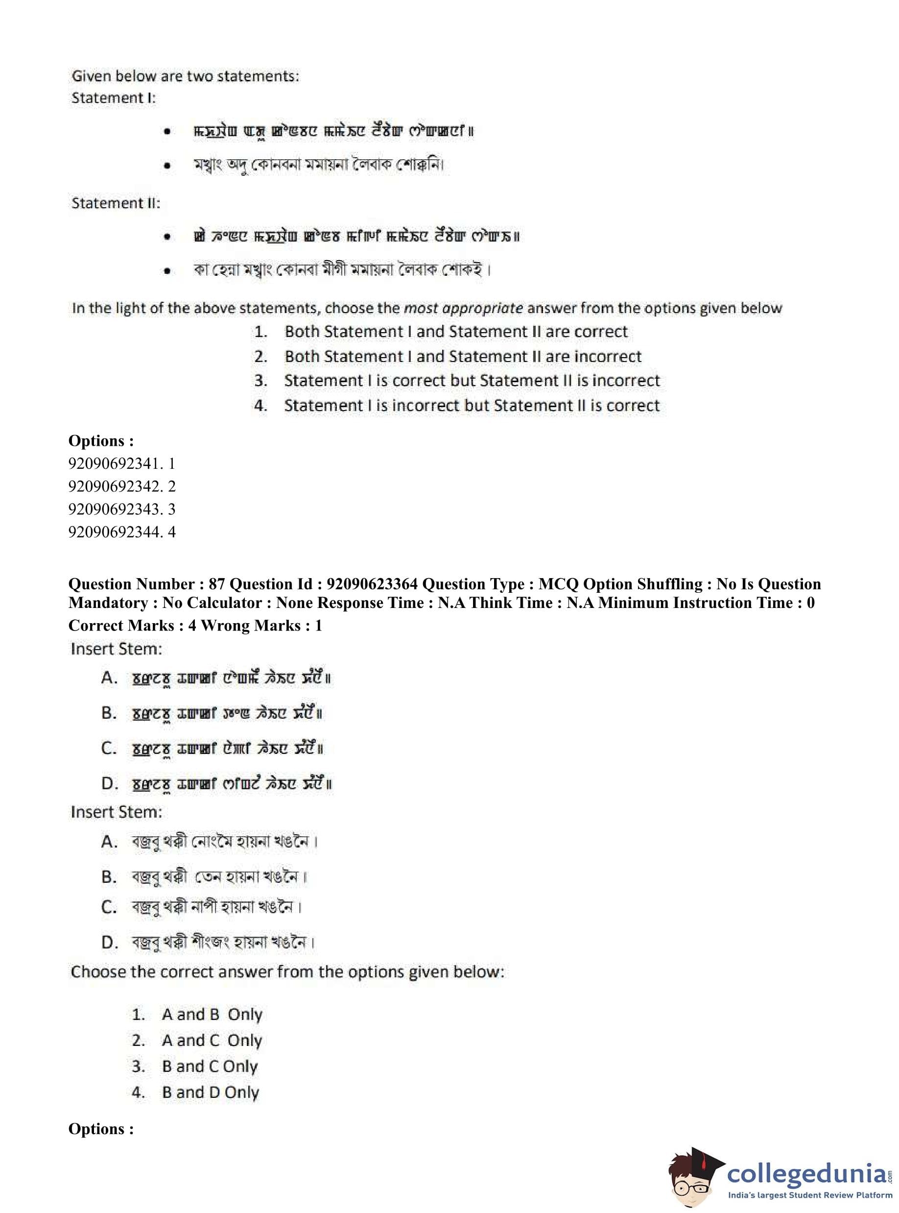 CUET PG 2023 Manipuri Question Paper in Hindi (June 24 - Shift 2)