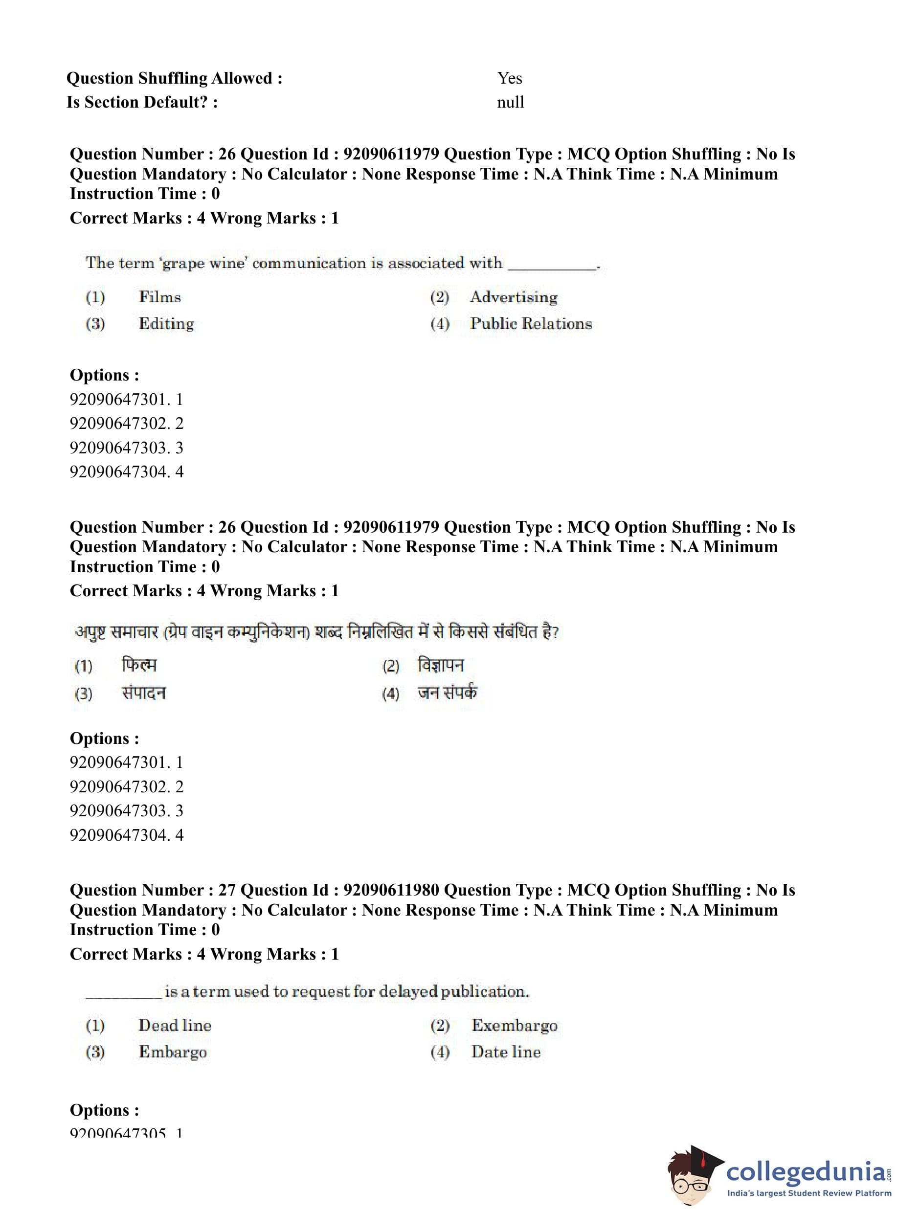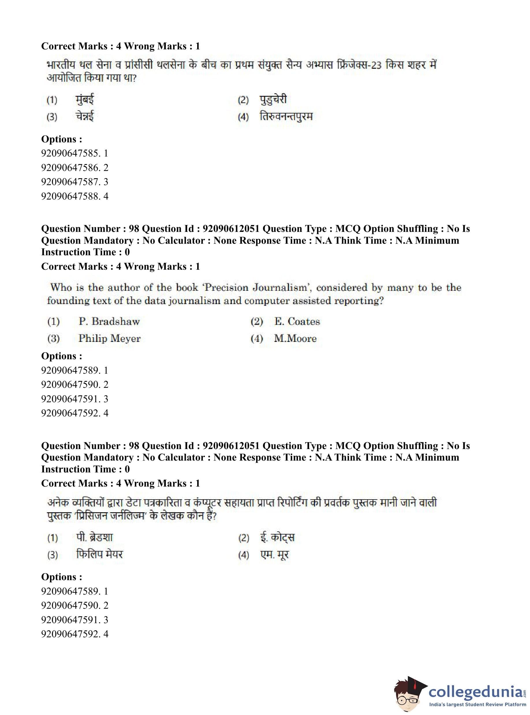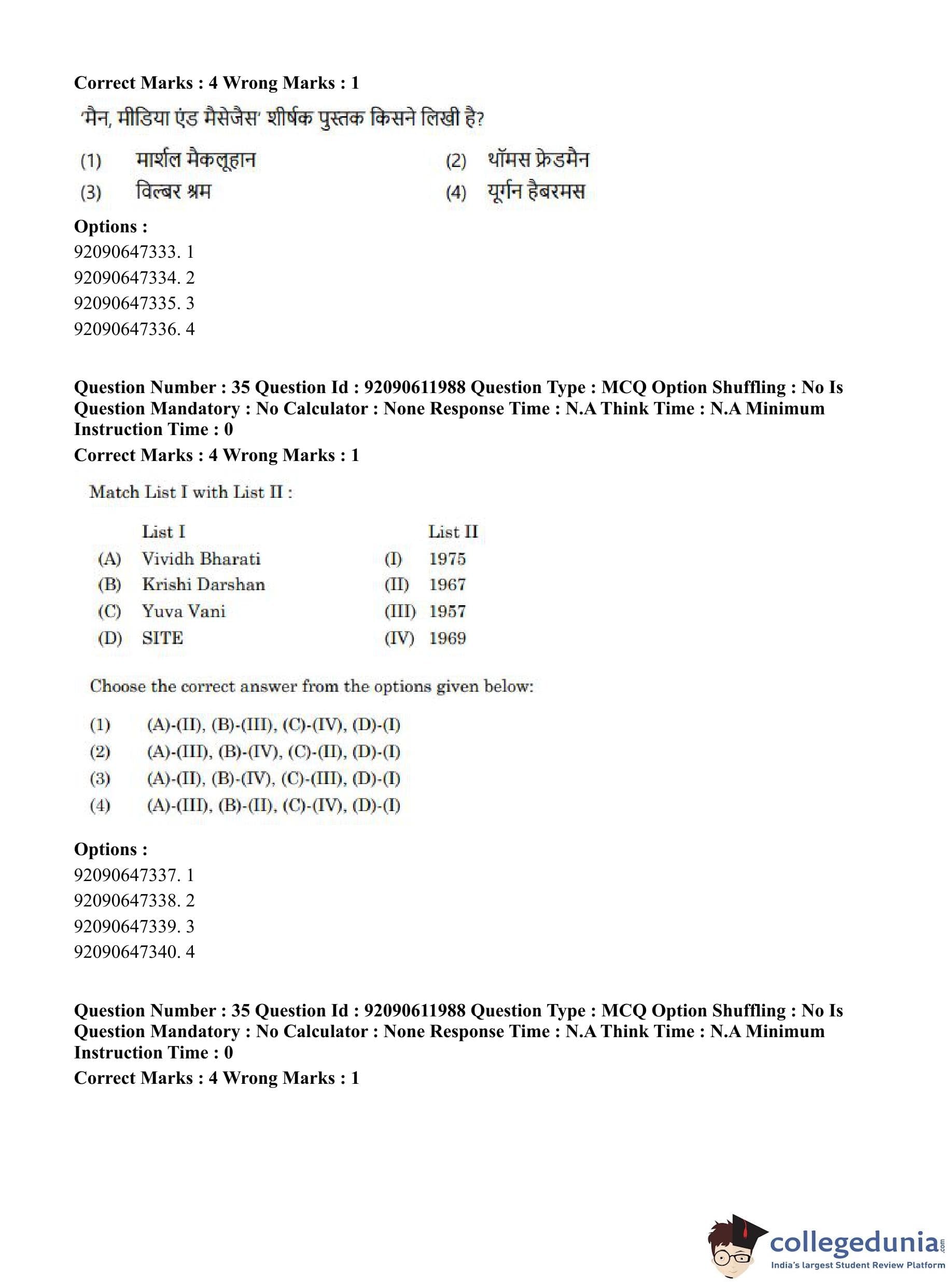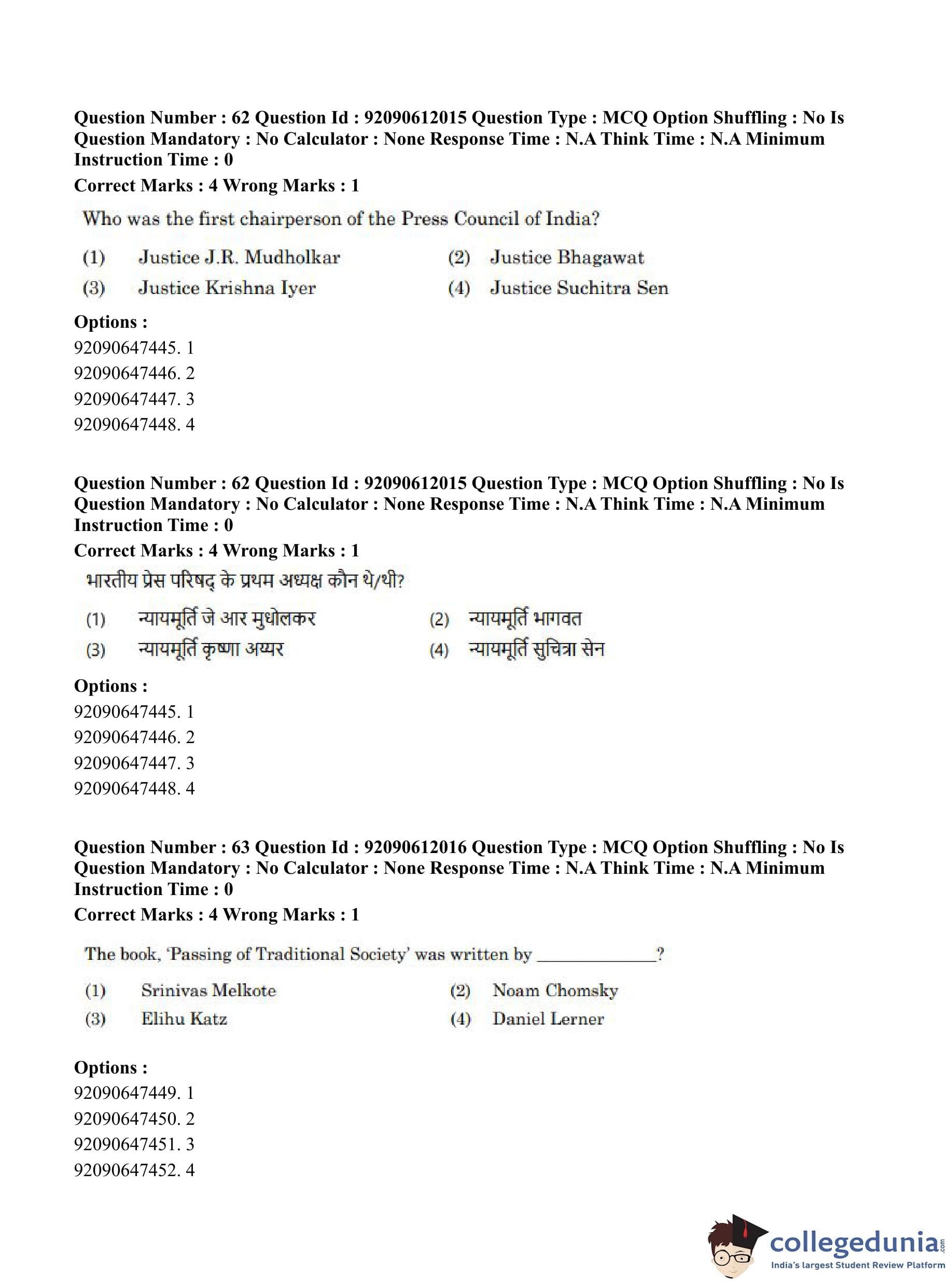 CUET PG 2023 Mass Communication and Journalism Question Paper in English (June 10 - Shift 3)