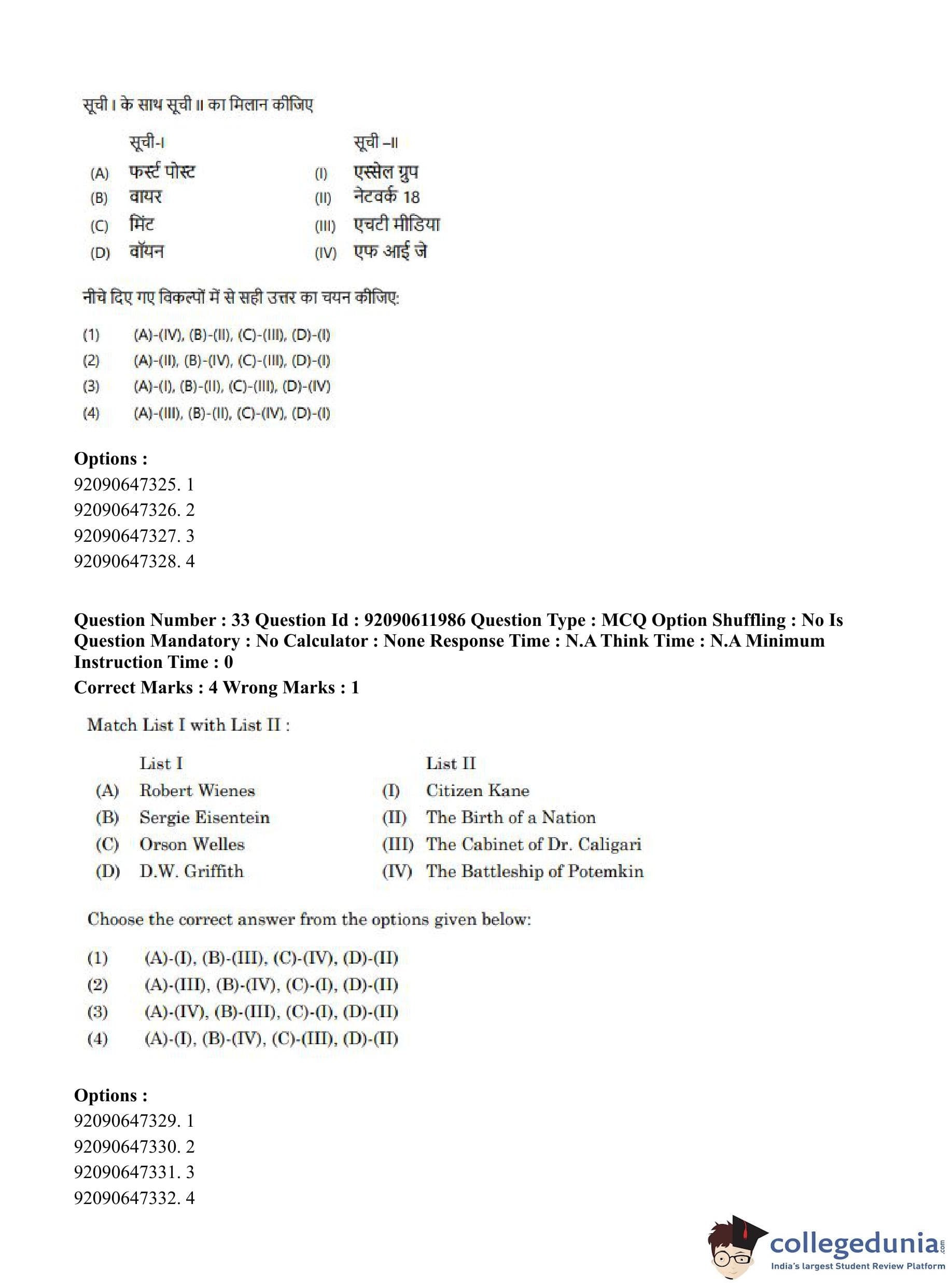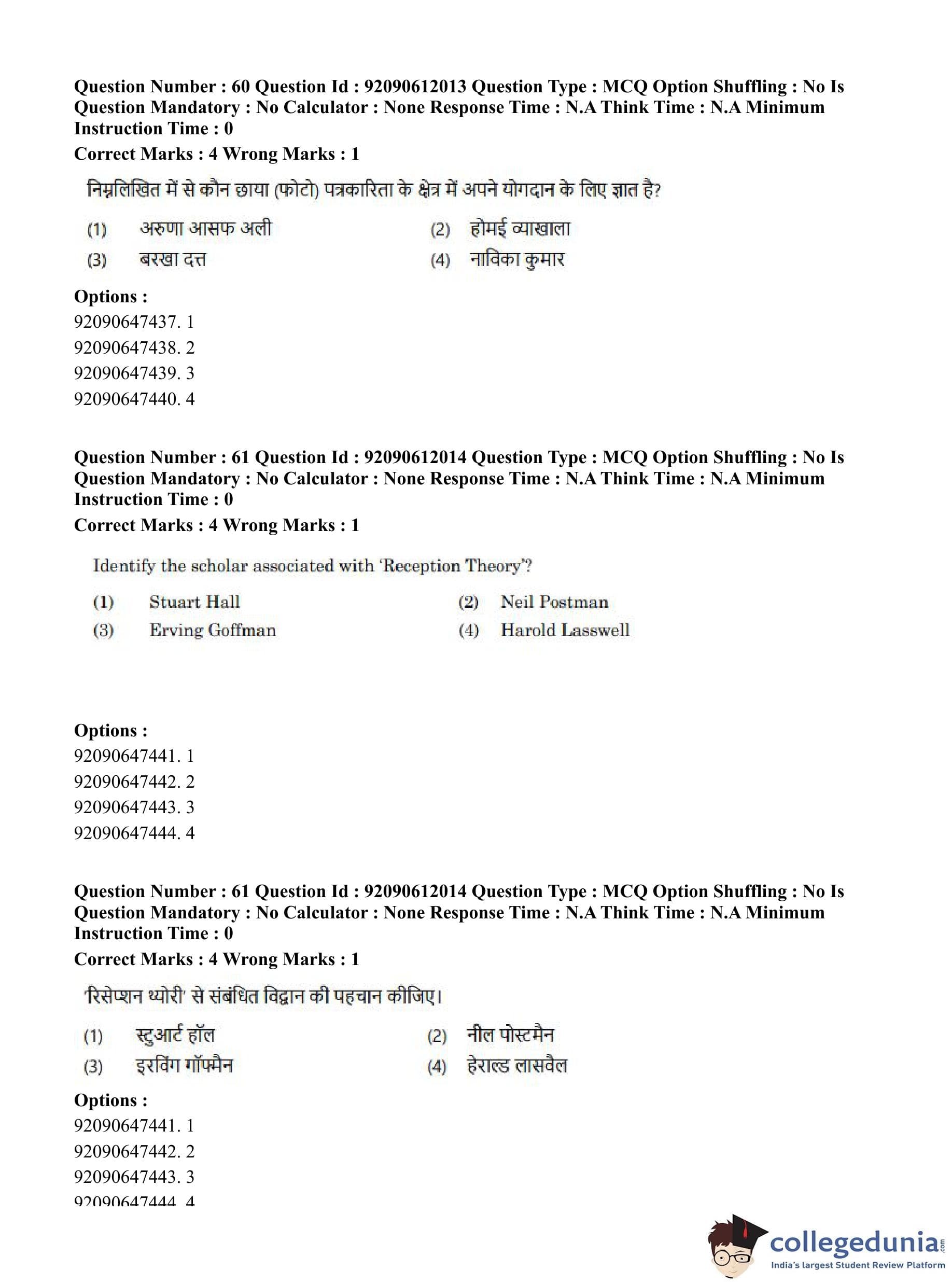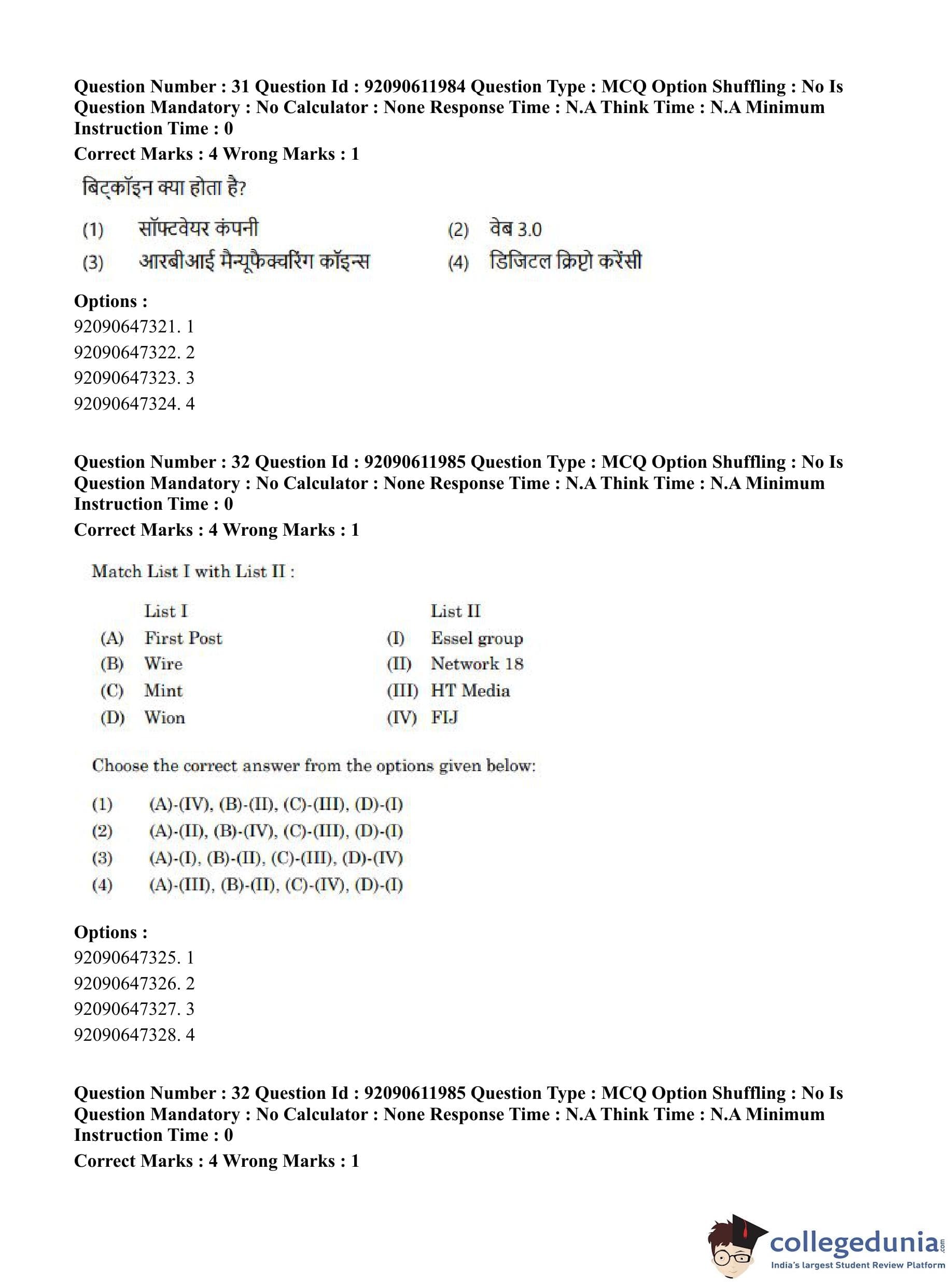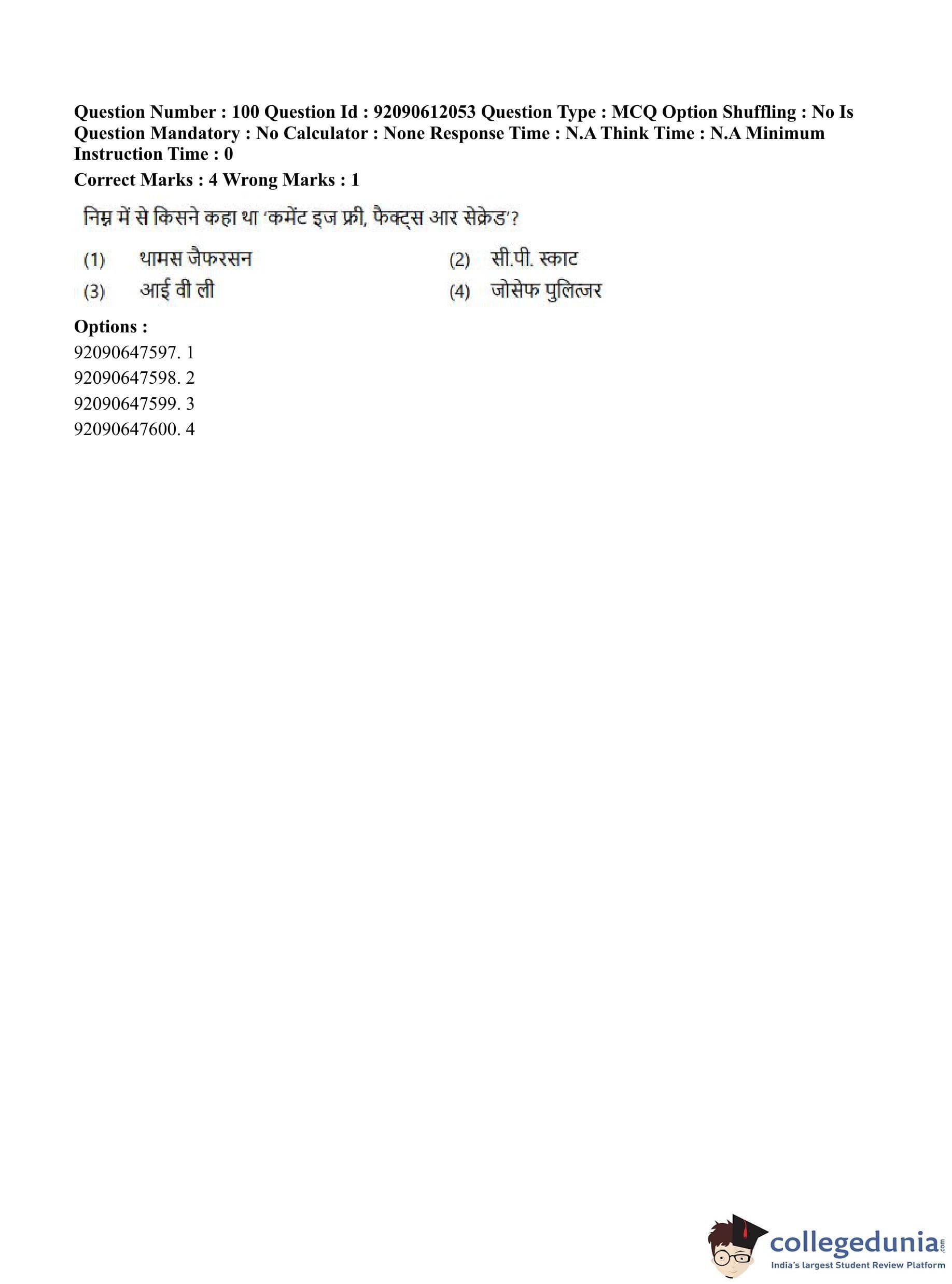 CUET PG 2023 Mass Communication and Journalism Question Paper in English (June 10 - Shift 3)