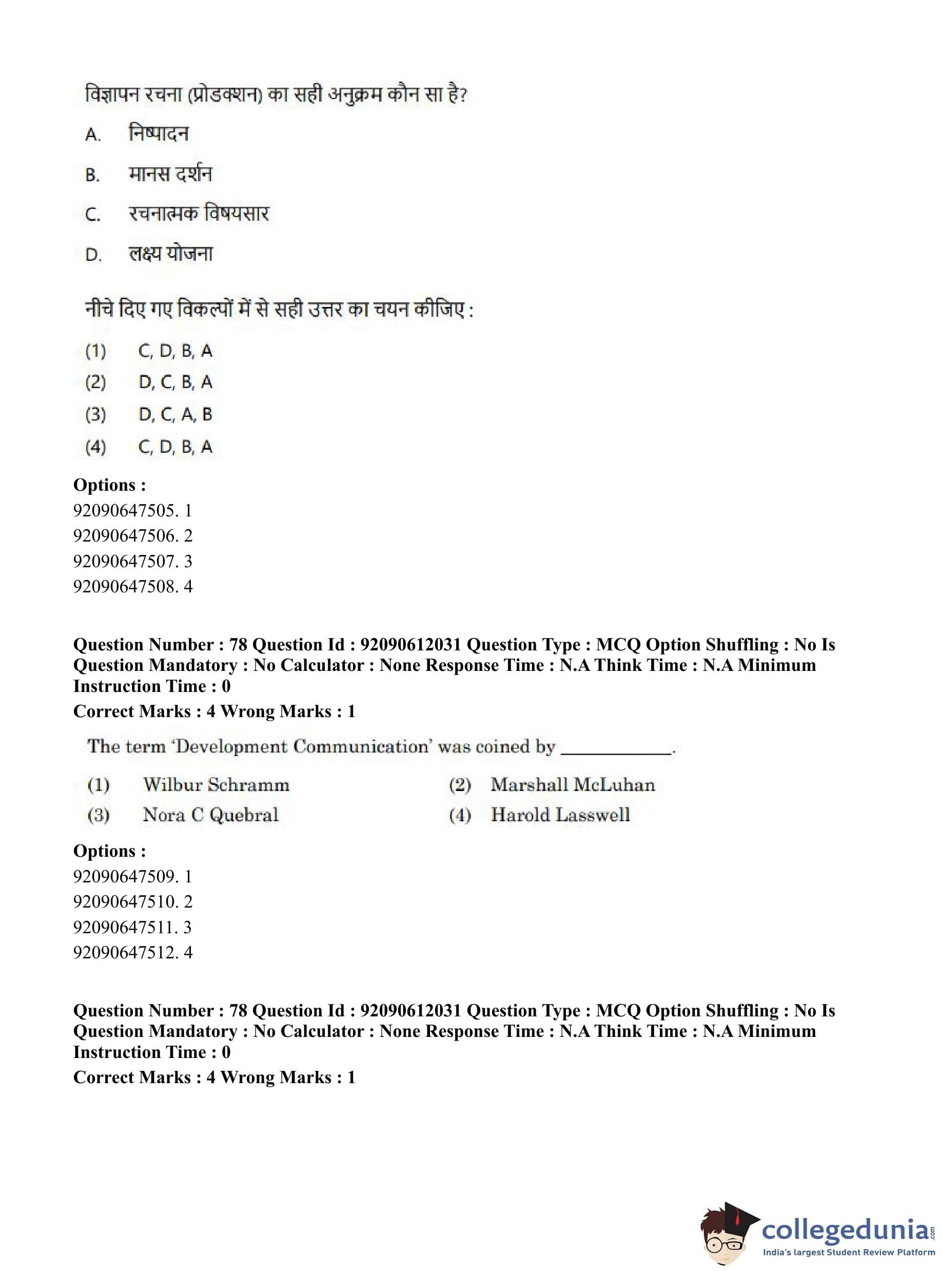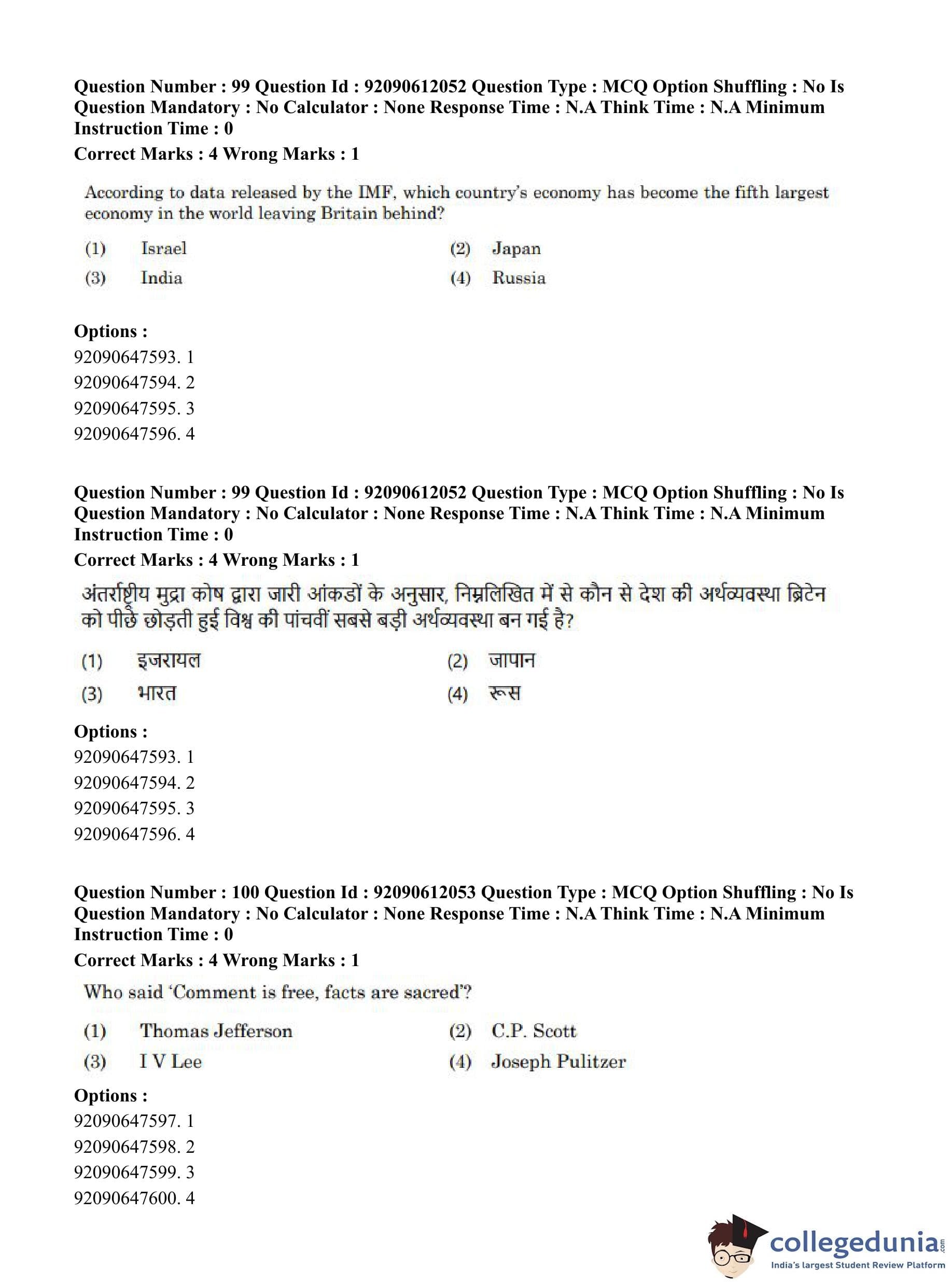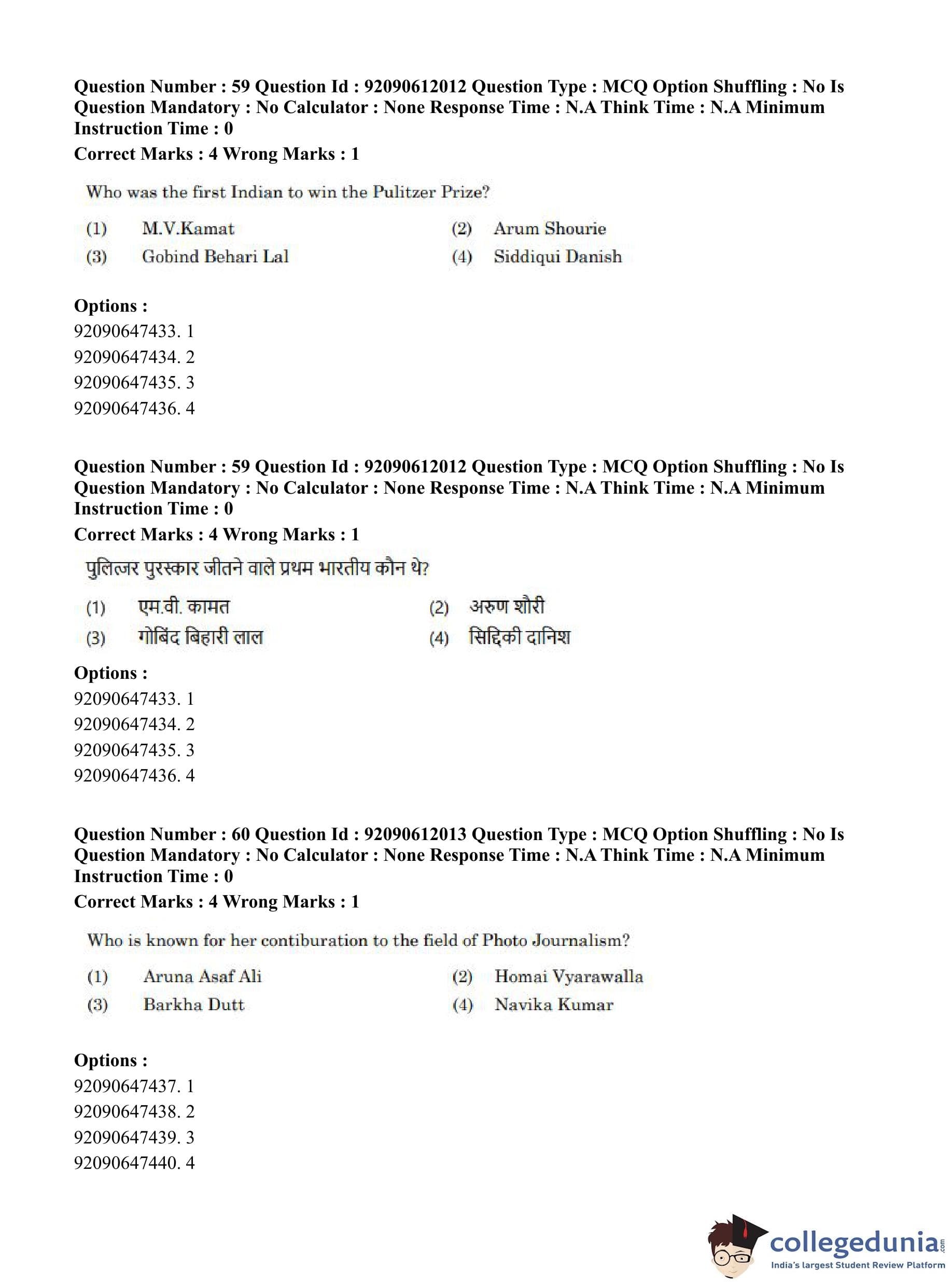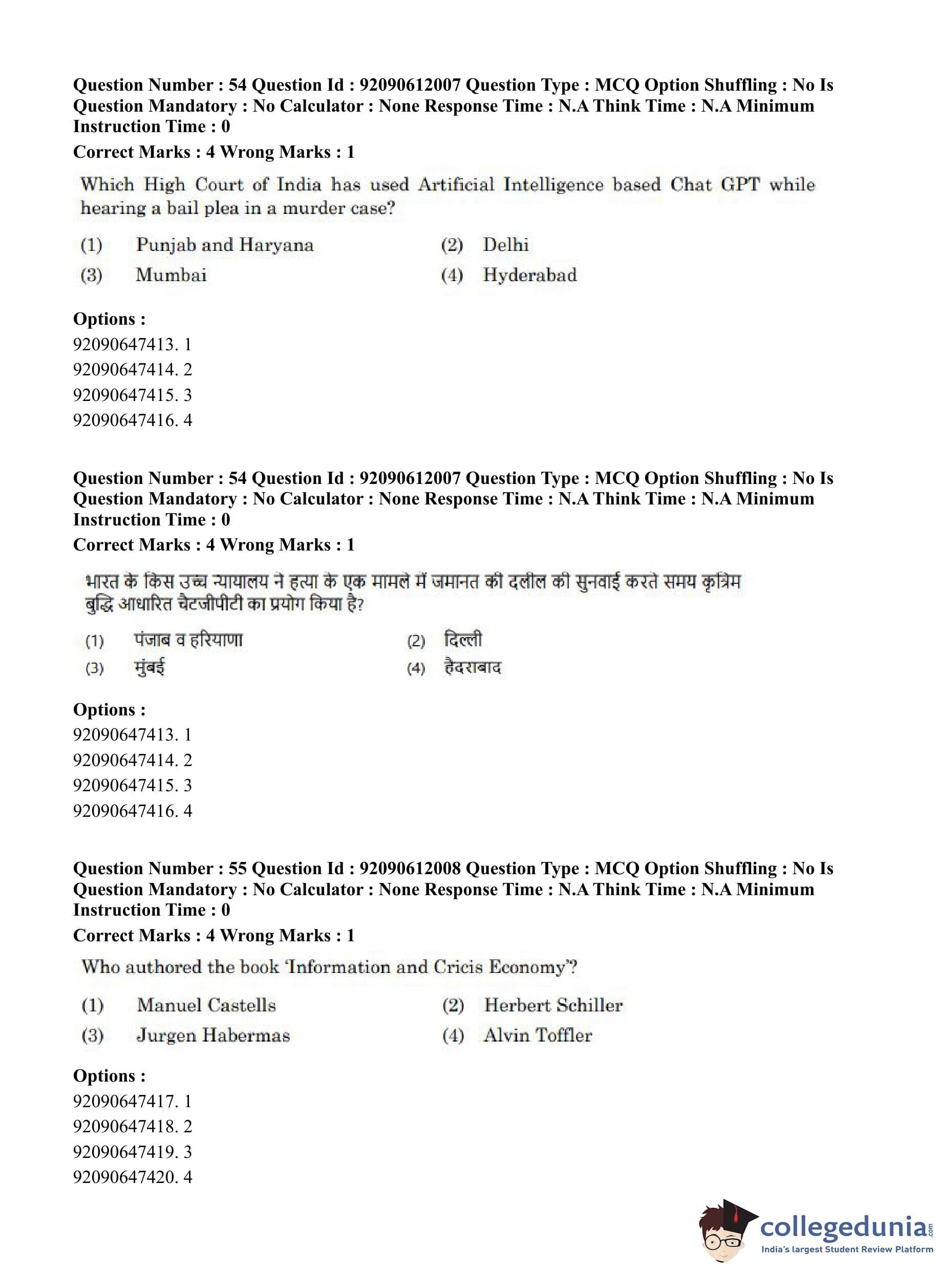 CUET PG 2023 Mass Communication and Journalism Question Paper in English (June 10 - Shift 3)