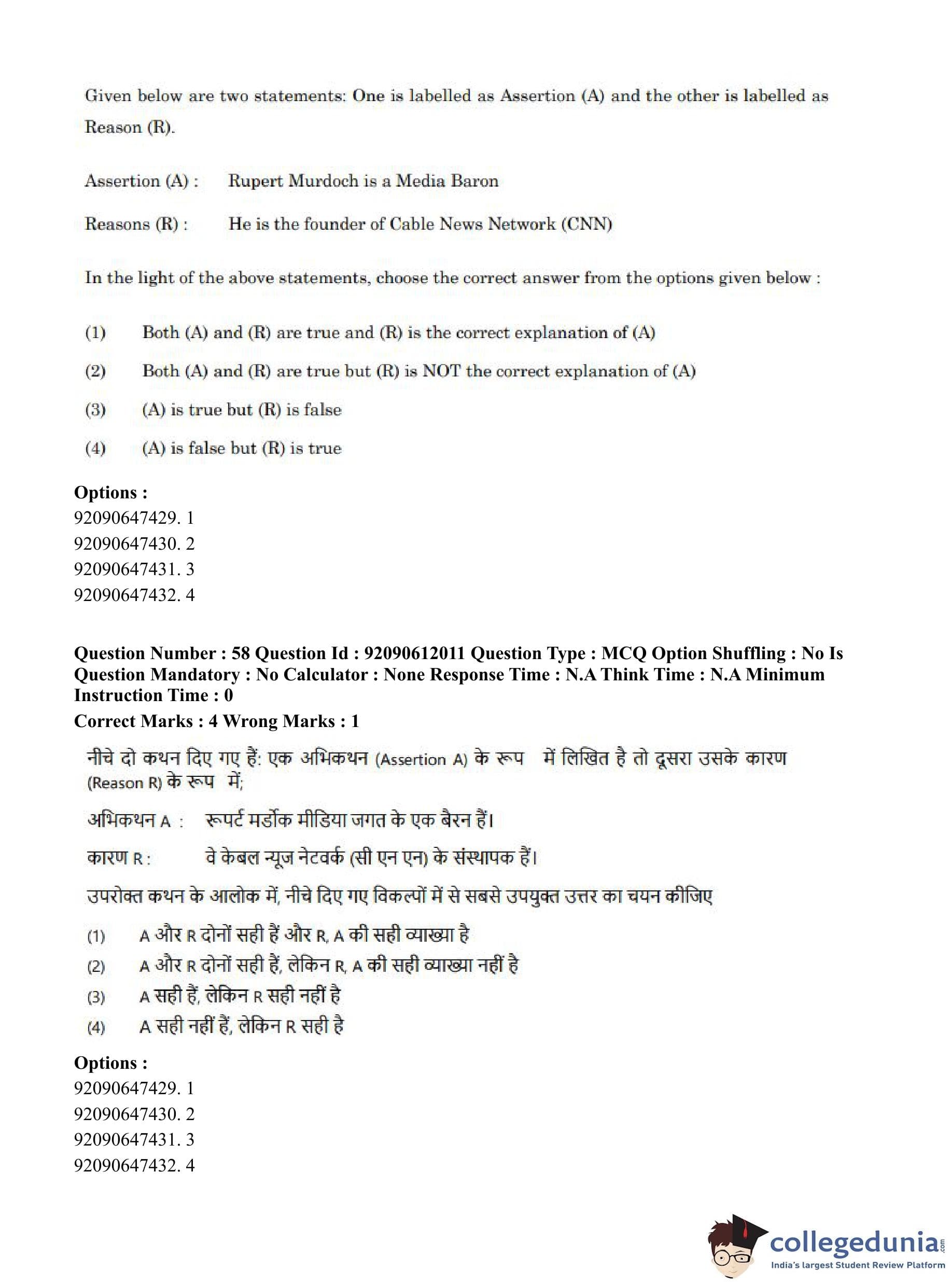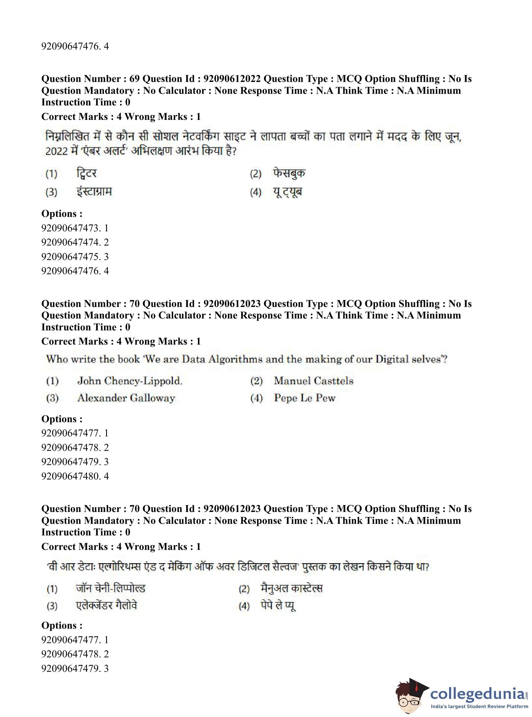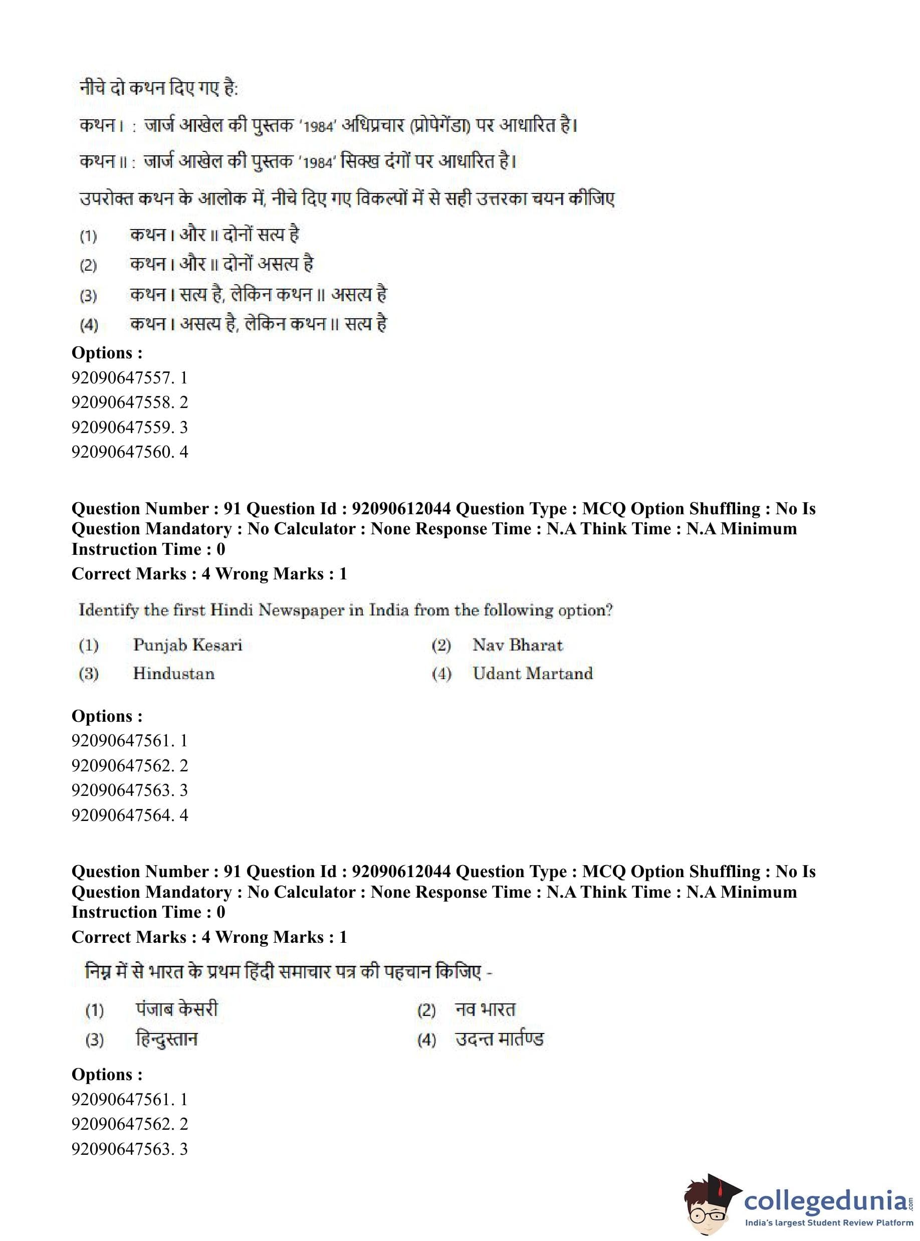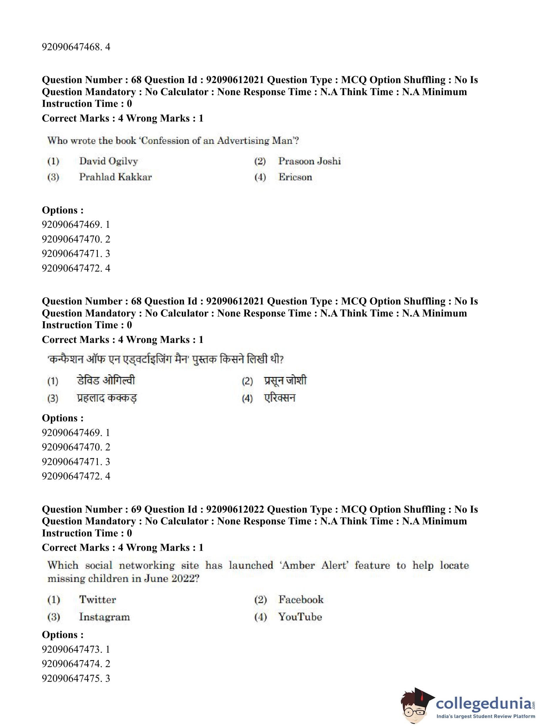 CUET PG 2023 Mass Communication and Journalism Question Paper in English (June 10 - Shift 3)