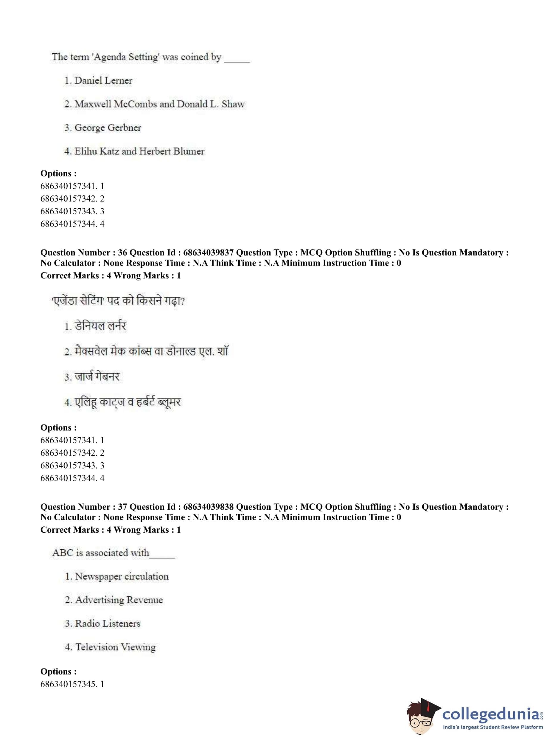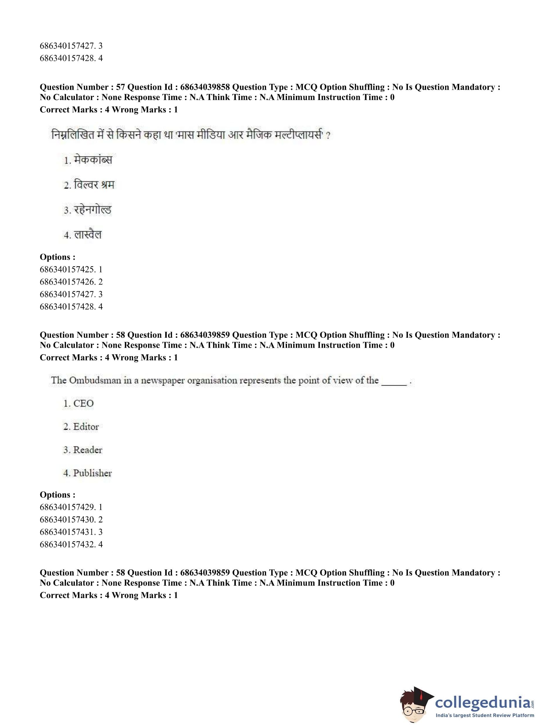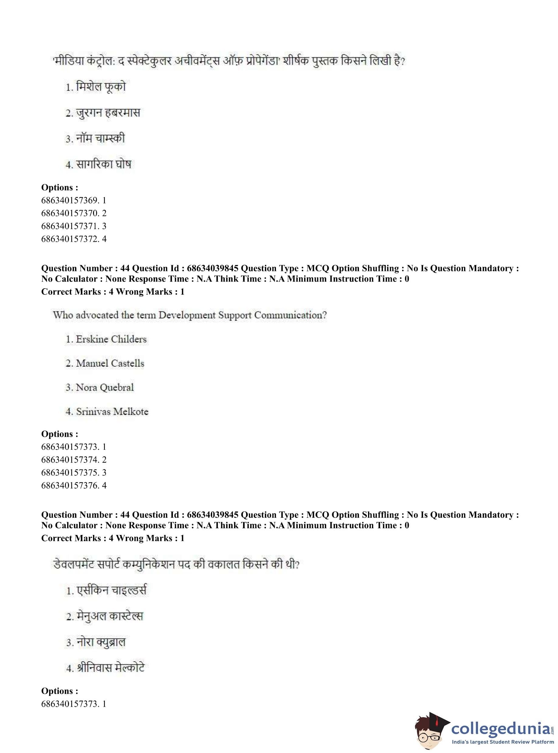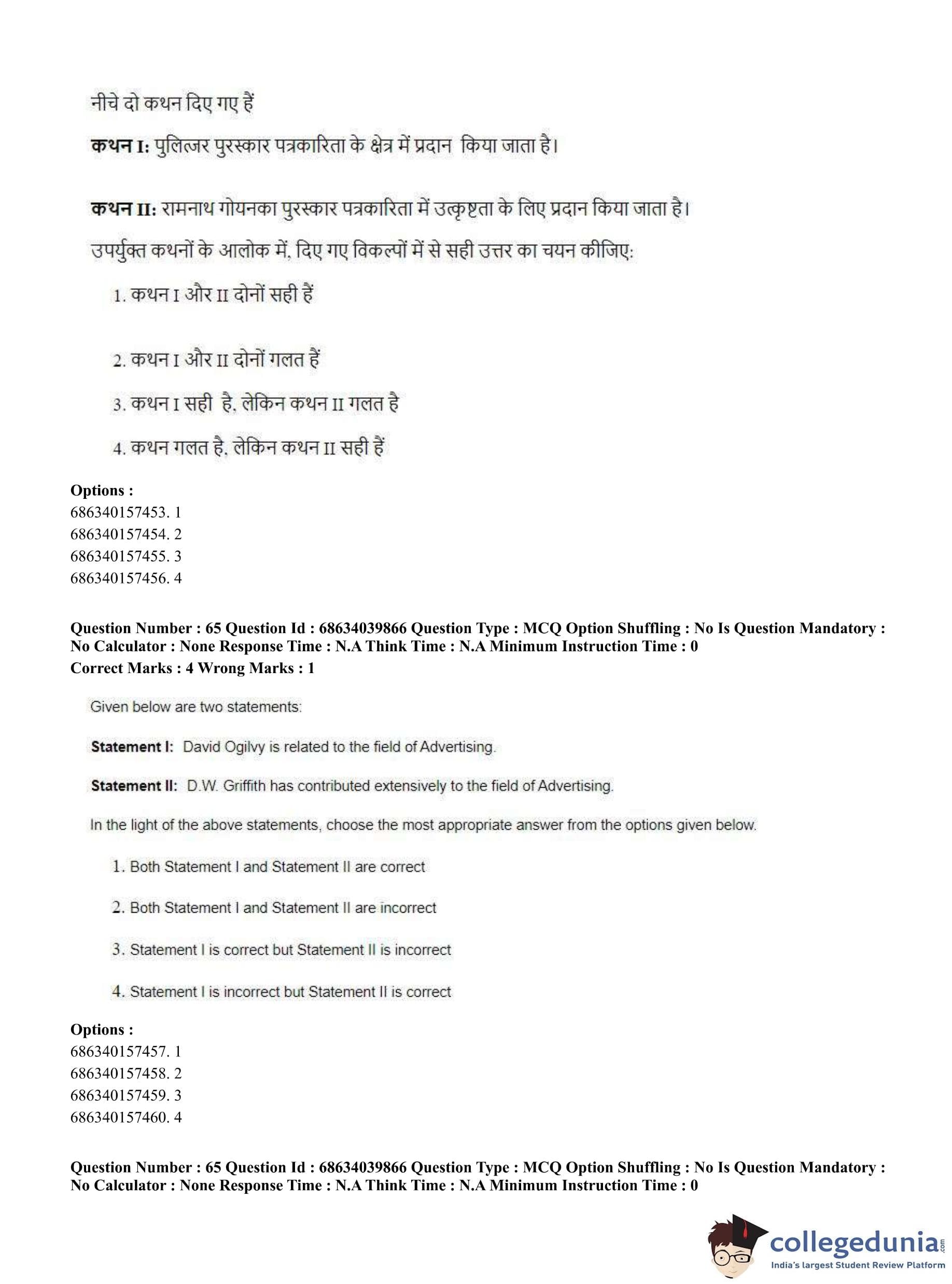 CUET PG 2023 Mass Communication and Journalism Question Paper in English (June 25 - Shift 3)