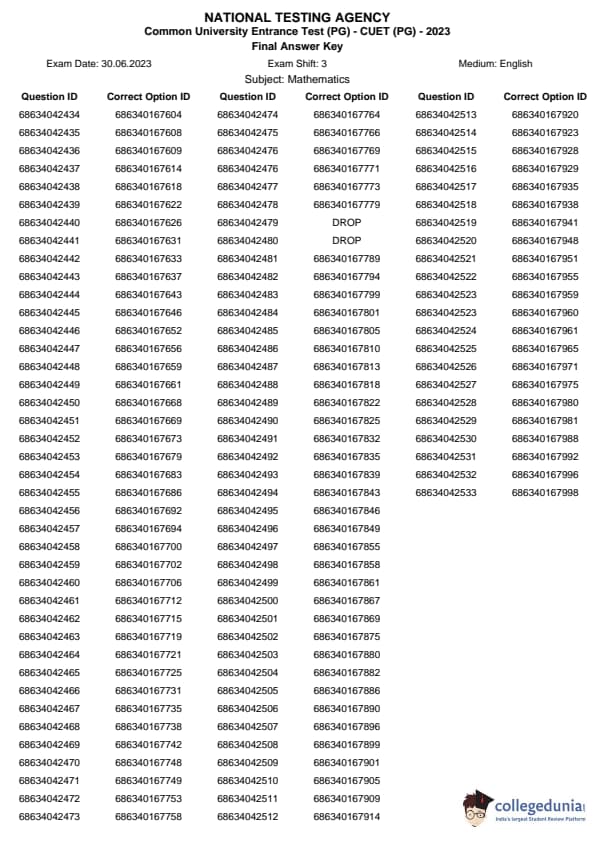 | CUET PG Mathematics Question Paper 2023 PDF | CUET PG Mathematics Answer Key 2023 PDF |