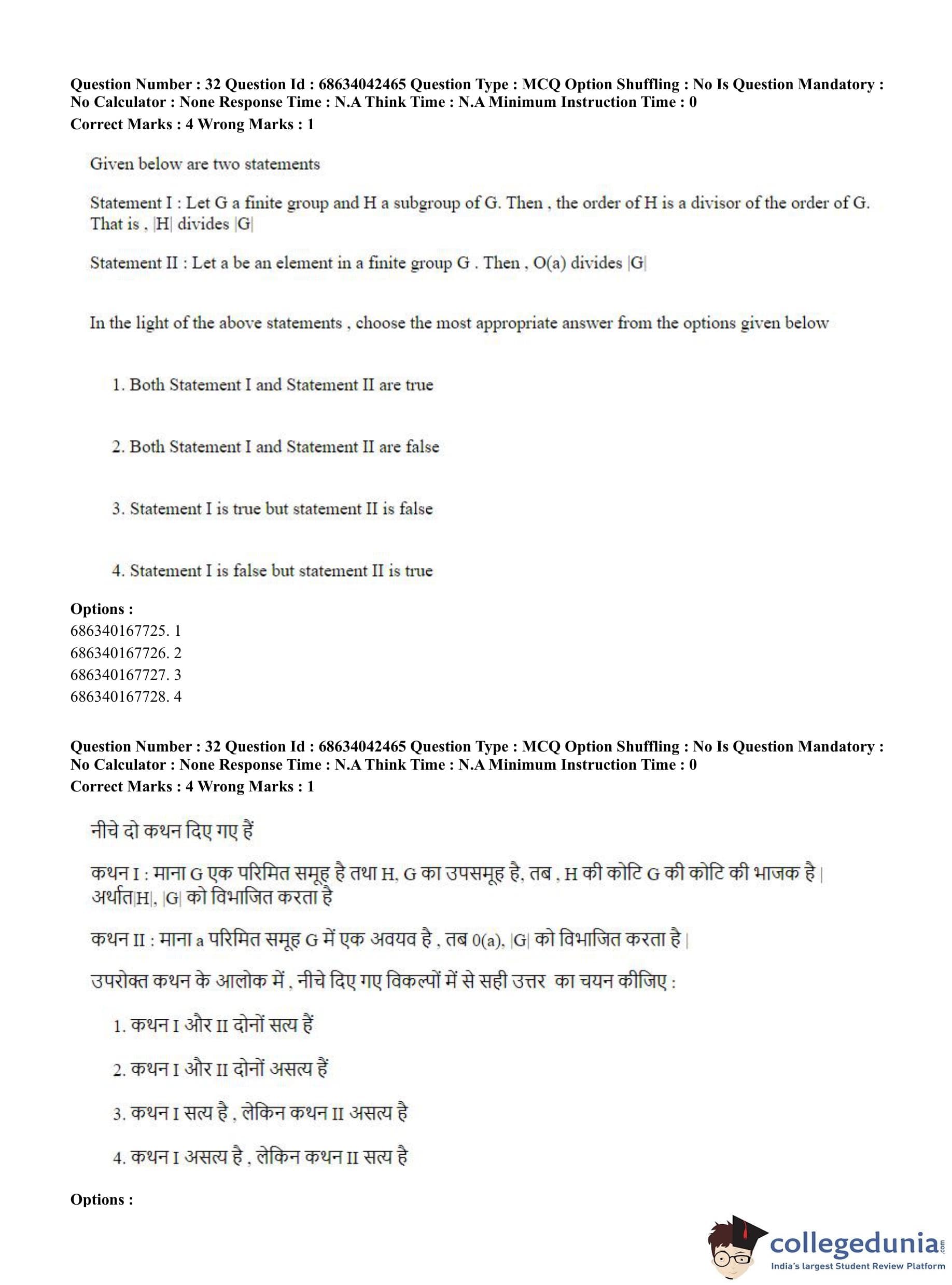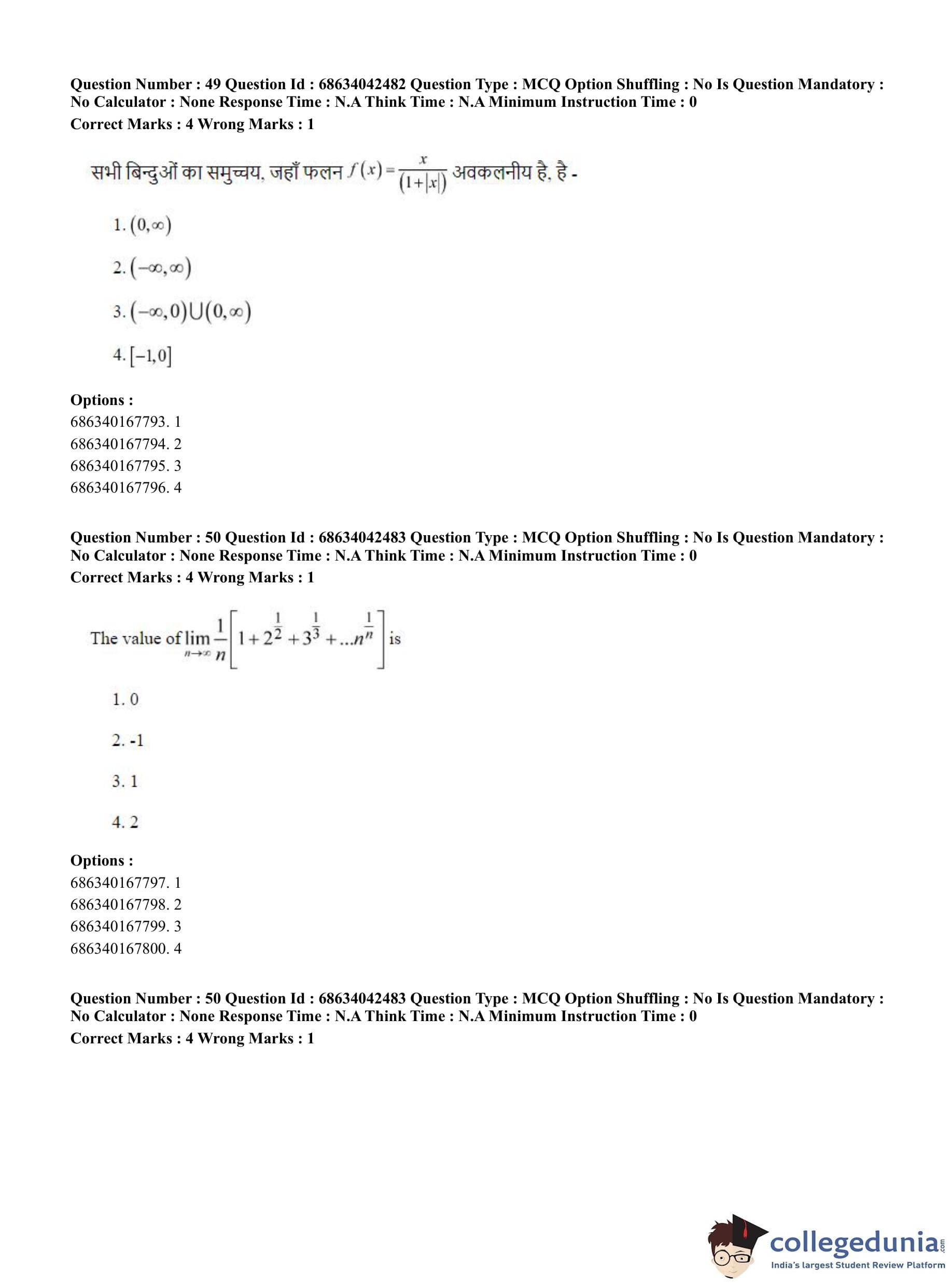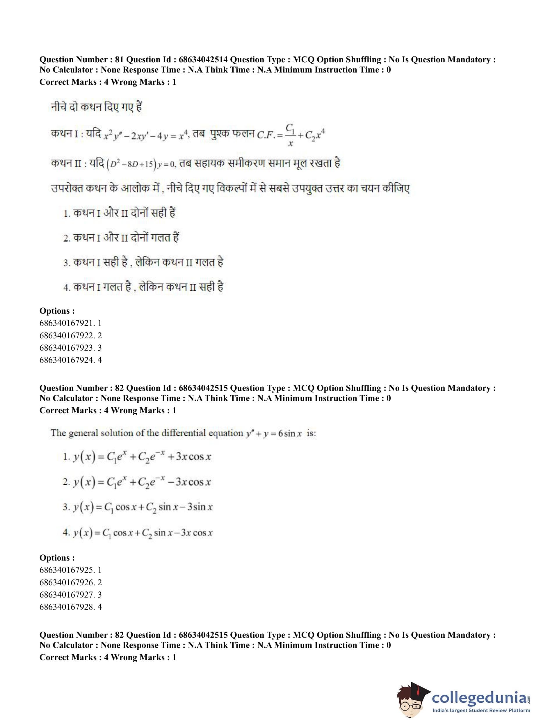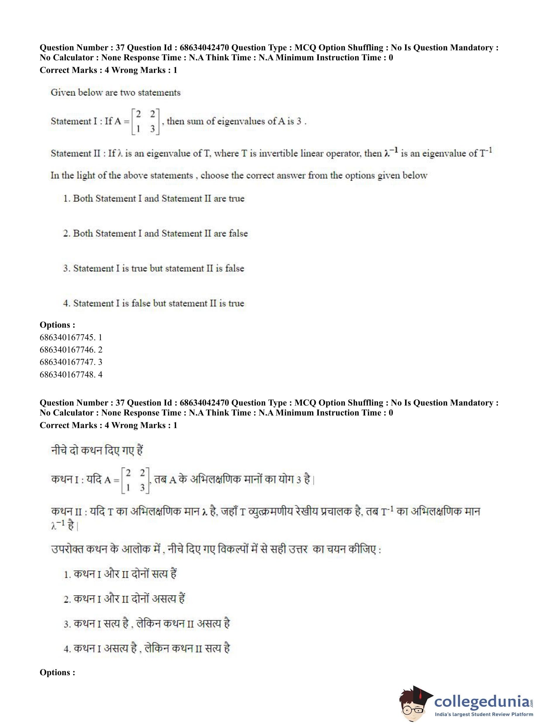 CUET PG 2023 Mathematics Question Paper in English (June 30 - Shift 3)
