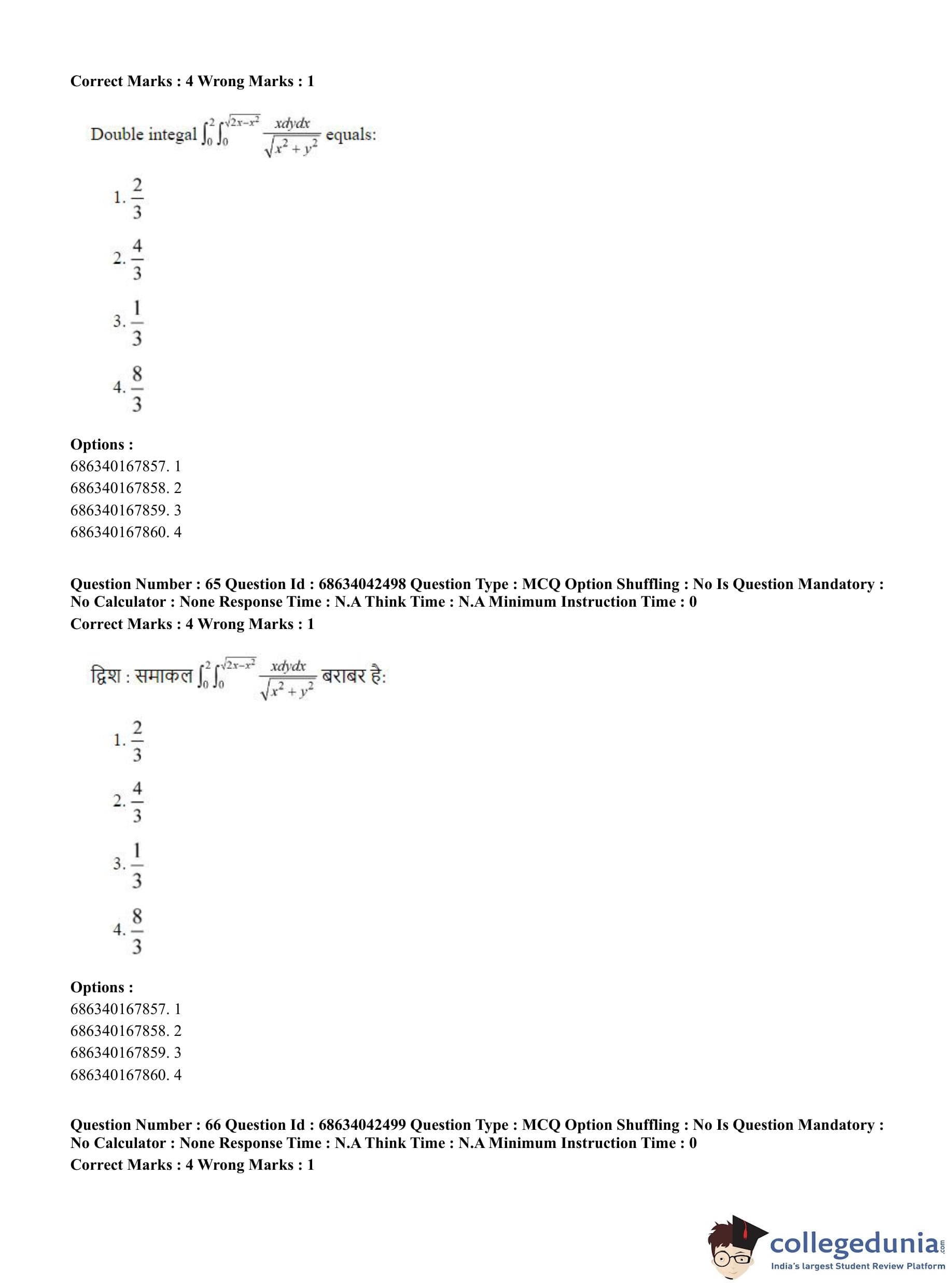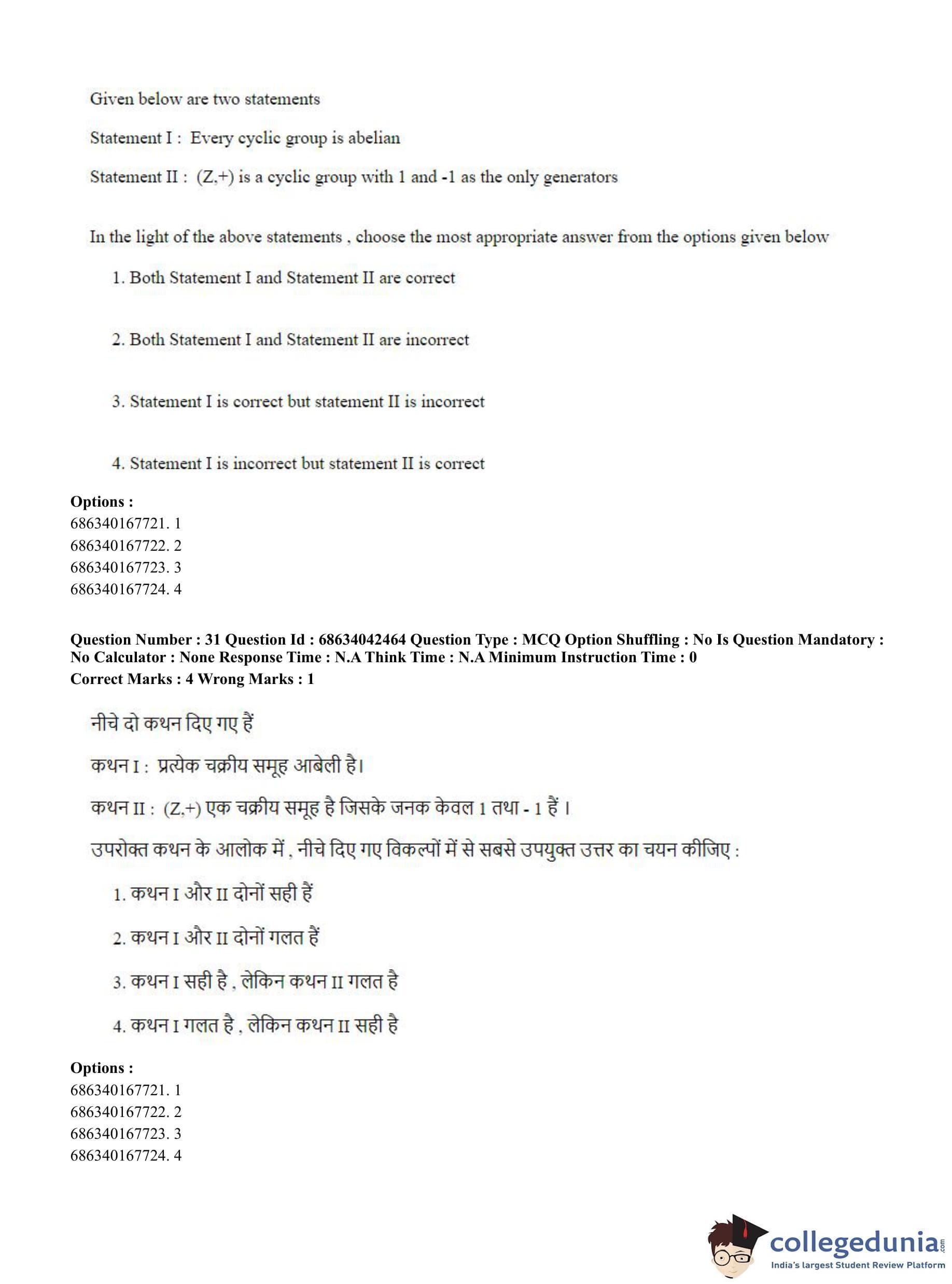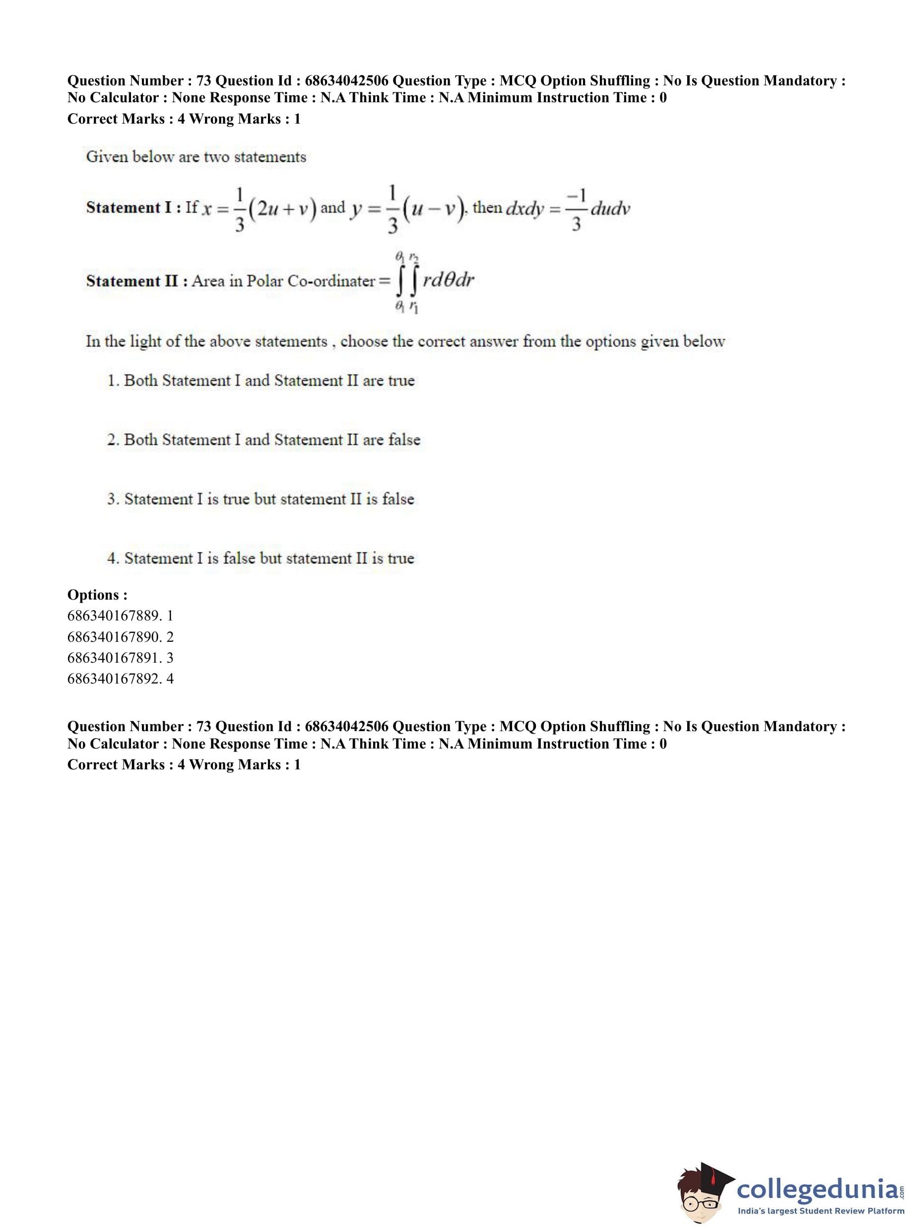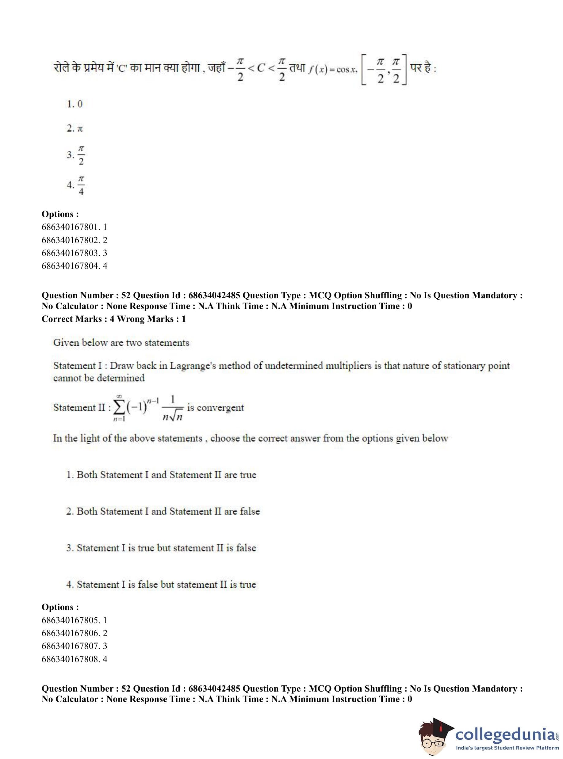 CUET PG 2023 Mathematics Question Paper in English (June 30 - Shift 3)