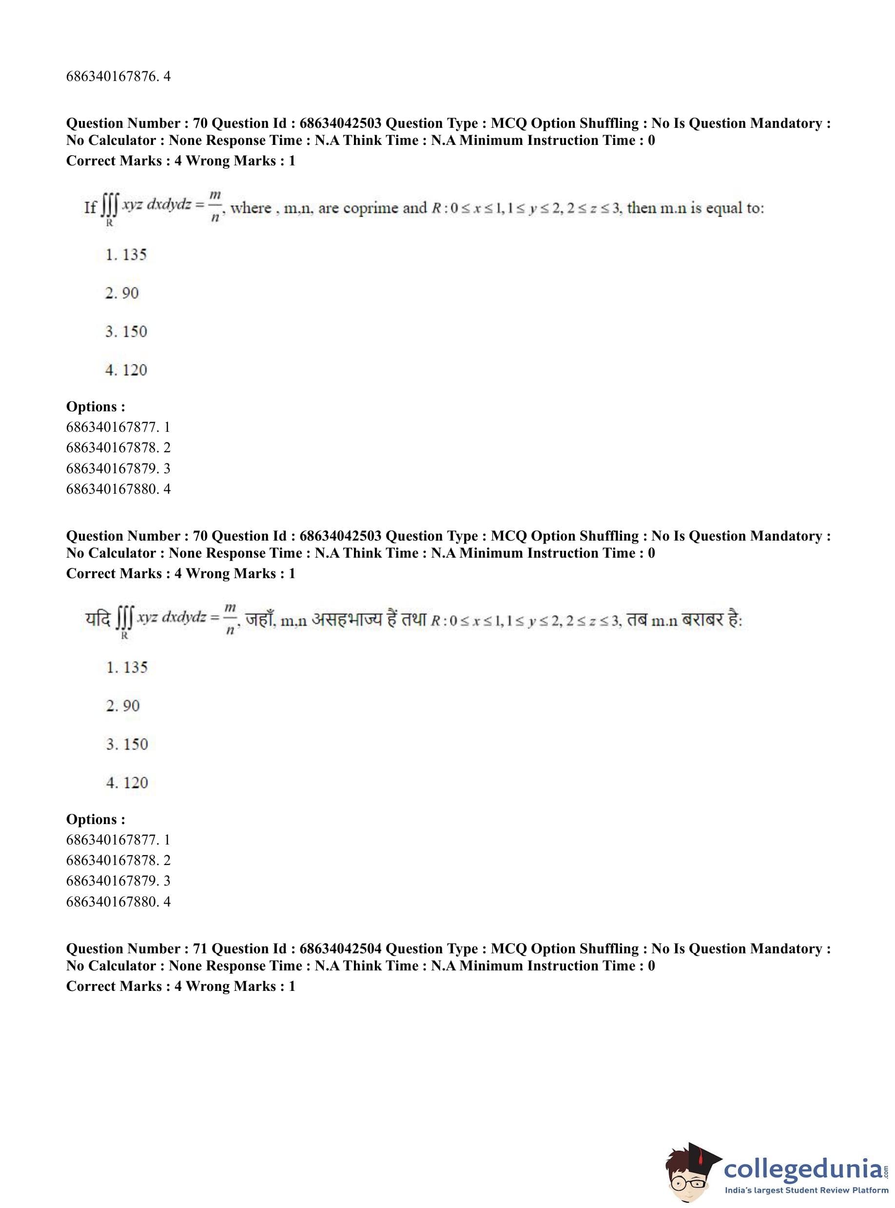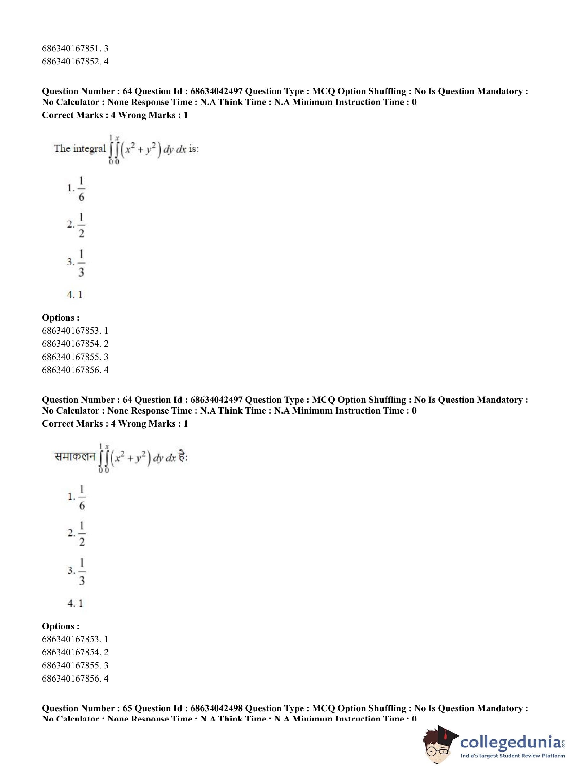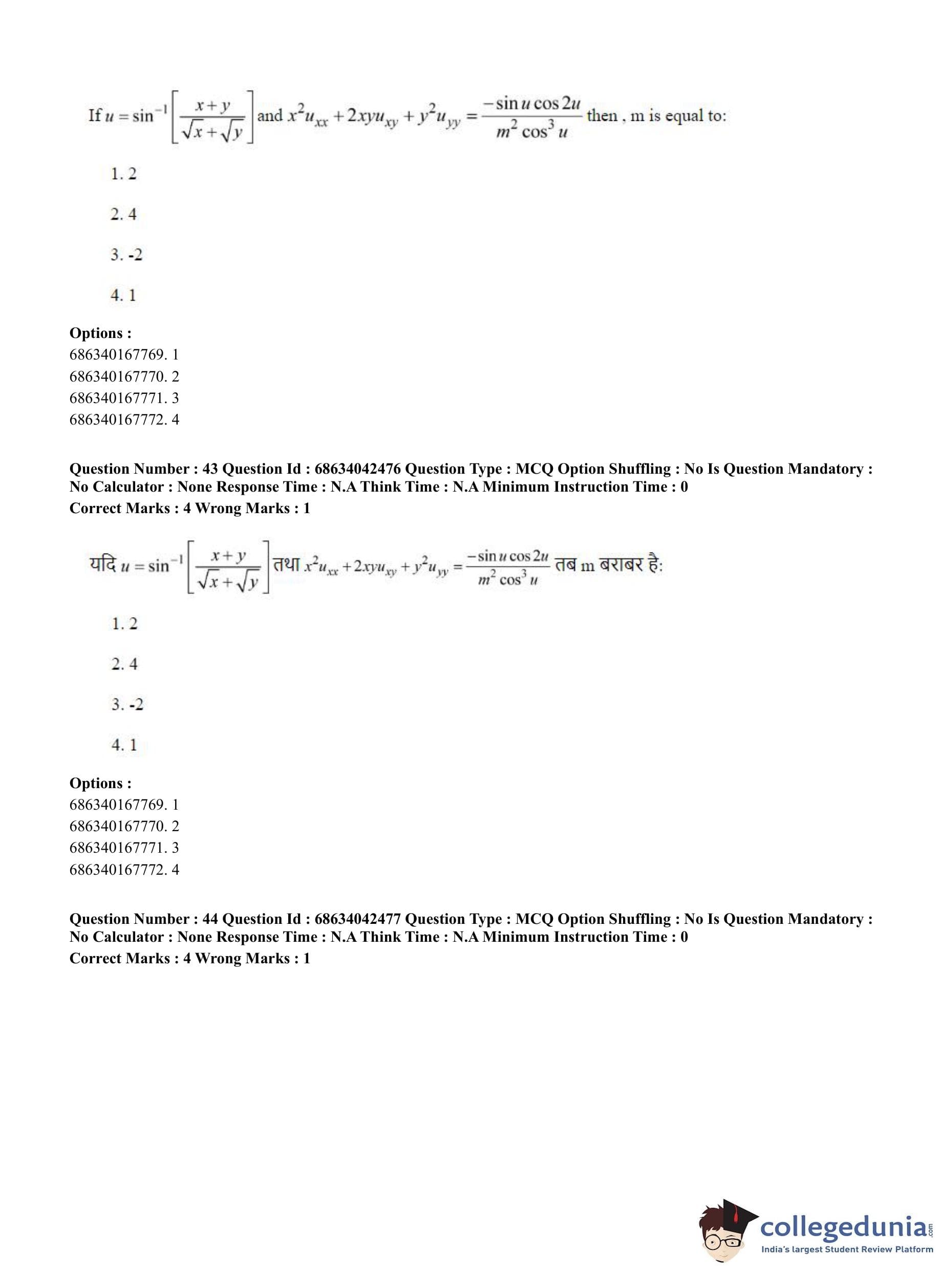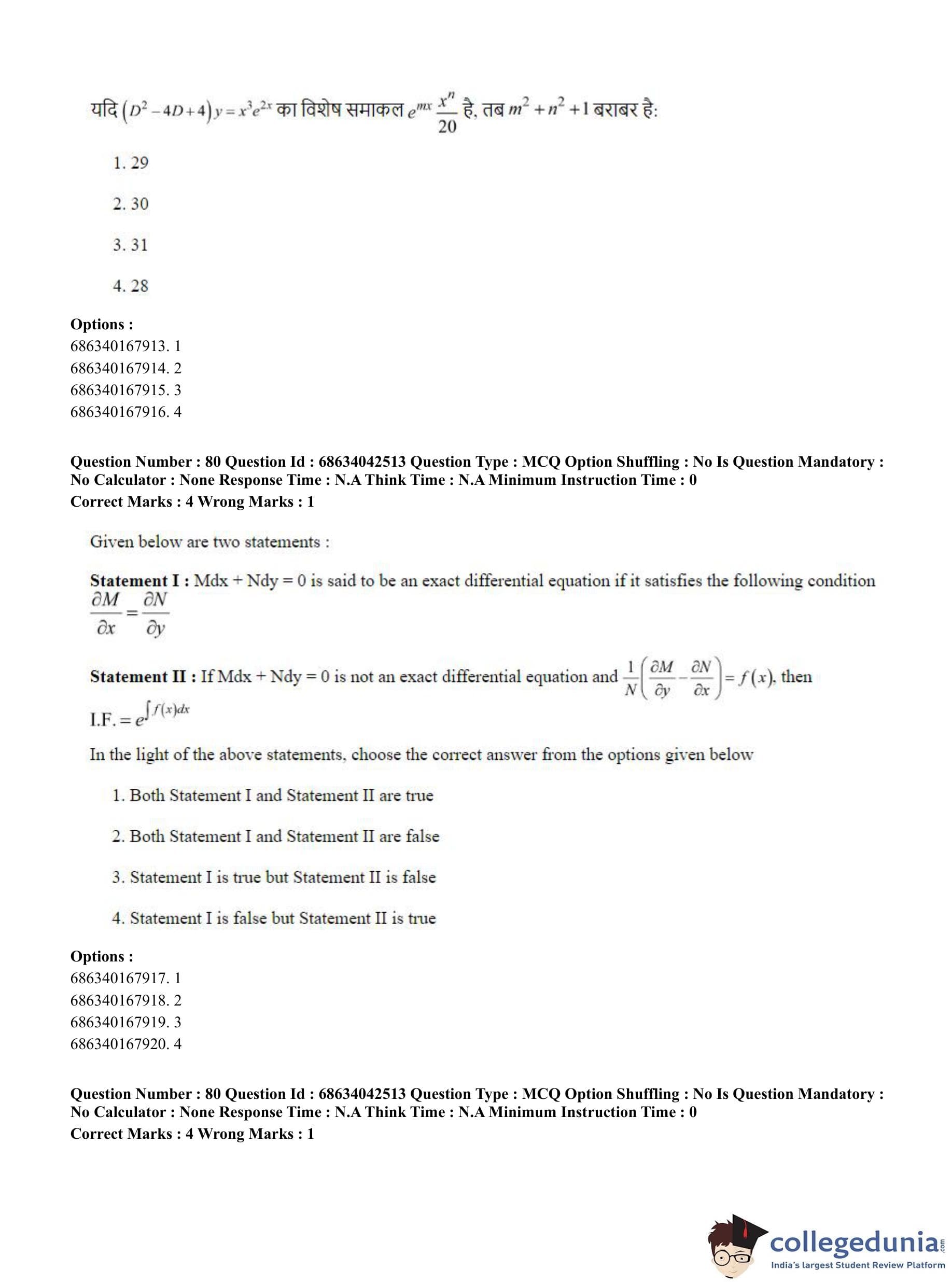 CUET PG 2023 Mathematics Question Paper in English (June 30 - Shift 3)