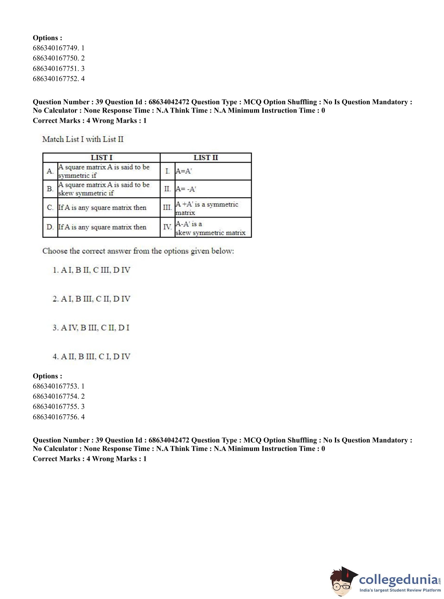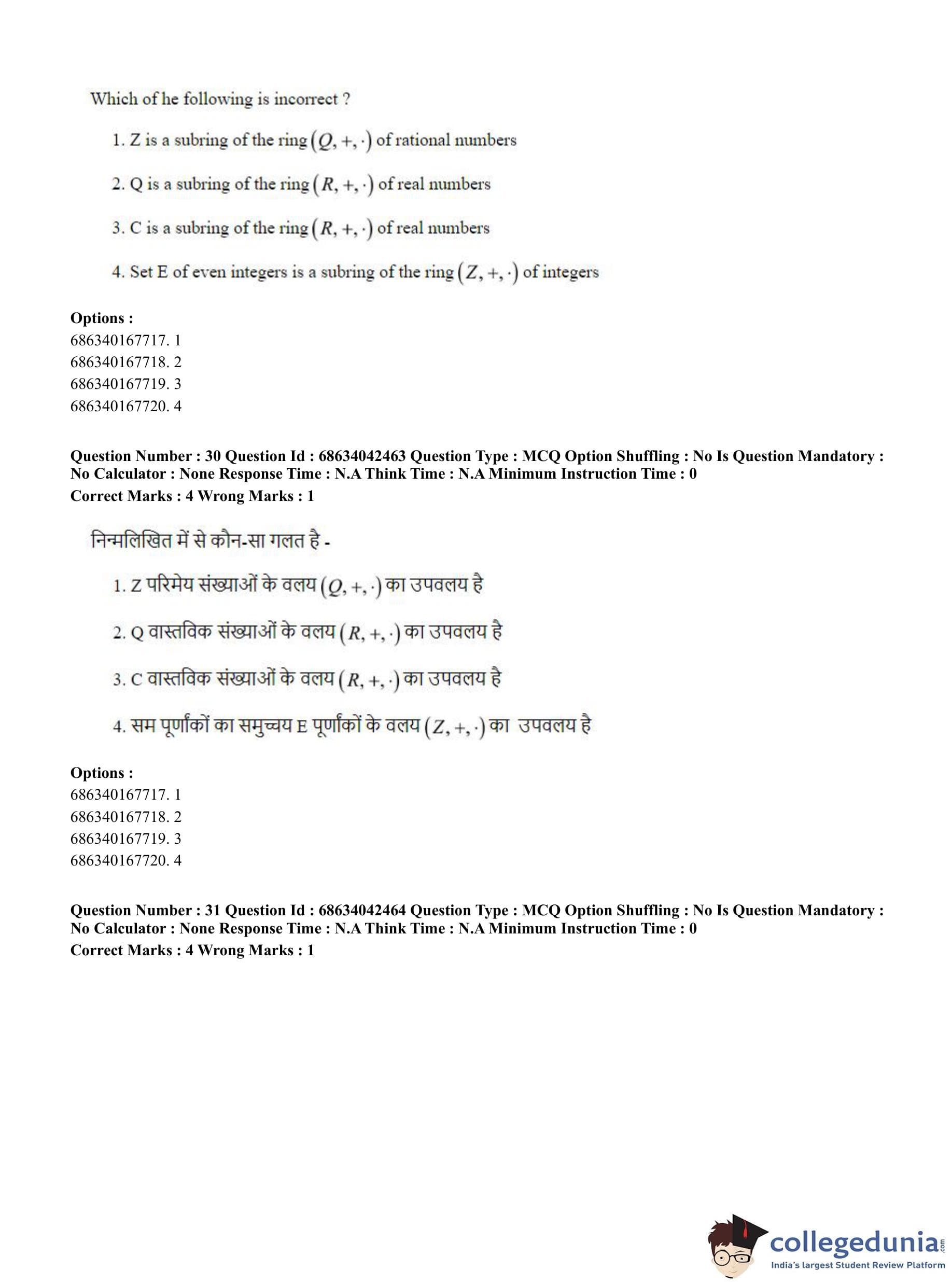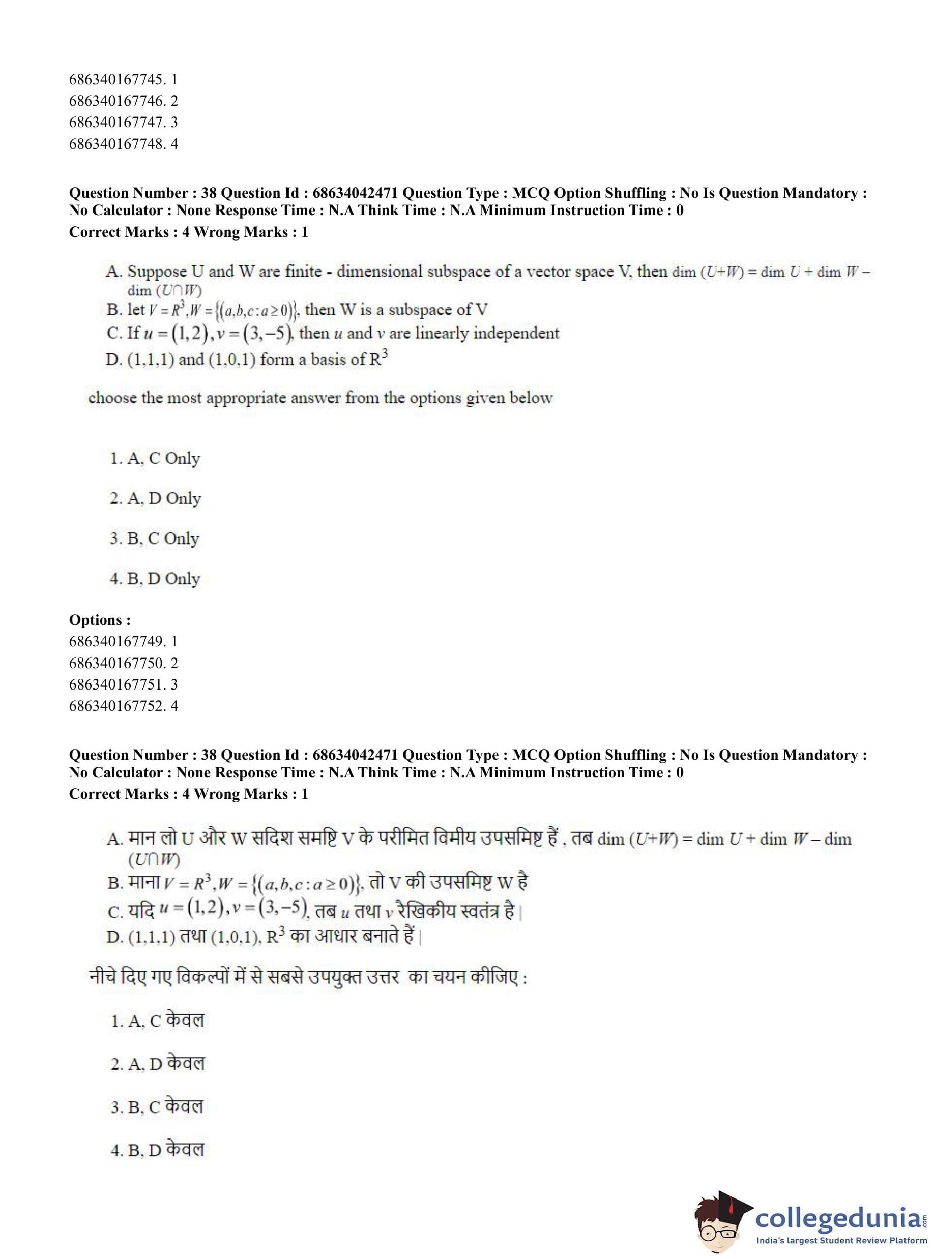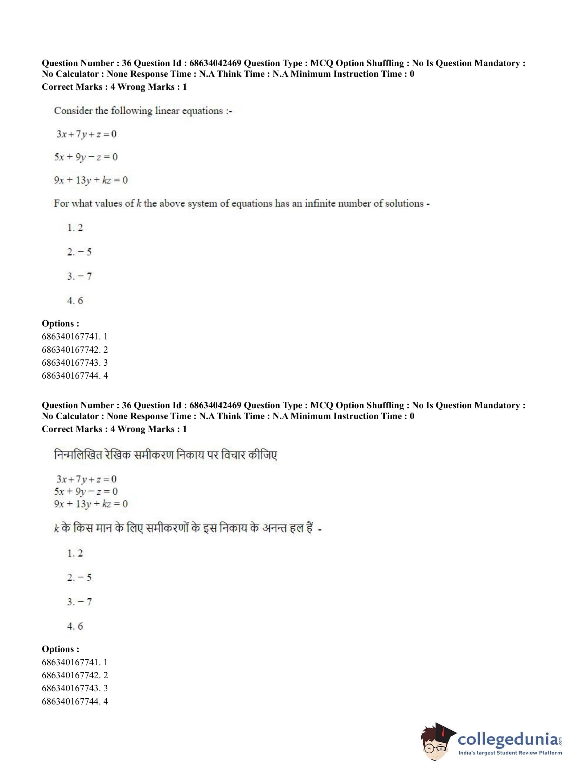 CUET PG 2023 Mathematics Question Paper in English (June 30 - Shift 3)