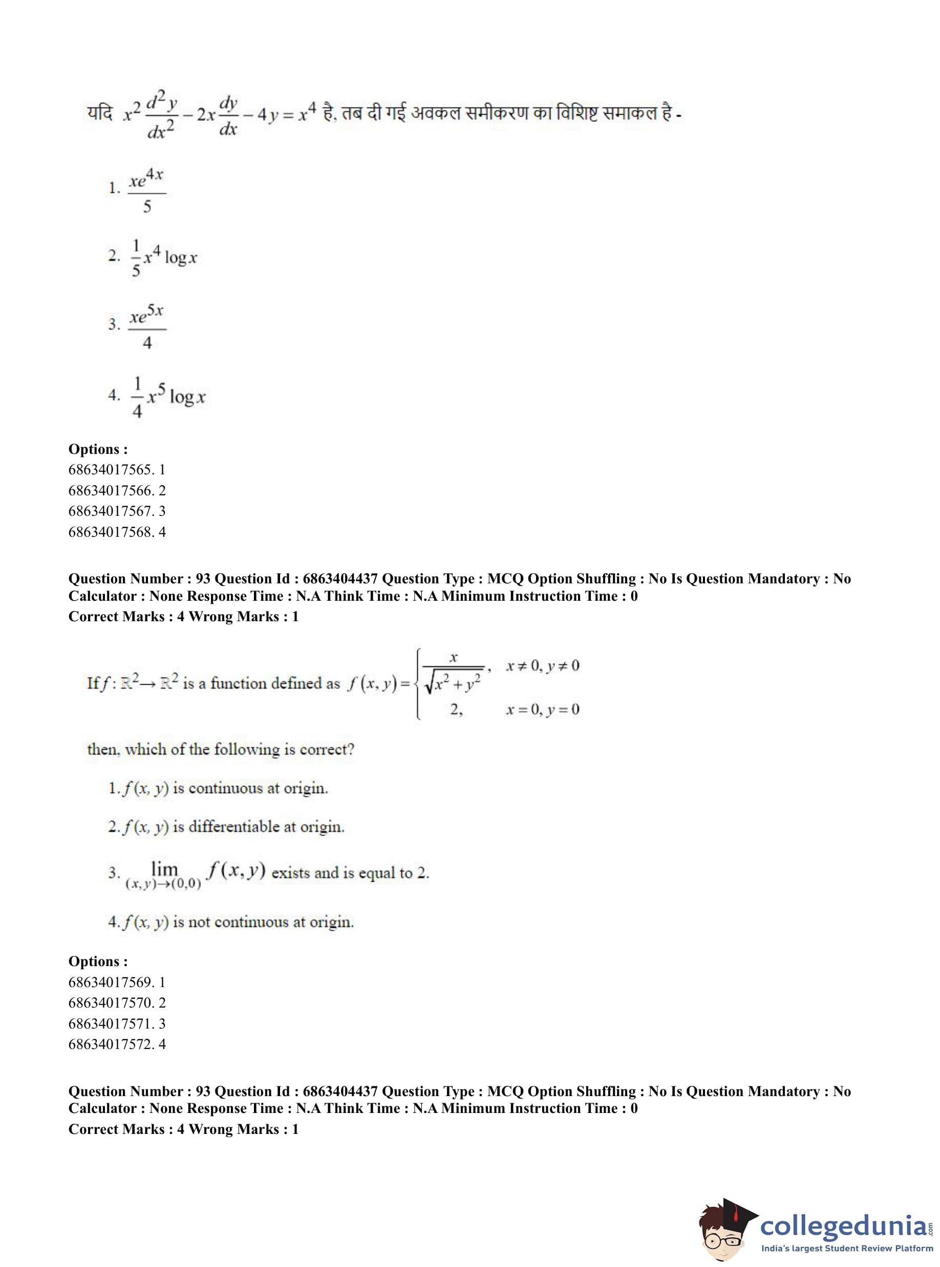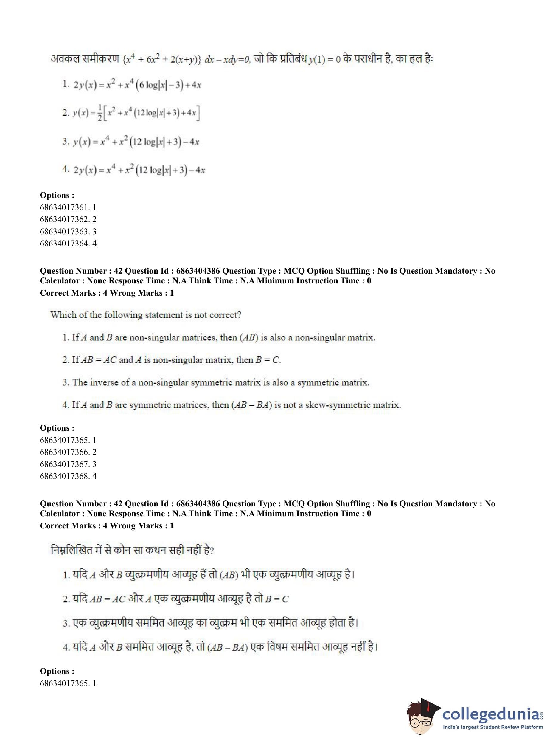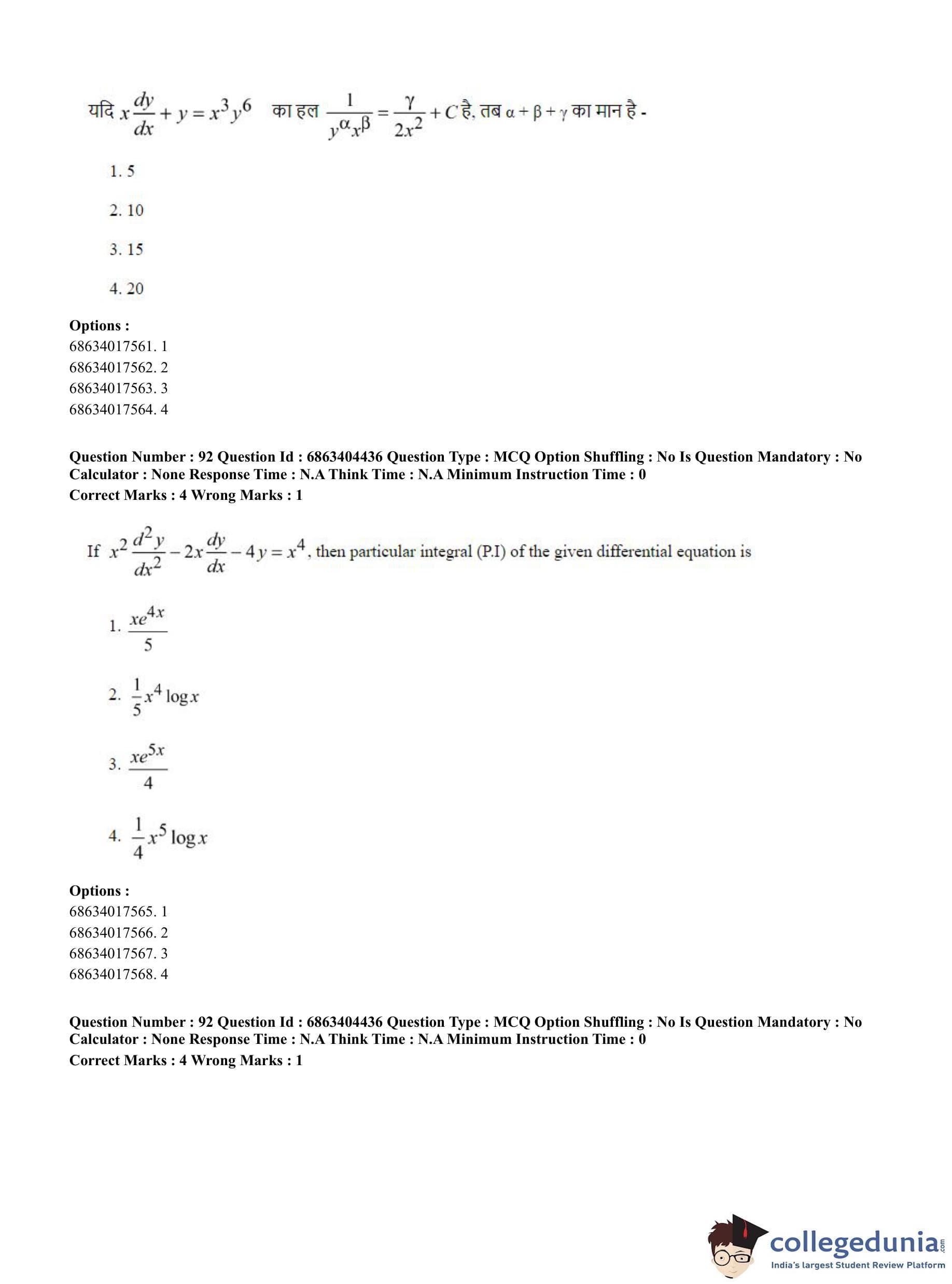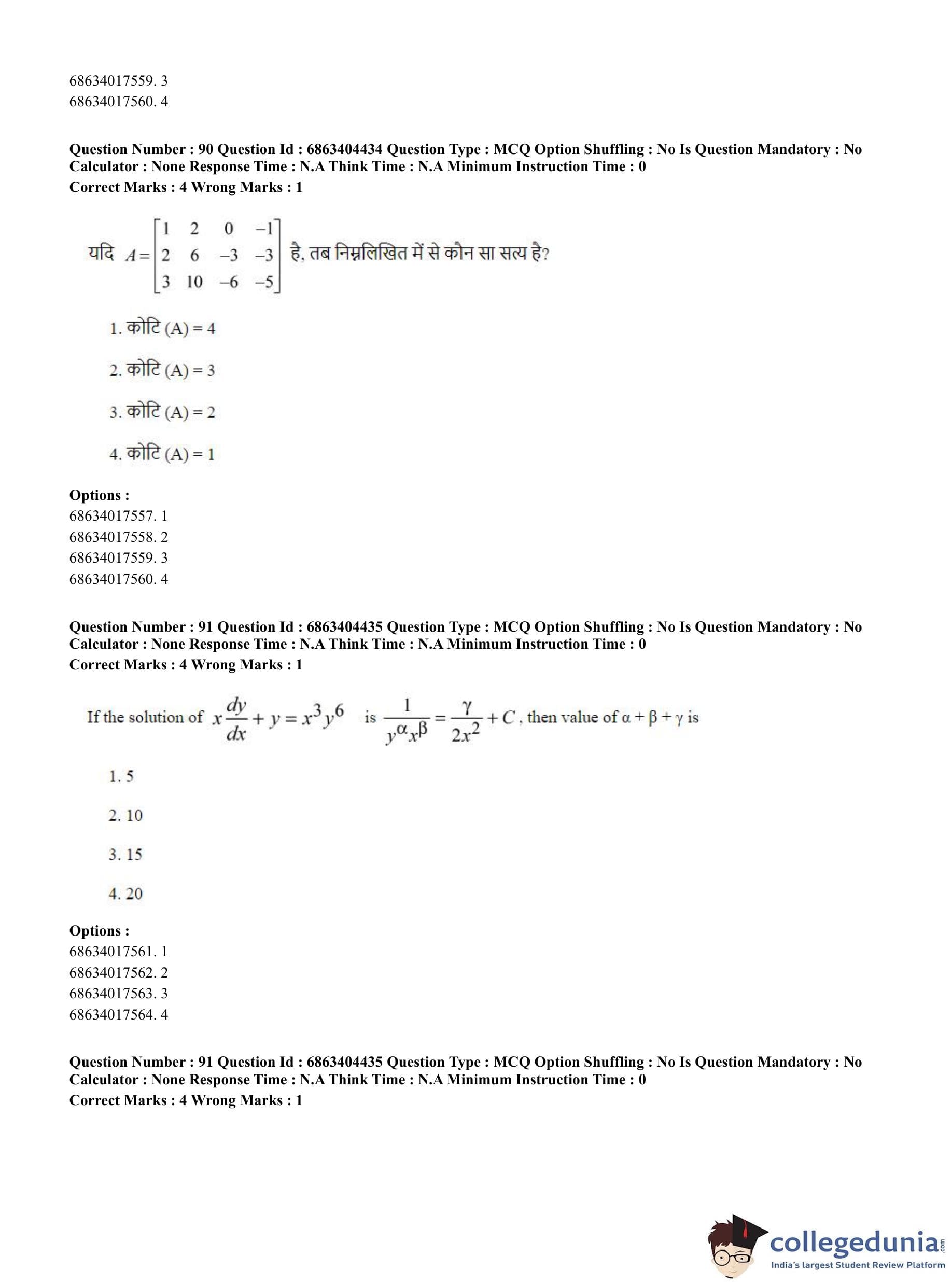 CUET PG 2023 Mathematics Question Paper in English (June 5 - Shift 1)