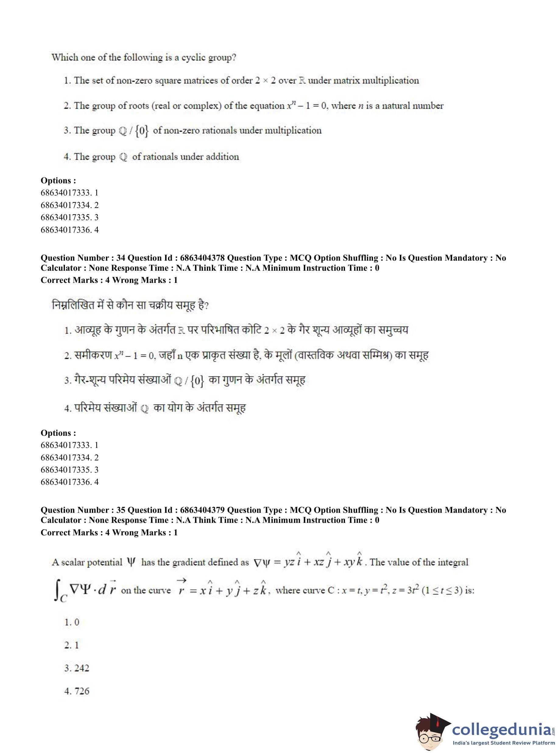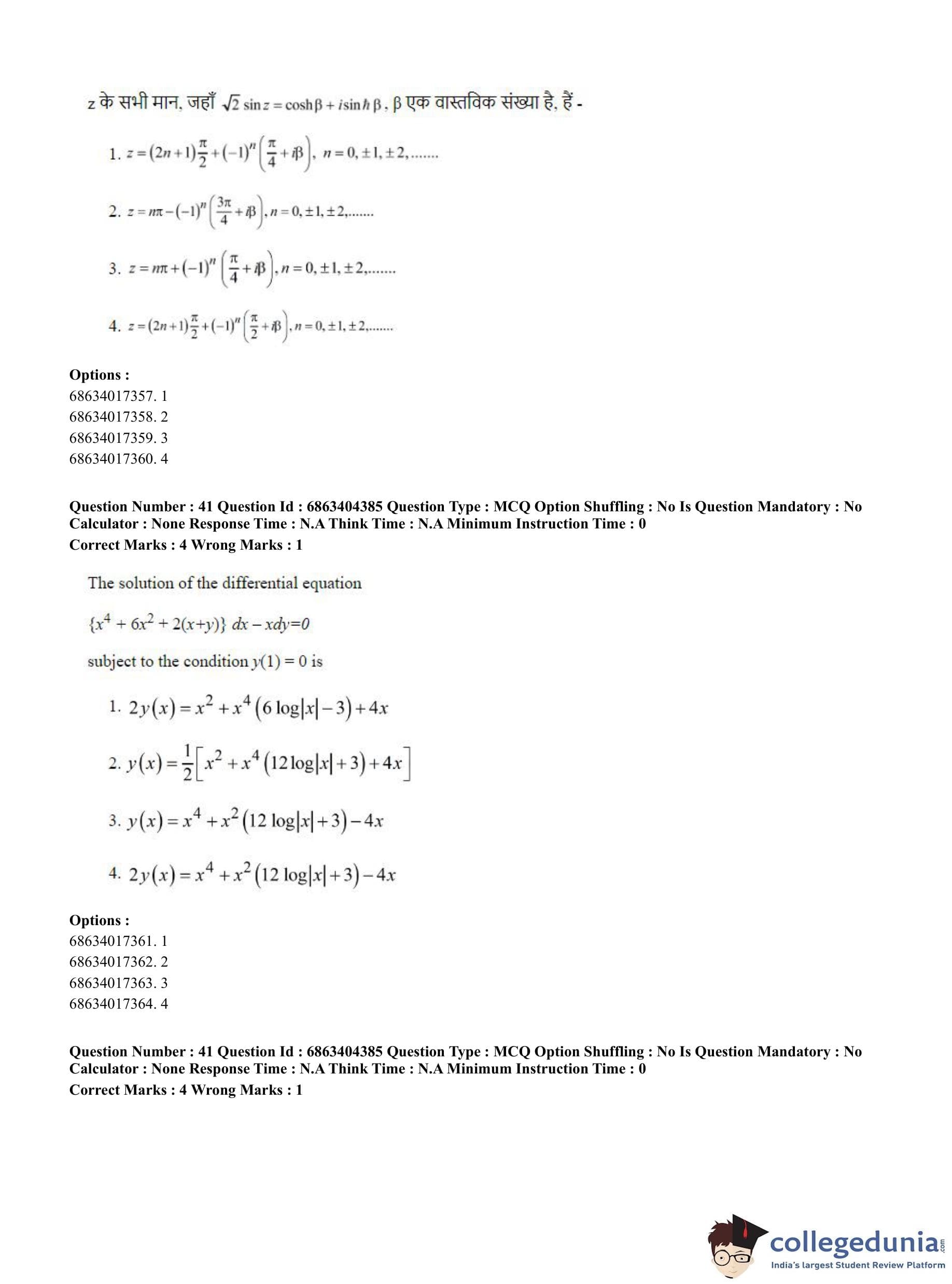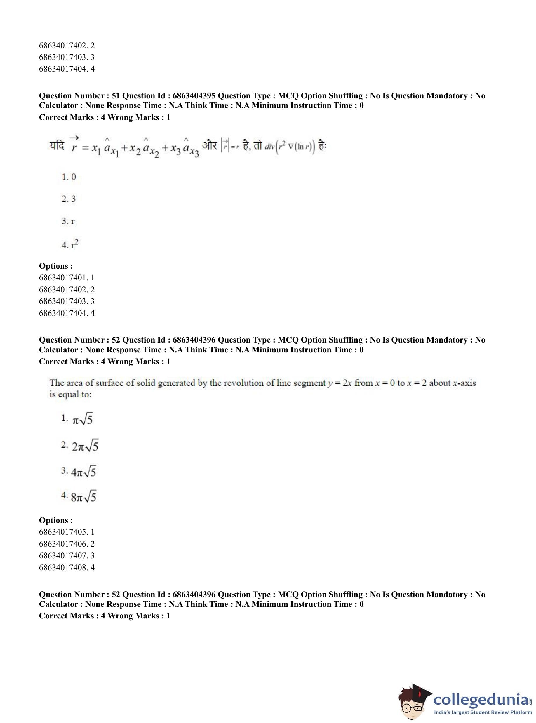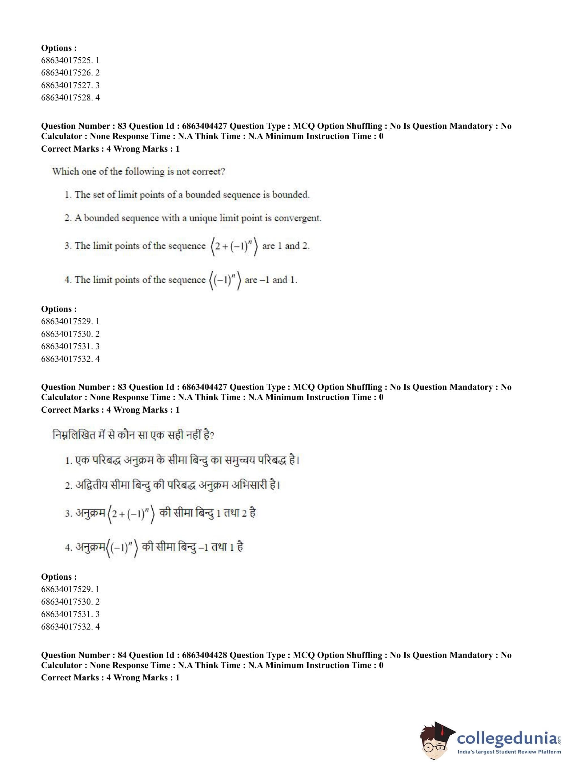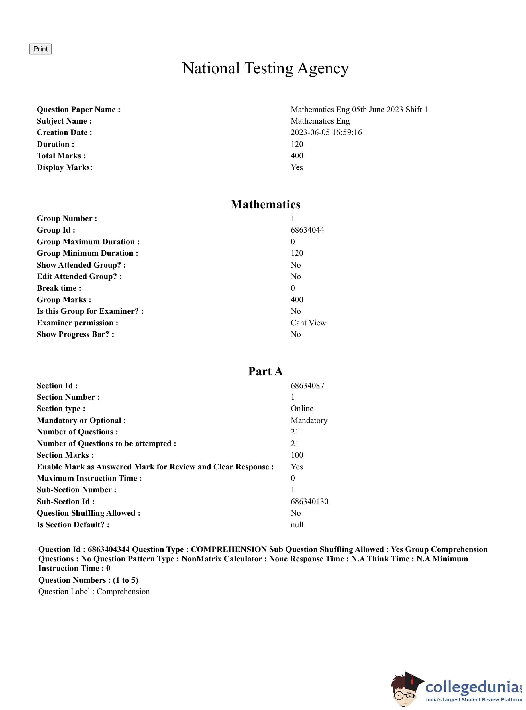 CUET PG 2023 Mathematics Question Paper in English (June 5 - Shift 1)