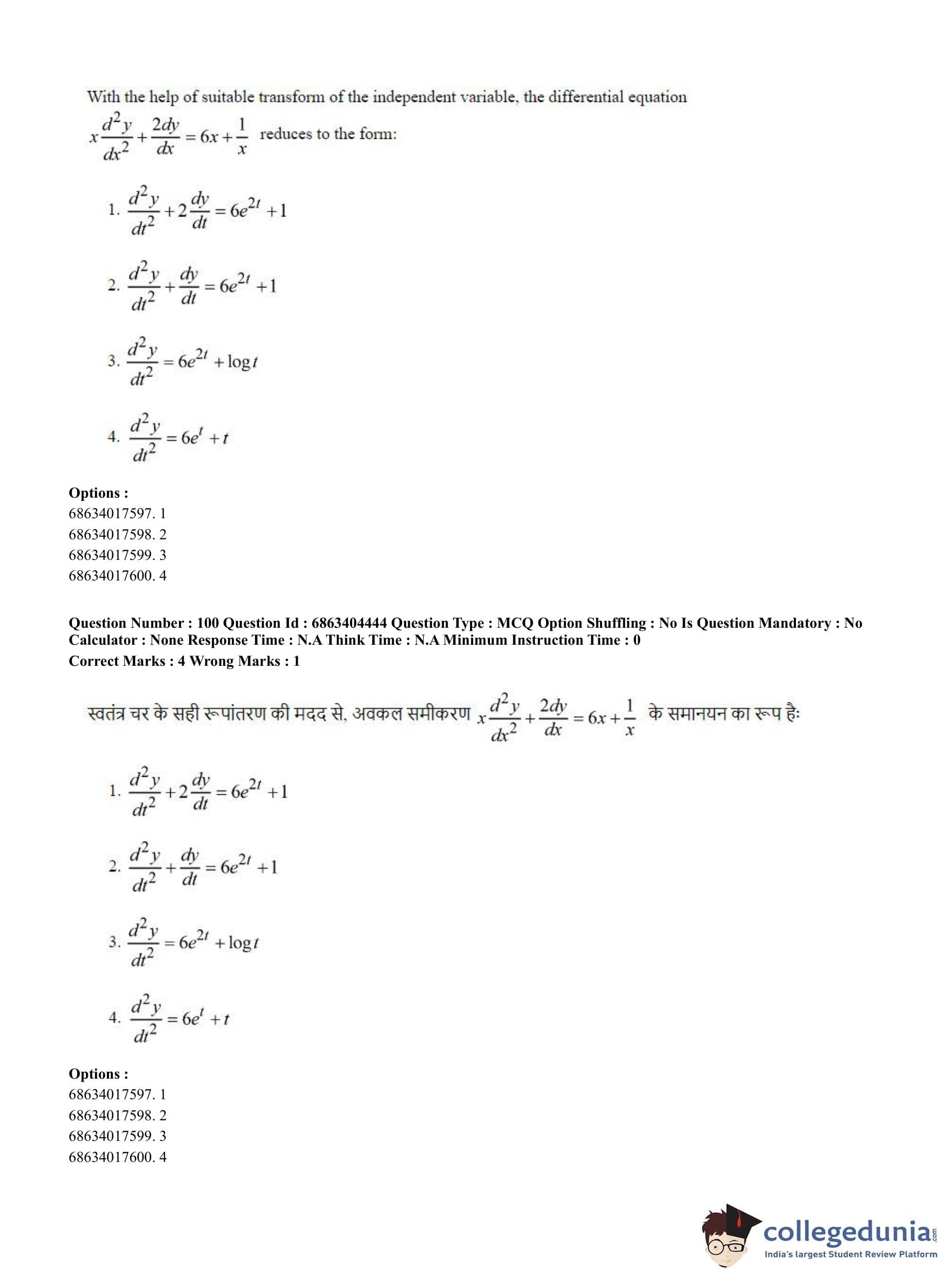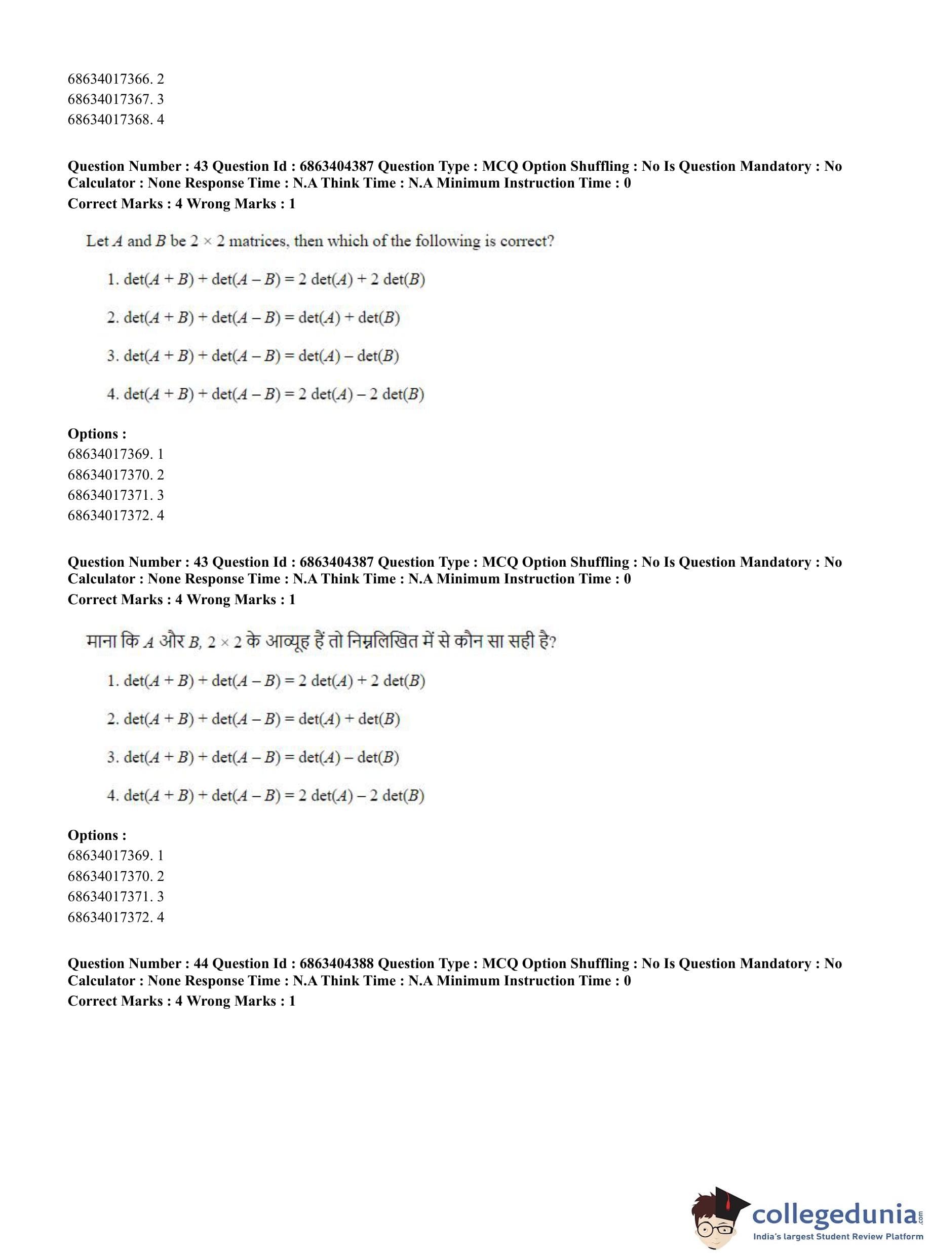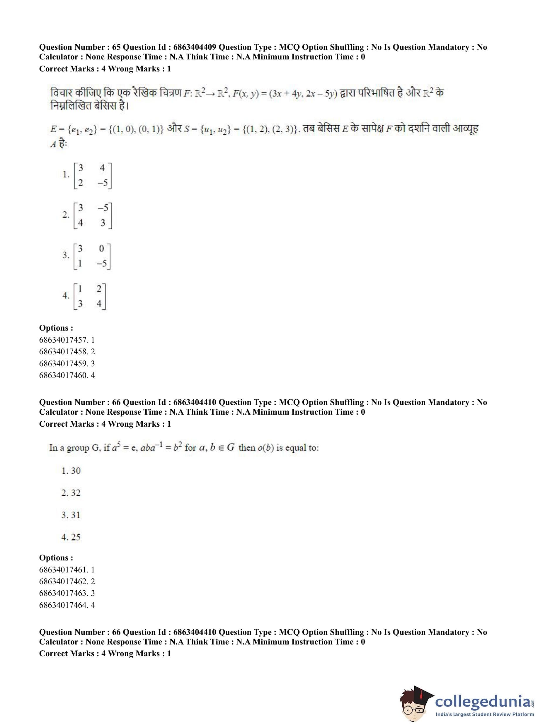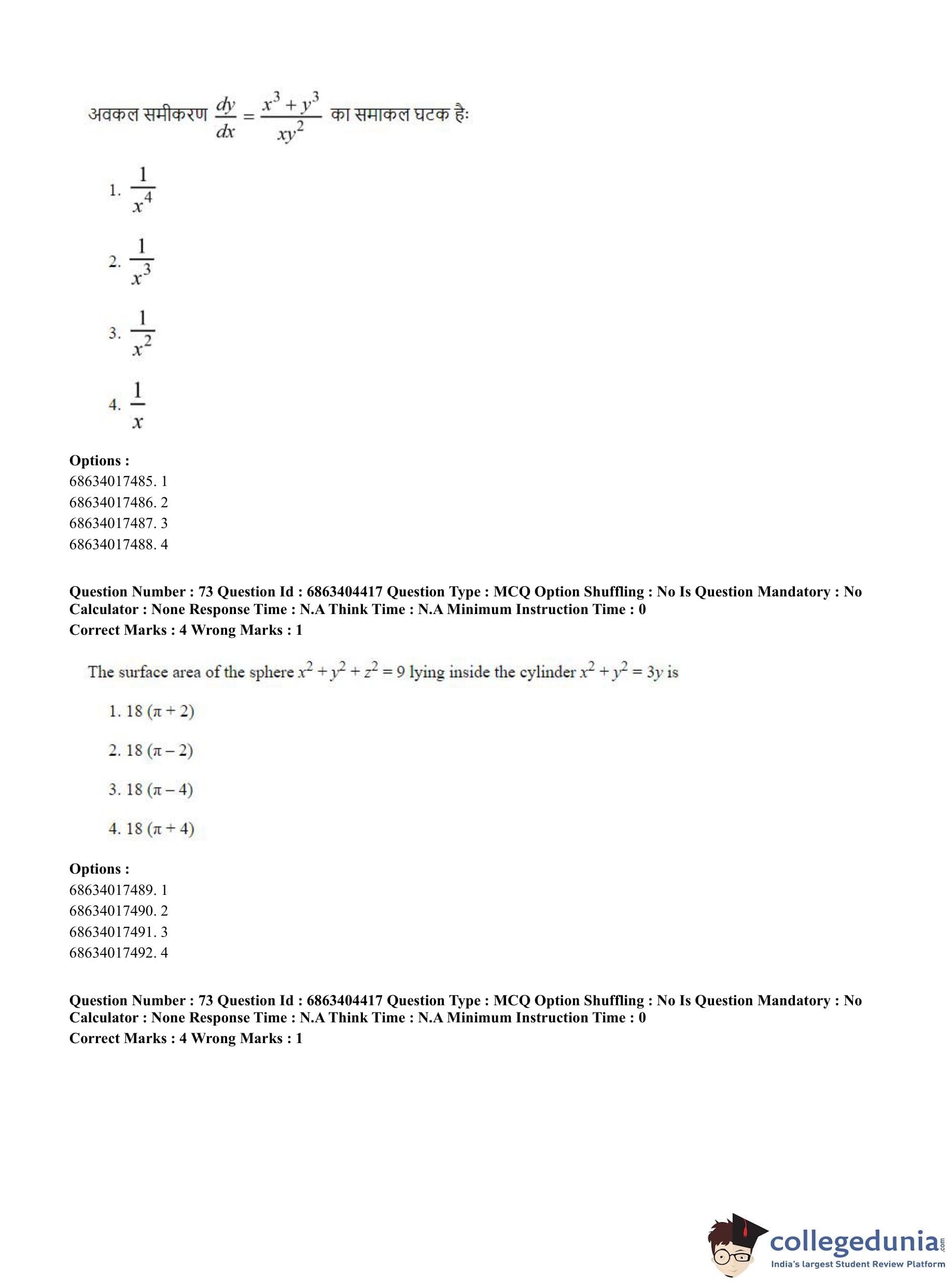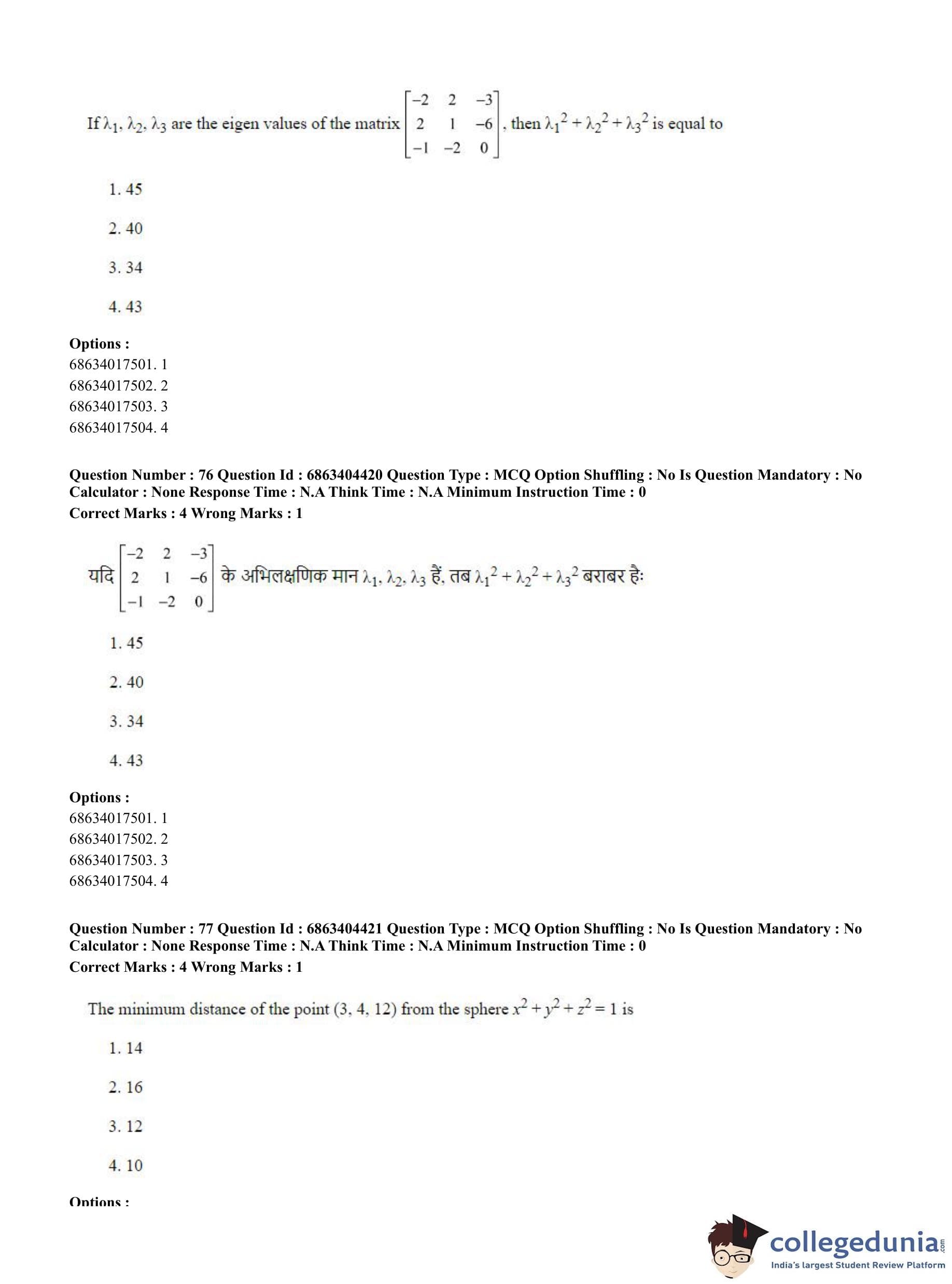 CUET PG 2023 Mathematics Question Paper with Answer Key PDF in English is available for download here. The exam was conducted by National Testing Agency (NTA) on June 5, 2023 in Shift 1. The question paper comprised a total of 100 questions divided into 2 sections.