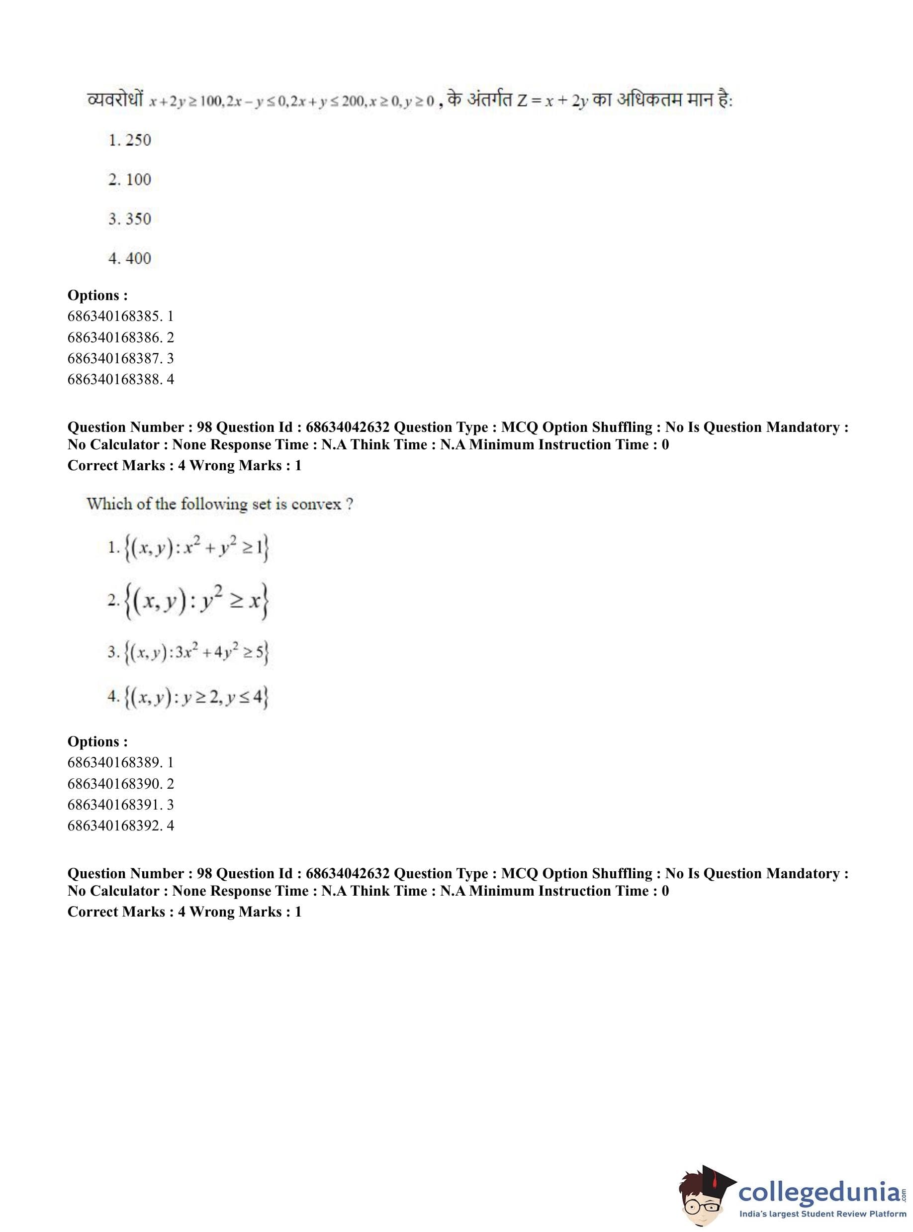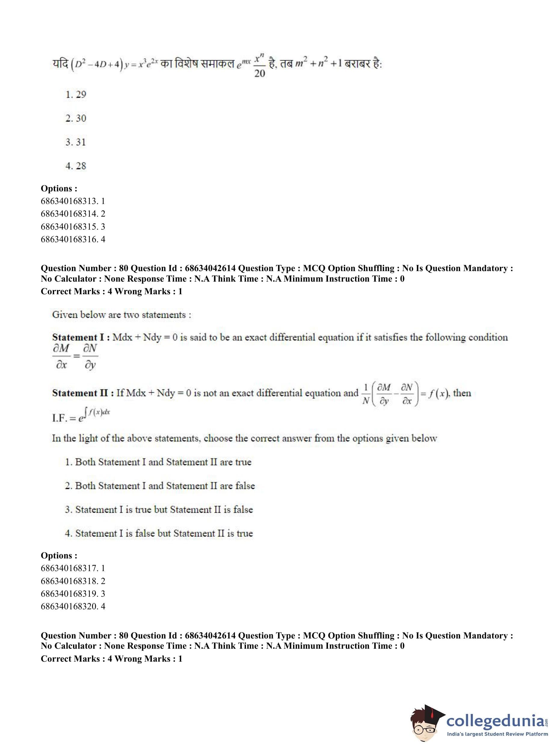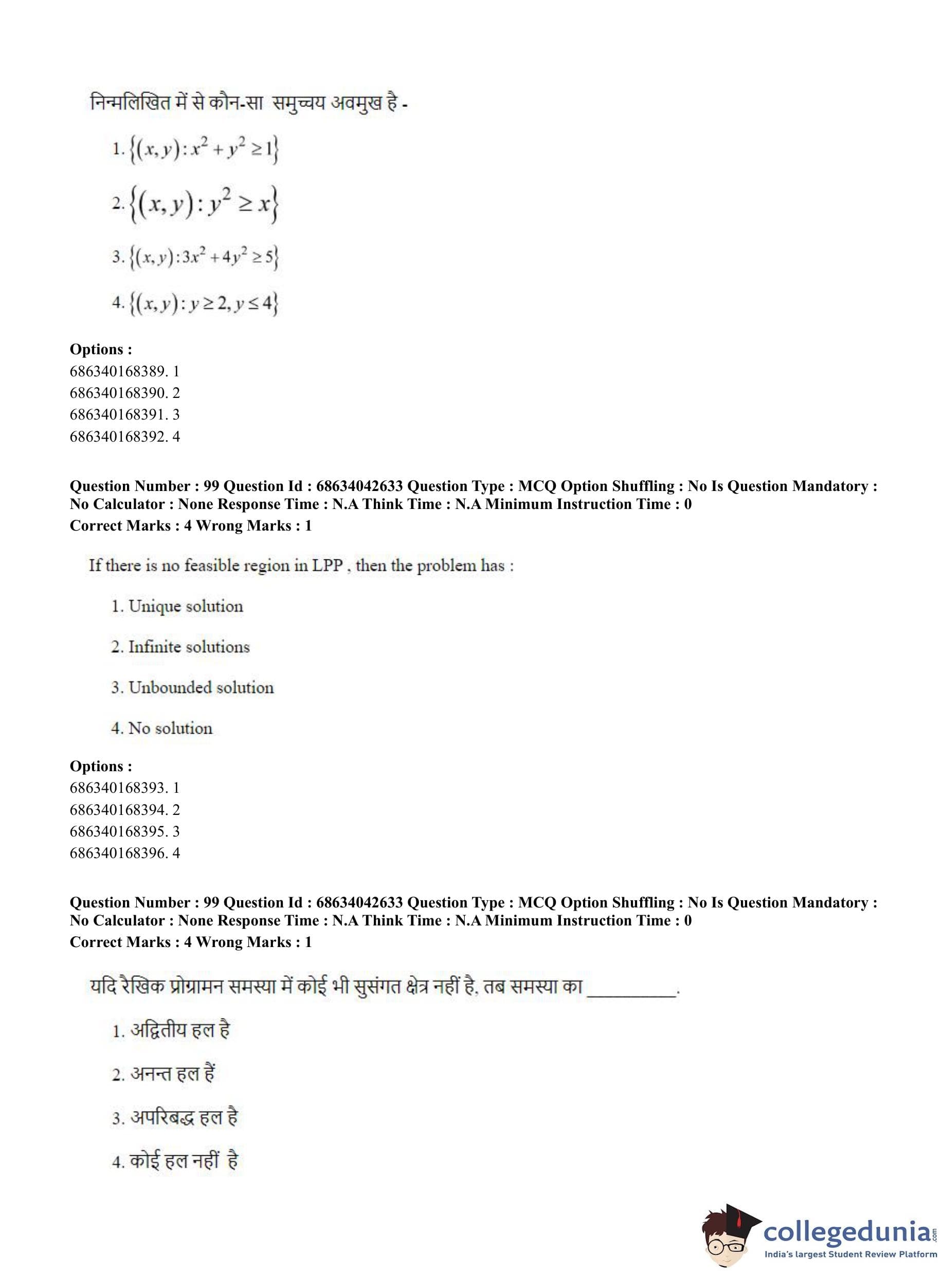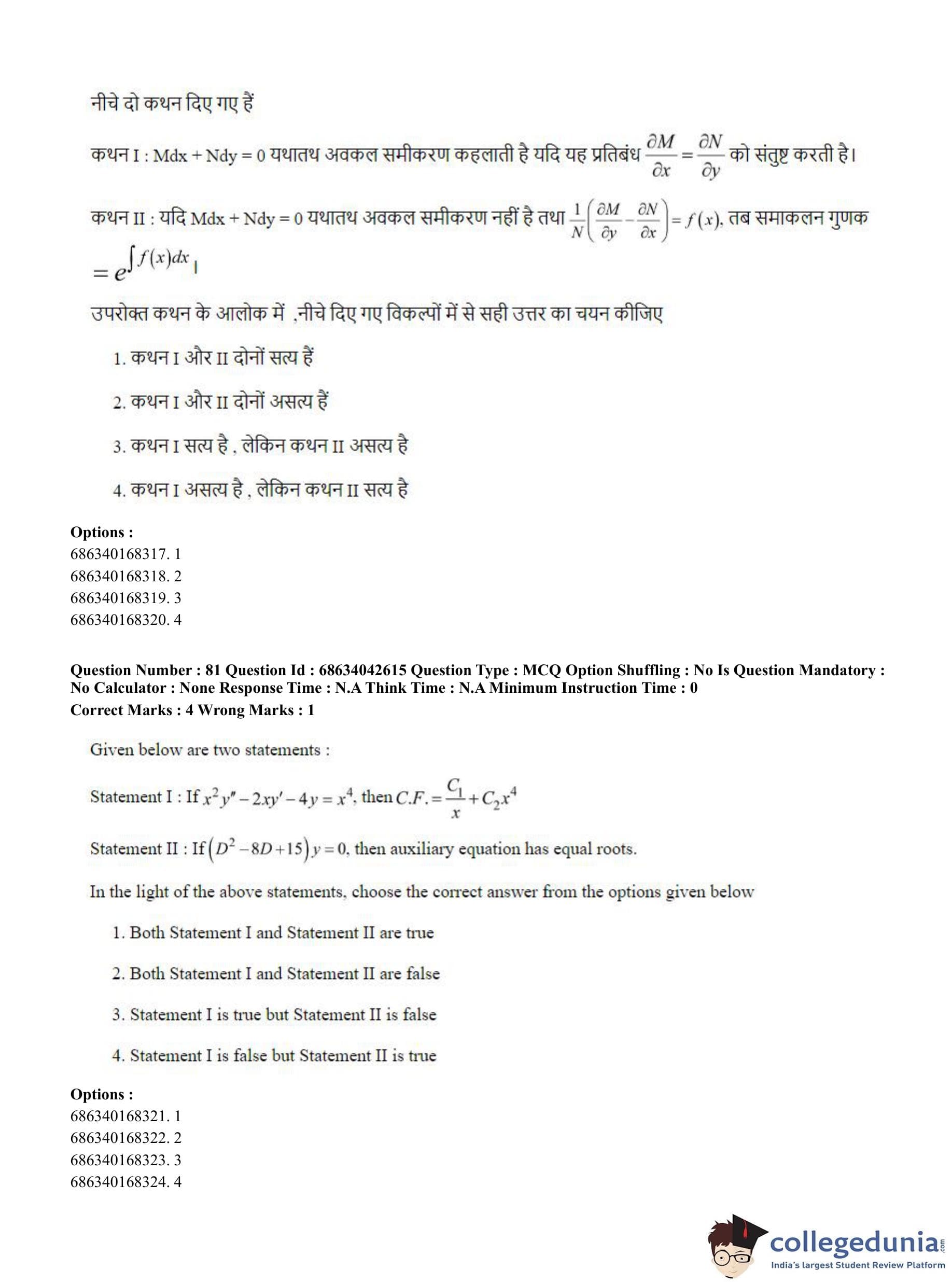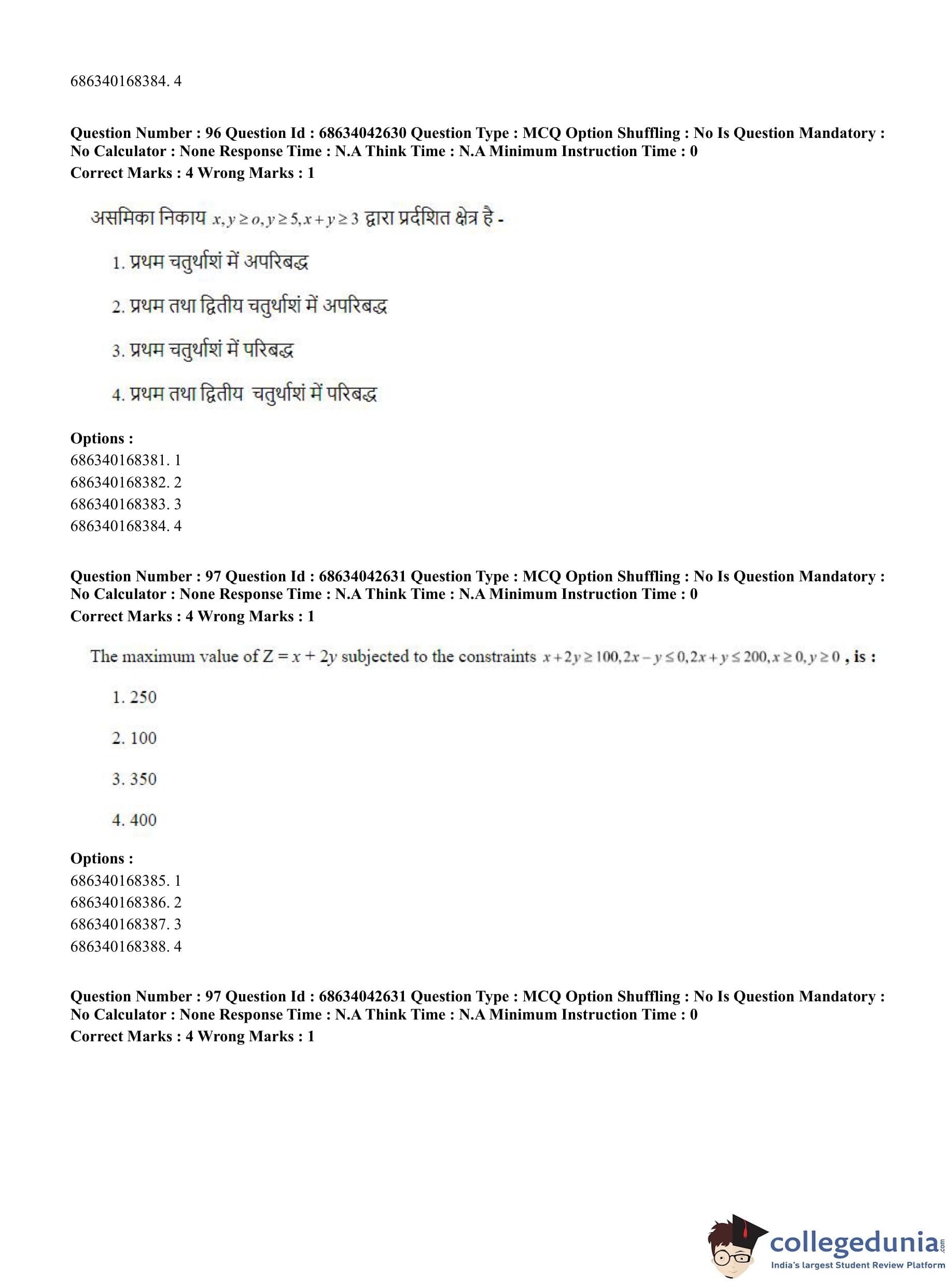 CUET PG 2023 Mathematics Question Paper in Hindi (June 30 - Shift 3)
