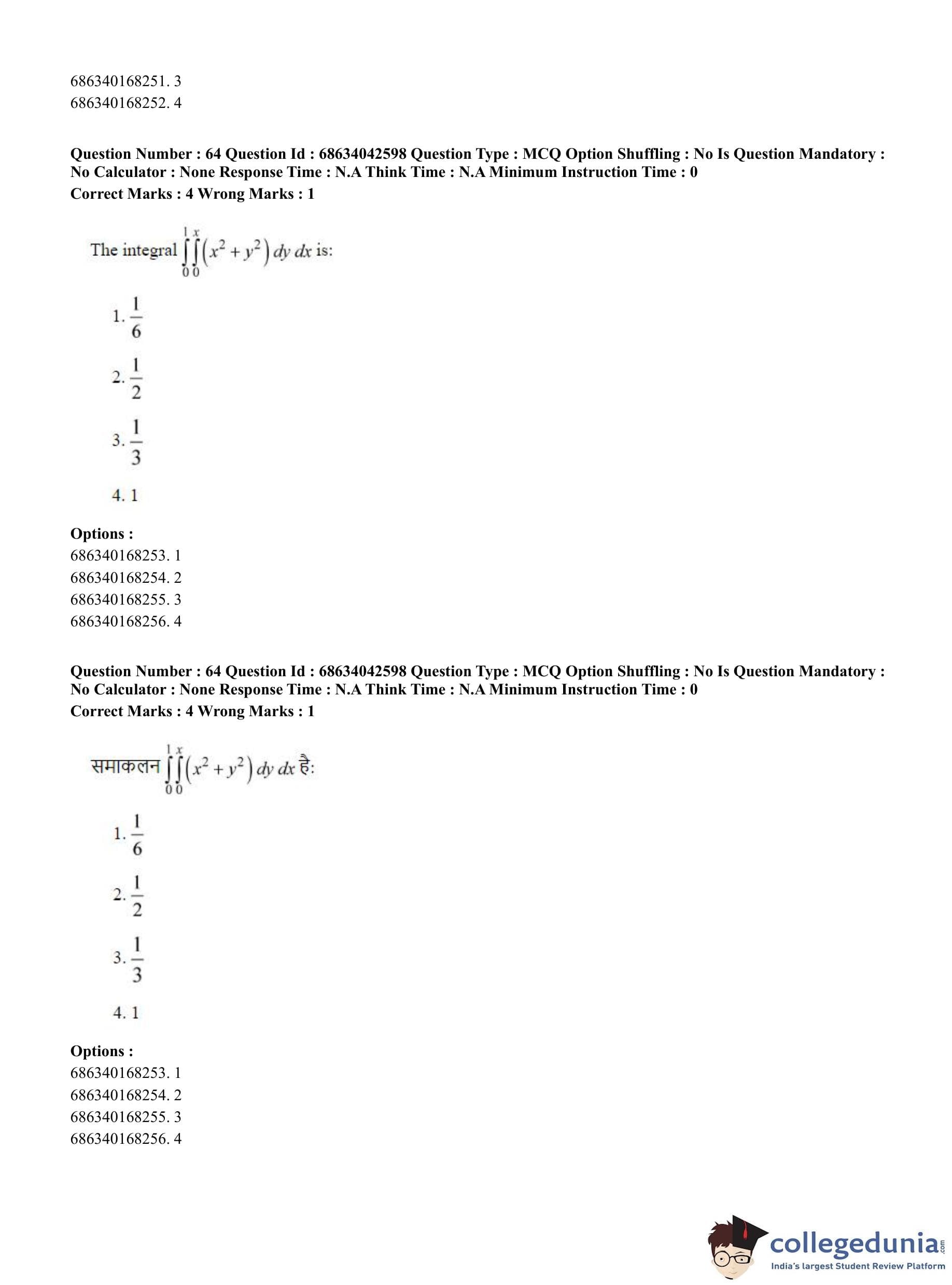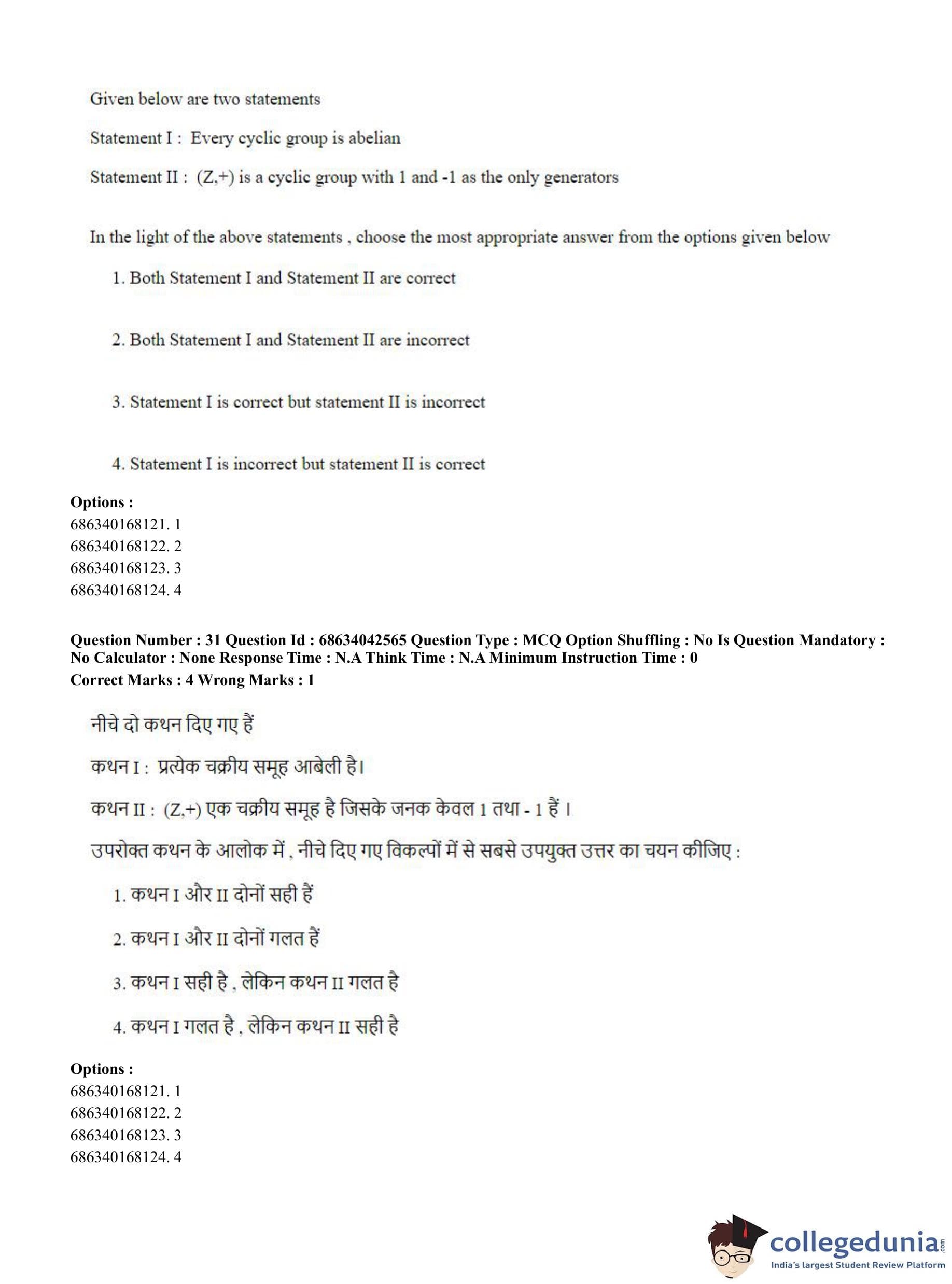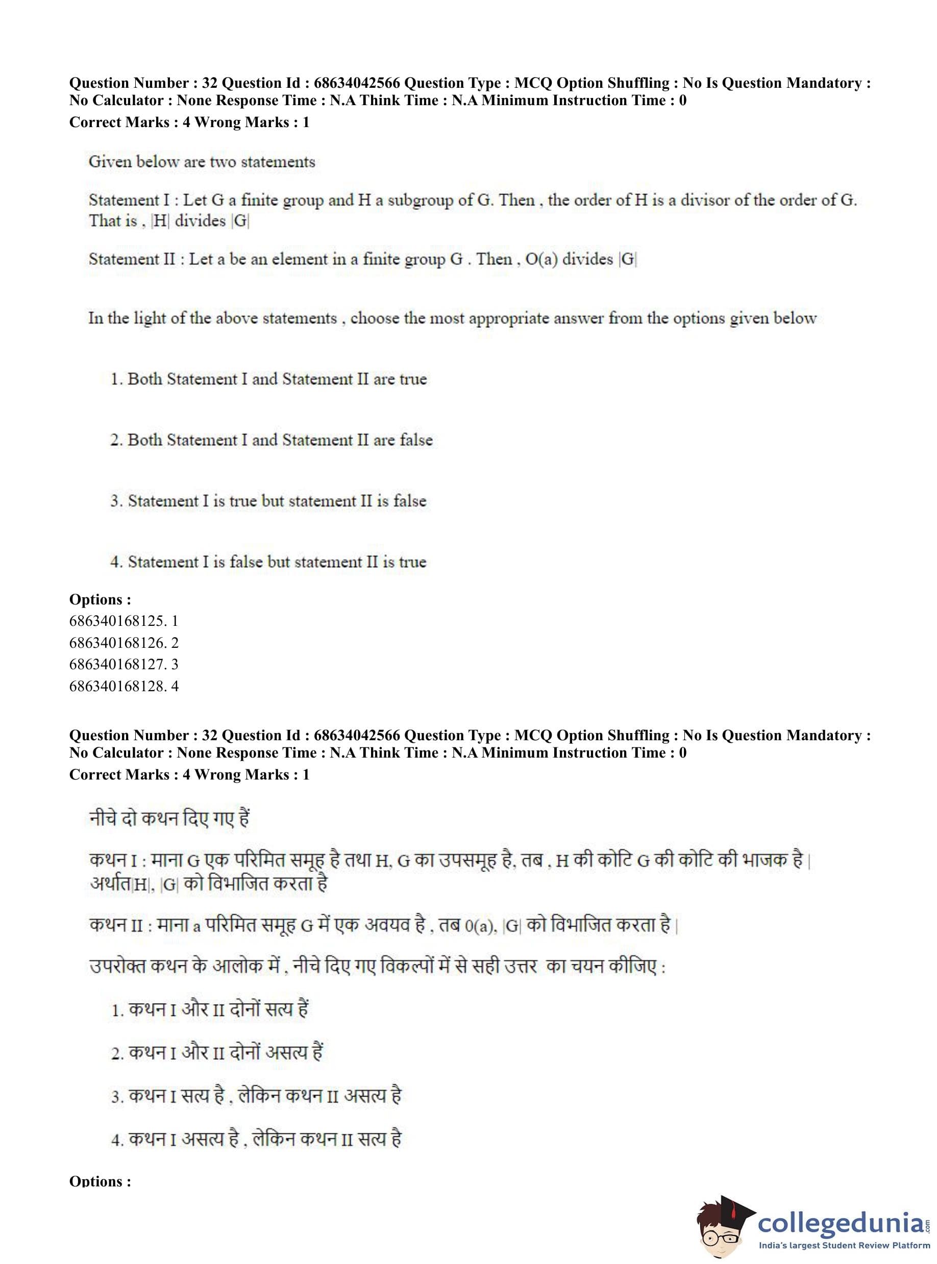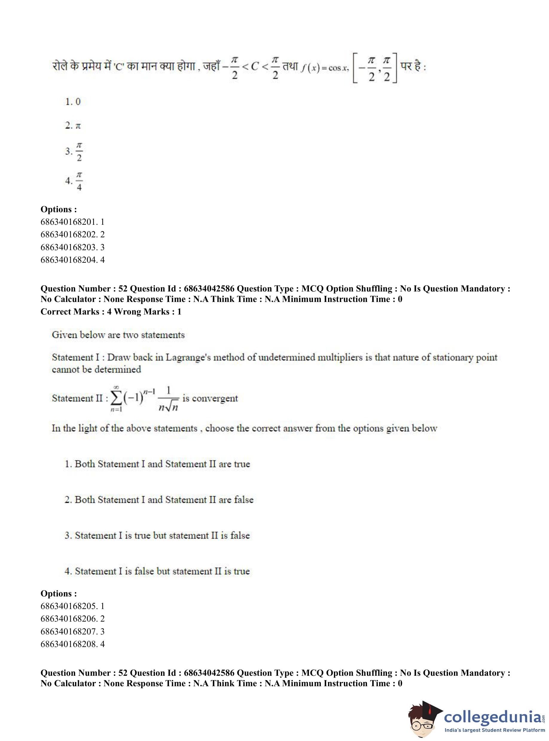 CUET PG 2023 Mathematics Question Paper in Hindi (June 30 - Shift 3)