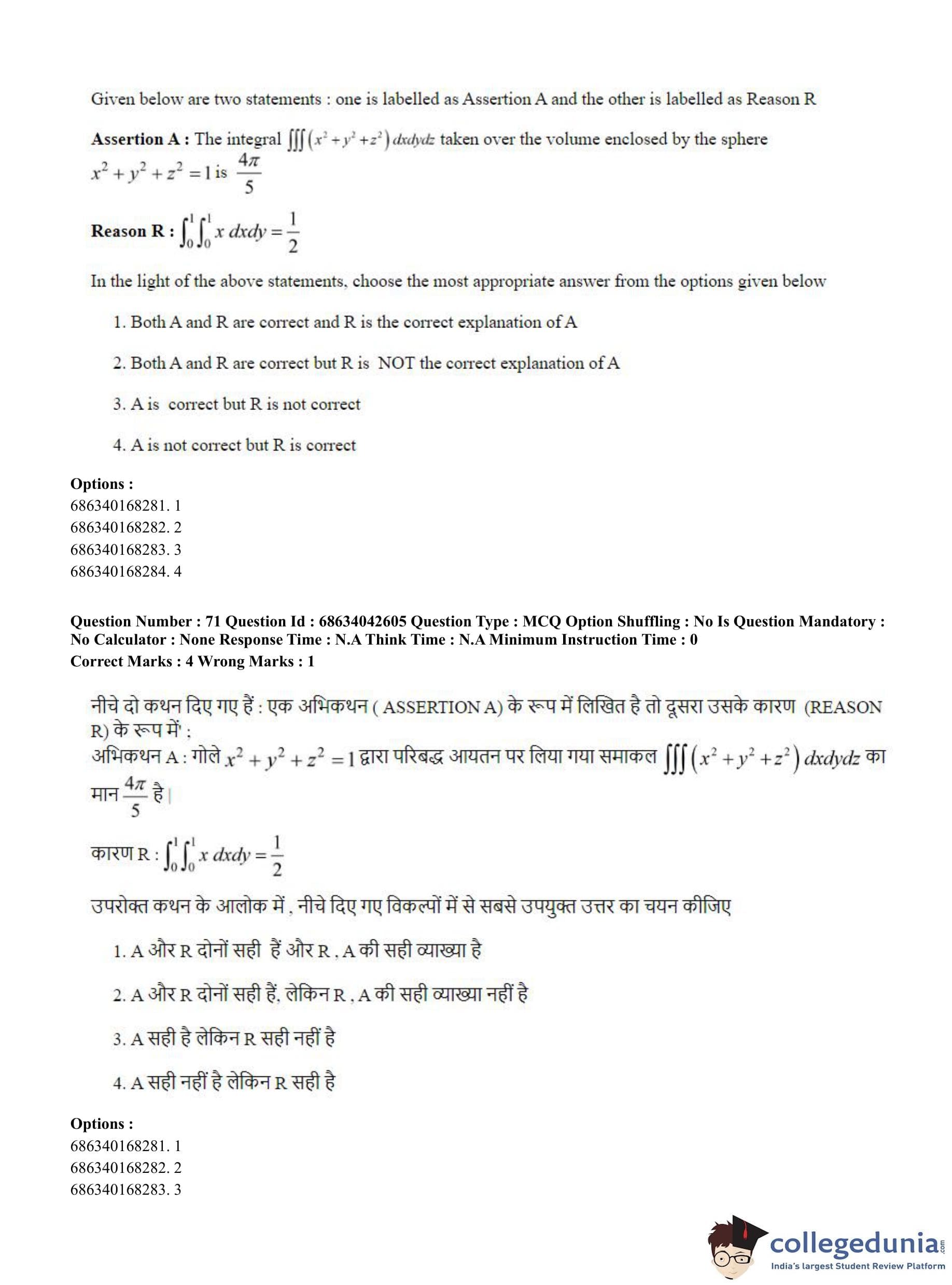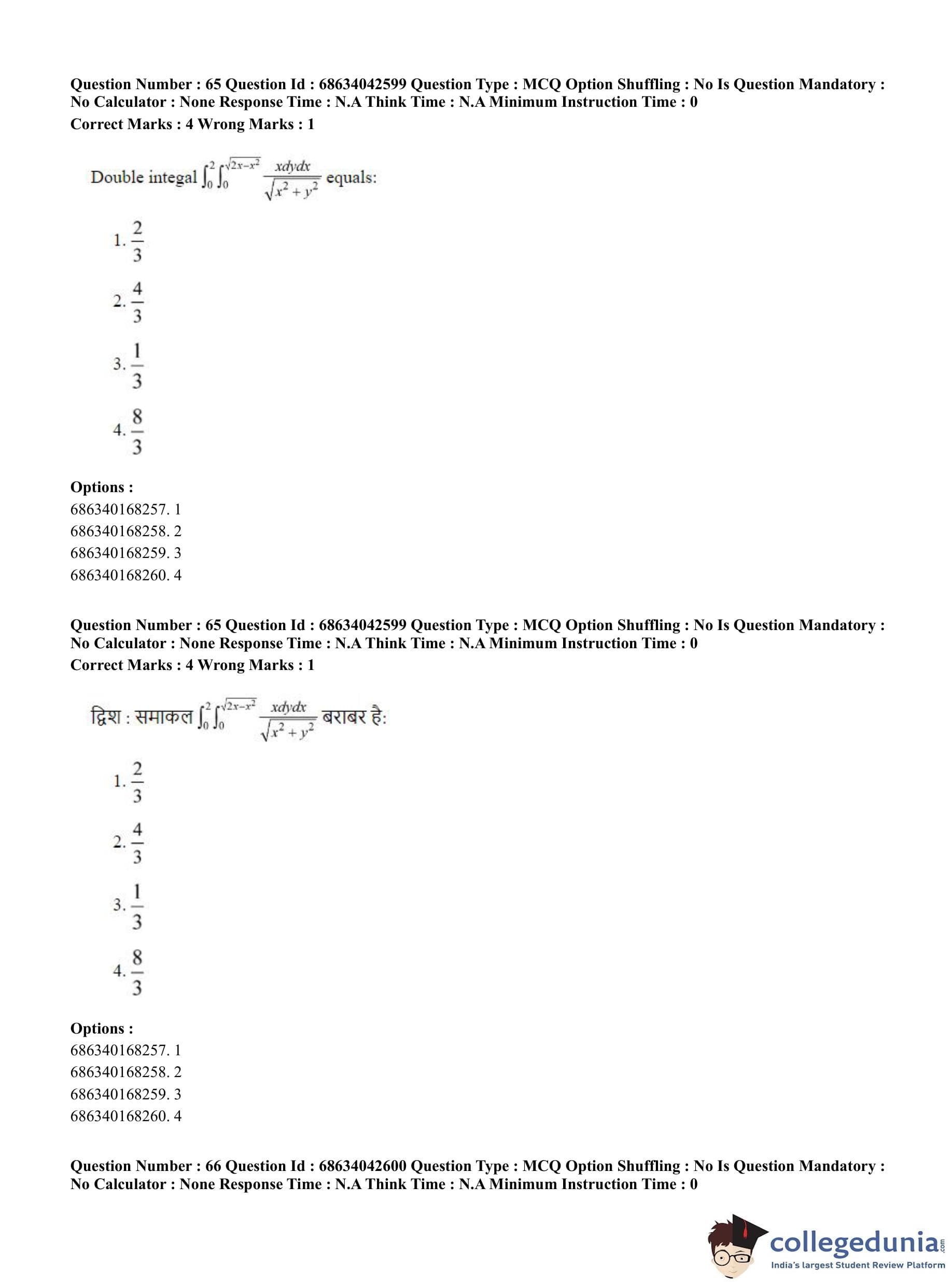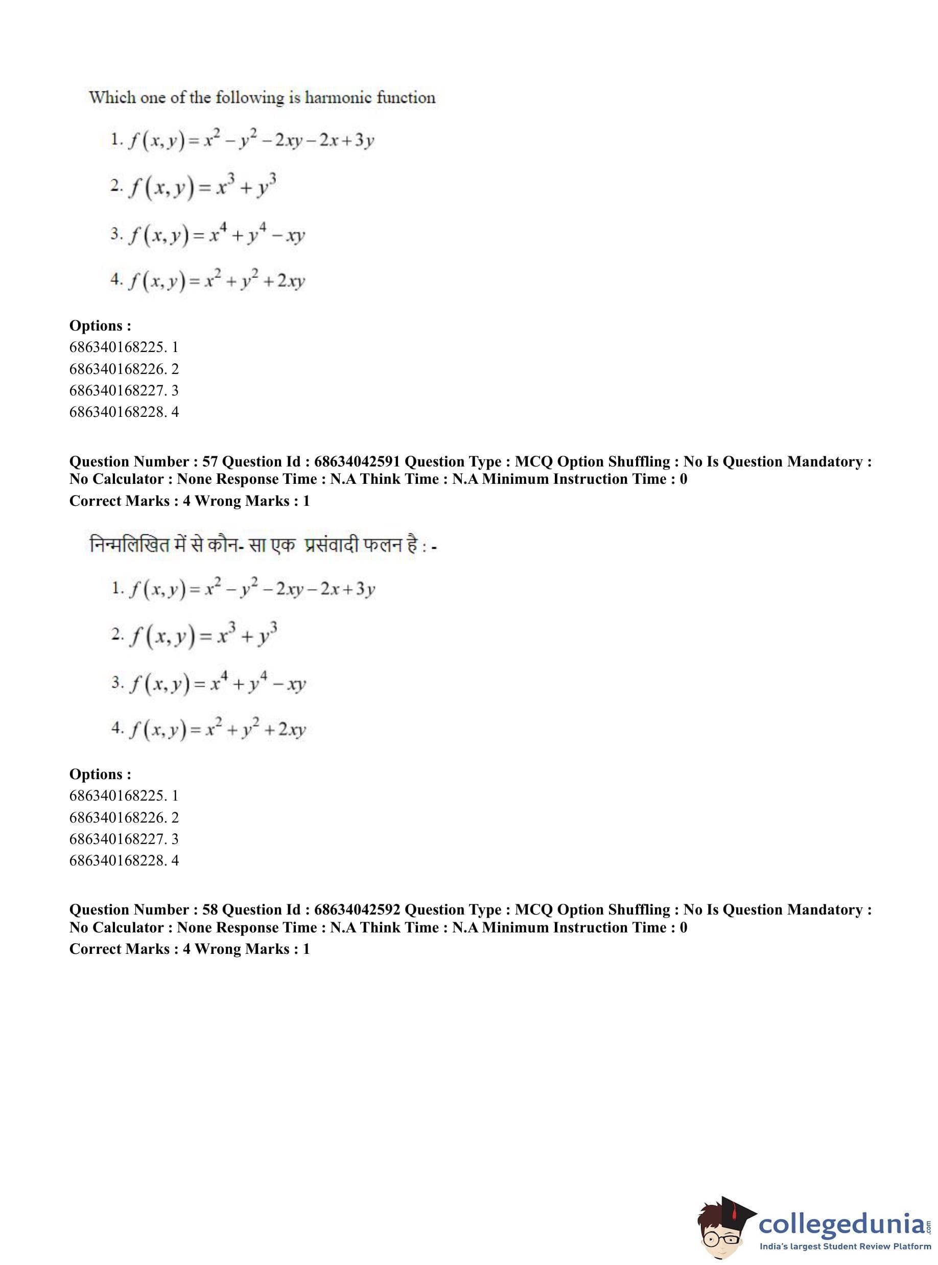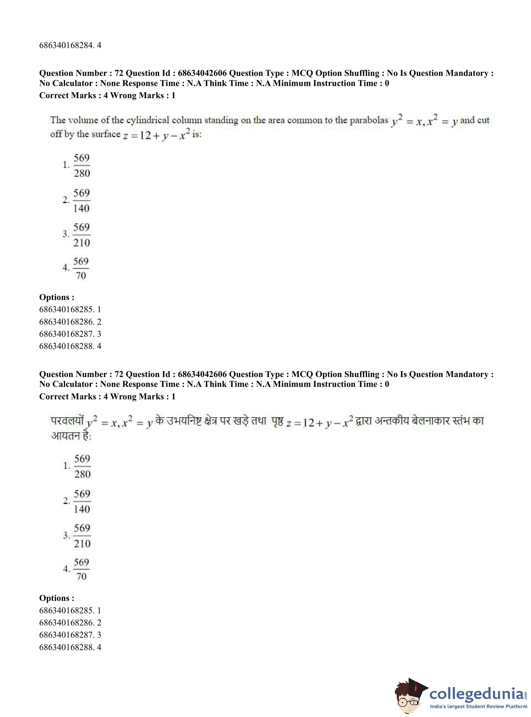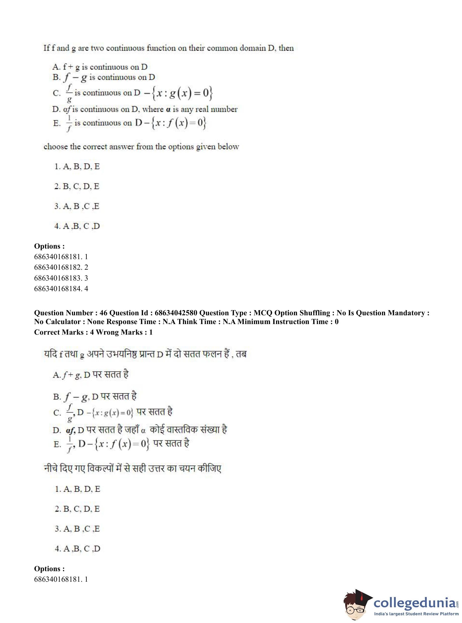 CUET PG 2023 Mathematics Question Paper in Hindi (June 30 - Shift 3)