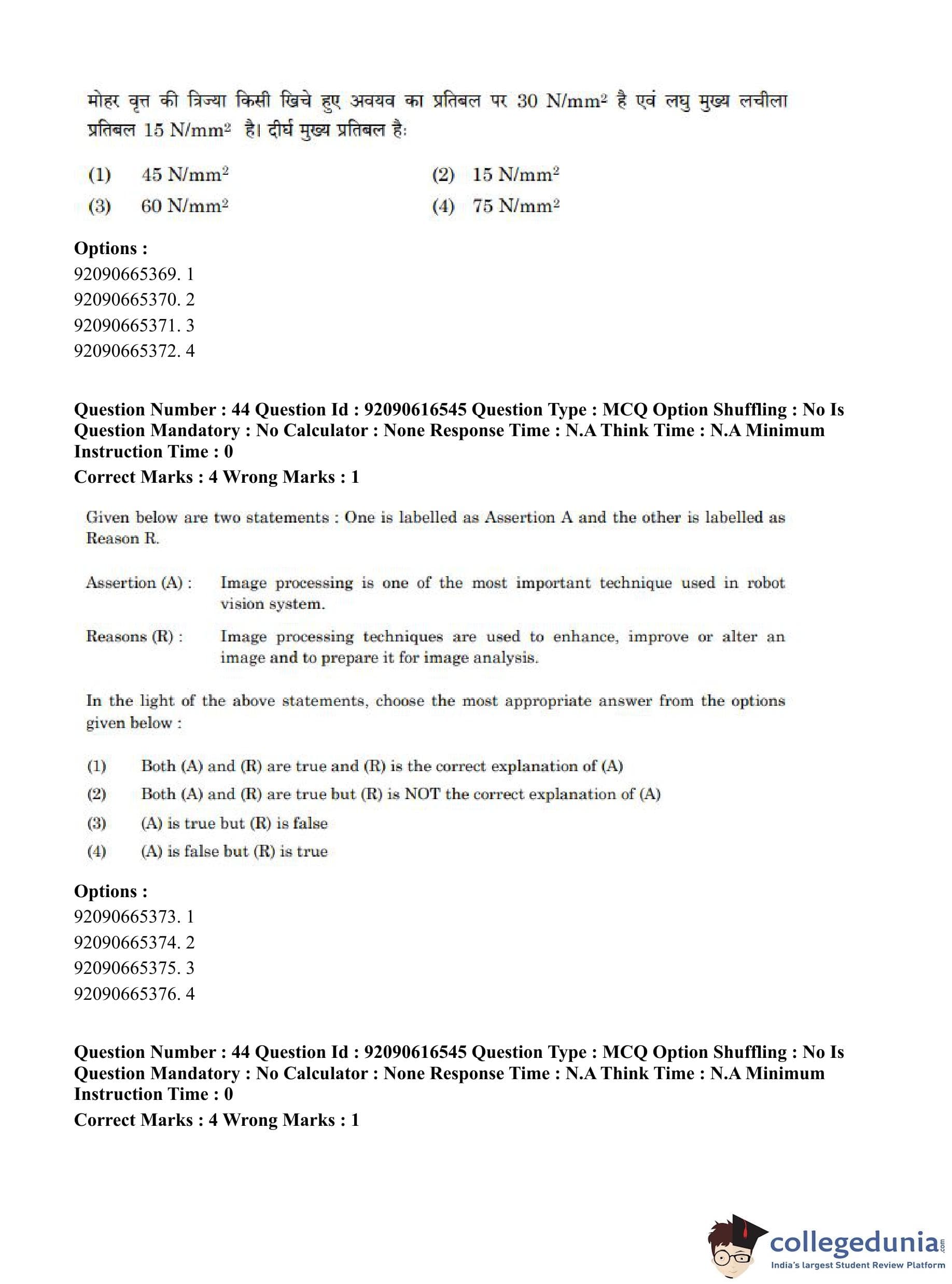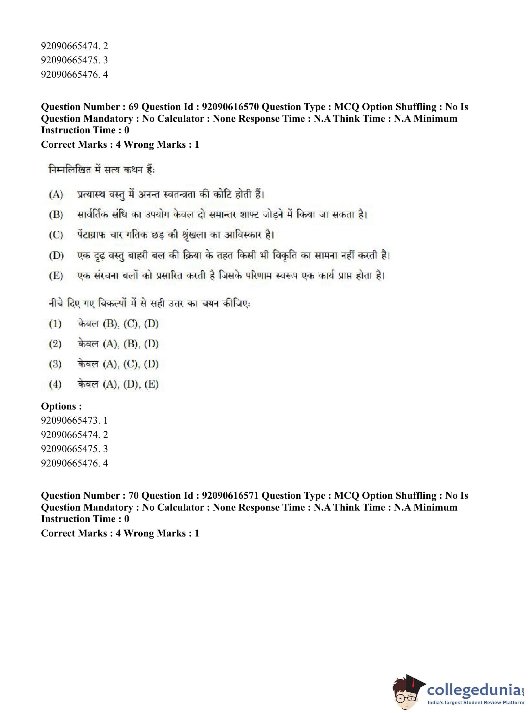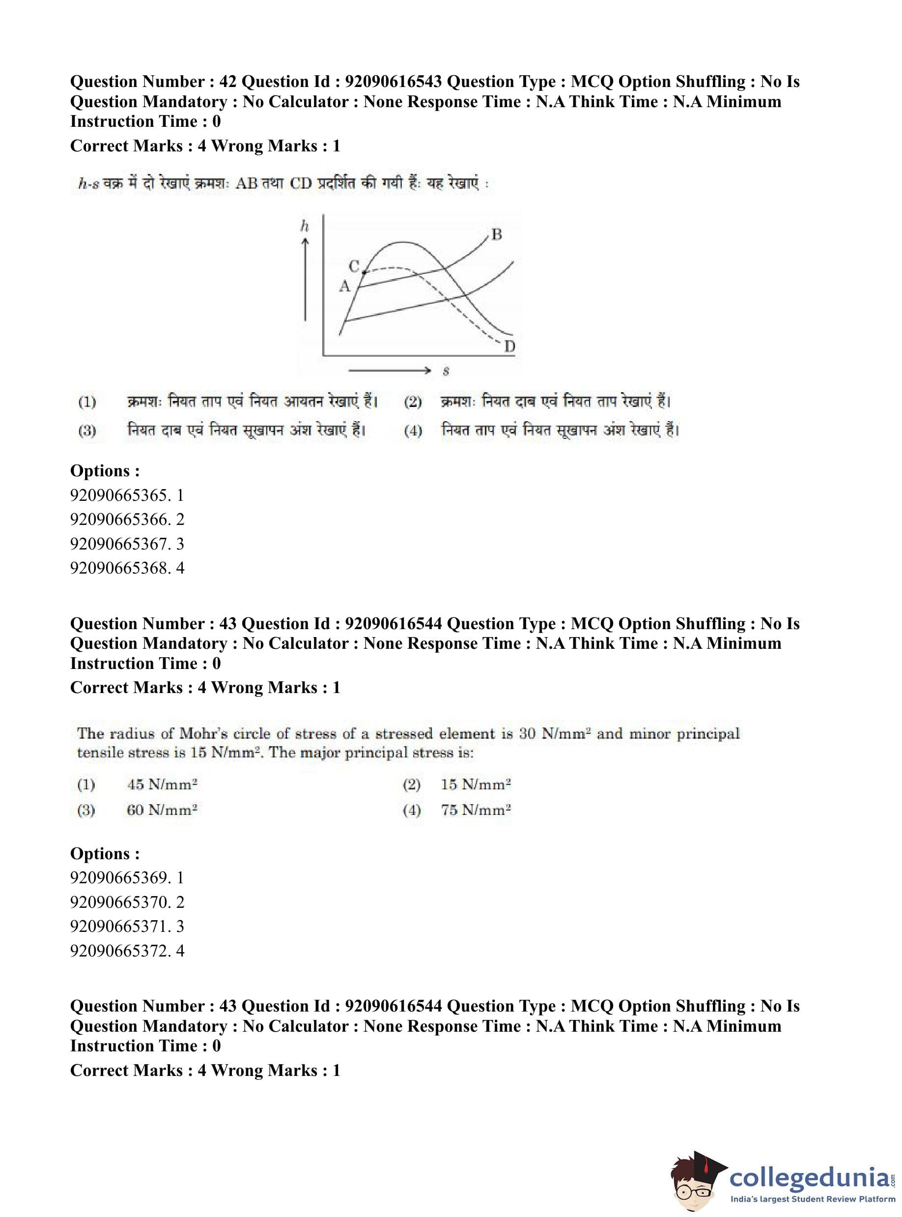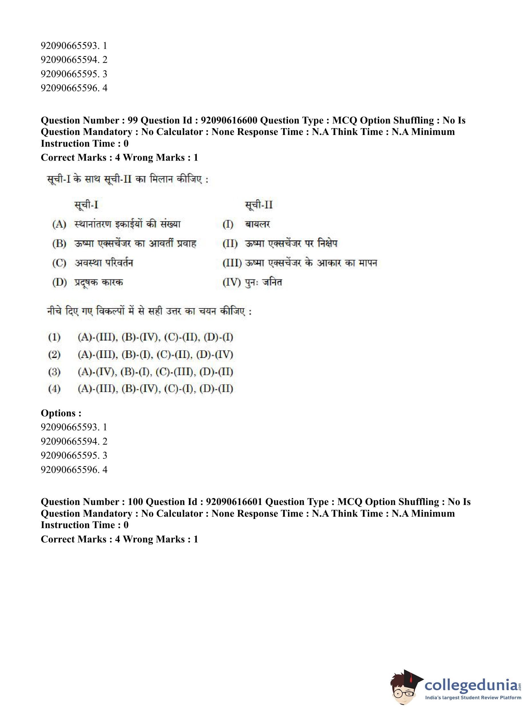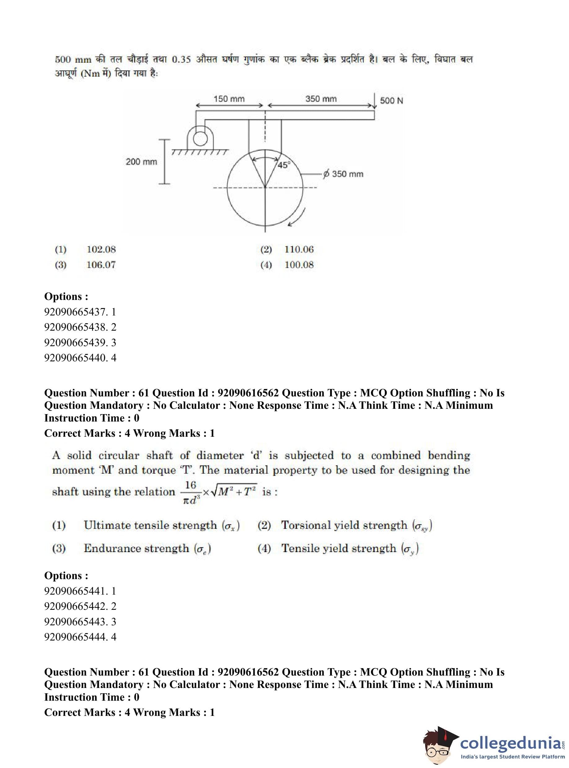 CUET PG 2023 Mechanical Engineering Question Paper in Hindi (June 14 - Shift 1)