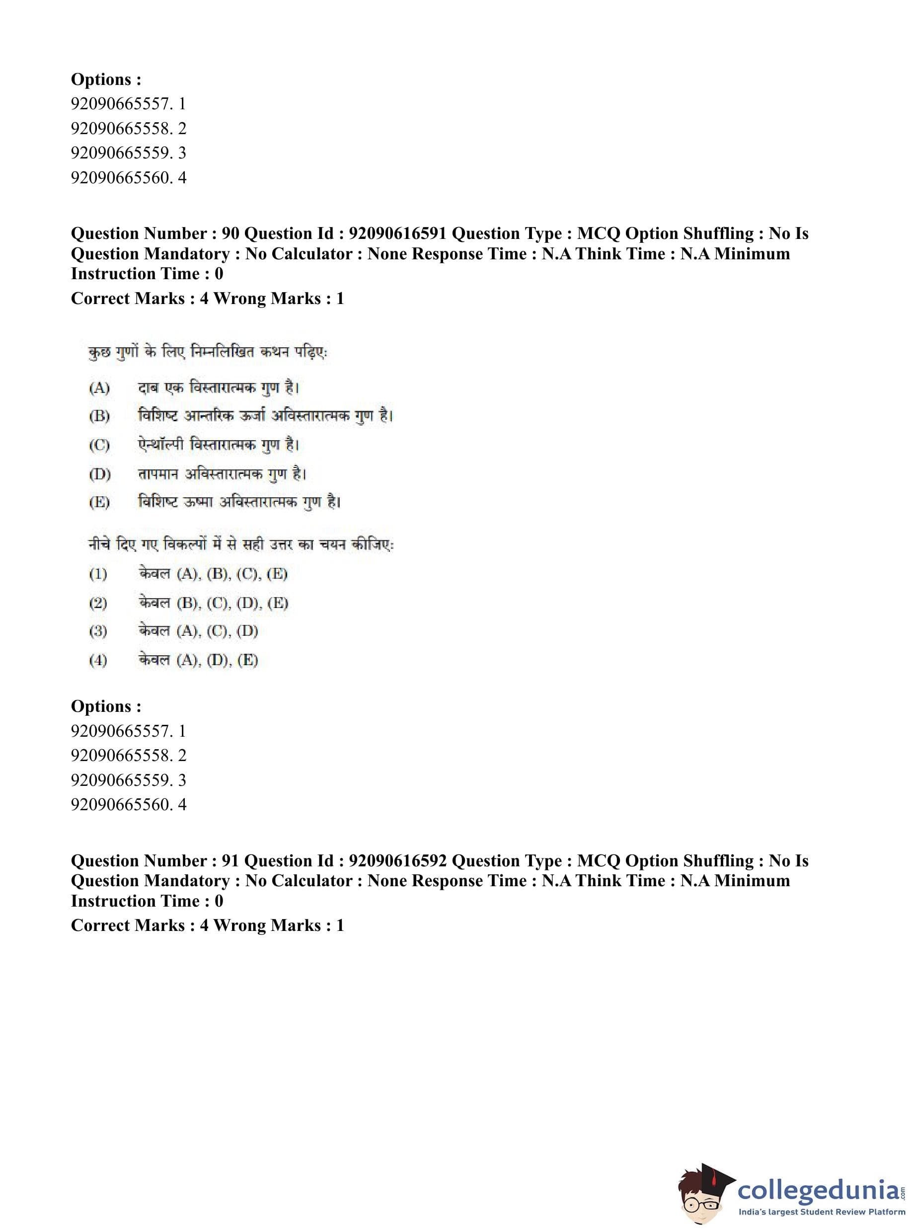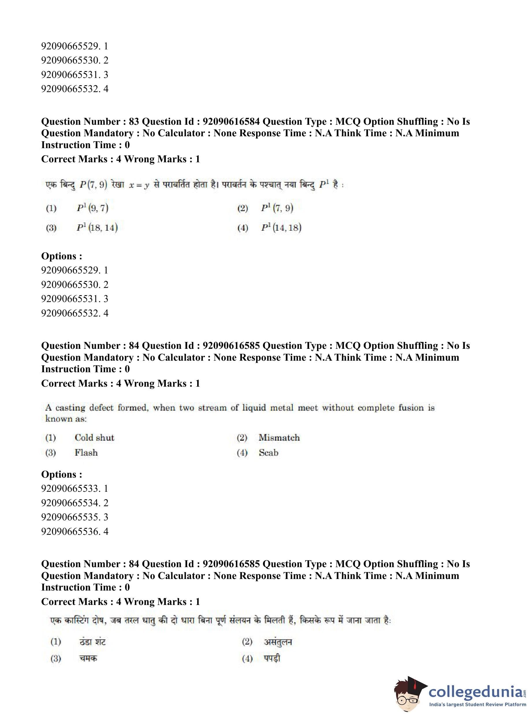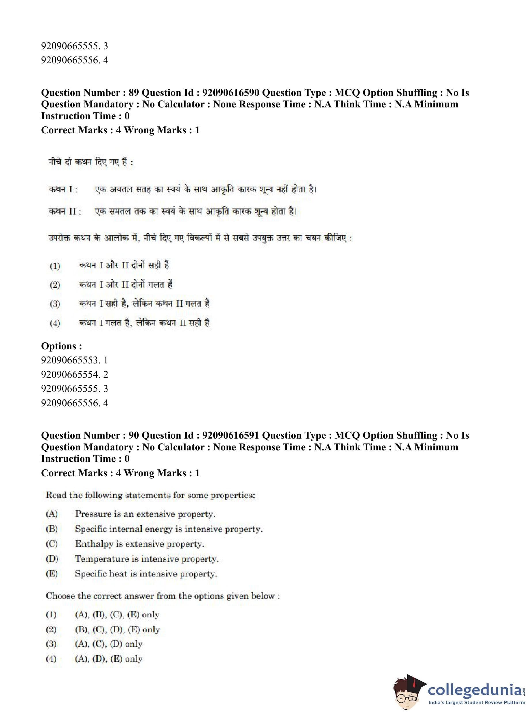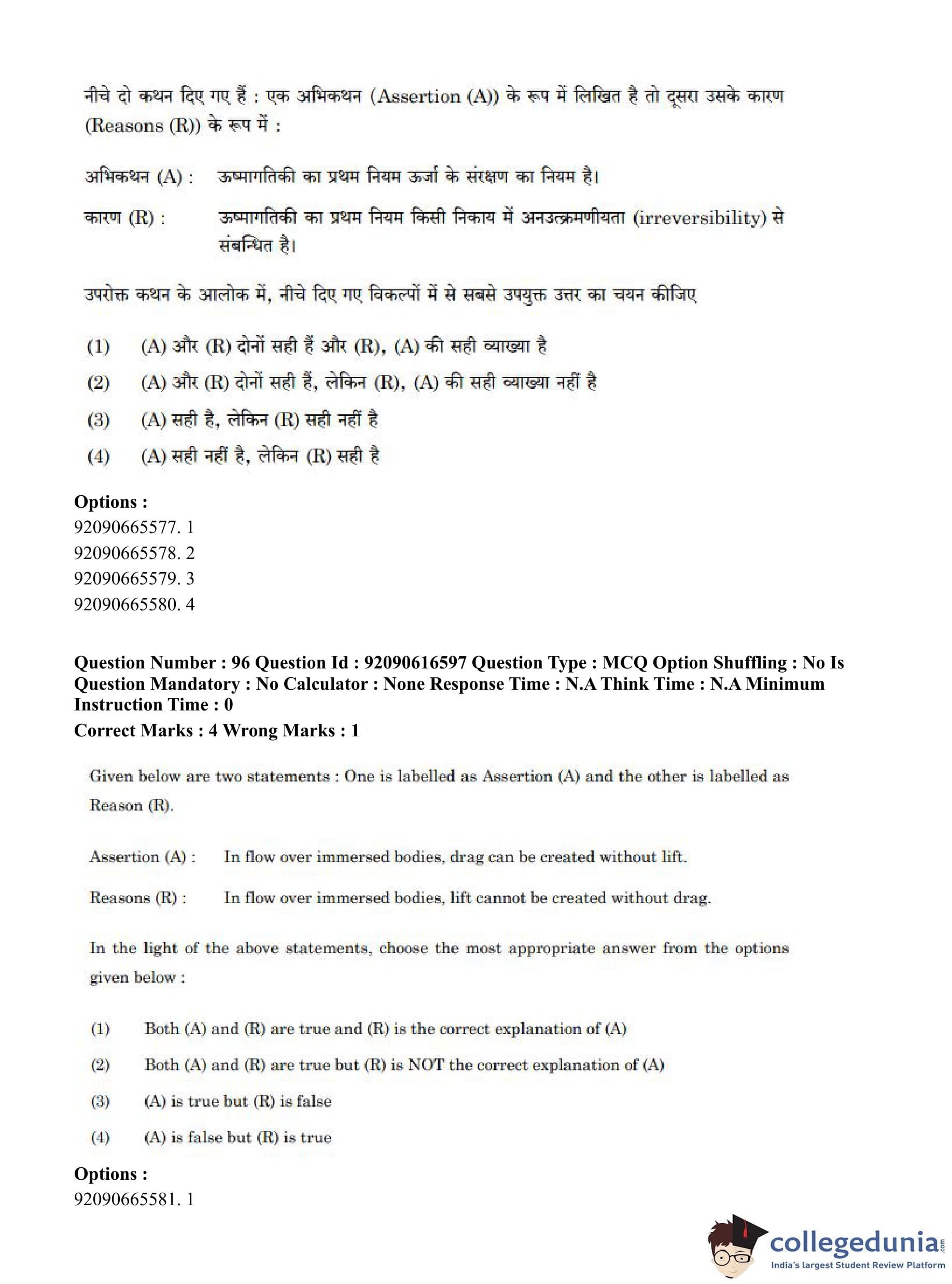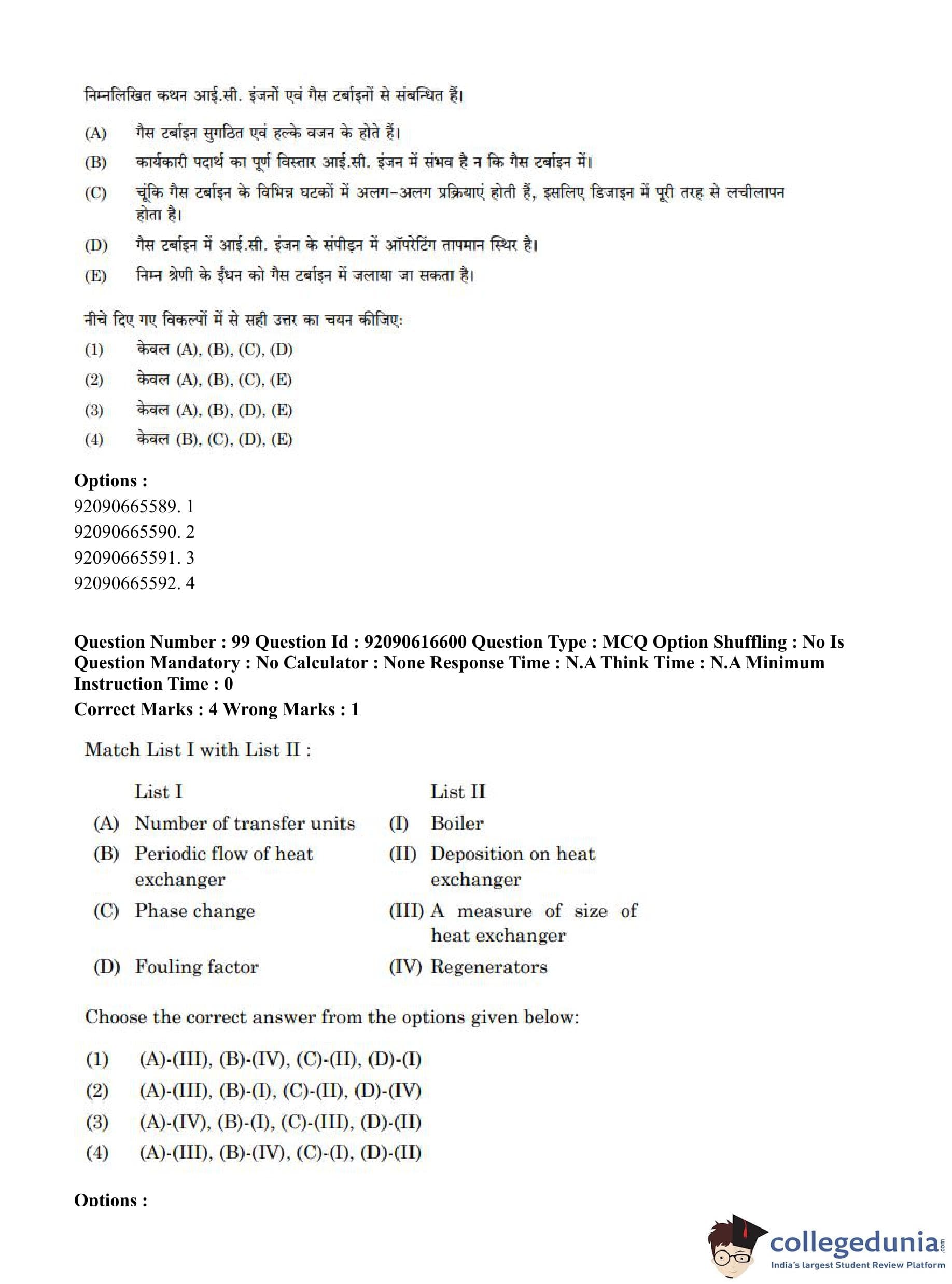 CUET PG 2023 Mechanical Engineering Question Paper in Hindi (June 14 - Shift 1)