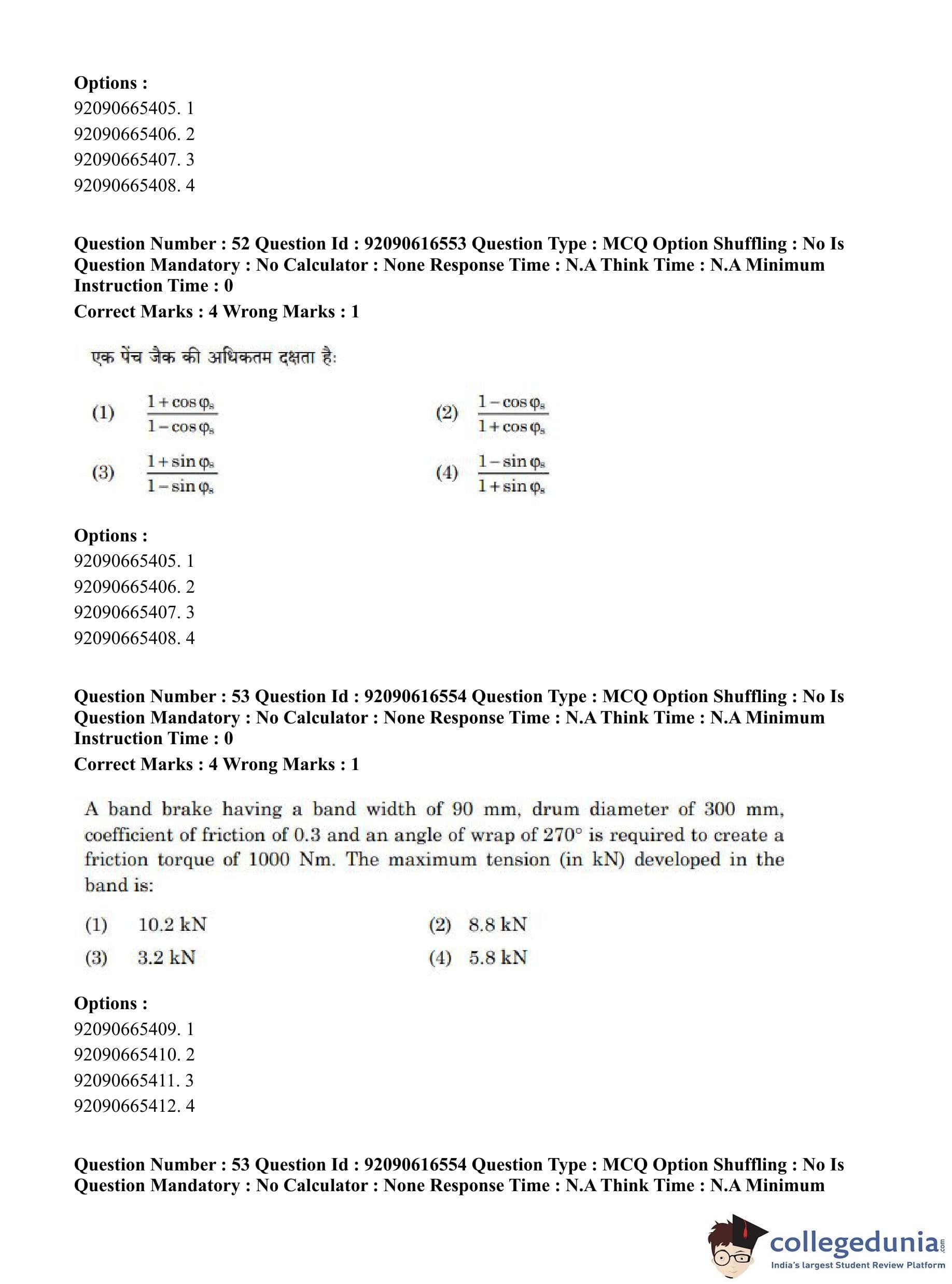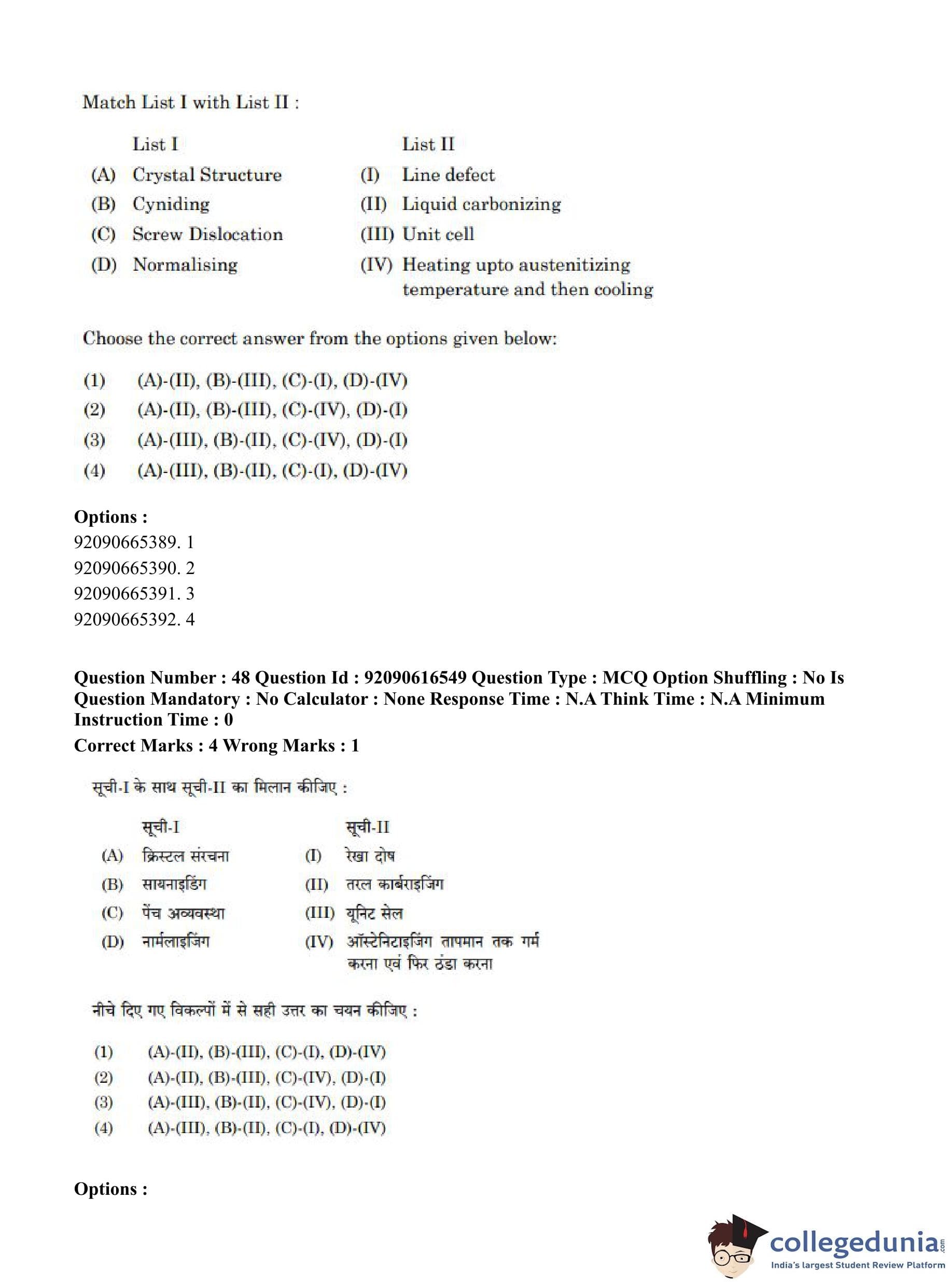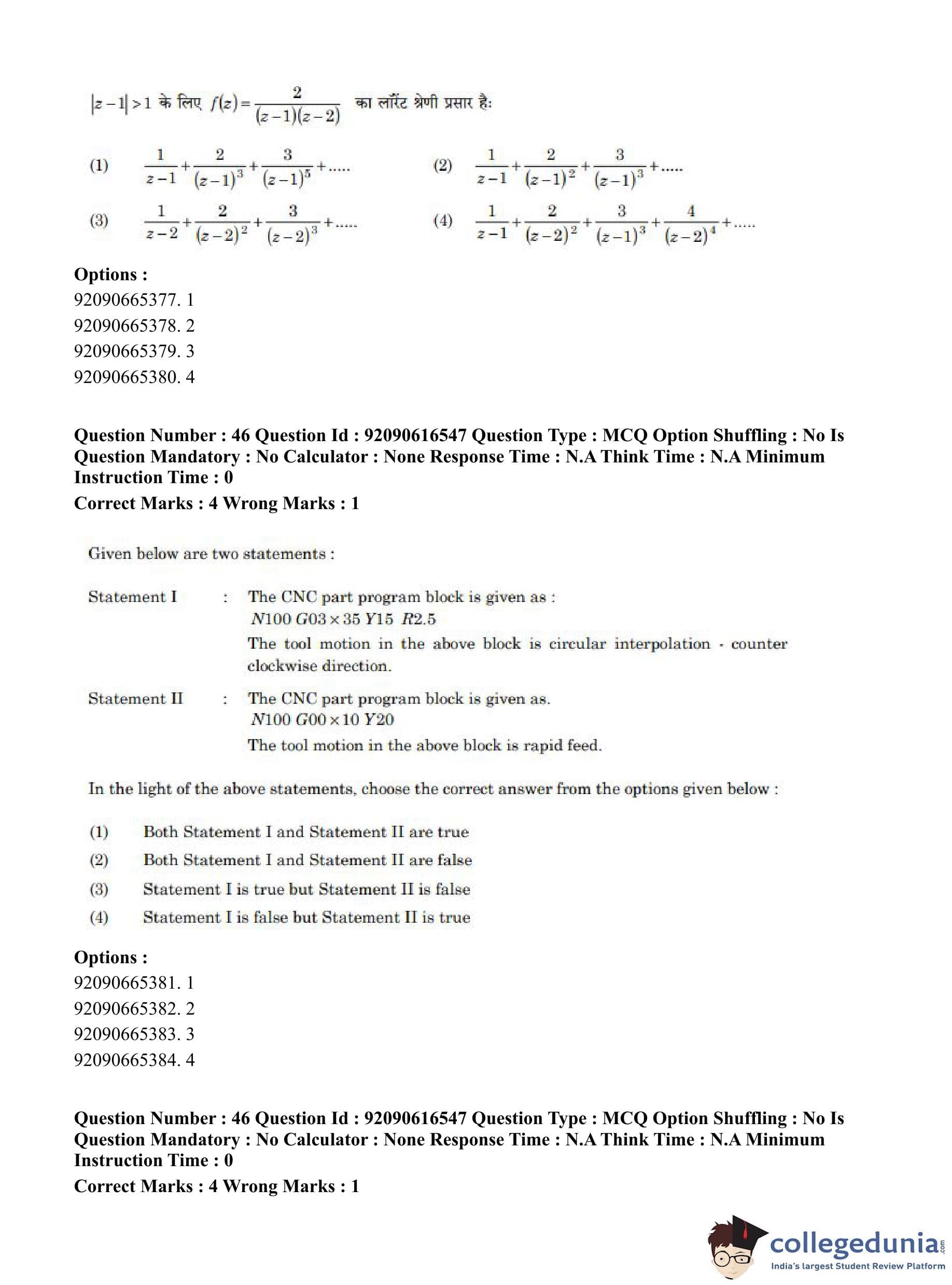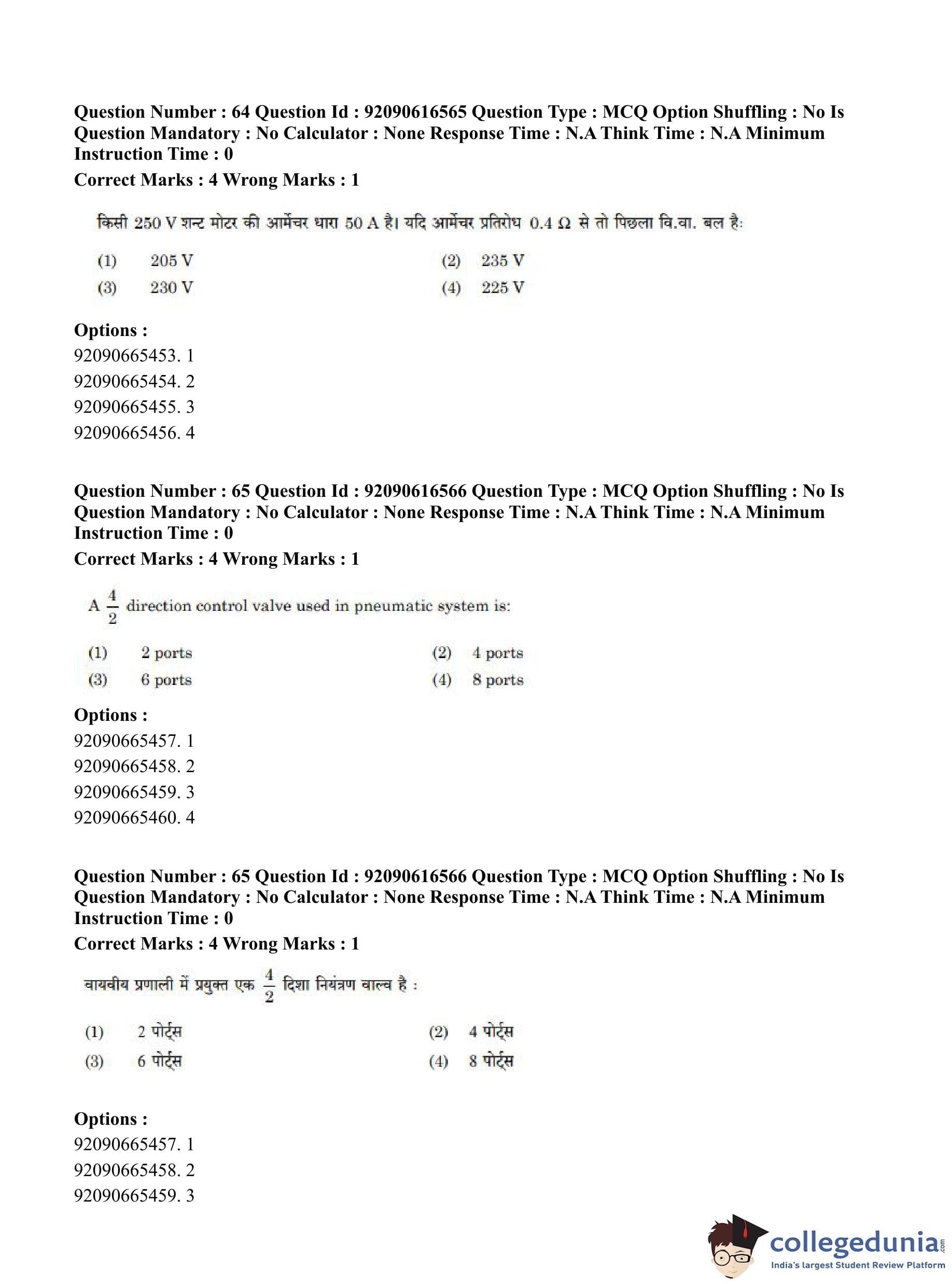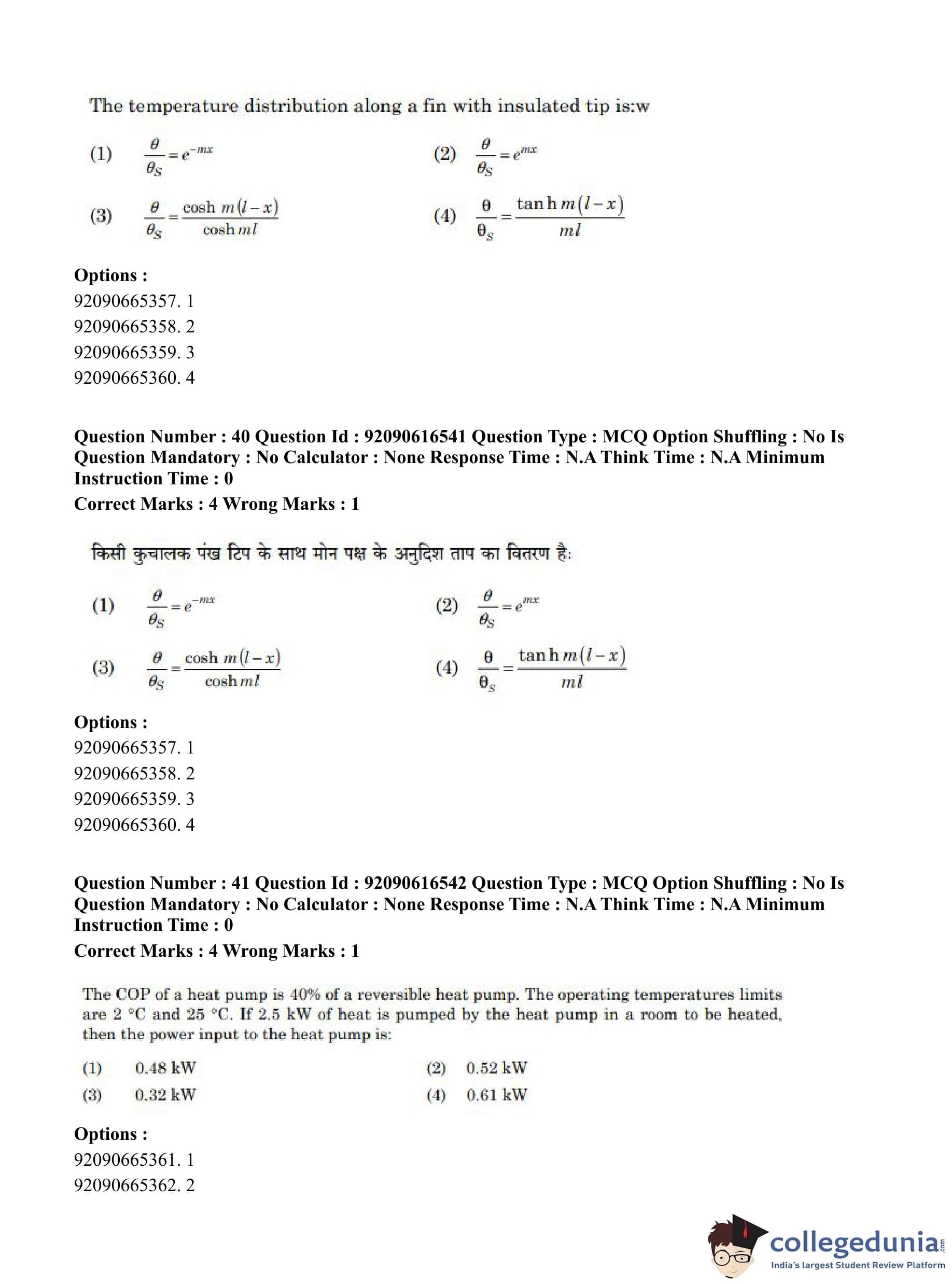 CUET PG 2023 Mechanical Engineering Question Paper in Hindi (June 14 - Shift 1)