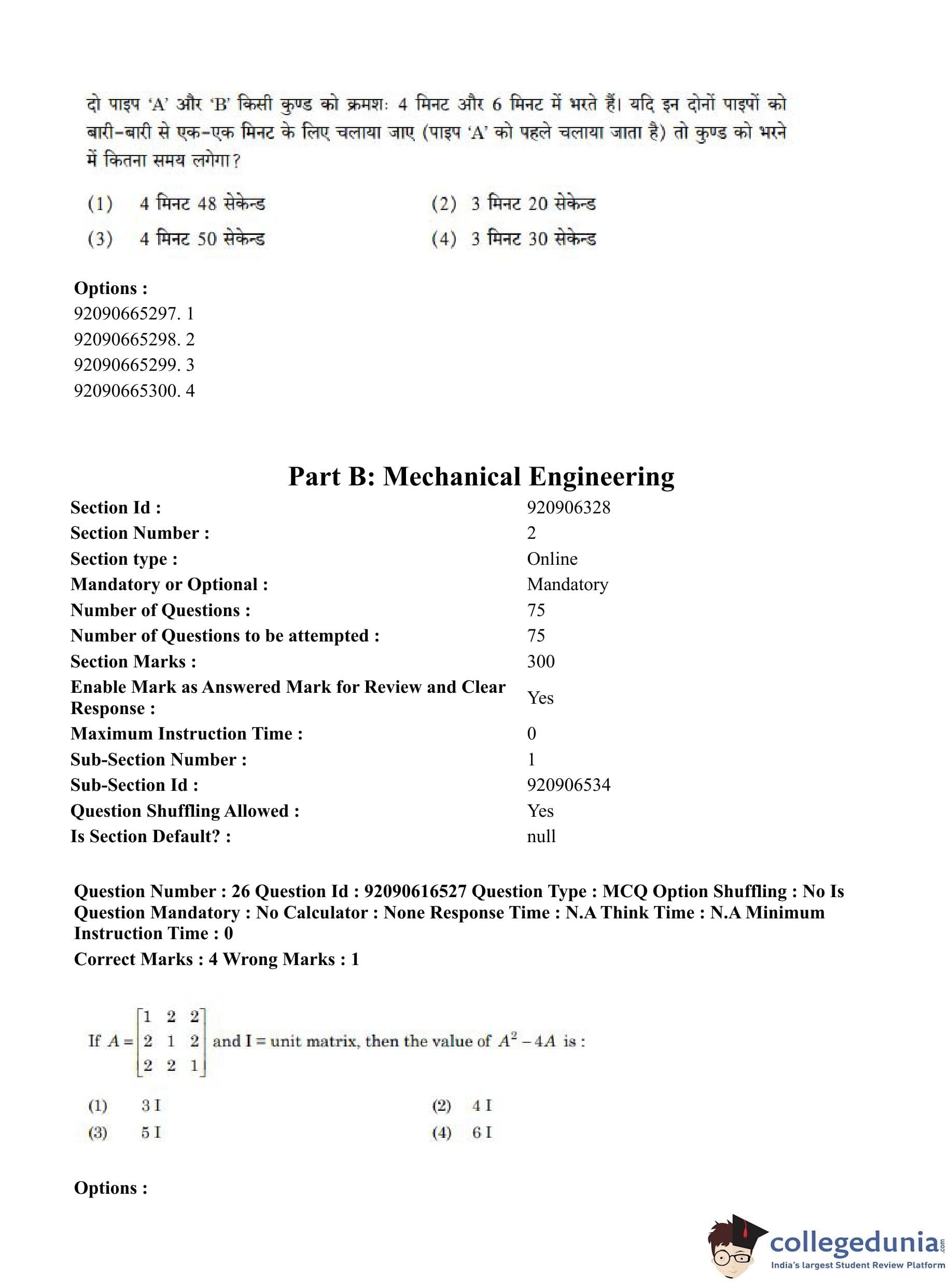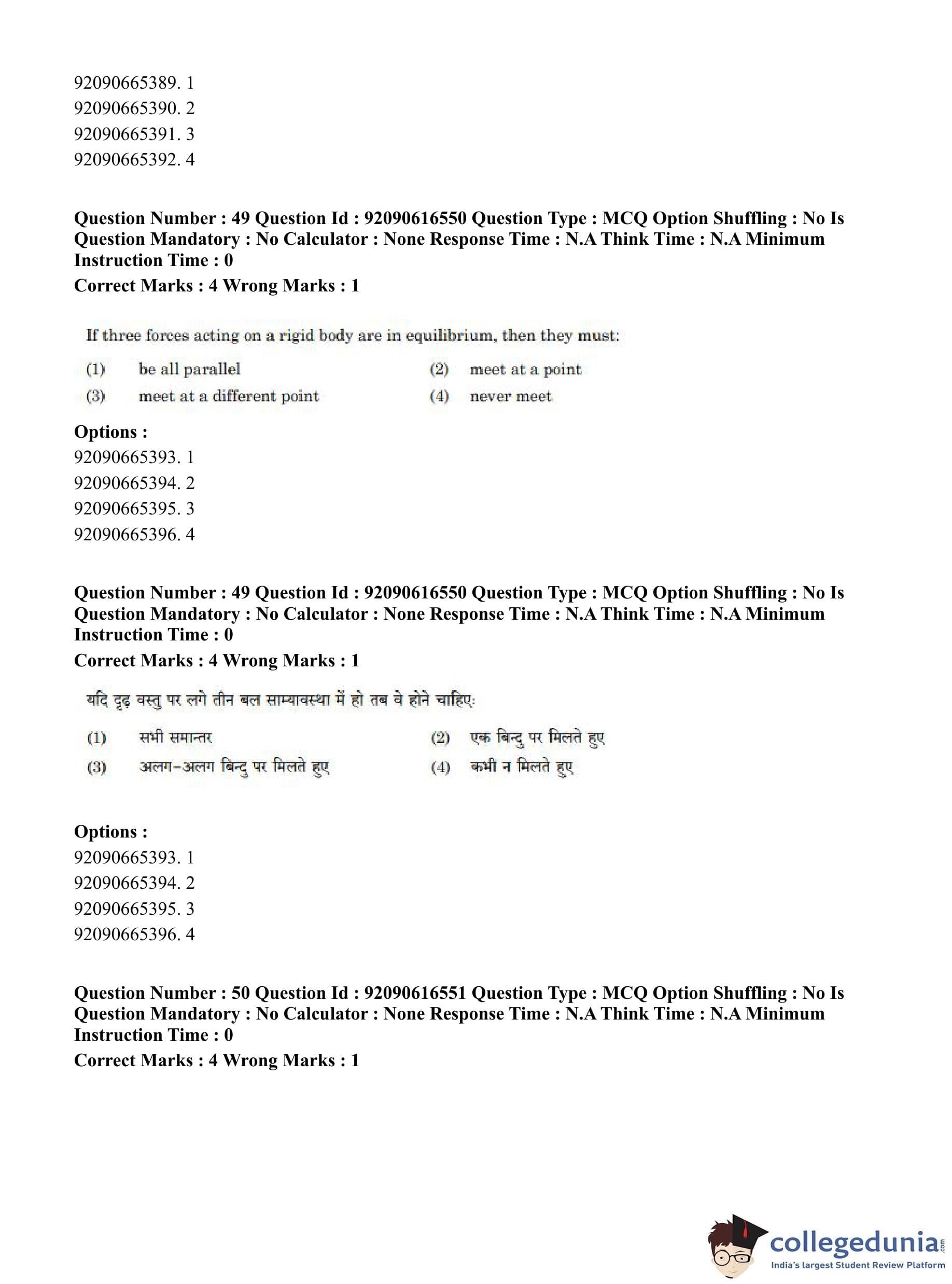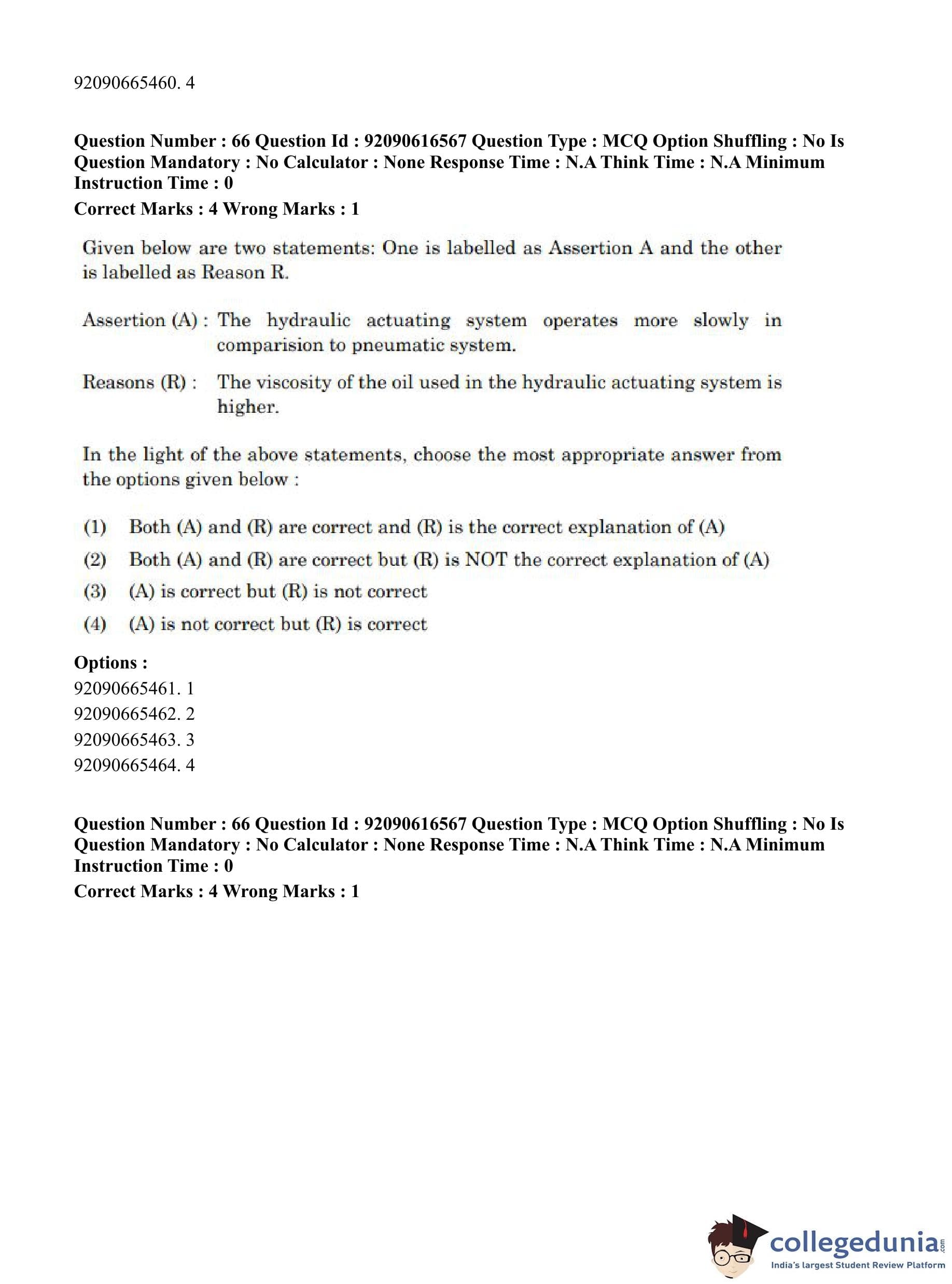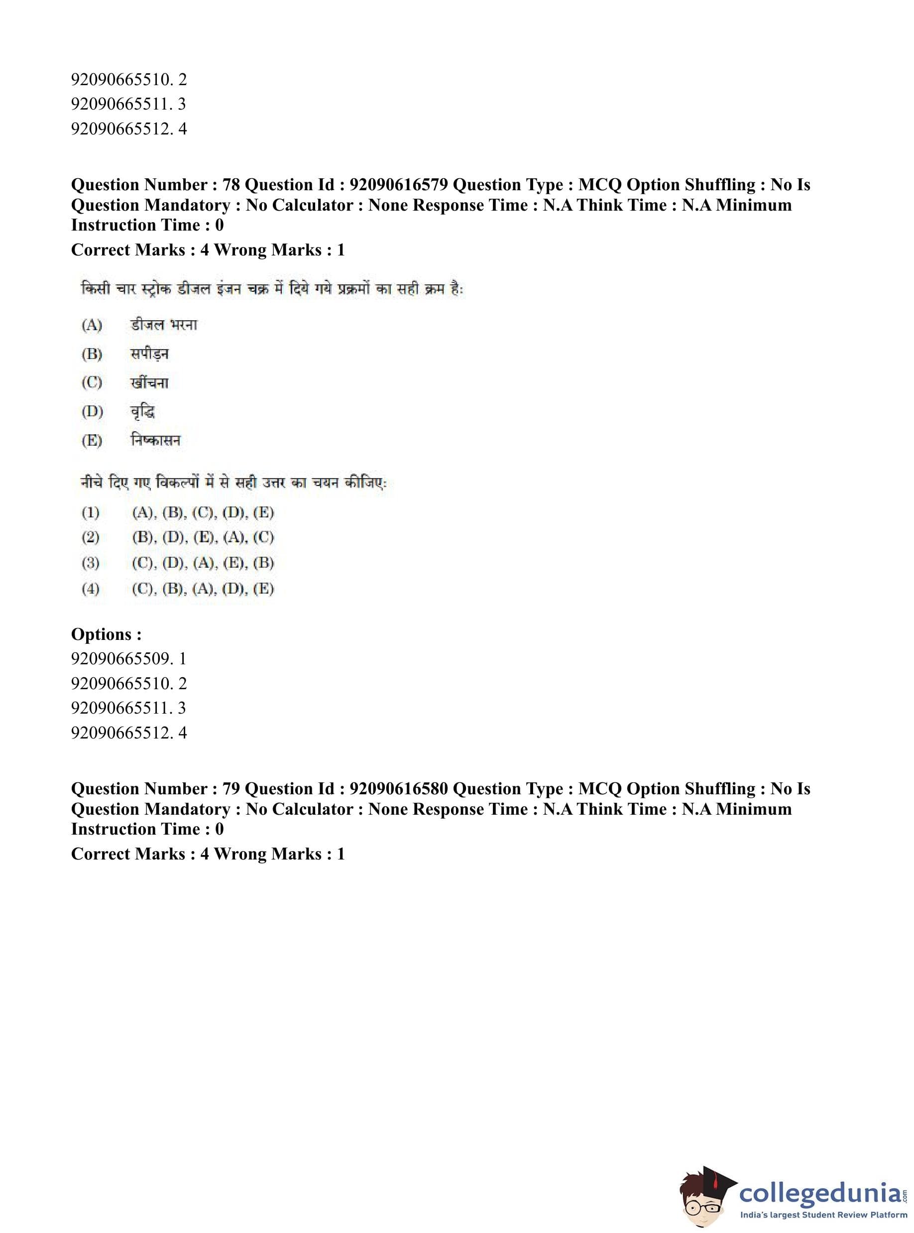 CUET PG 2023 Mechanical Engineering Question Paper in Hindi (June 14 - Shift 1)