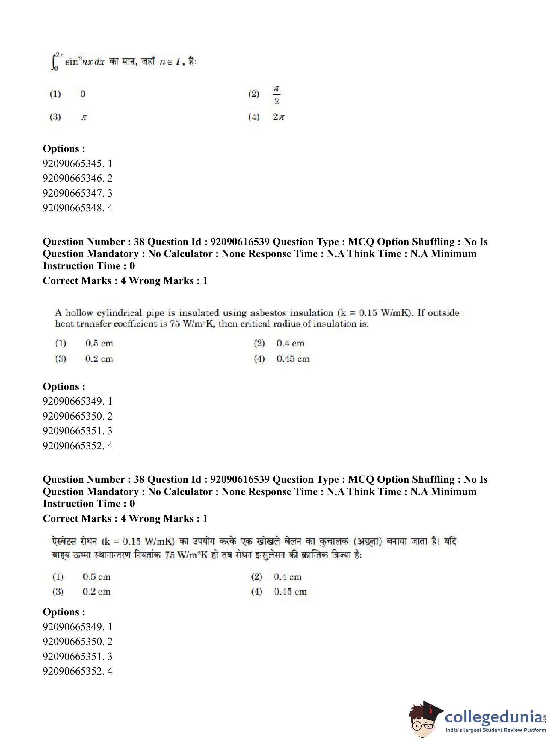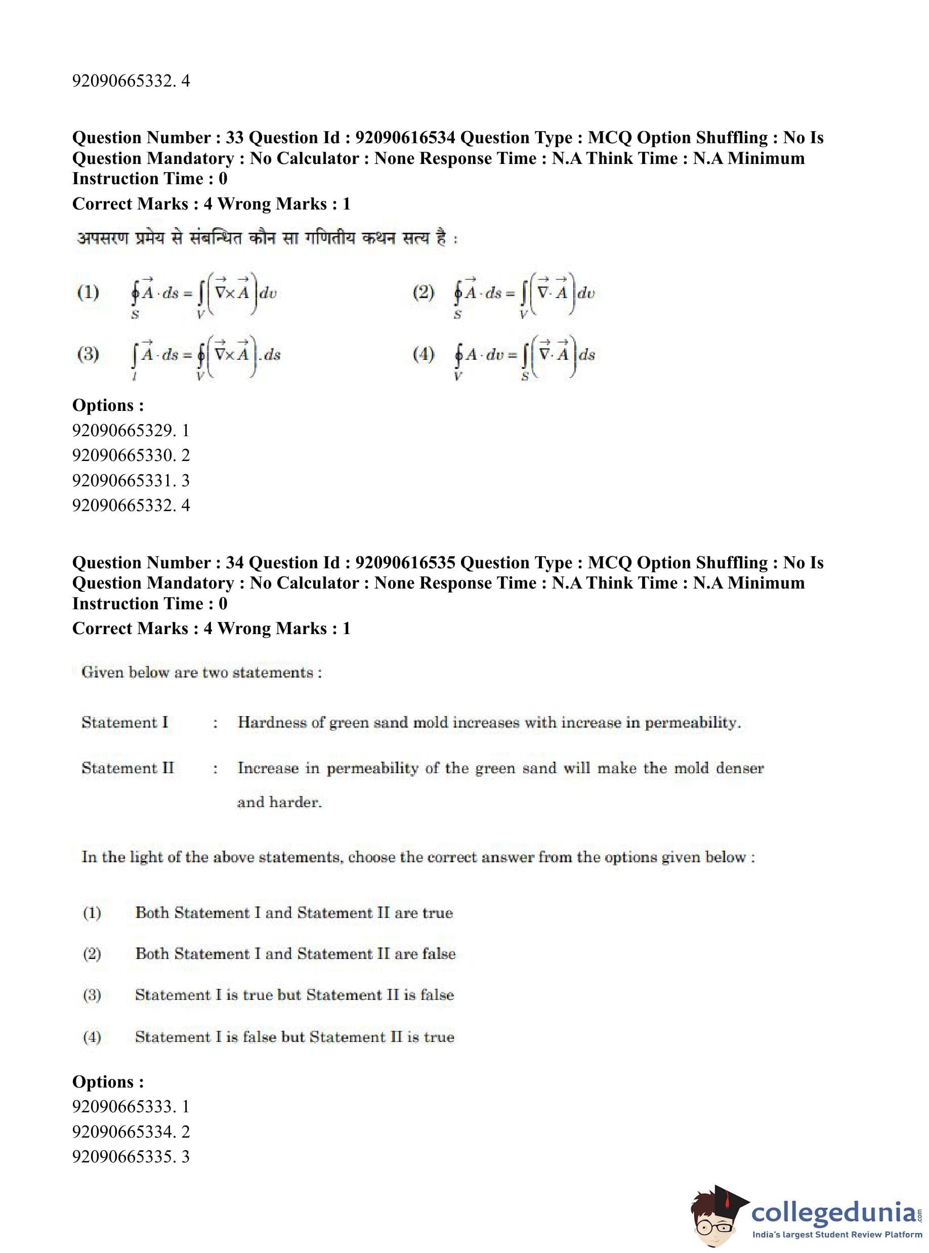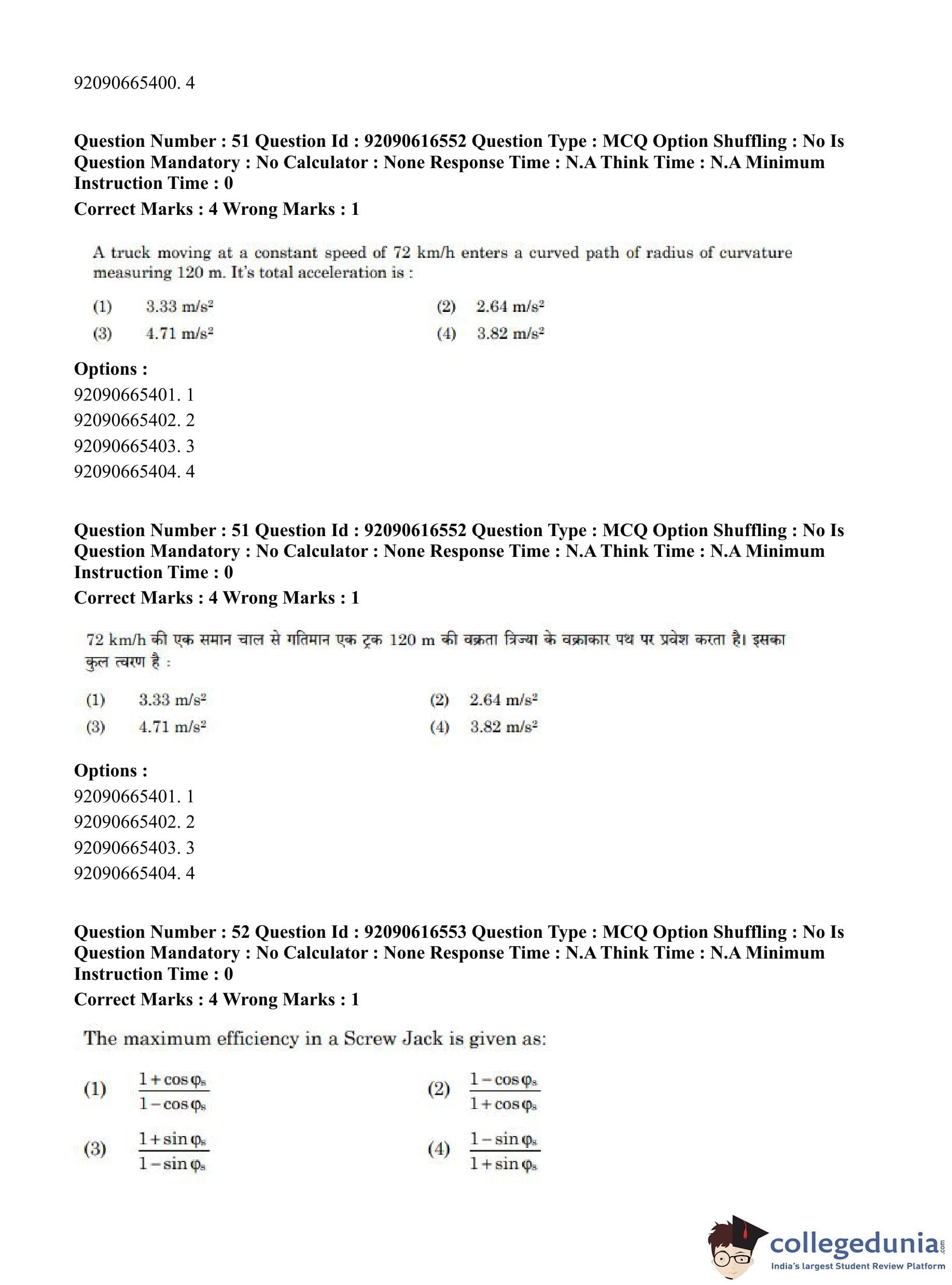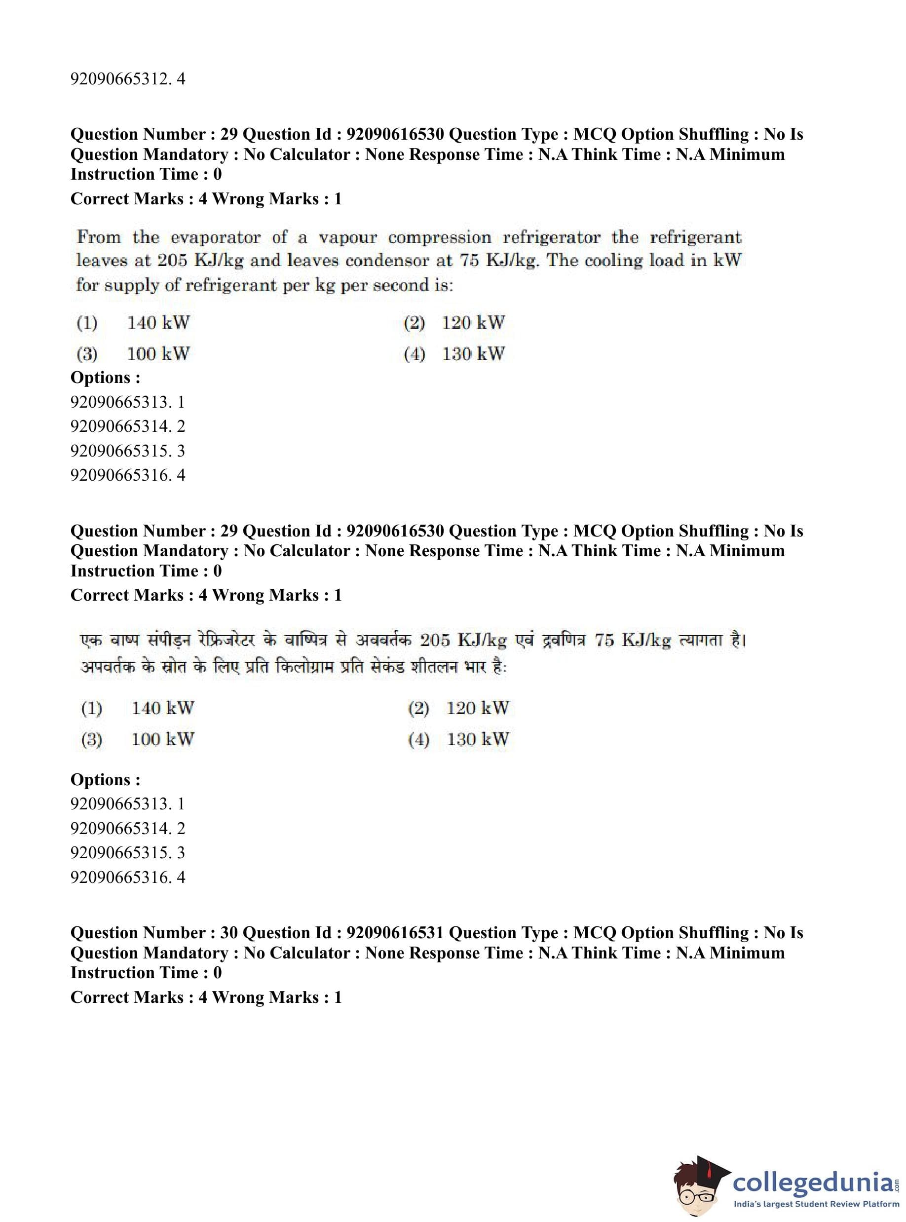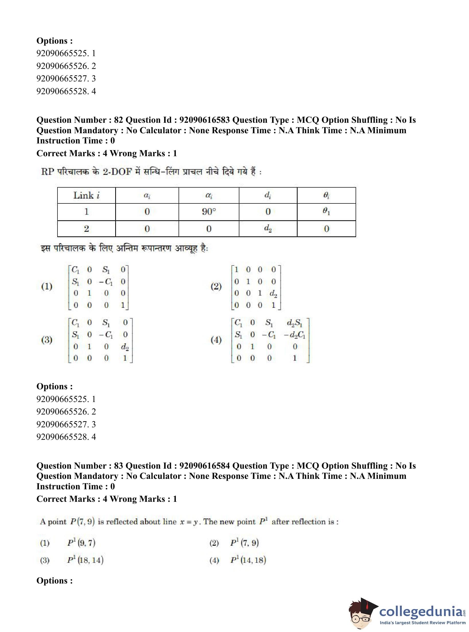 CUET PG 2023 Mechanical Engineering Question Paper in Hindi (June 14 - Shift 1)