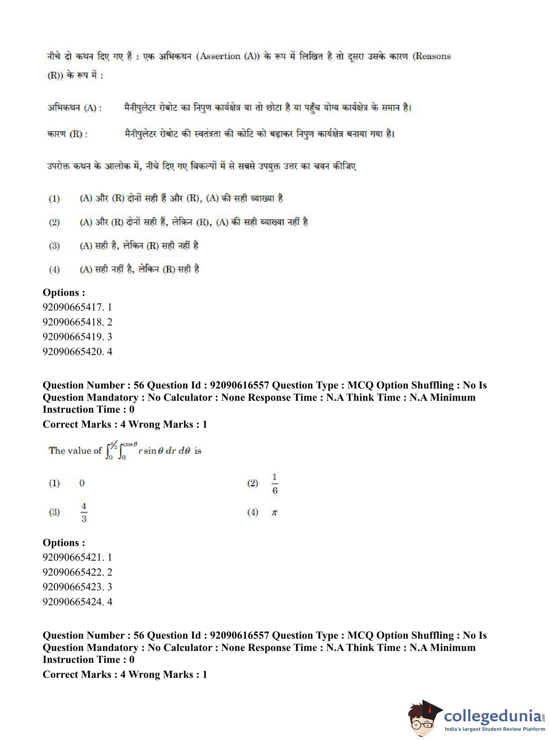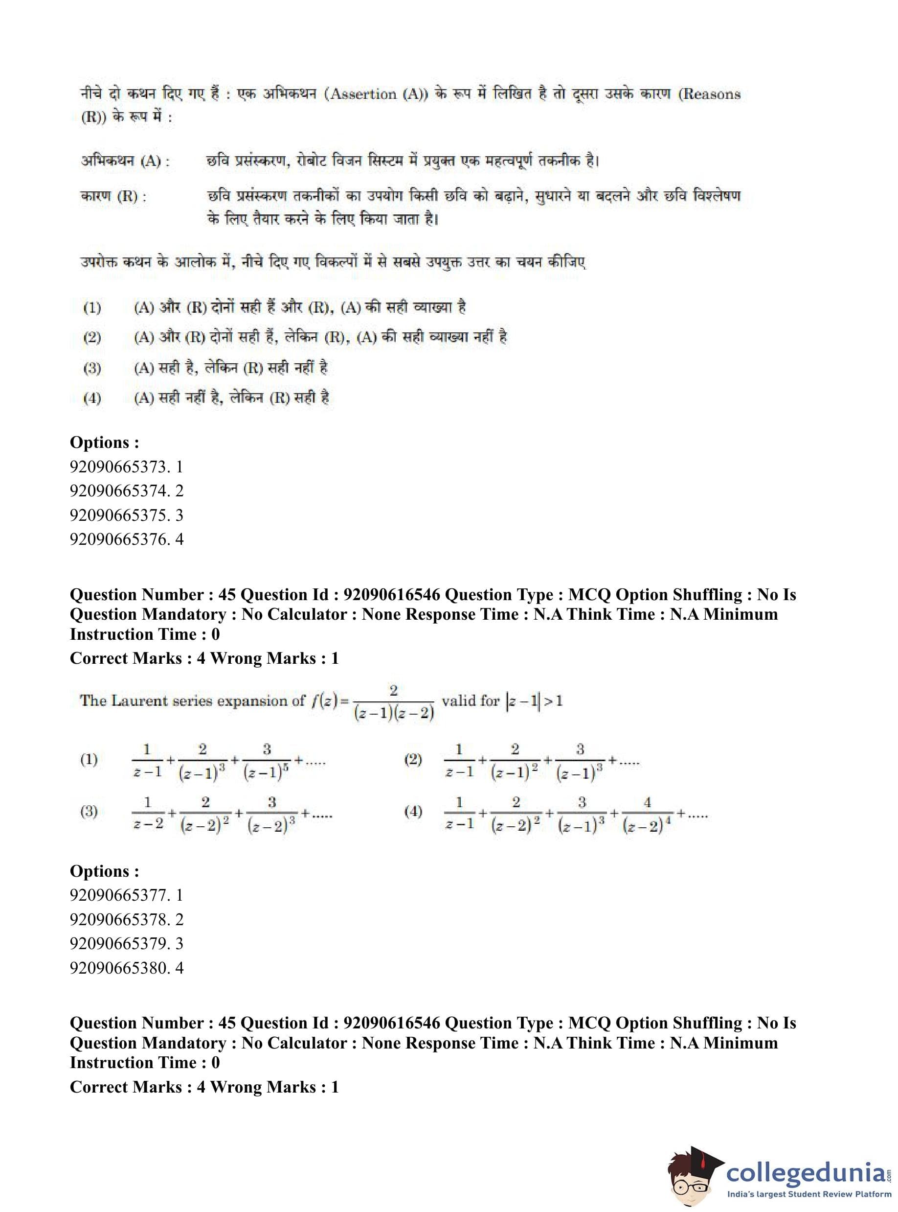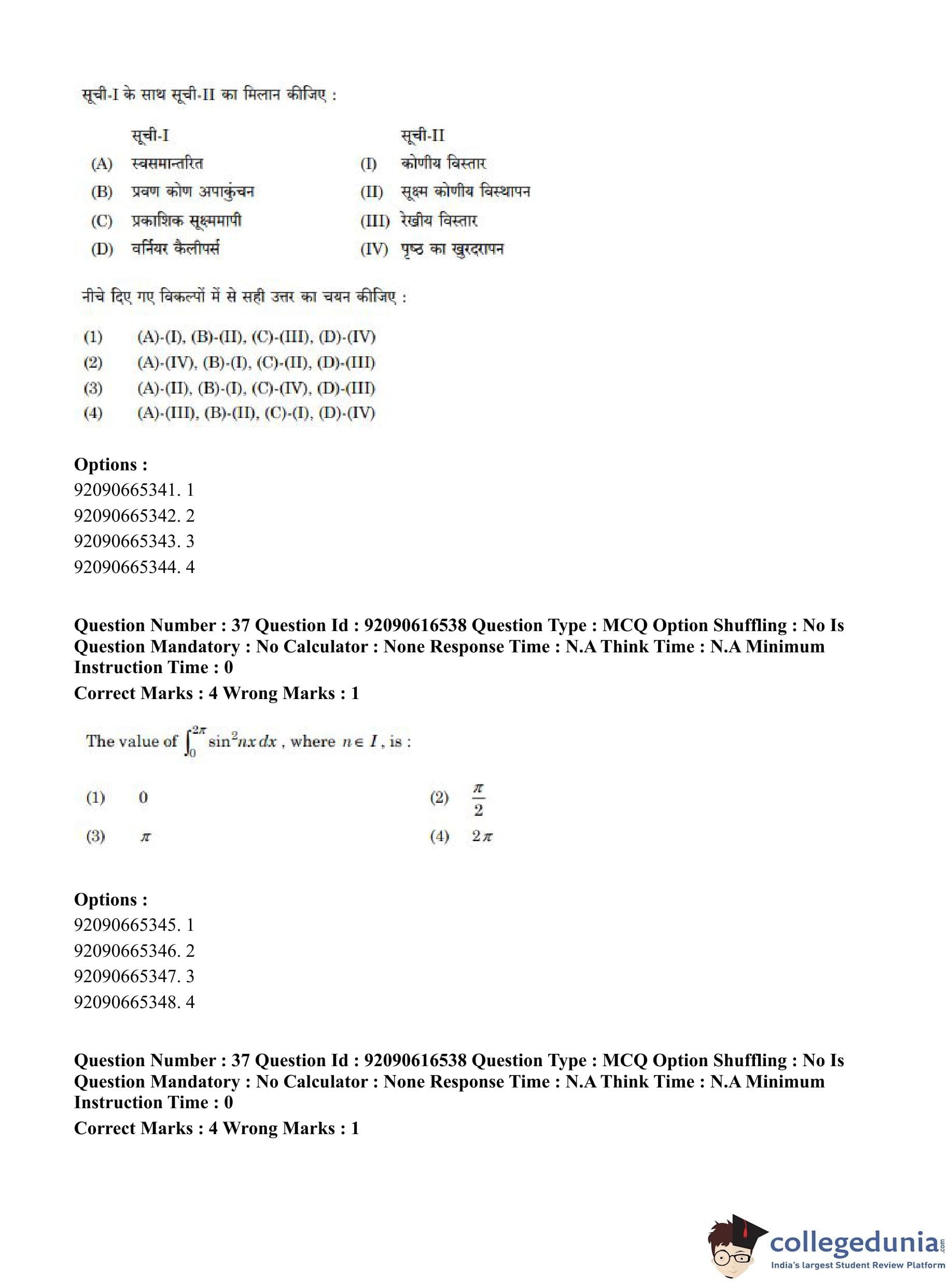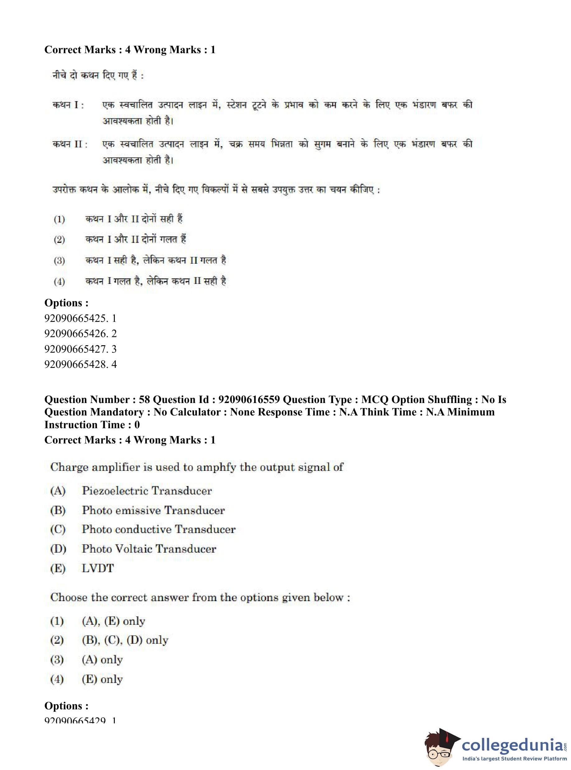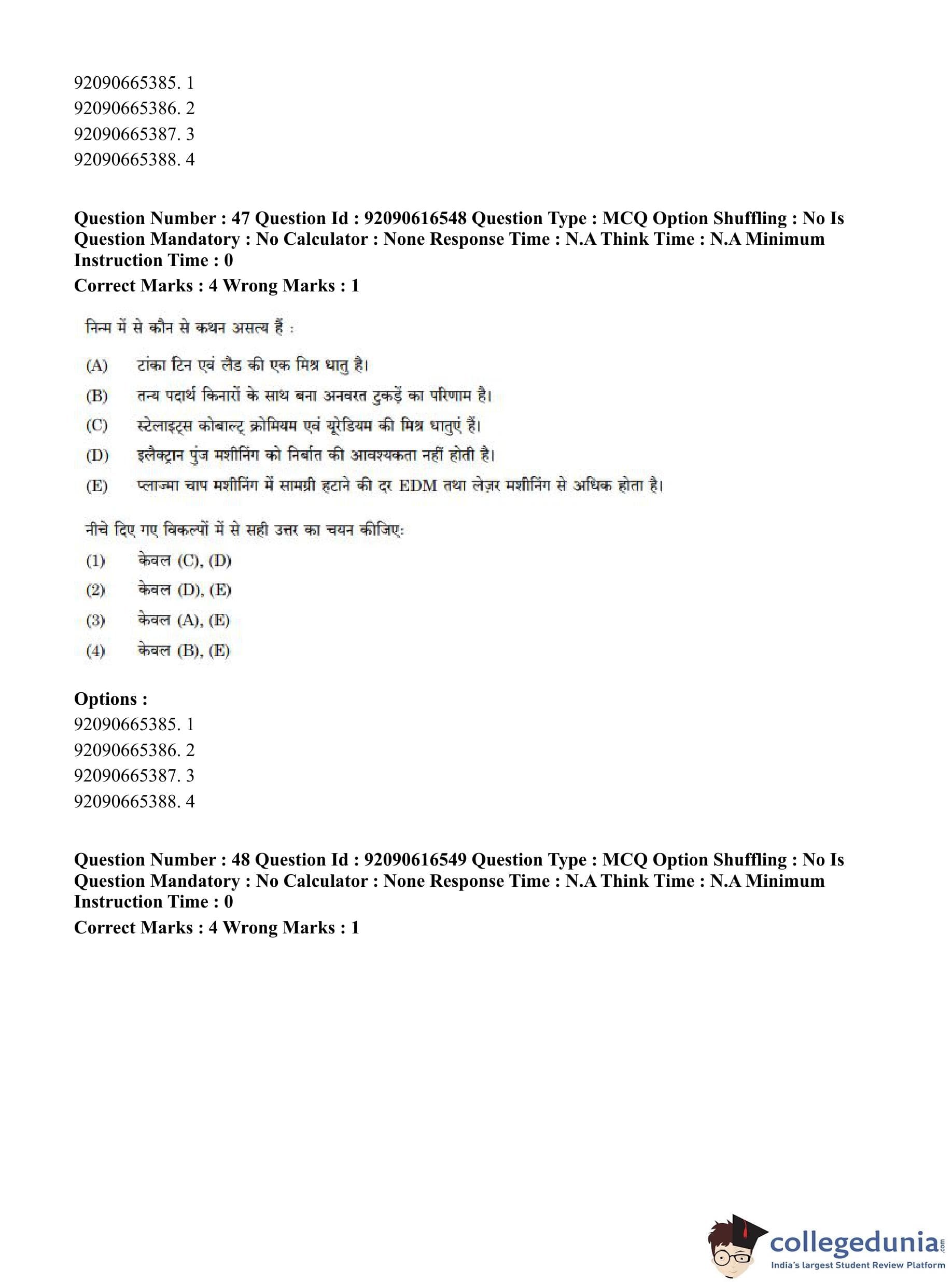 CUET PG 2023 Mechanical Engineering Question Paper in Hindi (June 14 - Shift 1)