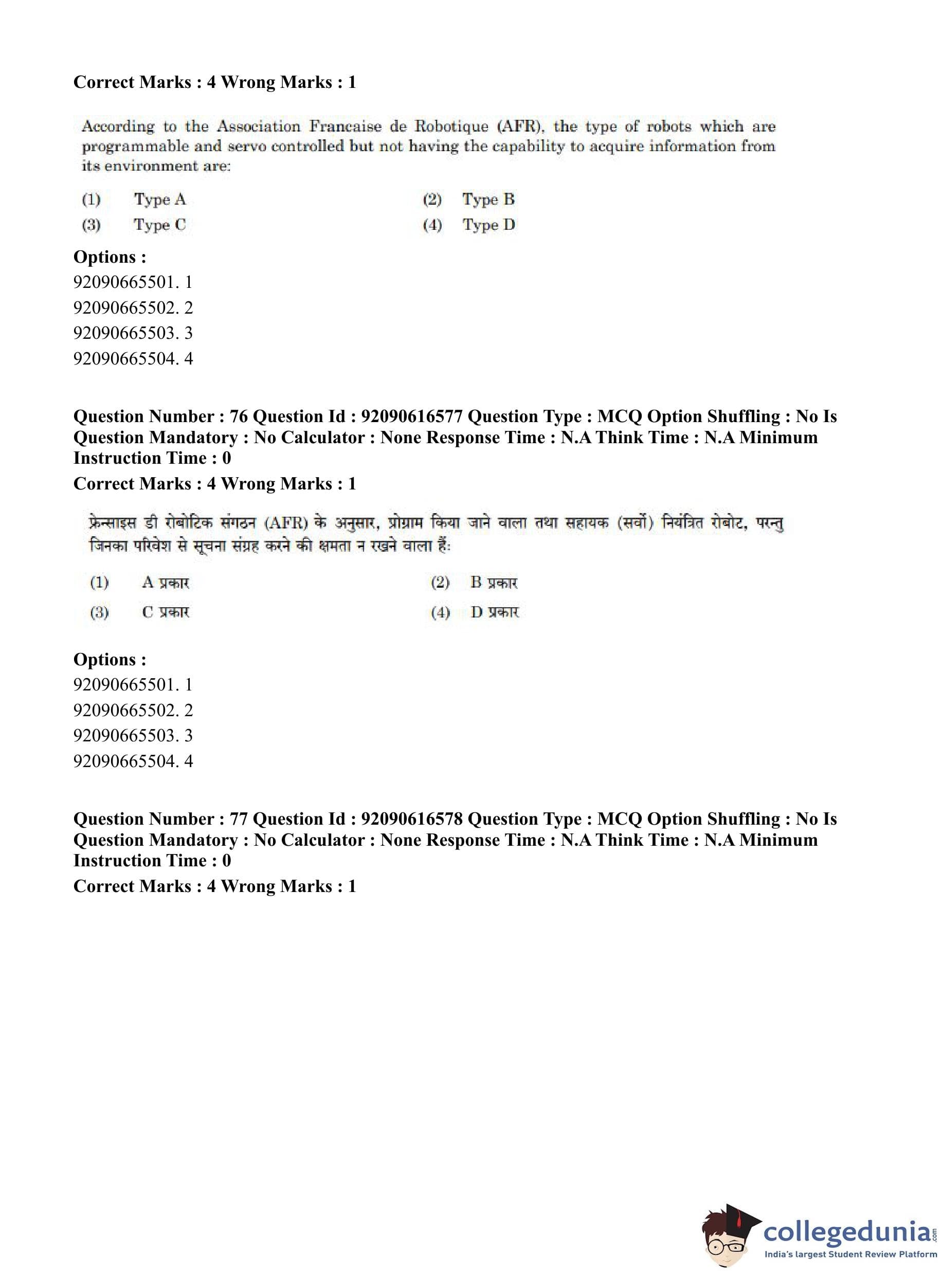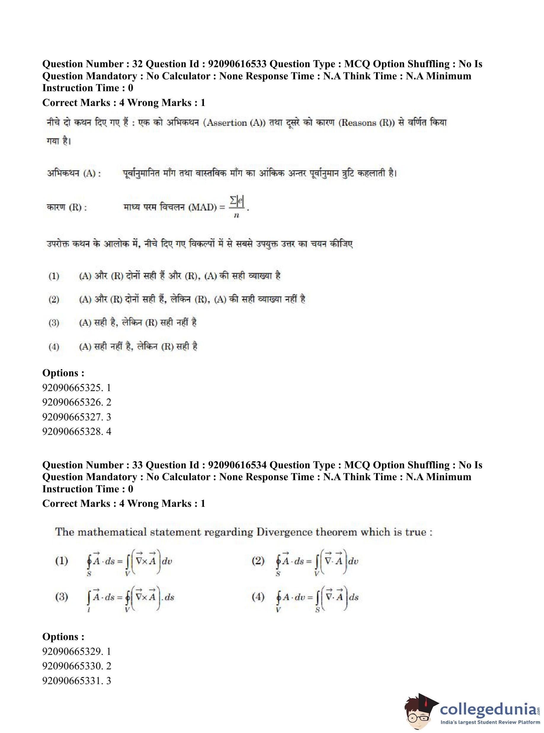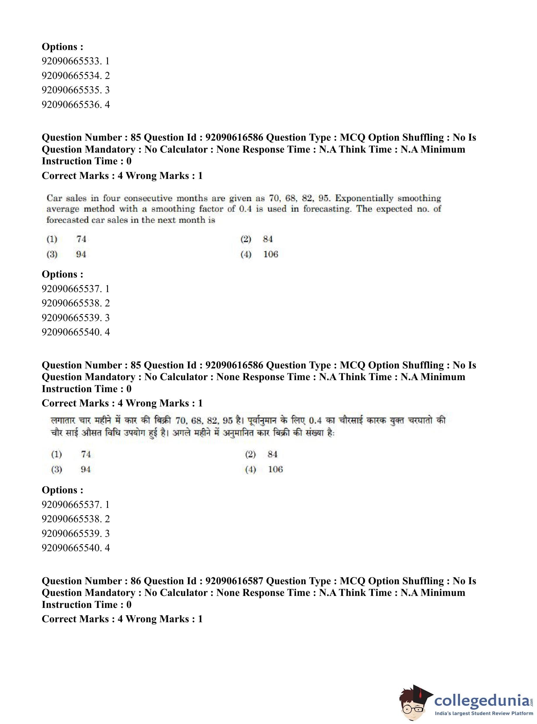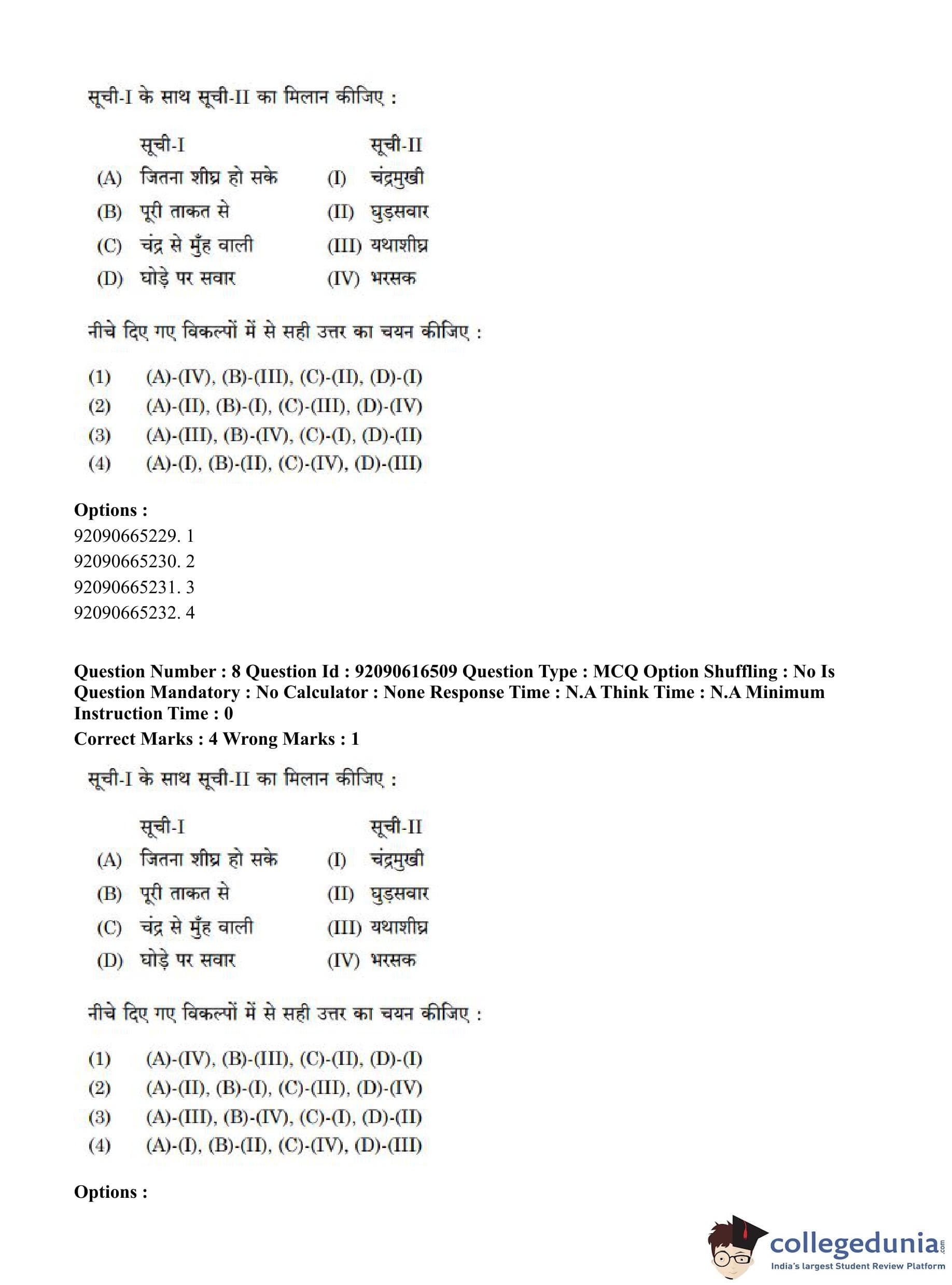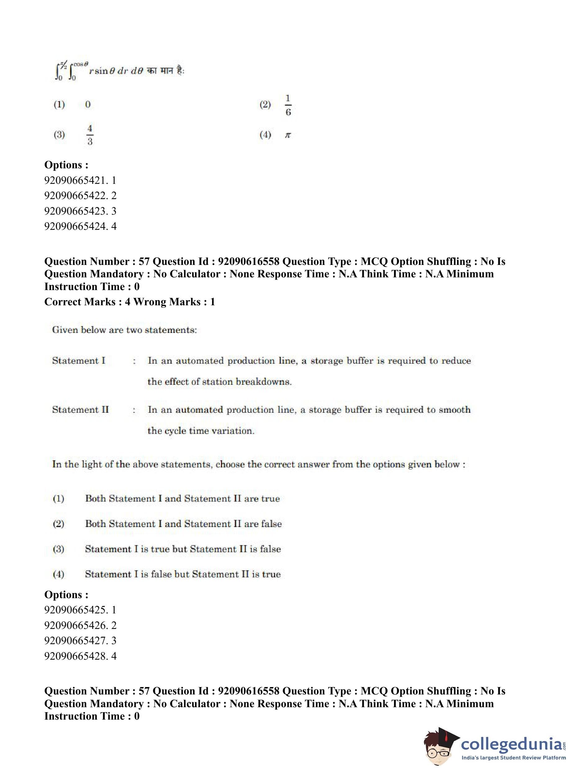CUET PG 2023 Mechanical Engineering Question Paper in Hindi (June 14 - Shift 1)