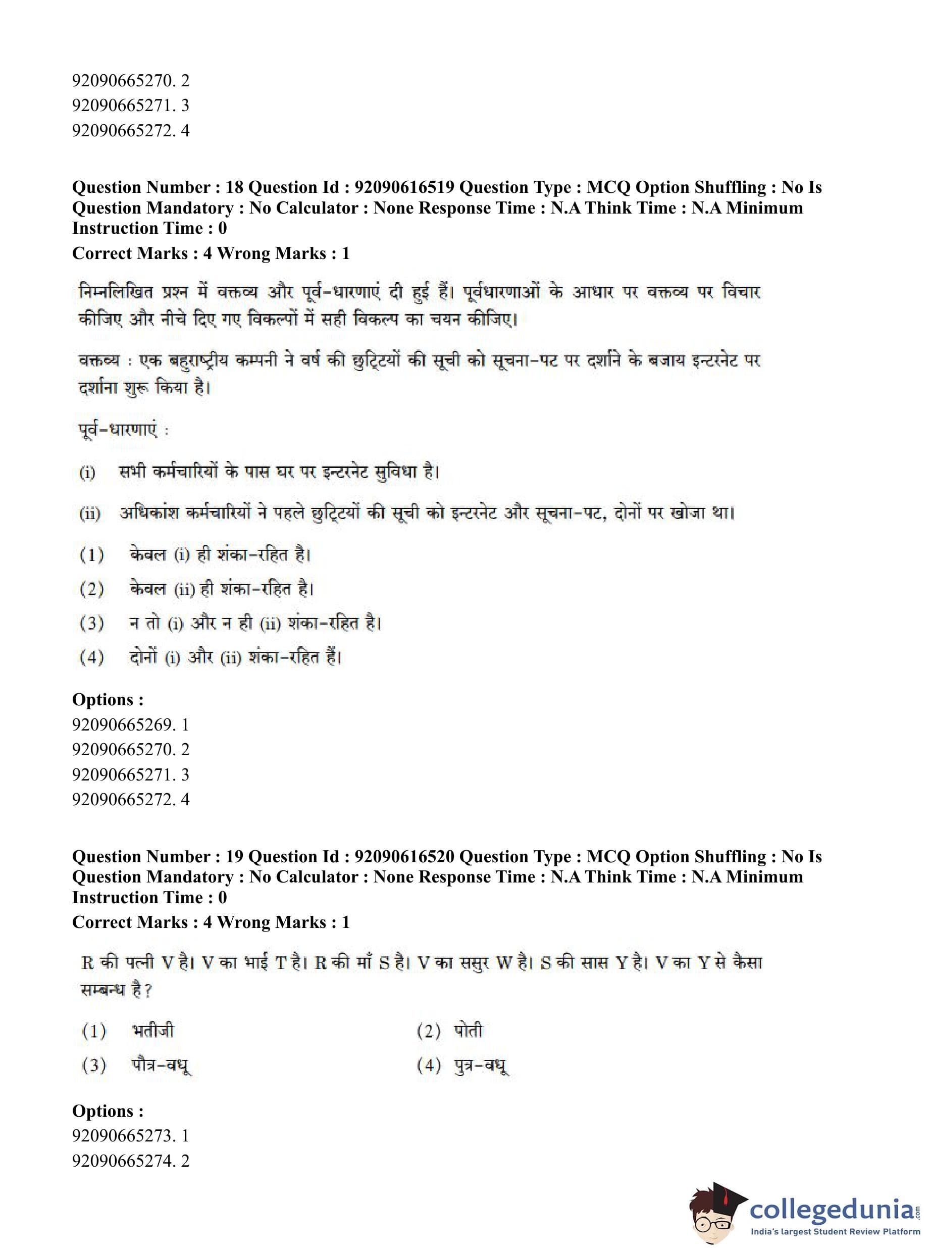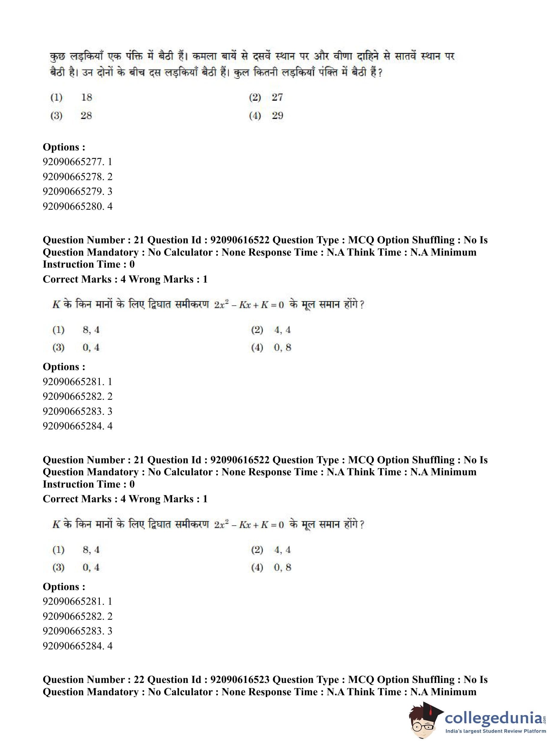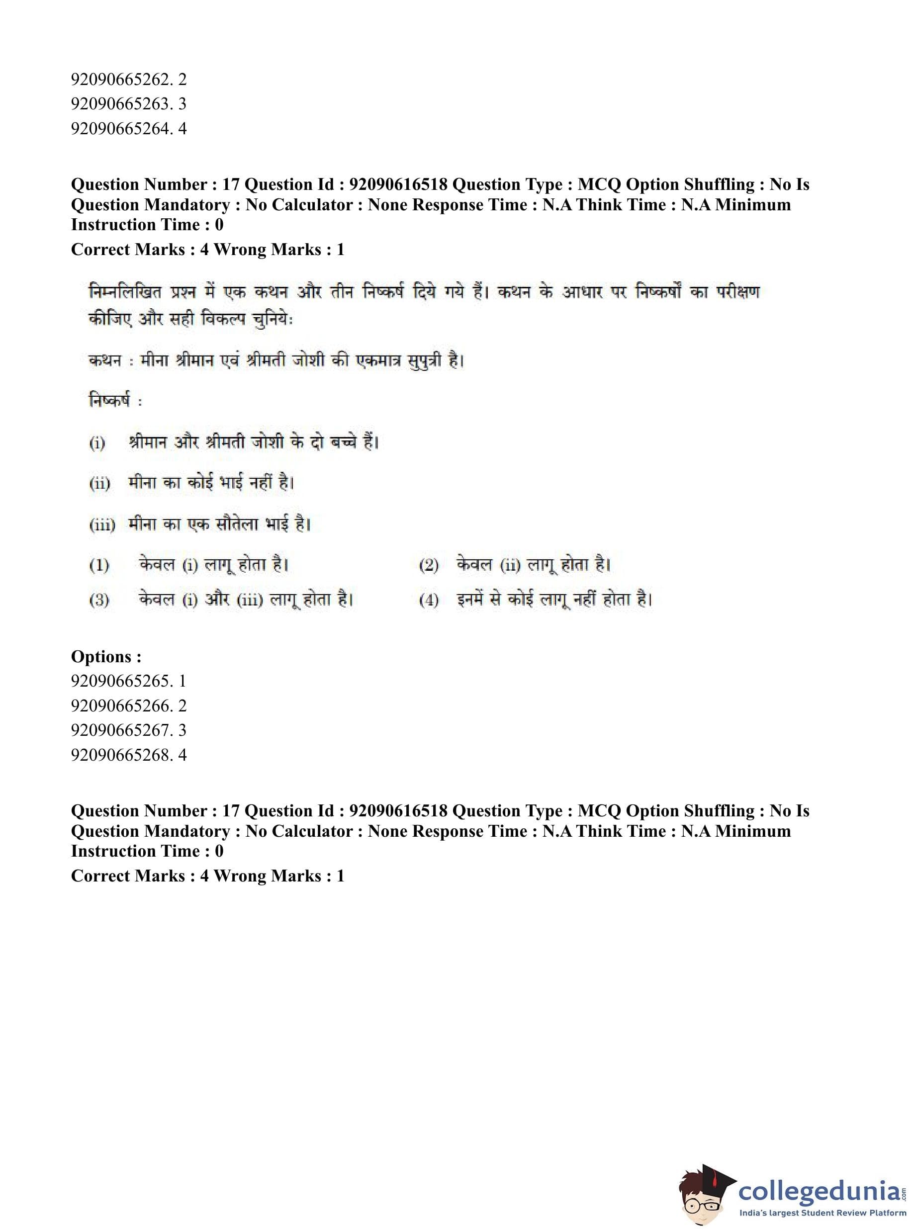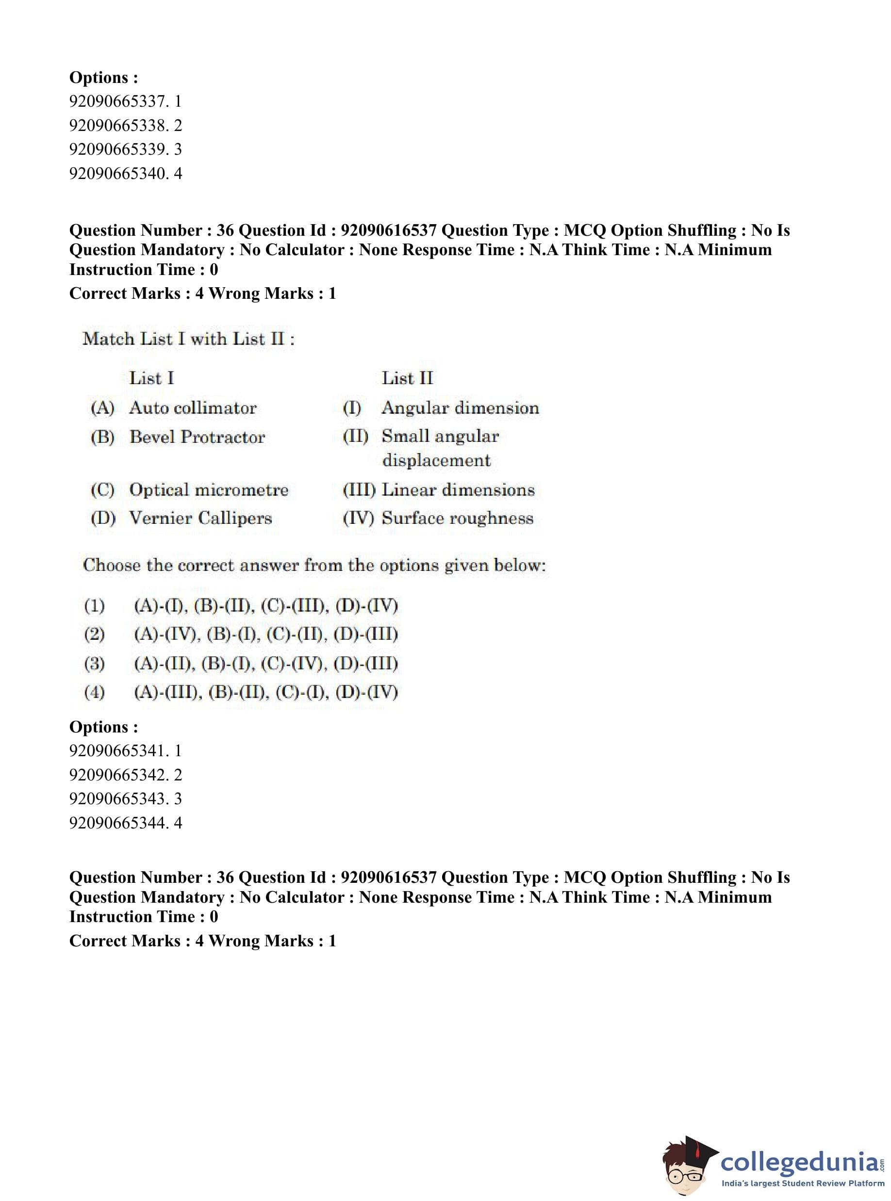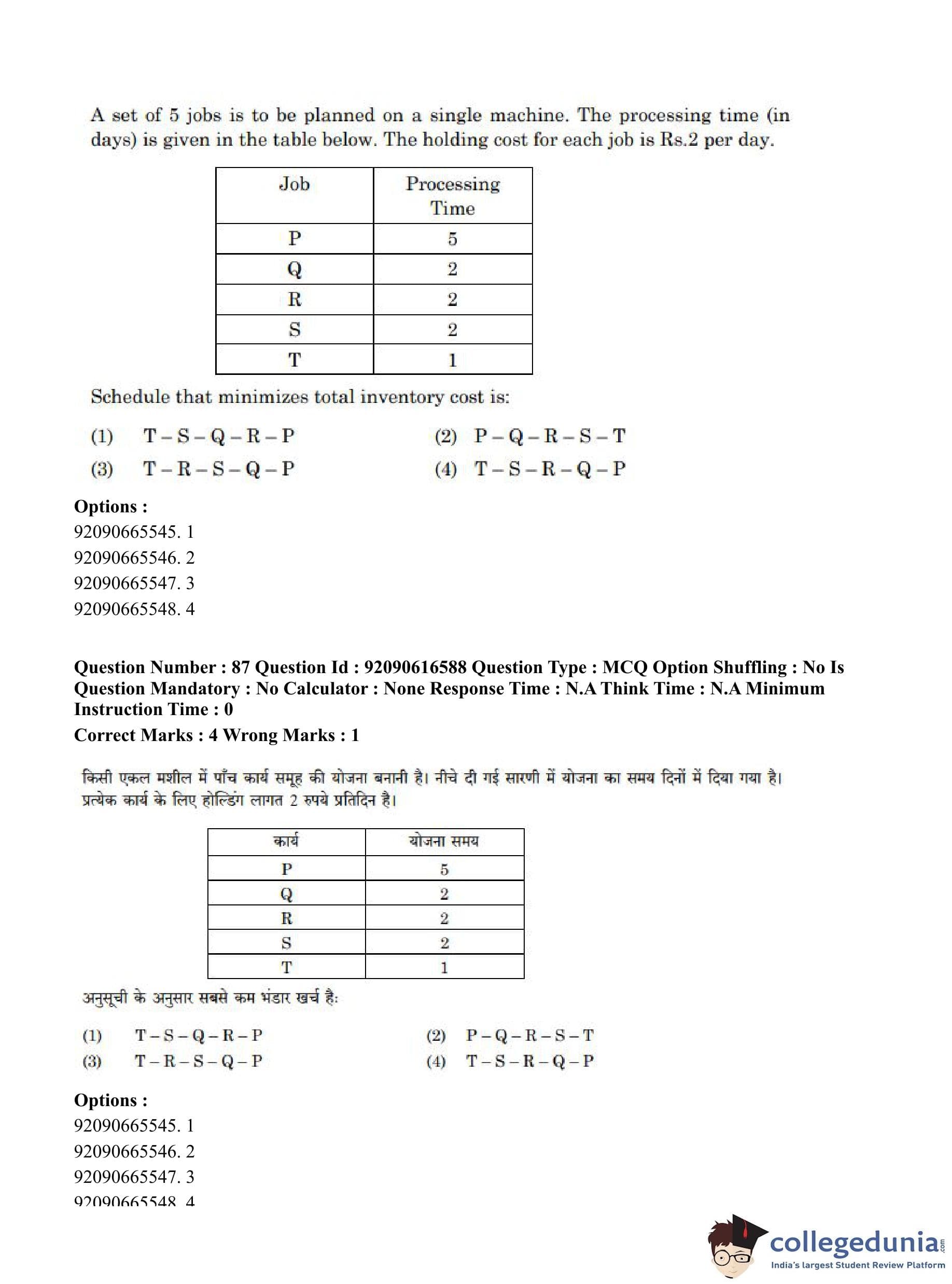 CUET PG 2023 Mechanical Engineering Question Paper in Hindi (June 14 - Shift 1)