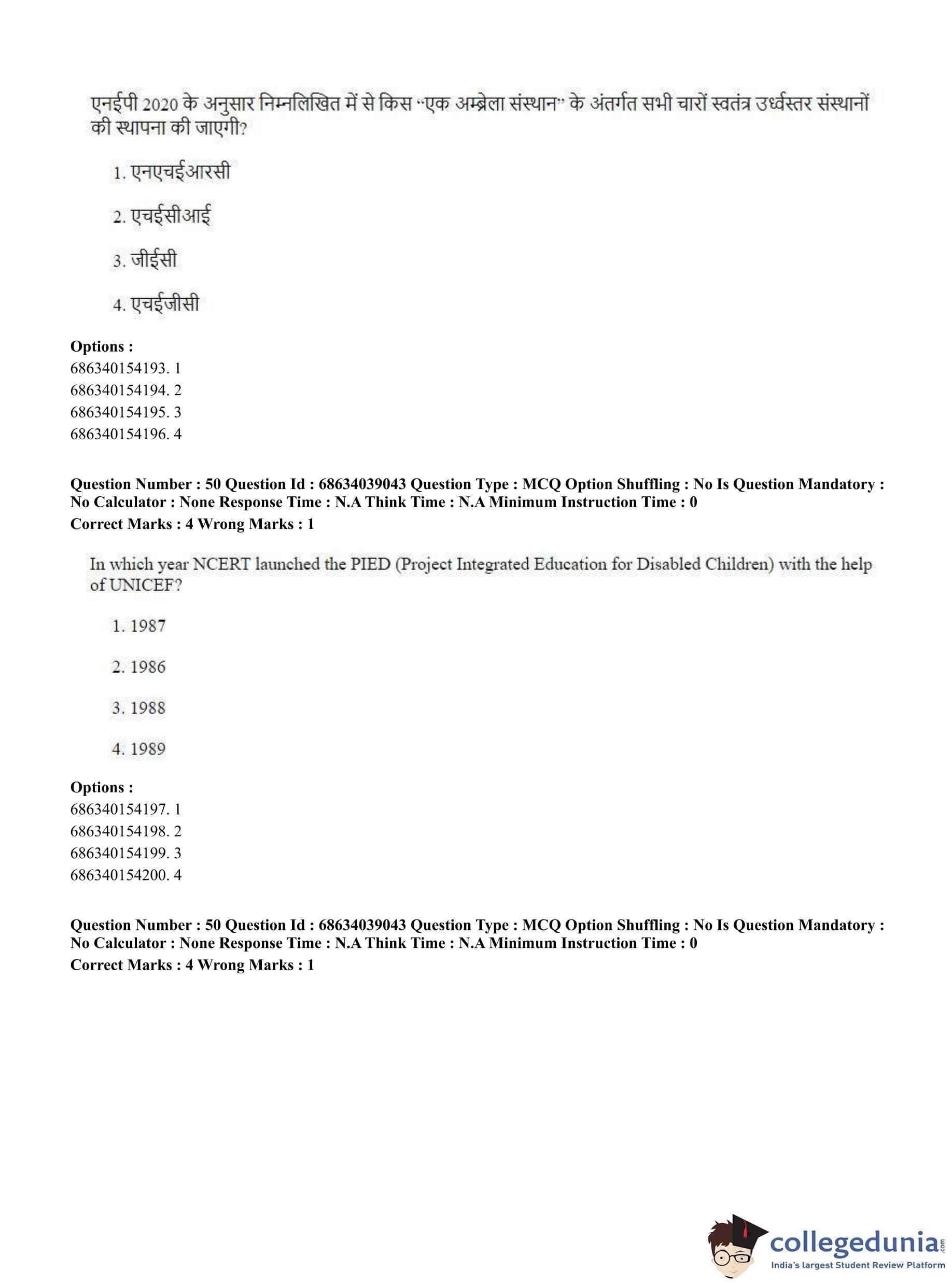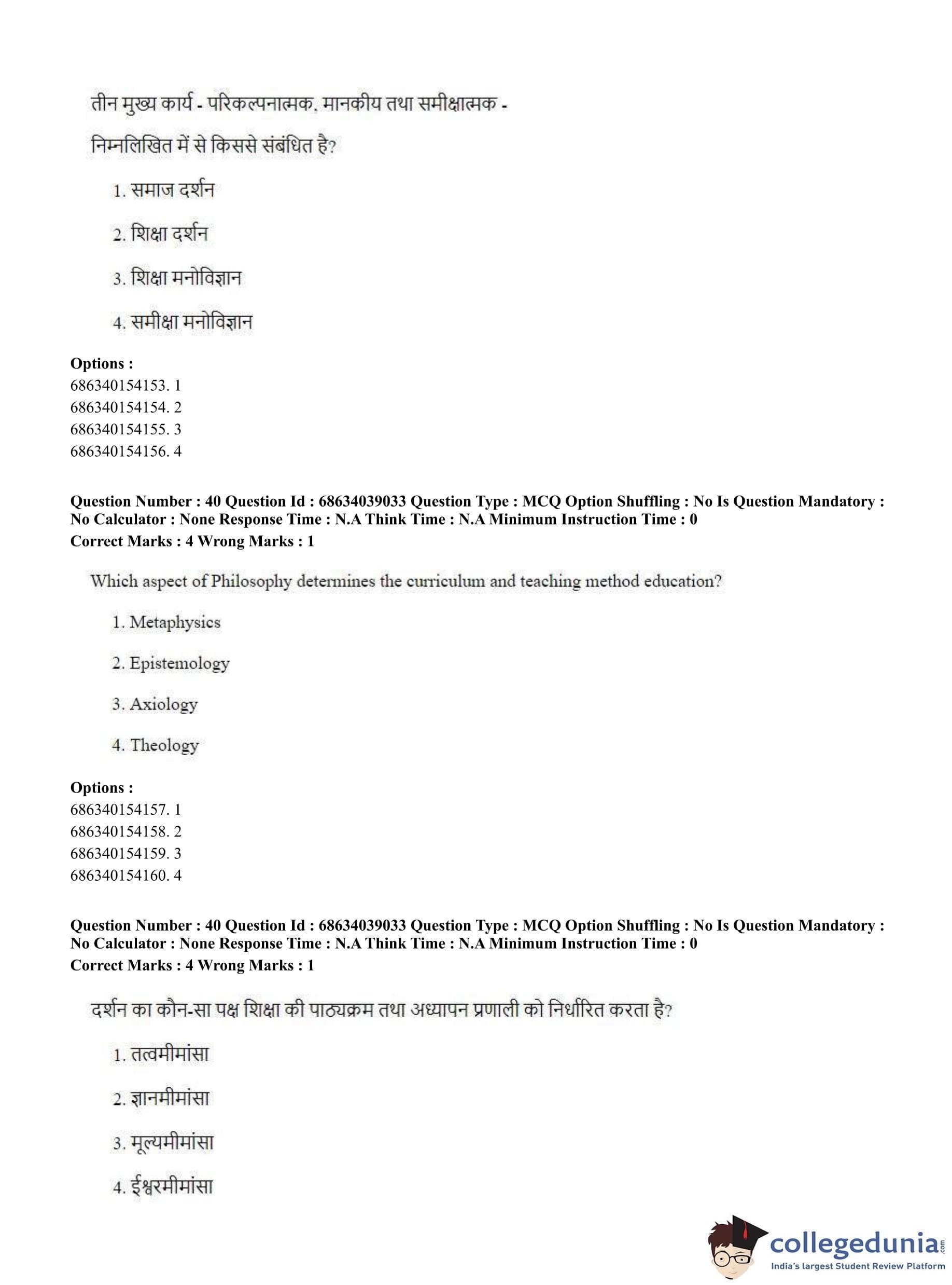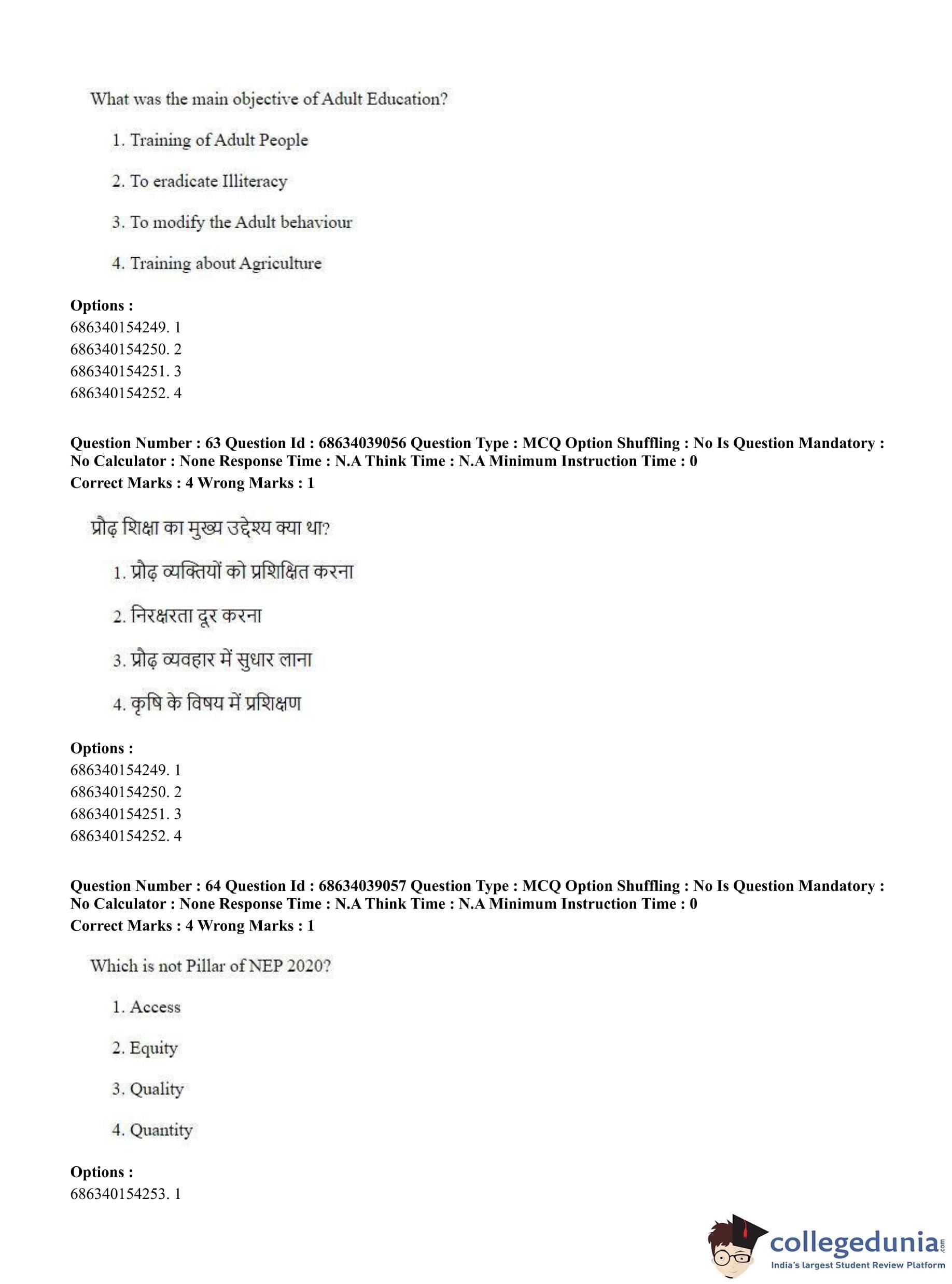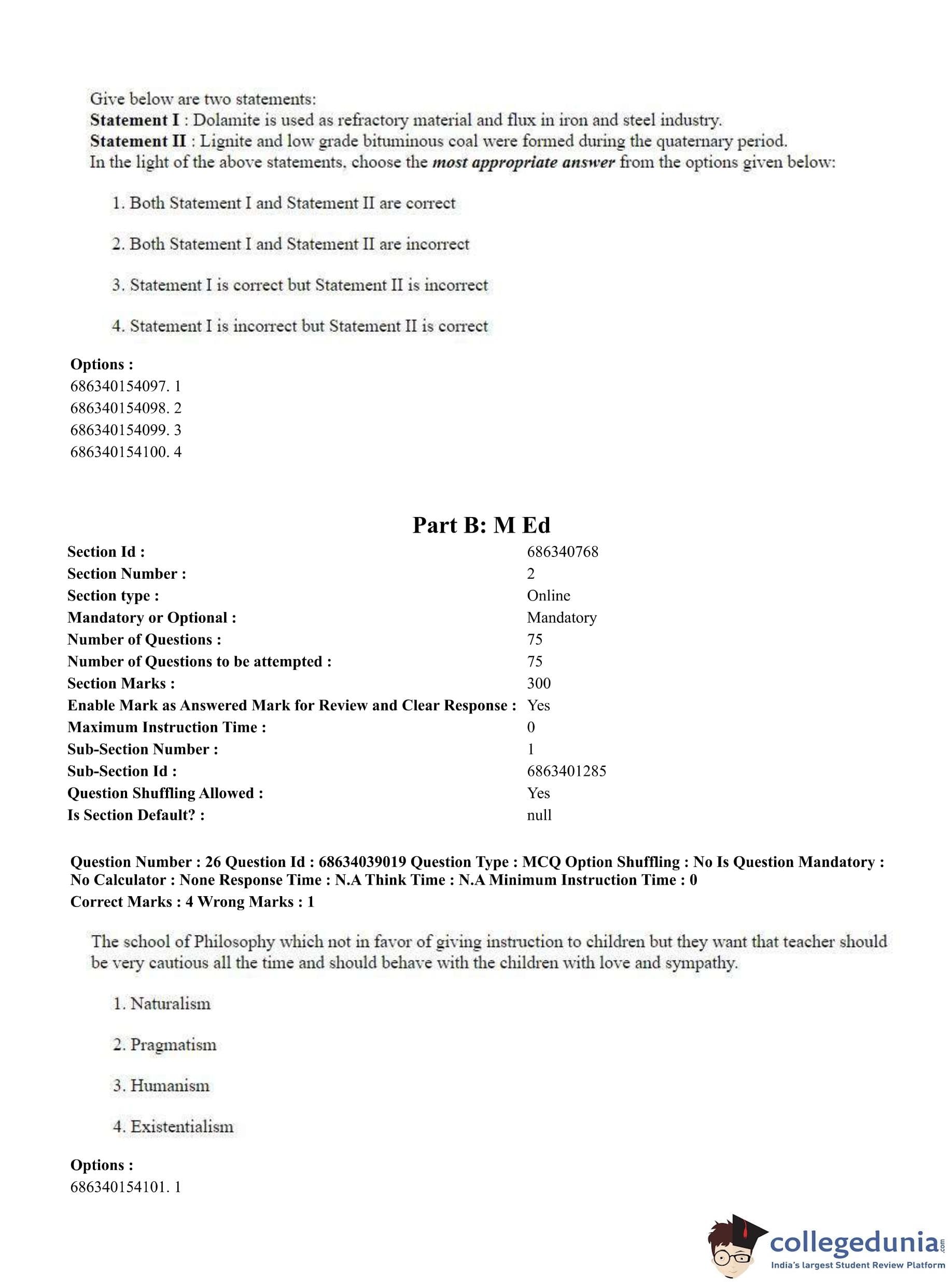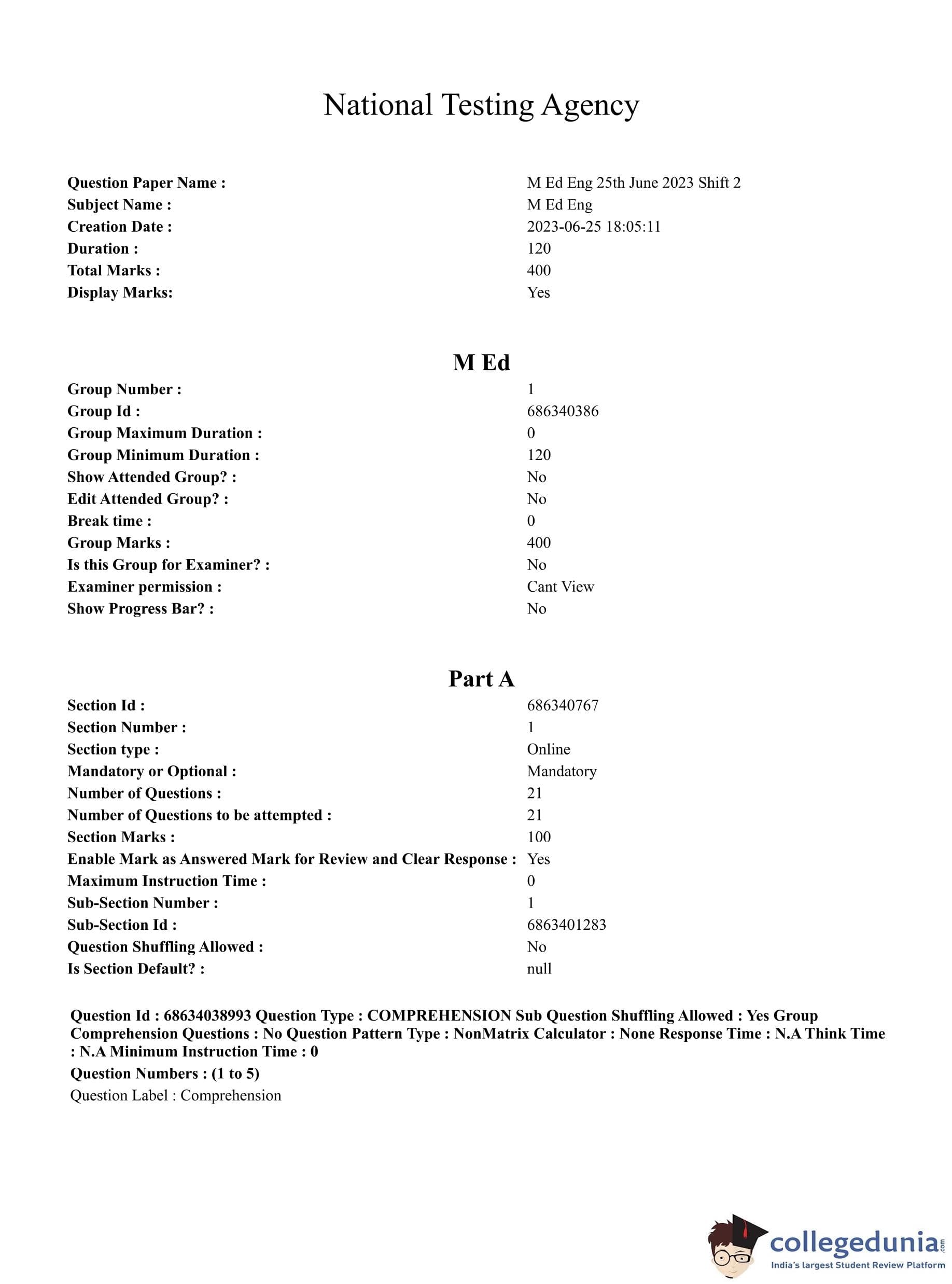 CUET PG 2023 M.Ed. Question Paper in English (June 25 - Shift 2)