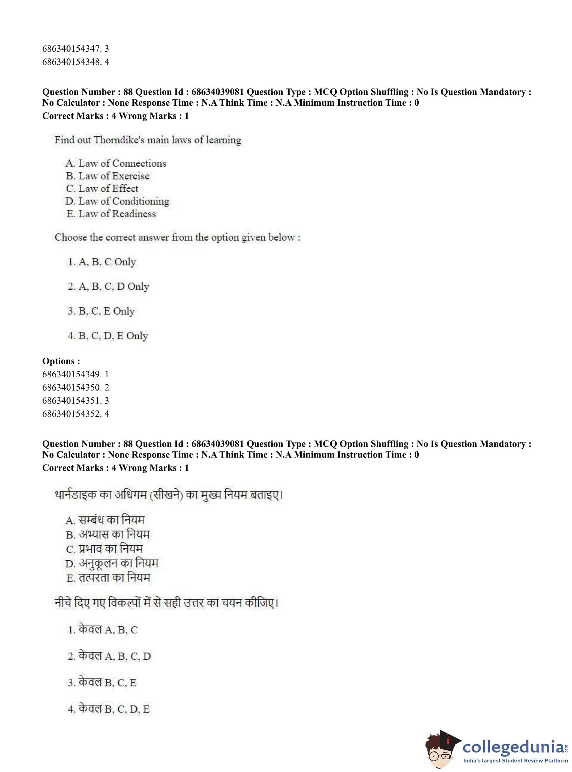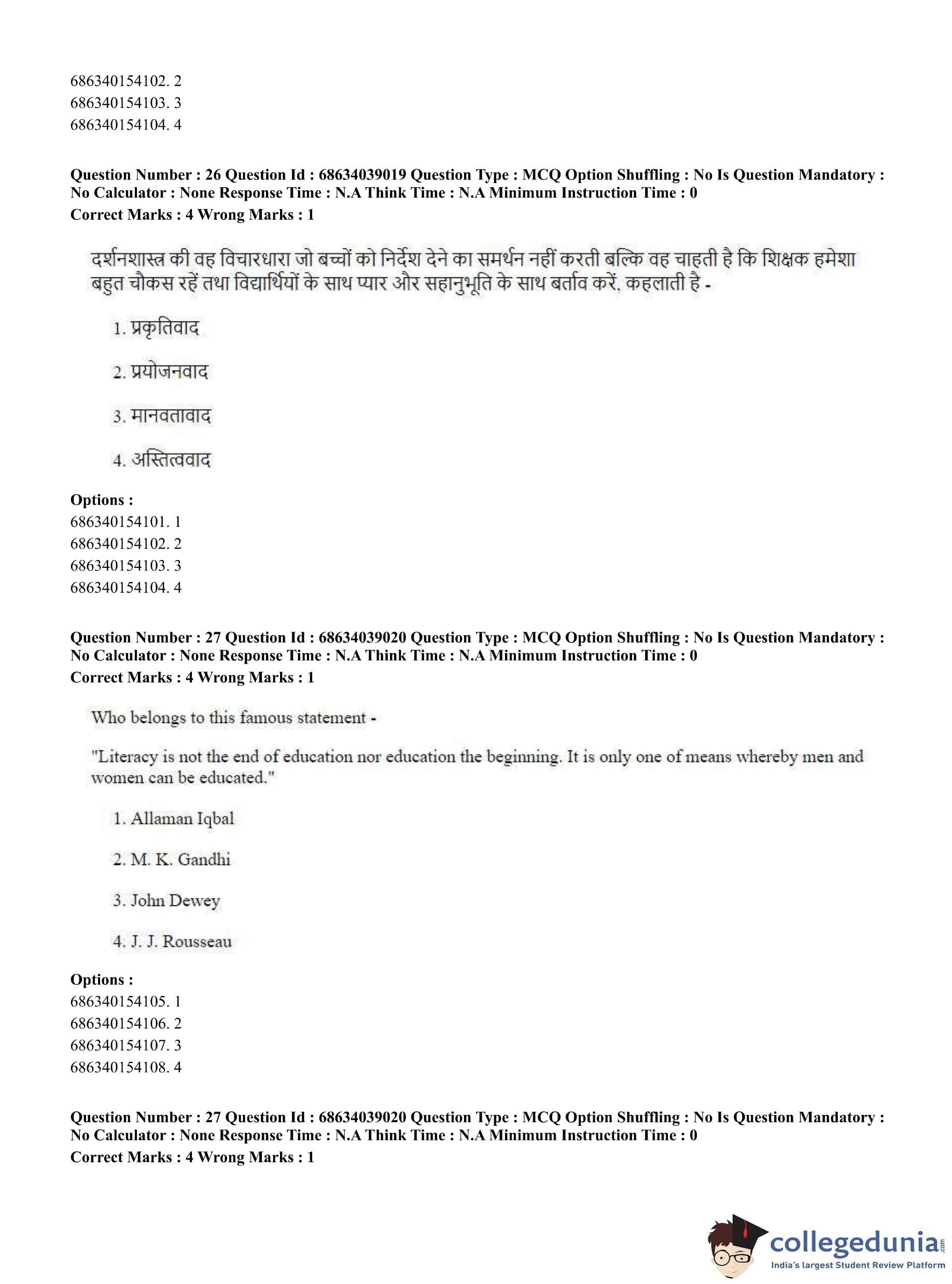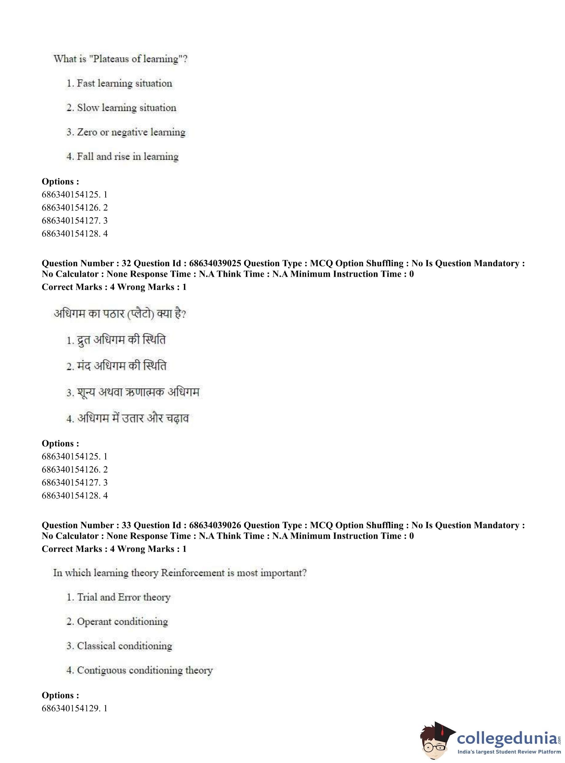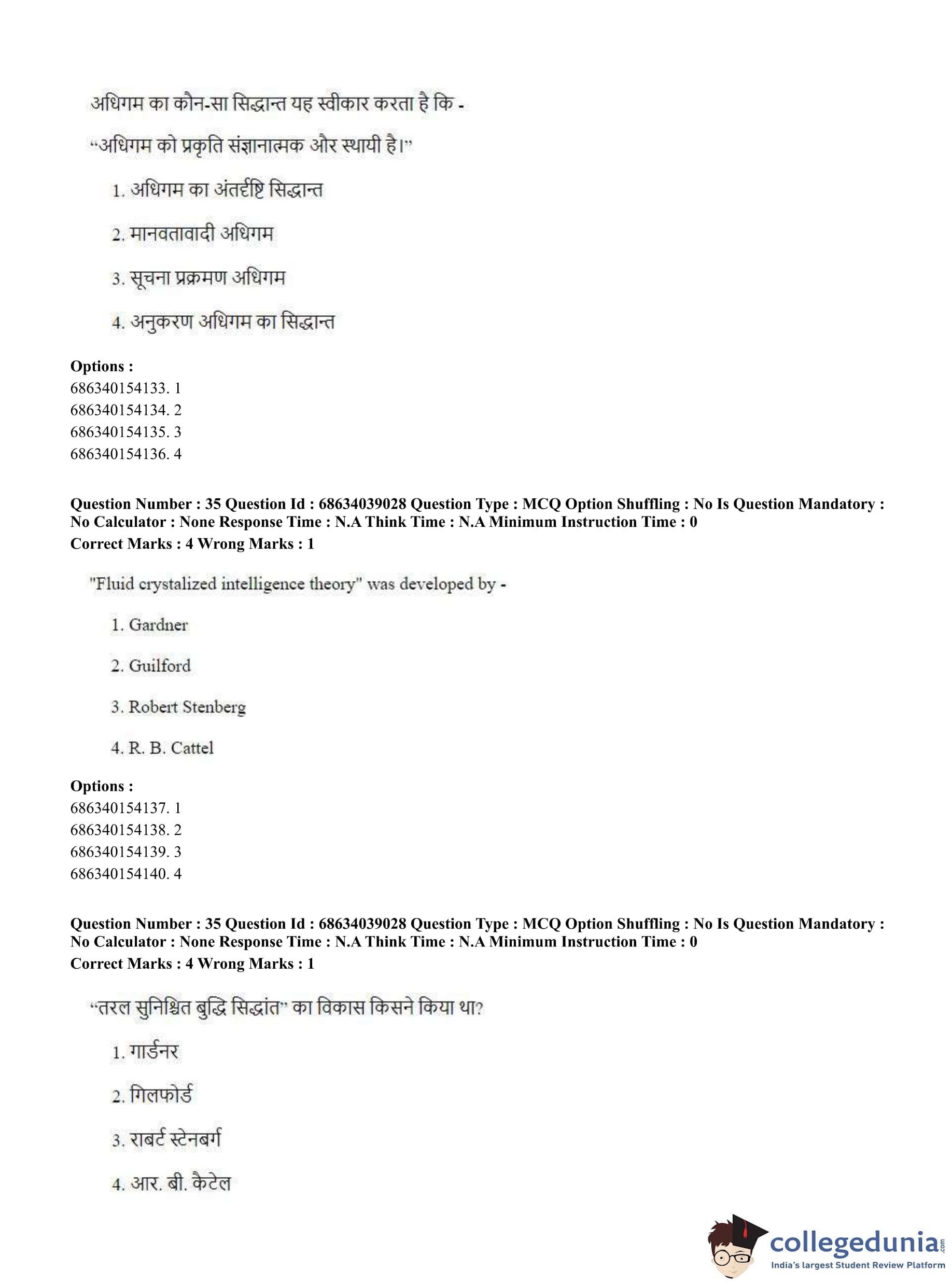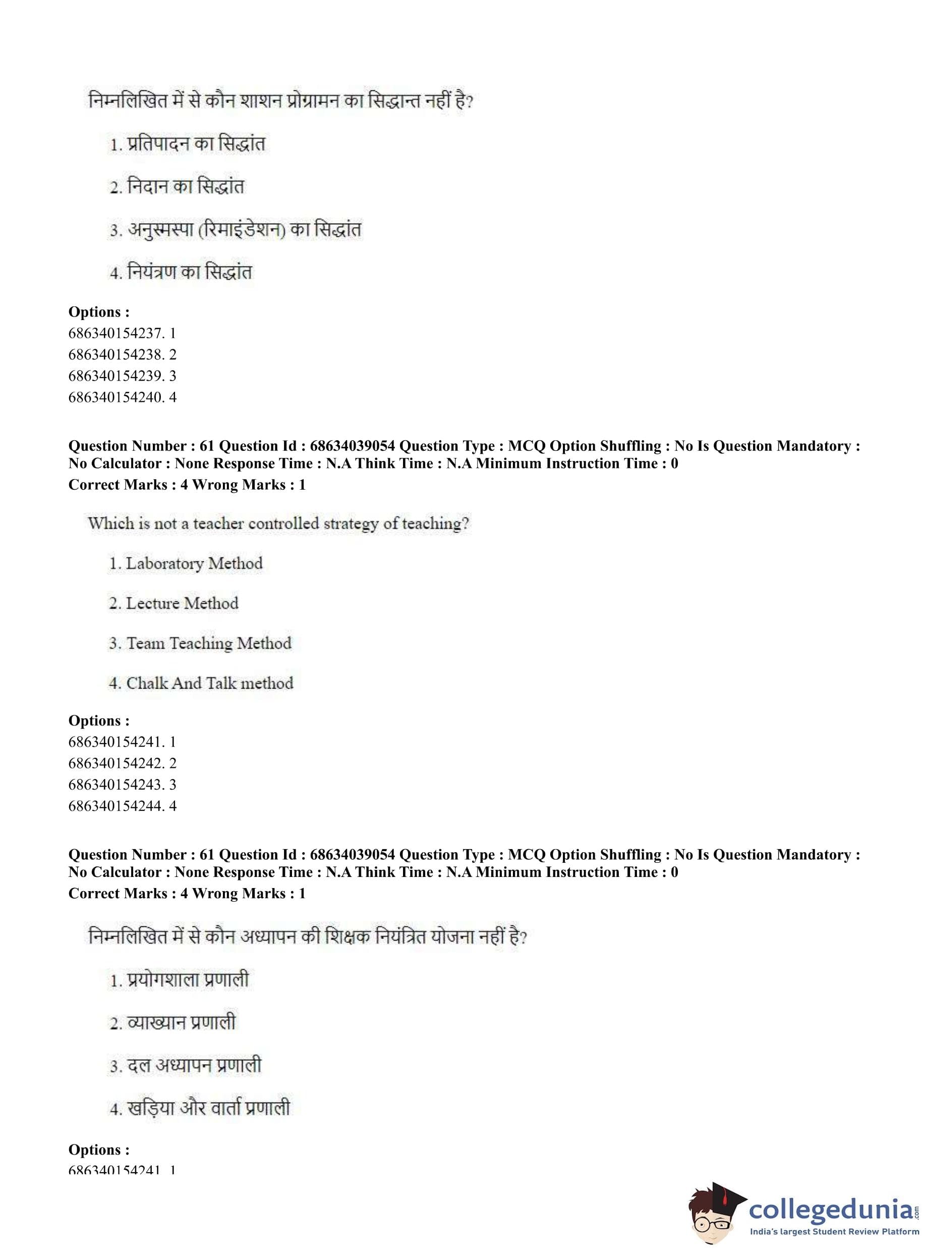 CUET PG 2023 M.Ed. Question Paper in English (June 25 - Shift 2)