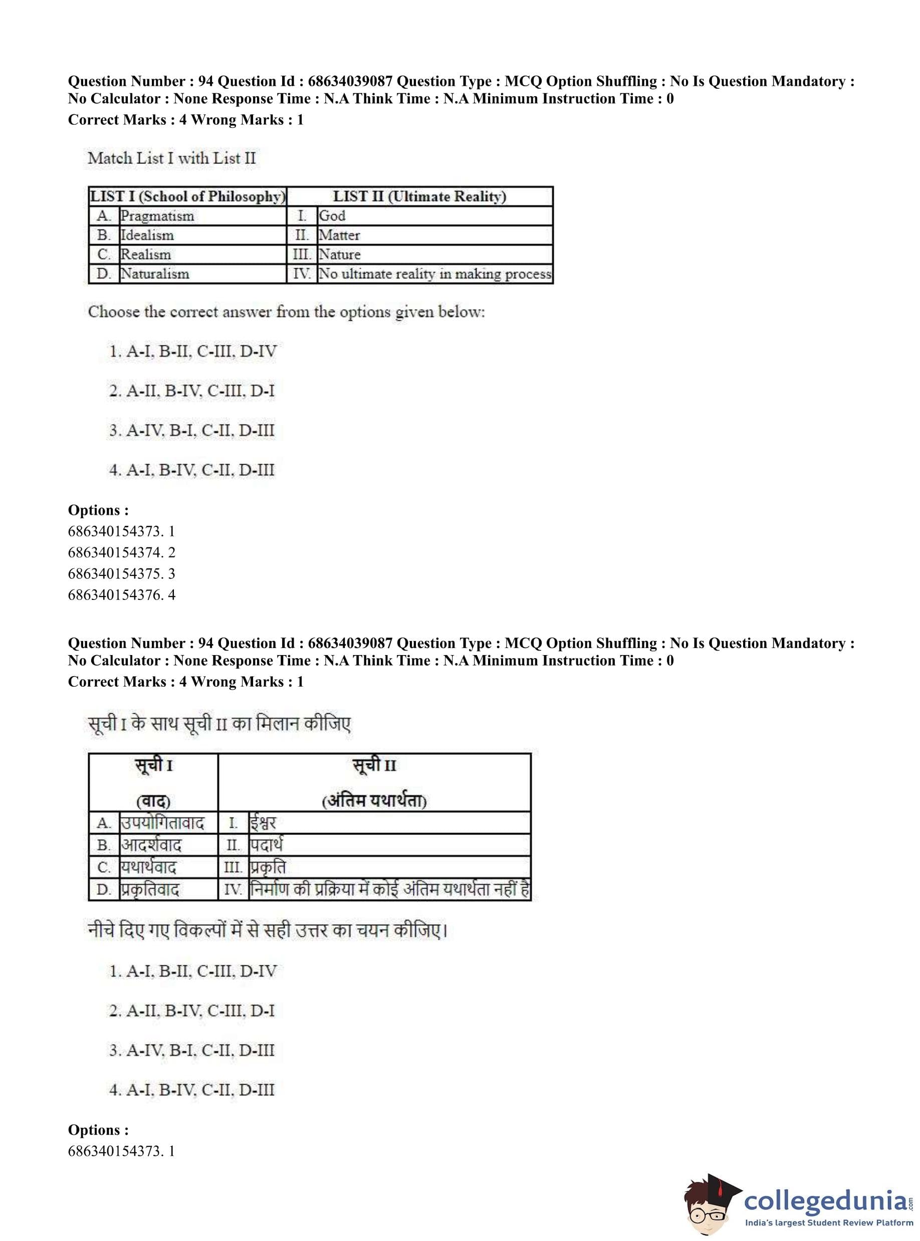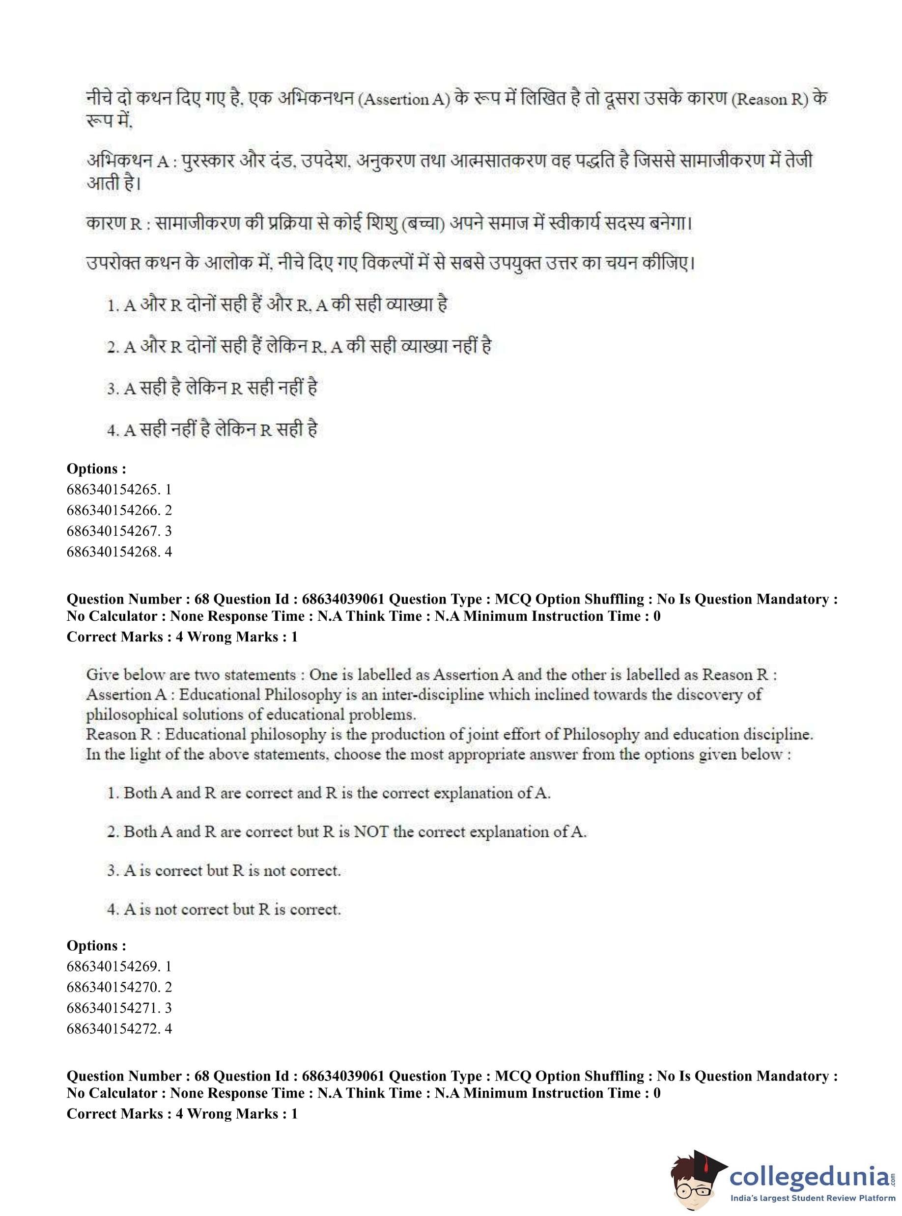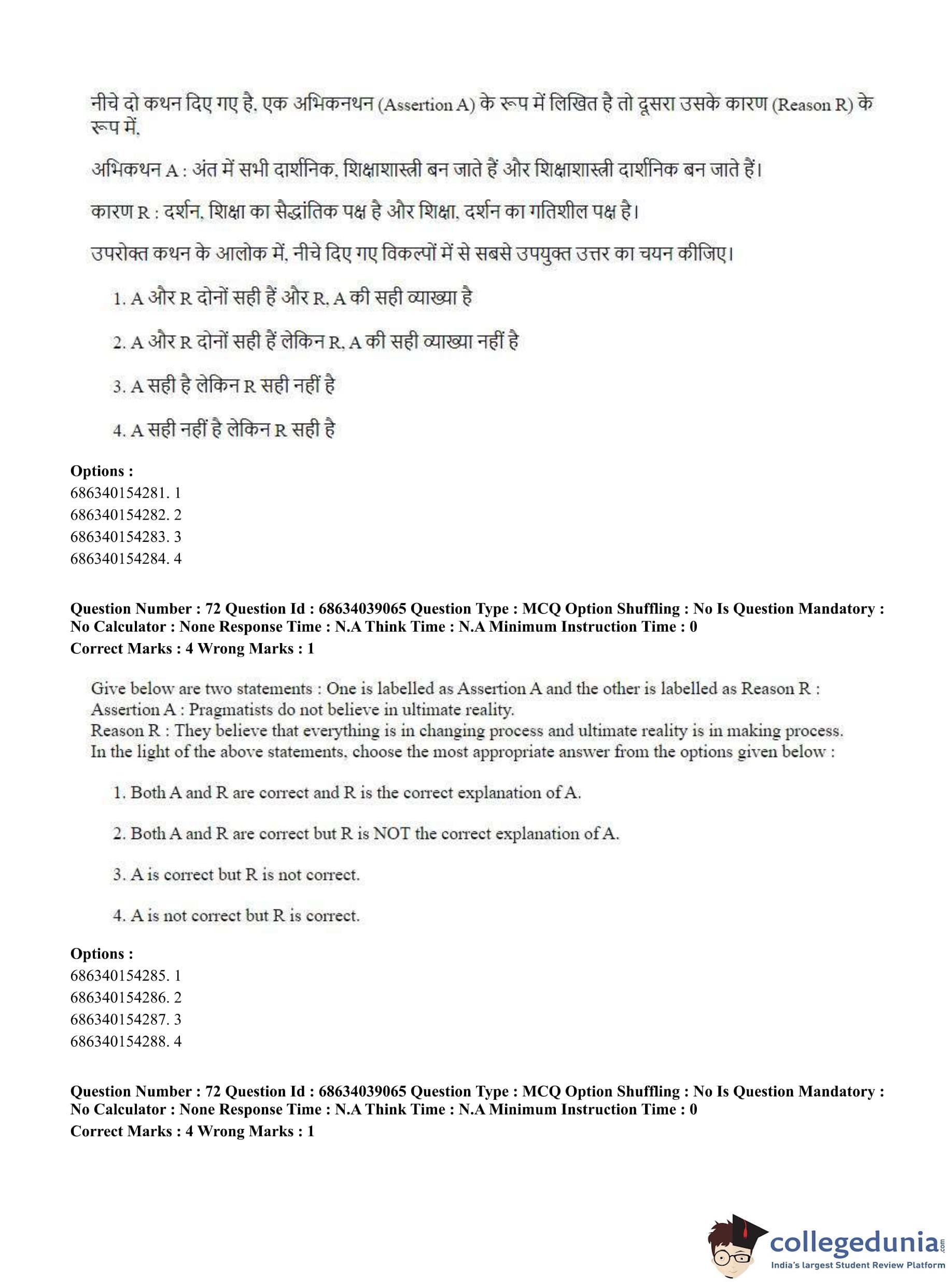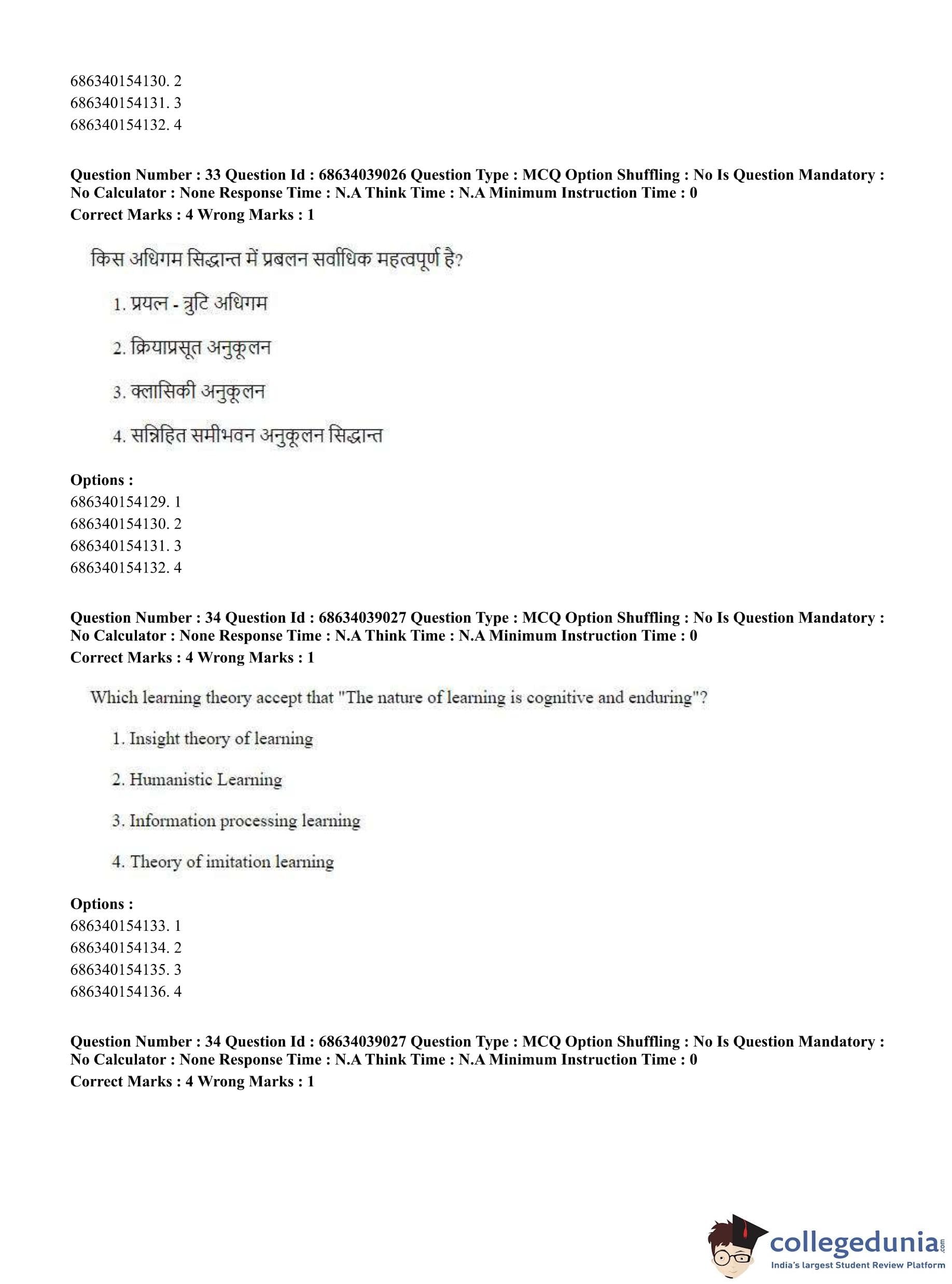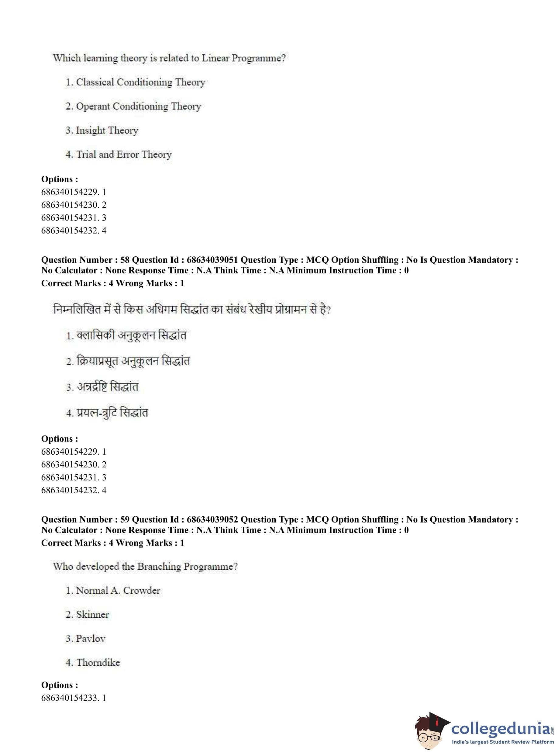 CUET PG 2023 M.Ed. Question Paper in English (June 25 - Shift 2)