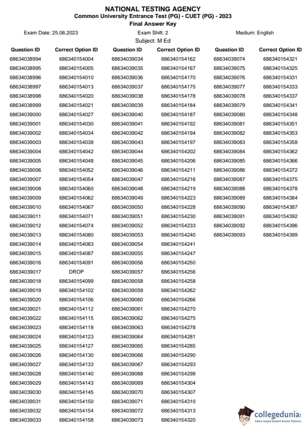 | CUET PG M.Ed. Question Paper 2023 PDF | CUET PG M.Ed. Answer Key 2023 PDF |