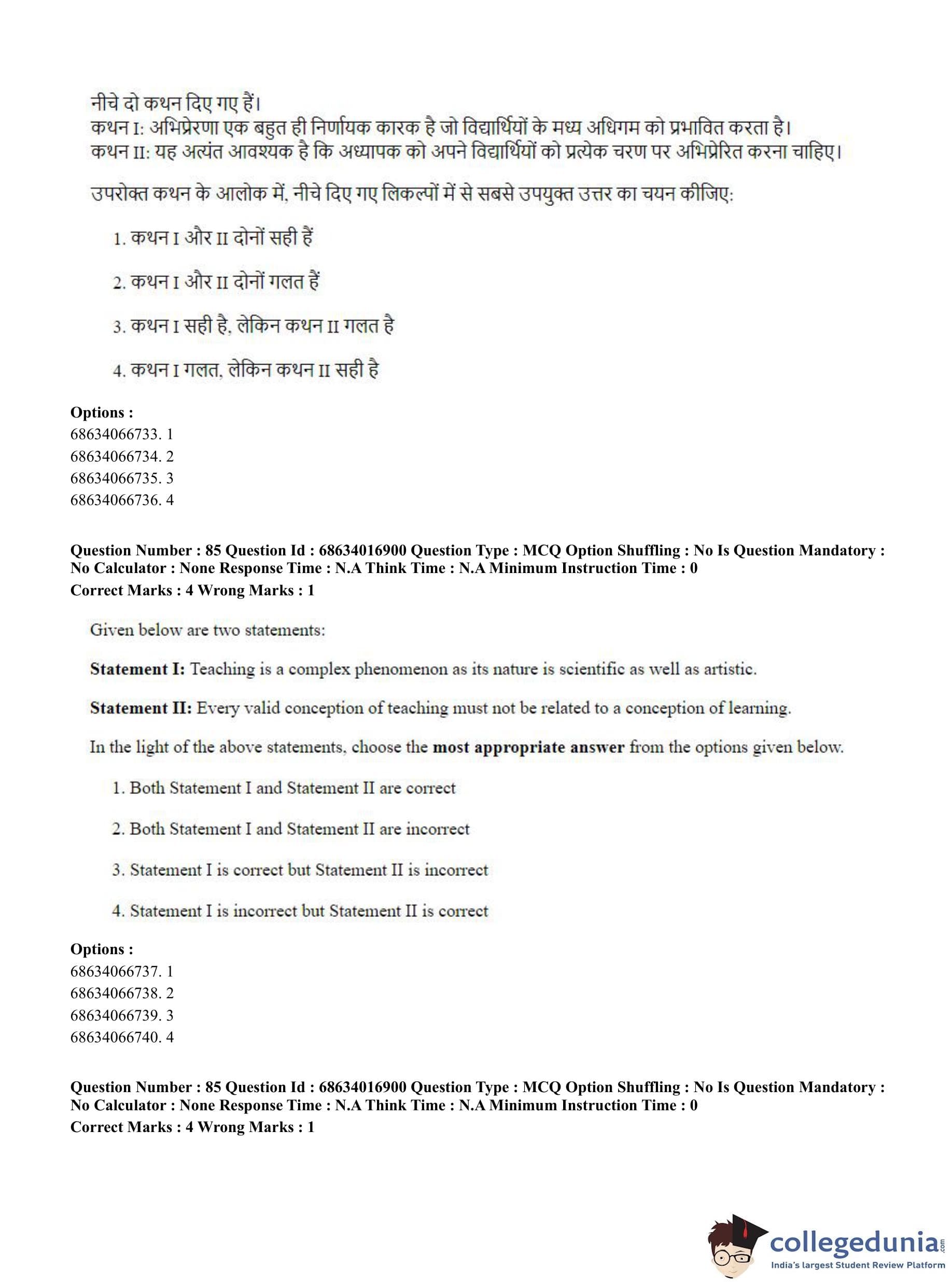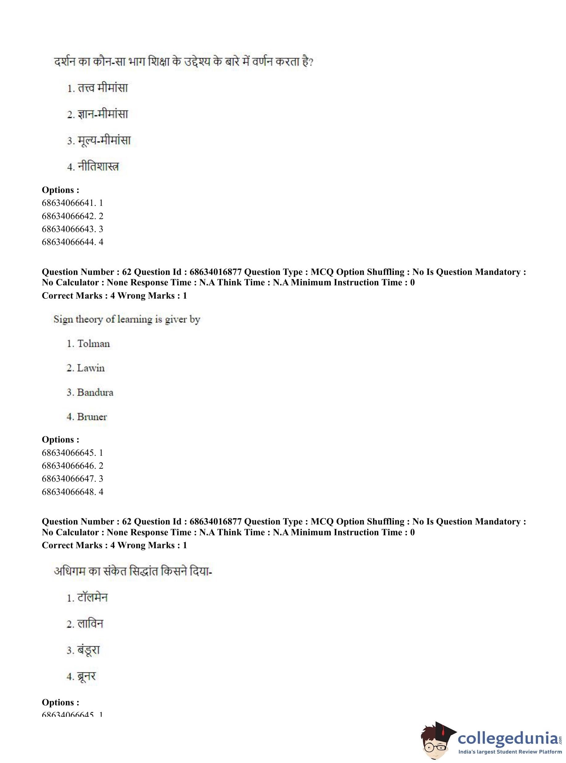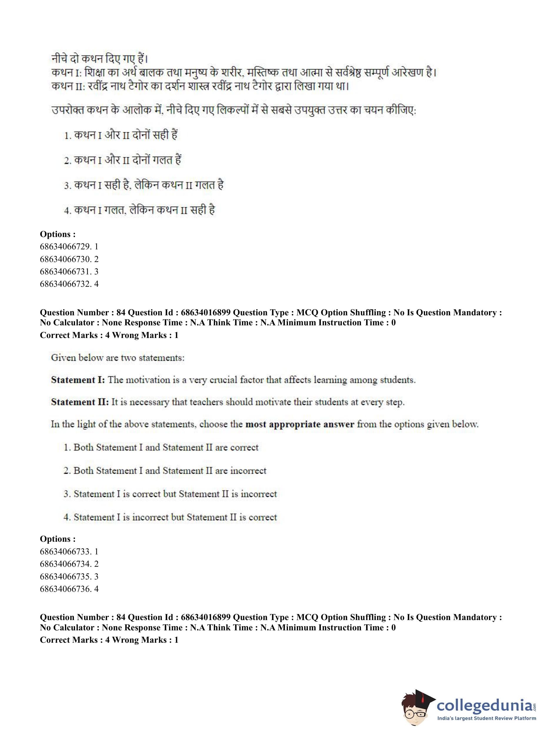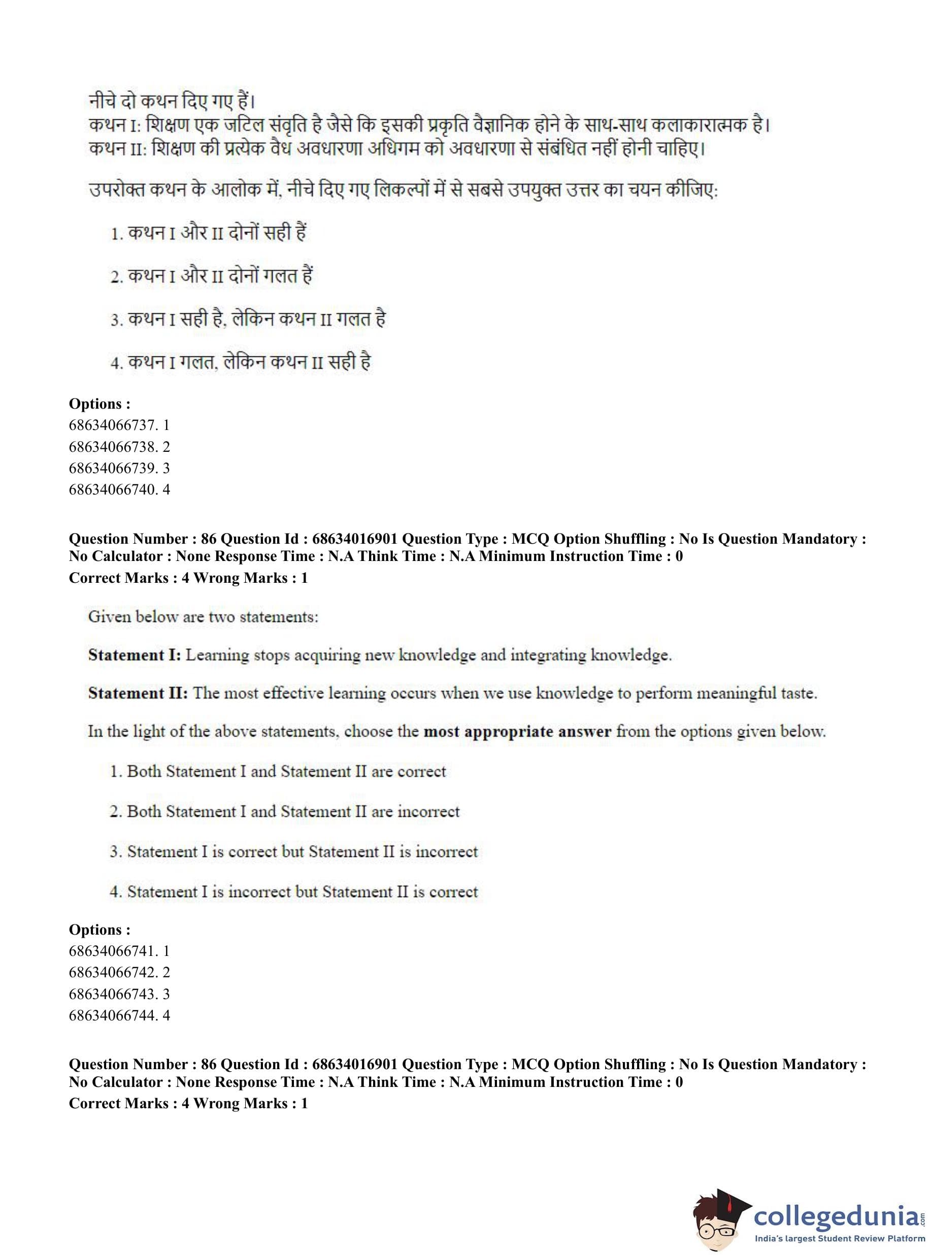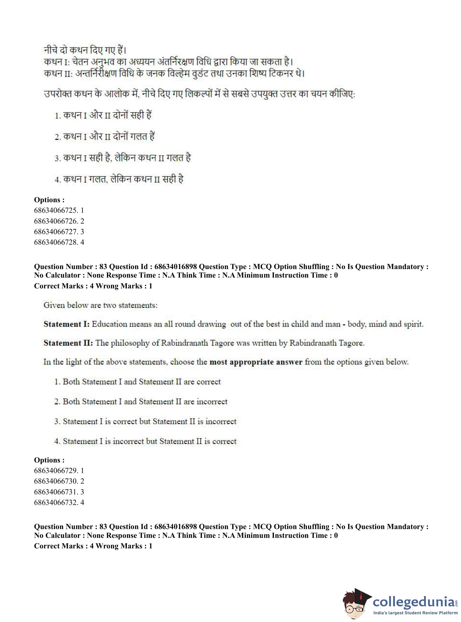 CUET PG 2023 M.Ed. Question Paper in Hindi (June 11 - Shift 1)