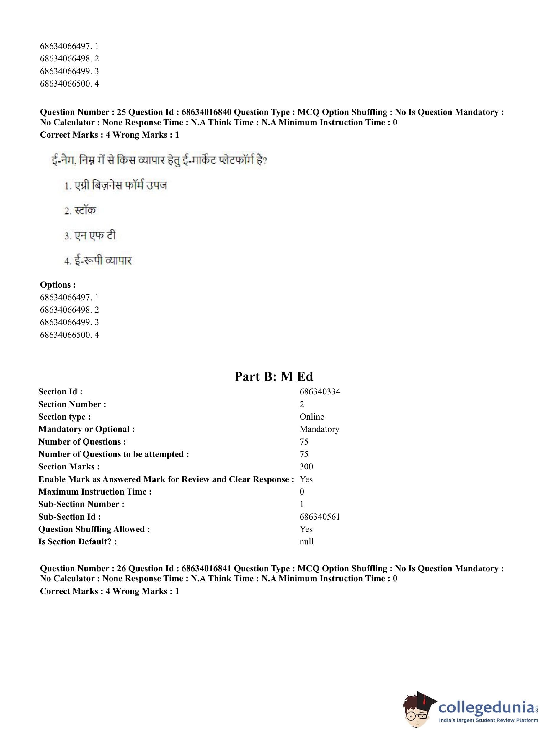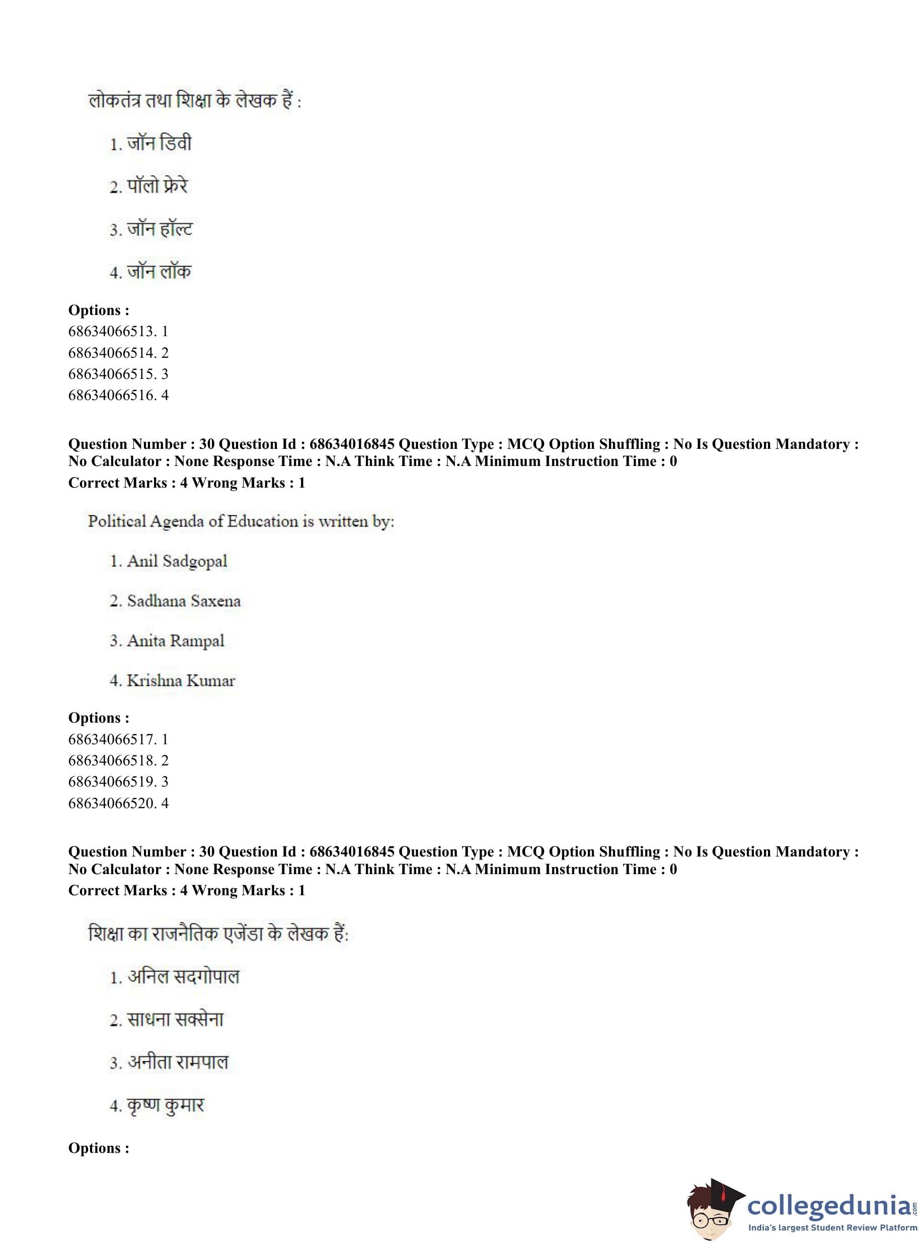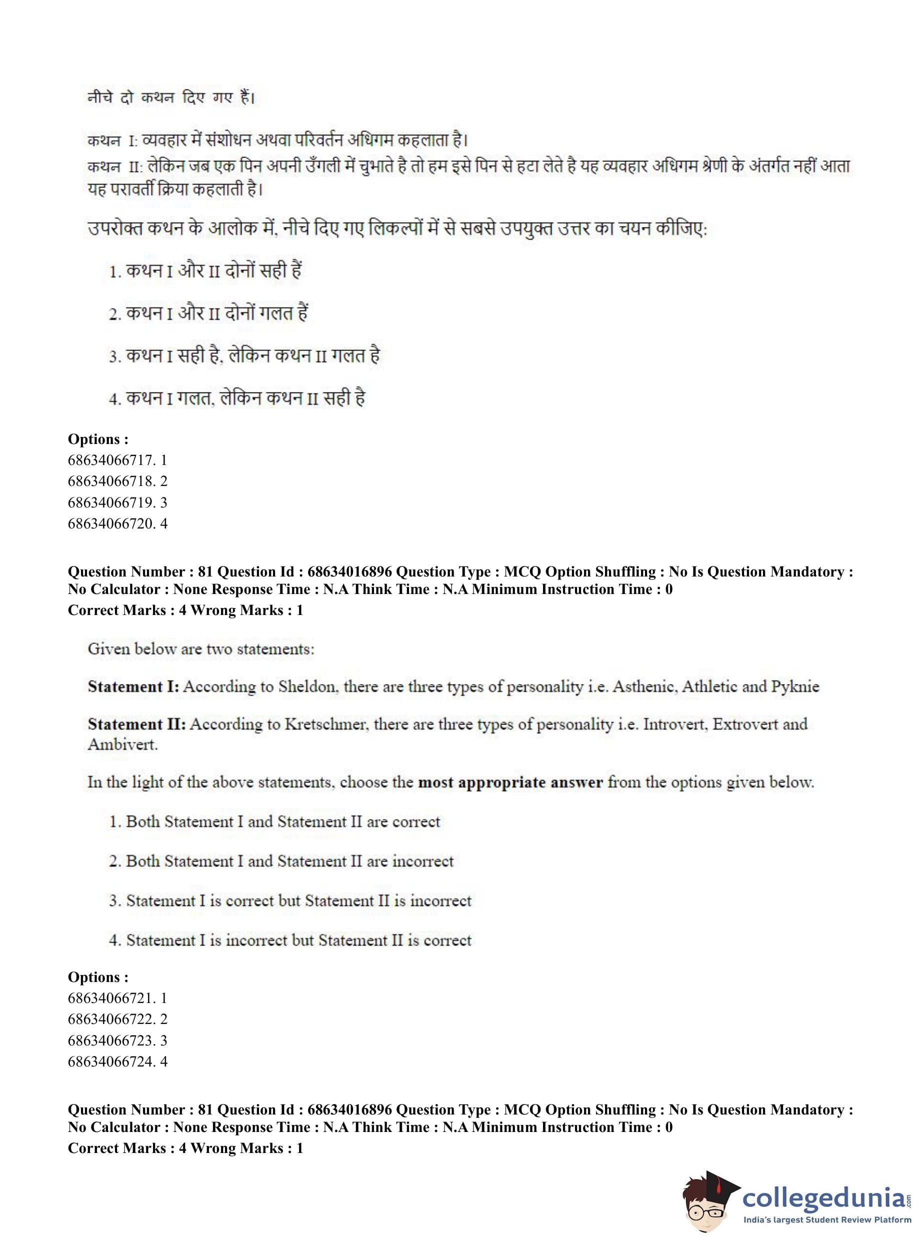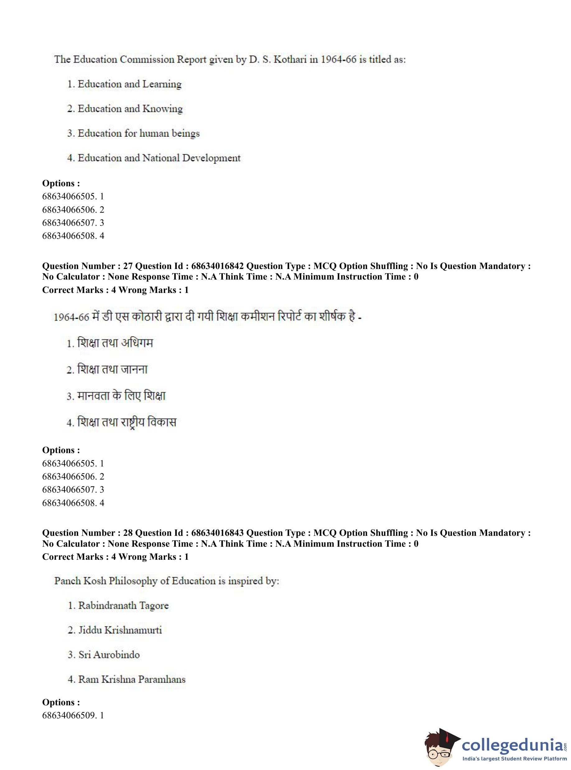 CUET PG 2023 M.Ed. Question Paper in Hindi (June 11 - Shift 1)