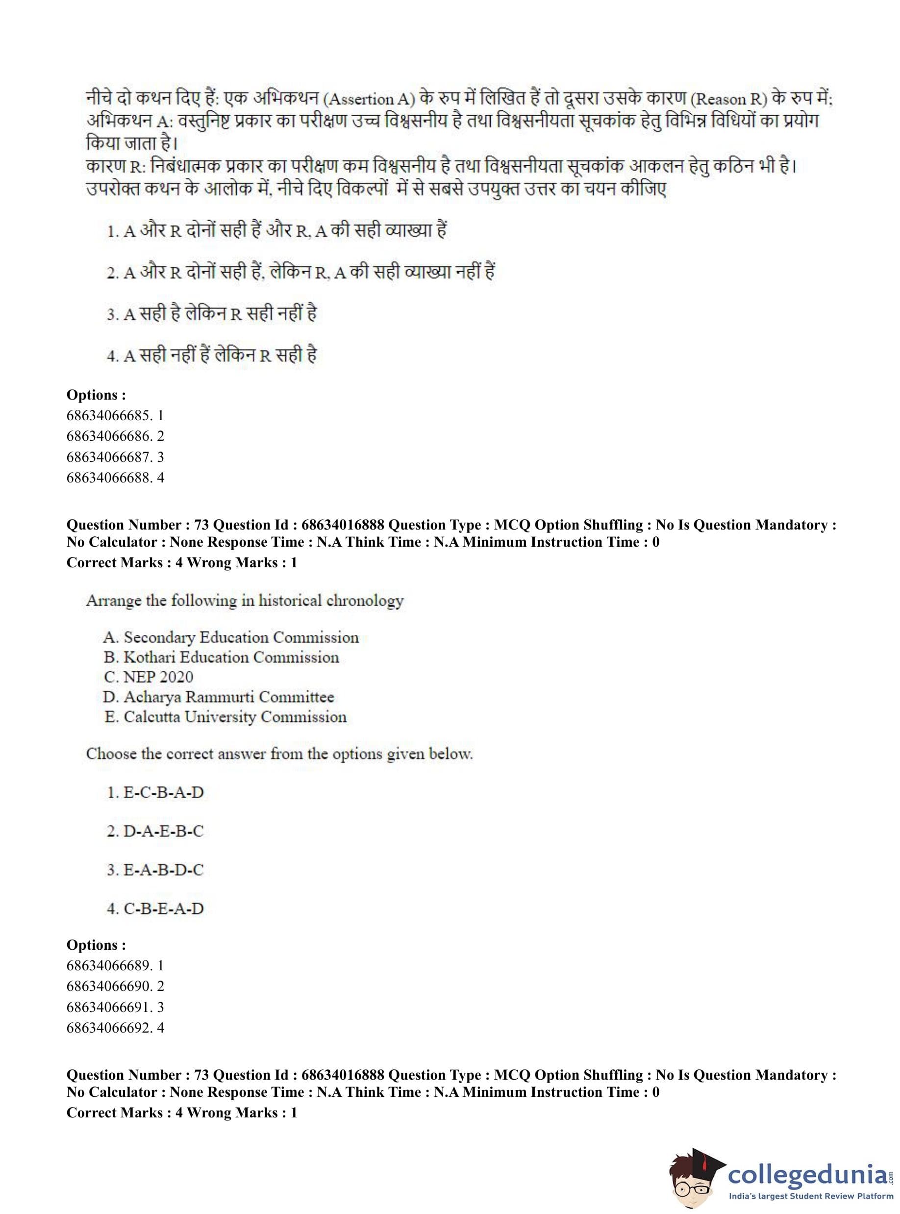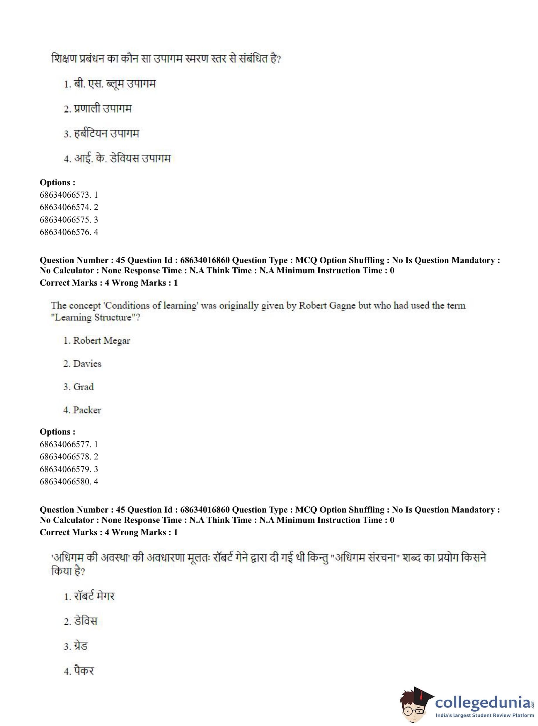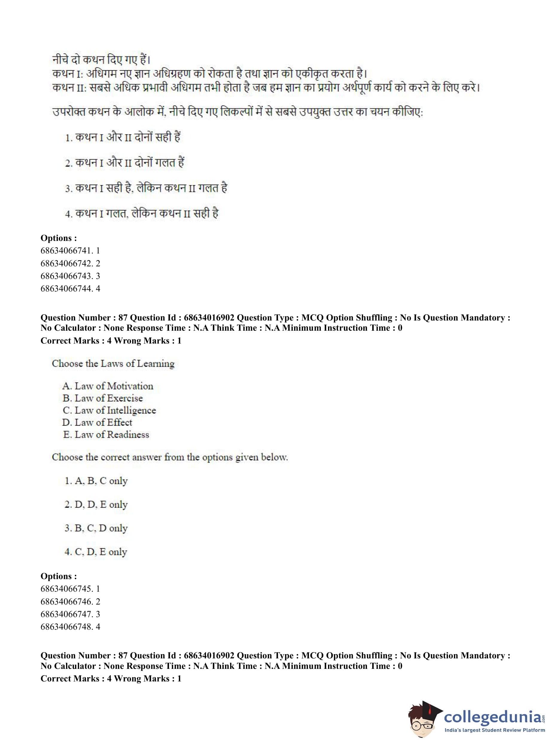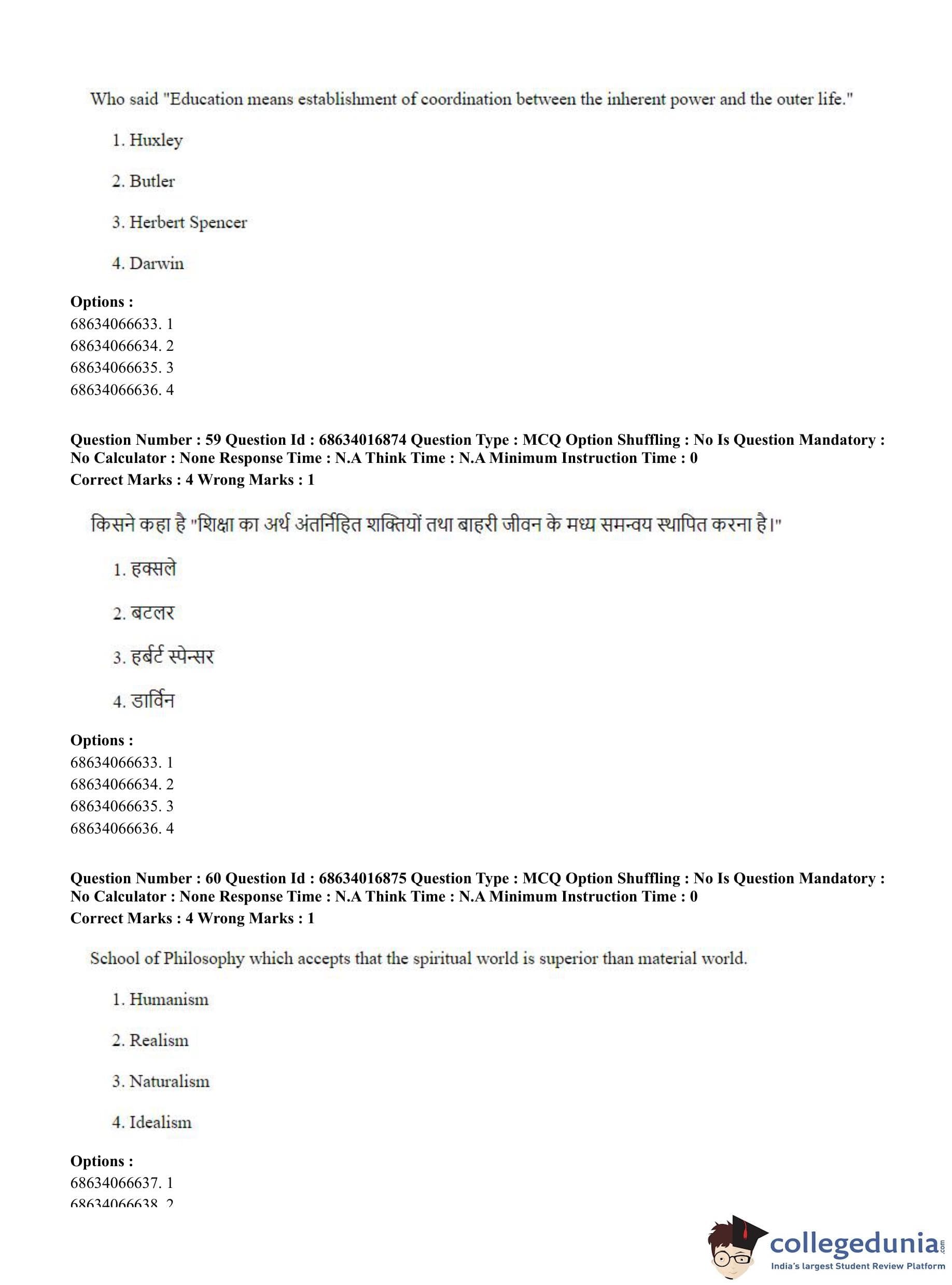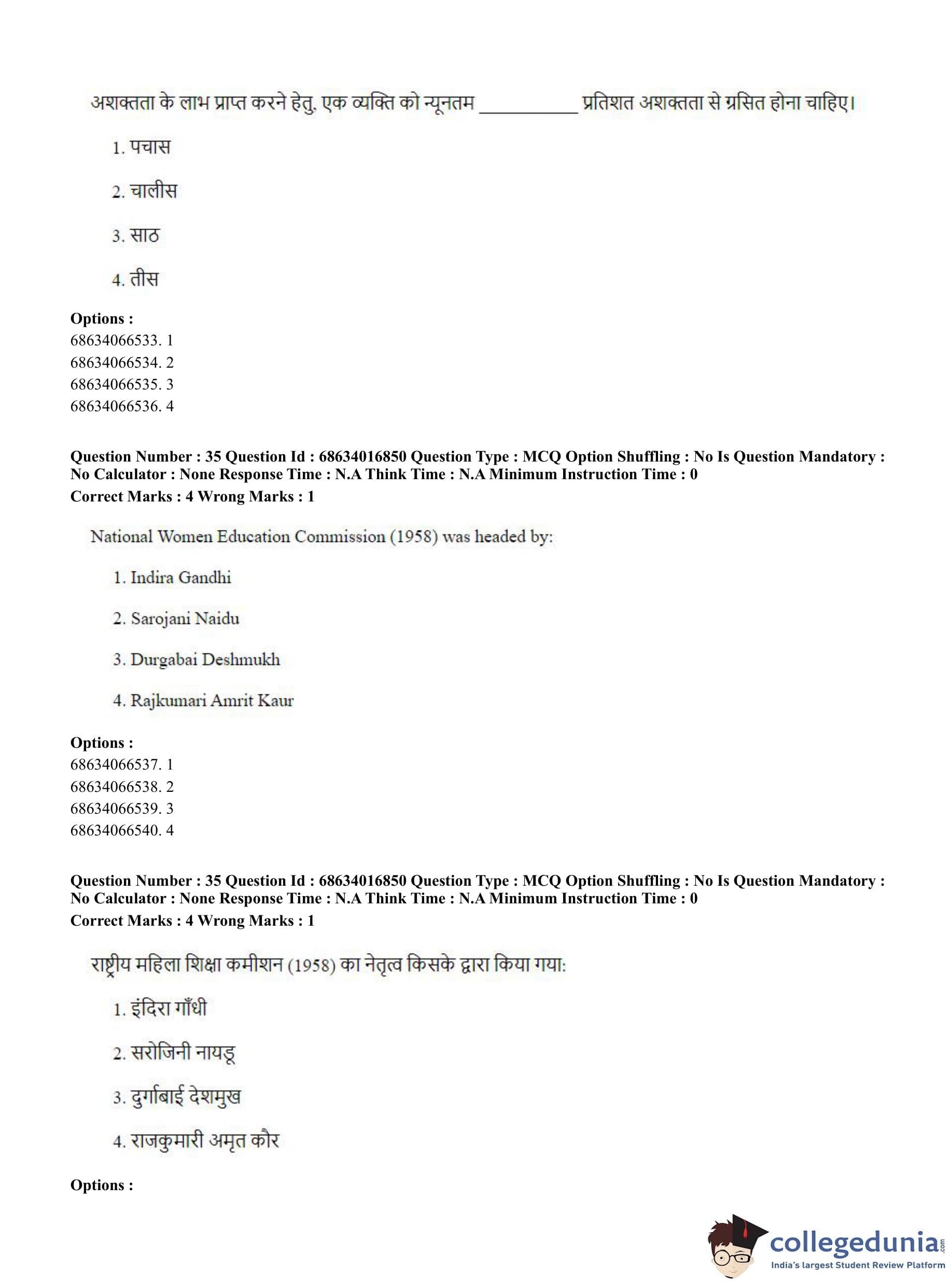 CUET PG 2023 M.Ed. Question Paper in Hindi (June 11 - Shift 1)